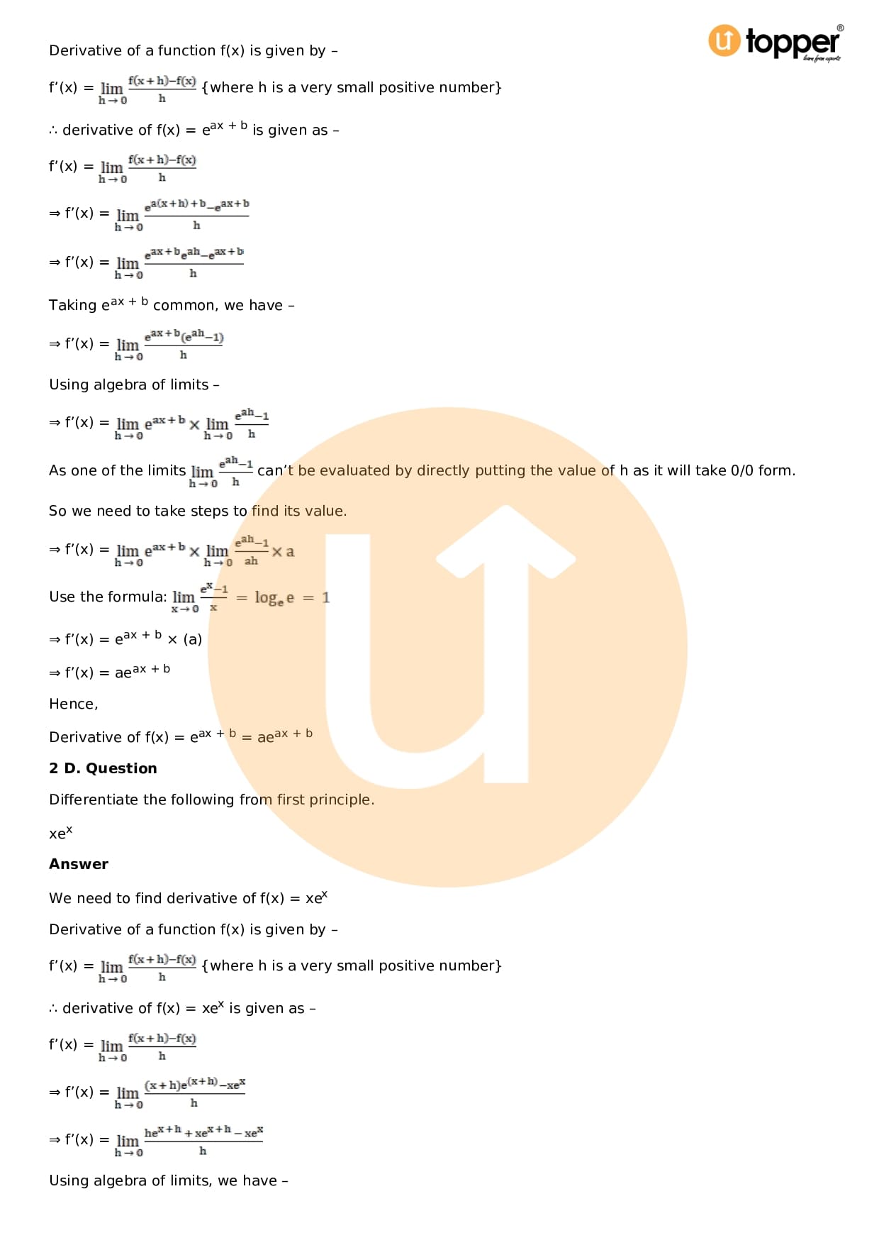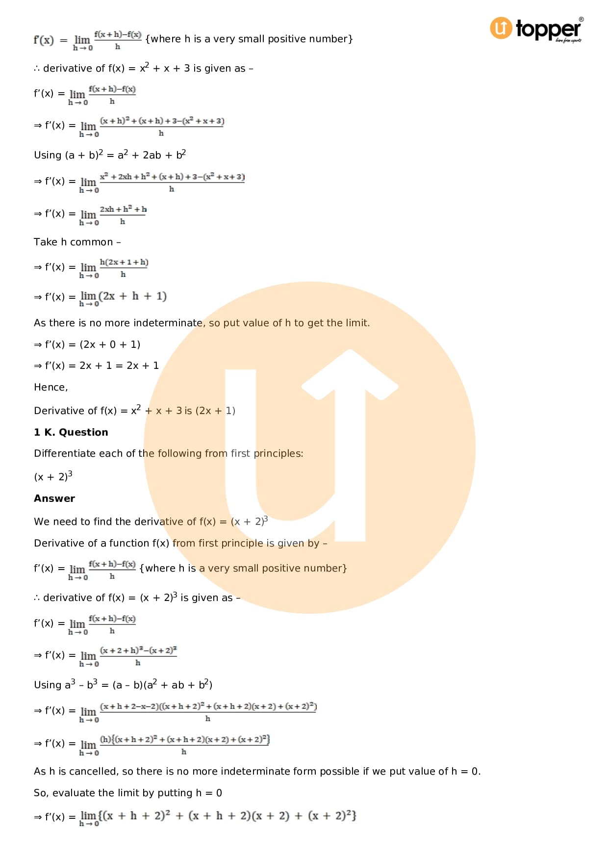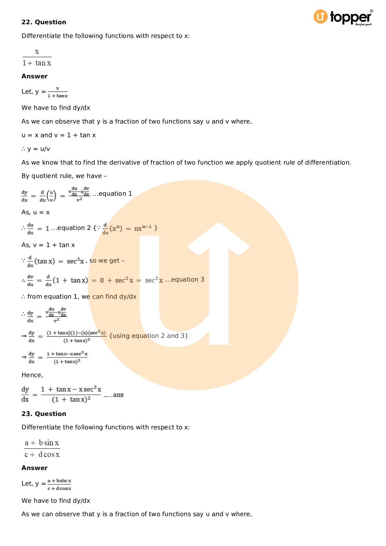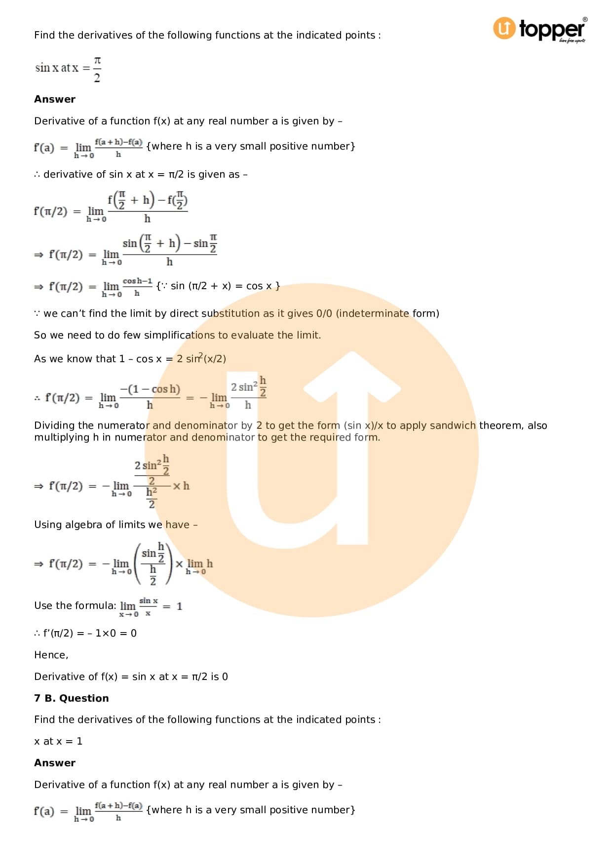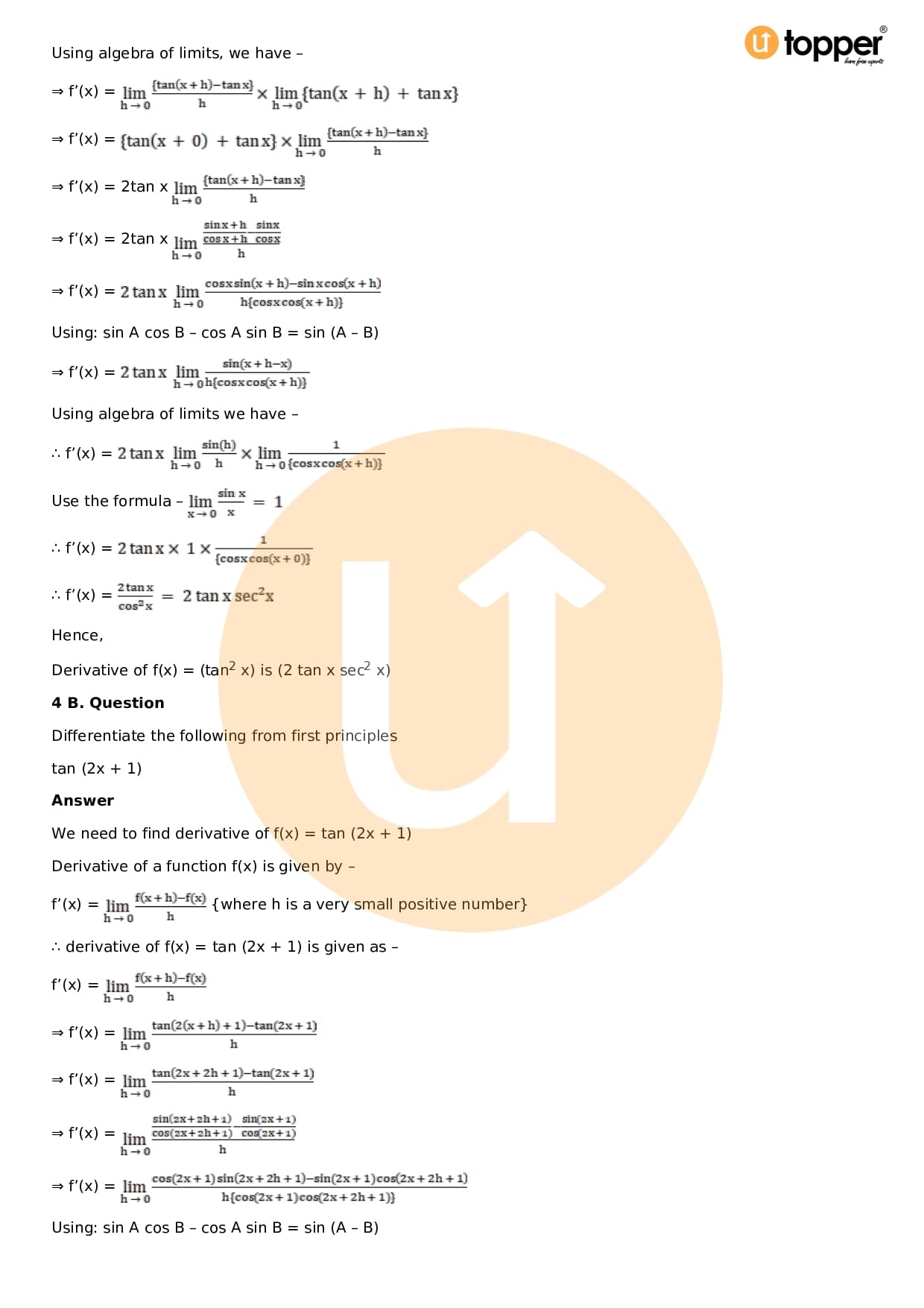 Download the latest version of RD Sharma Solutions for Class 11 Maths Chapter 30 Derivatives PDF at Utopper. It provides step by step Solution PDF. You can download RD Sharma Maths Solutions with a free PDF download option, which includes chapter wise solutions. All the questions in RD Sharma Solutions have been solved and explained by expert mathematics teachers as per the CBSE Board guidelines. By studying these Maths Solutions, you can easily get good marks in the CBSE board exams.