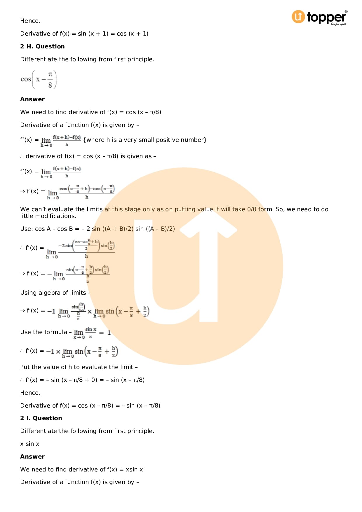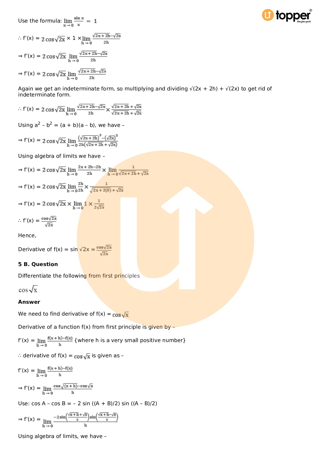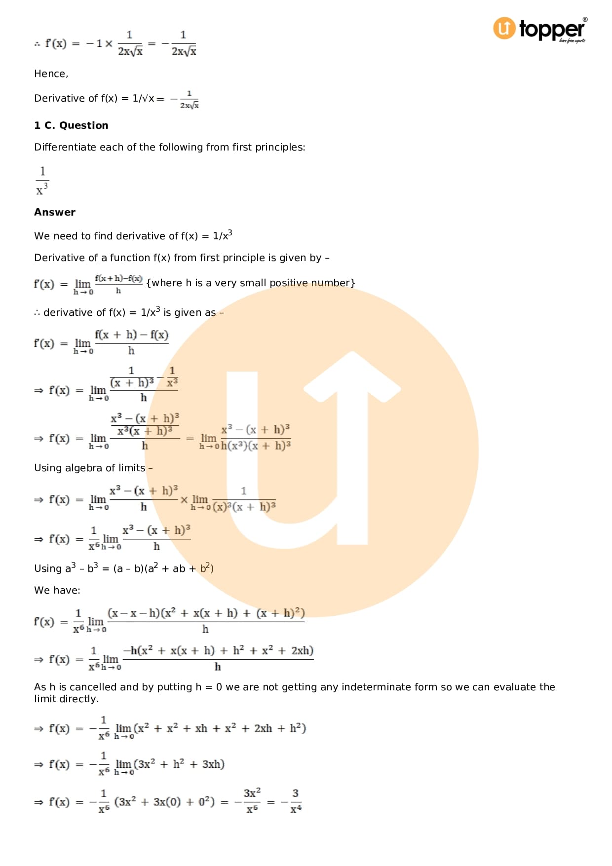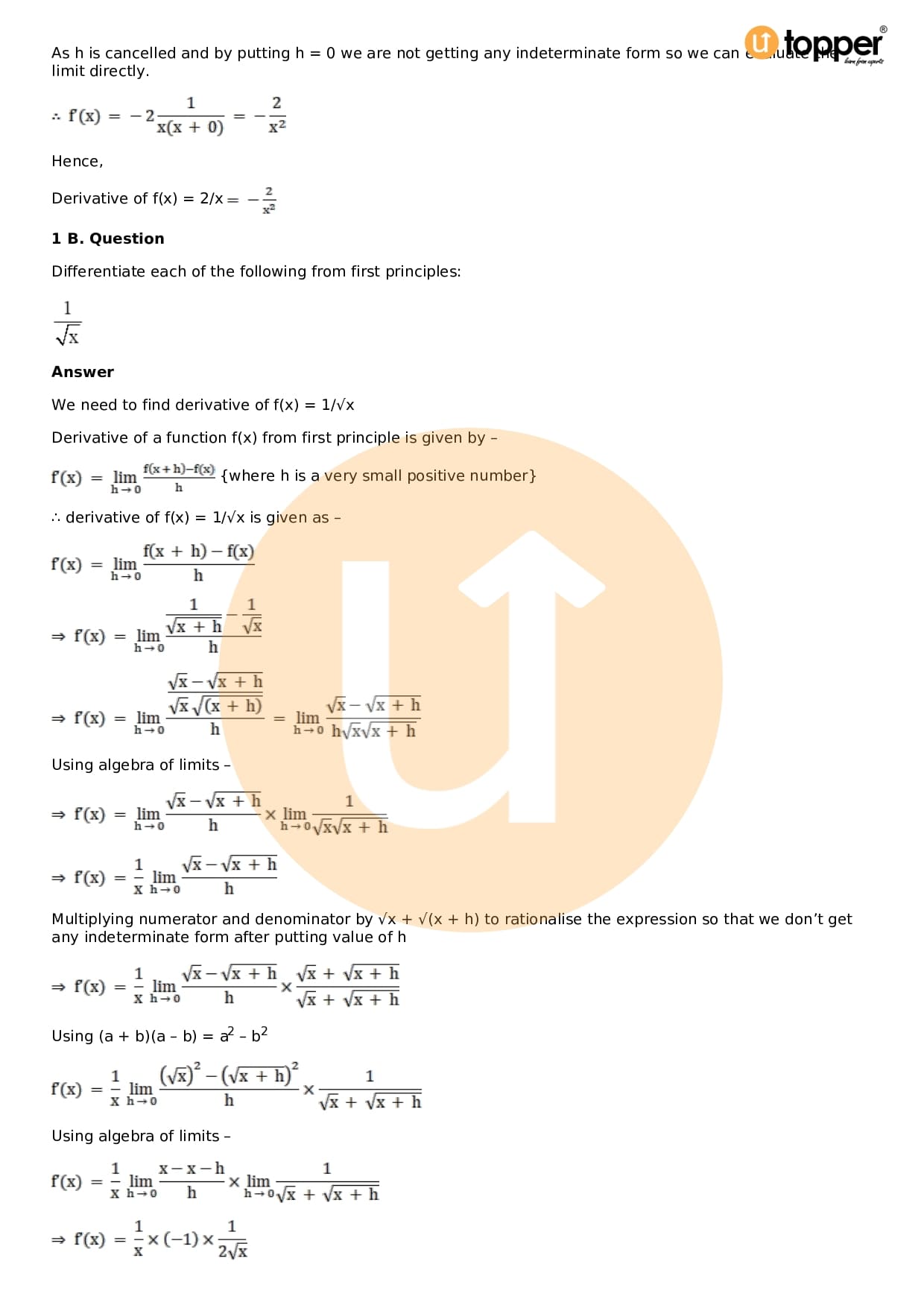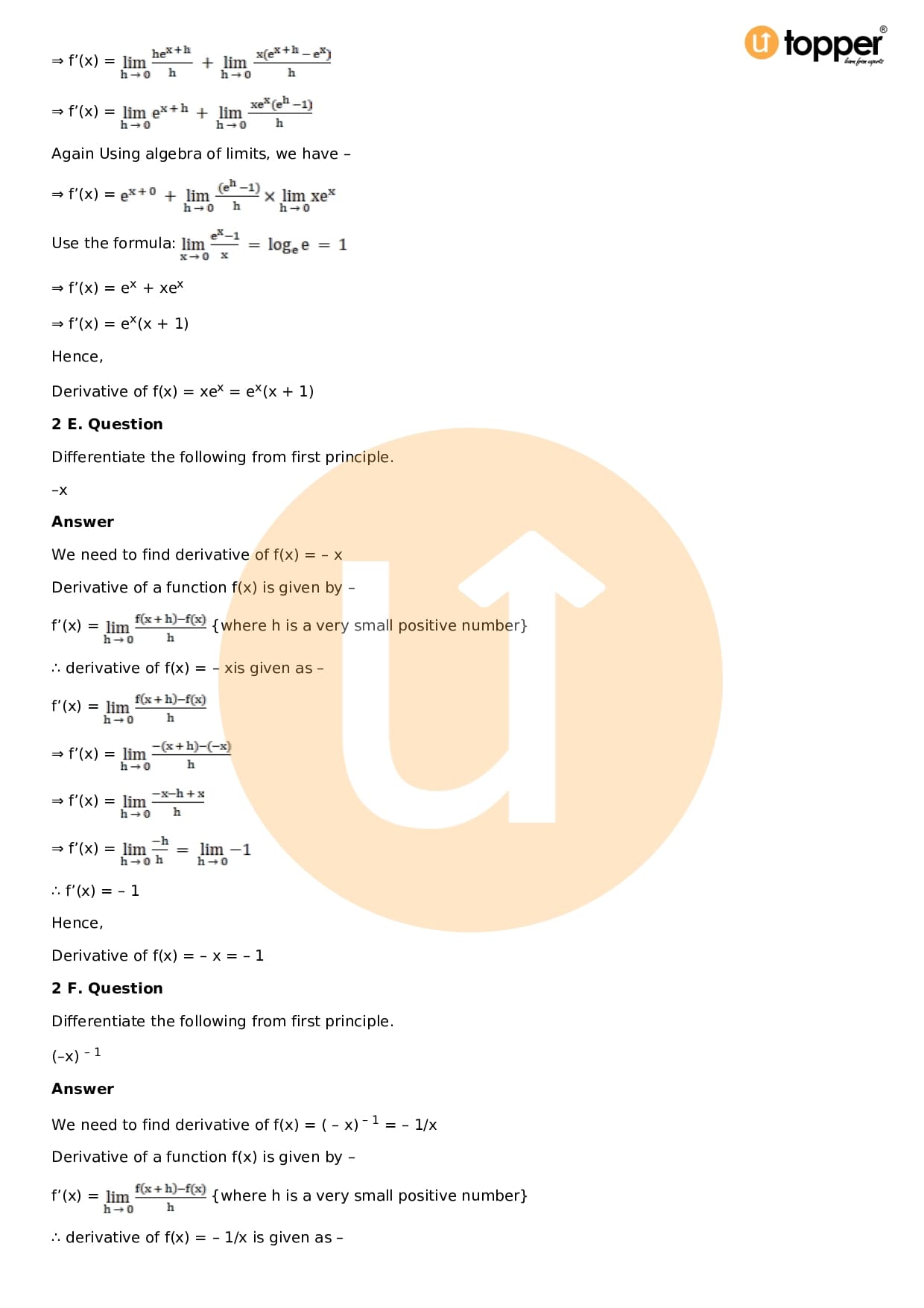 Download the latest version of RD Sharma Solutions for Class 11 Maths Chapter 30 Derivatives PDF at Utopper. It provides step by step Solution PDF. You can download RD Sharma Maths Solutions with a free PDF download option, which includes chapter wise solutions. All the questions in RD Sharma Solutions have been solved and explained by expert mathematics teachers as per the CBSE Board guidelines. By studying these Maths Solutions, you can easily get good marks in the CBSE board exams.