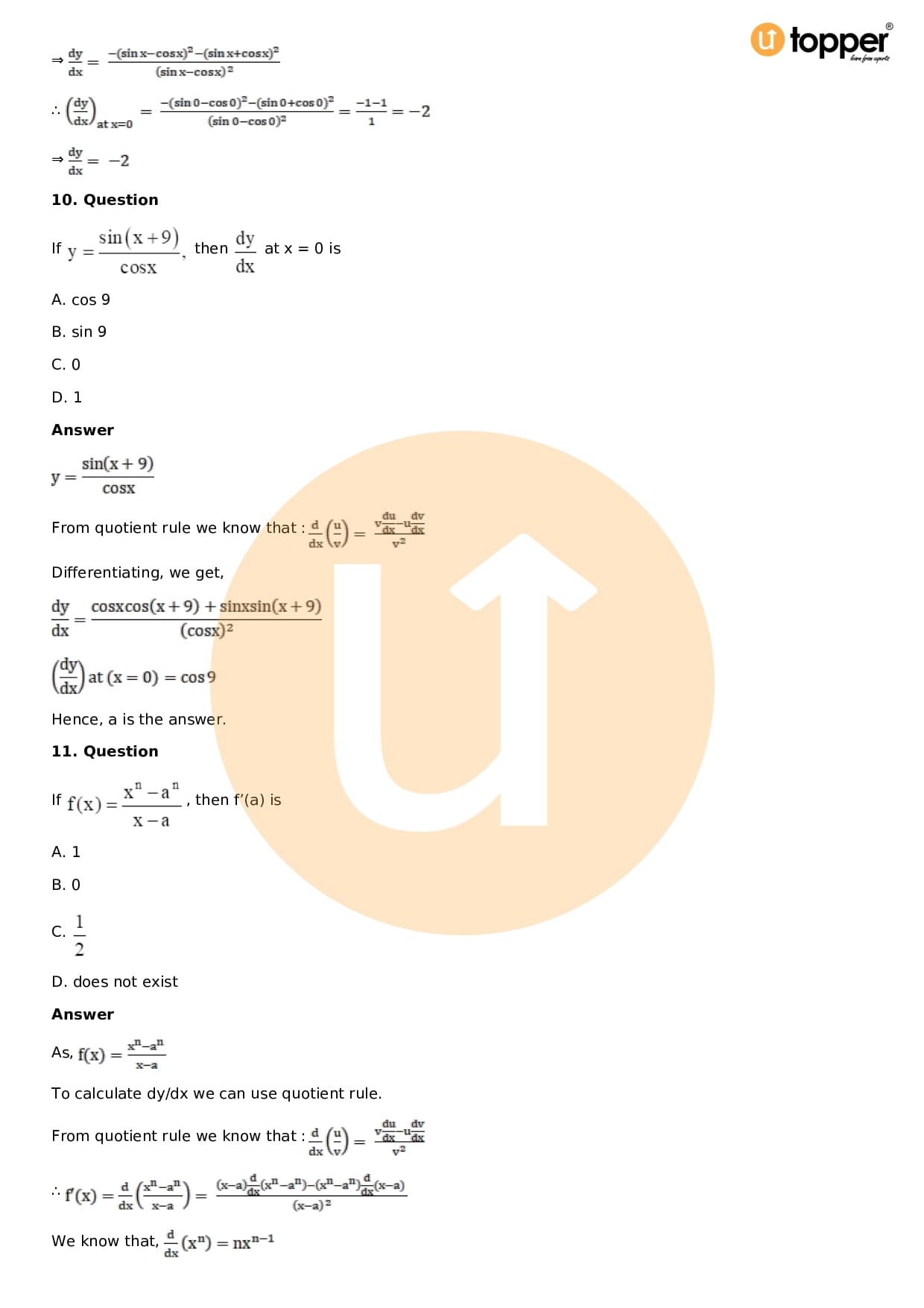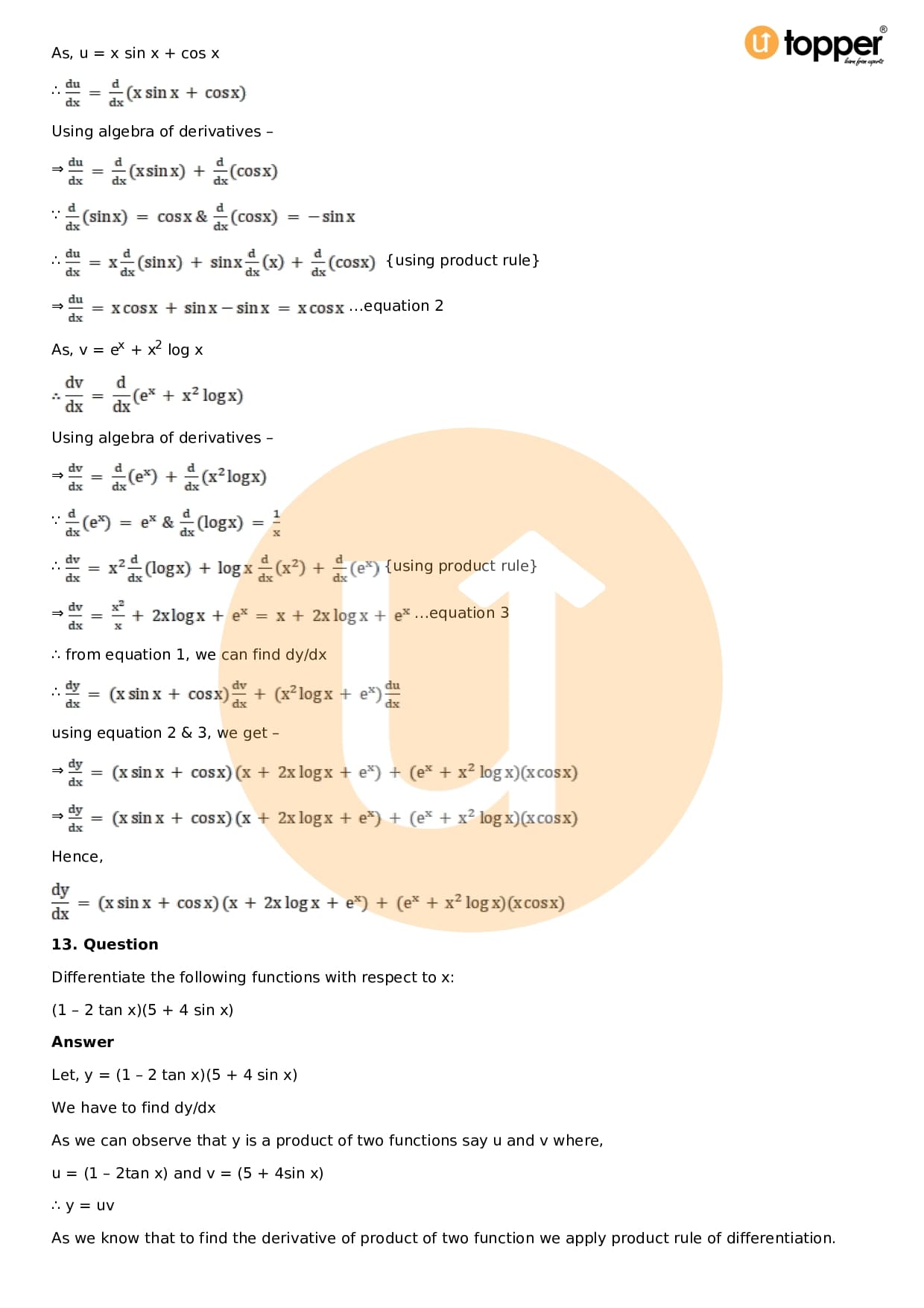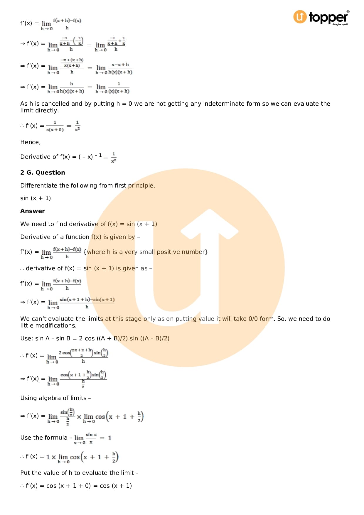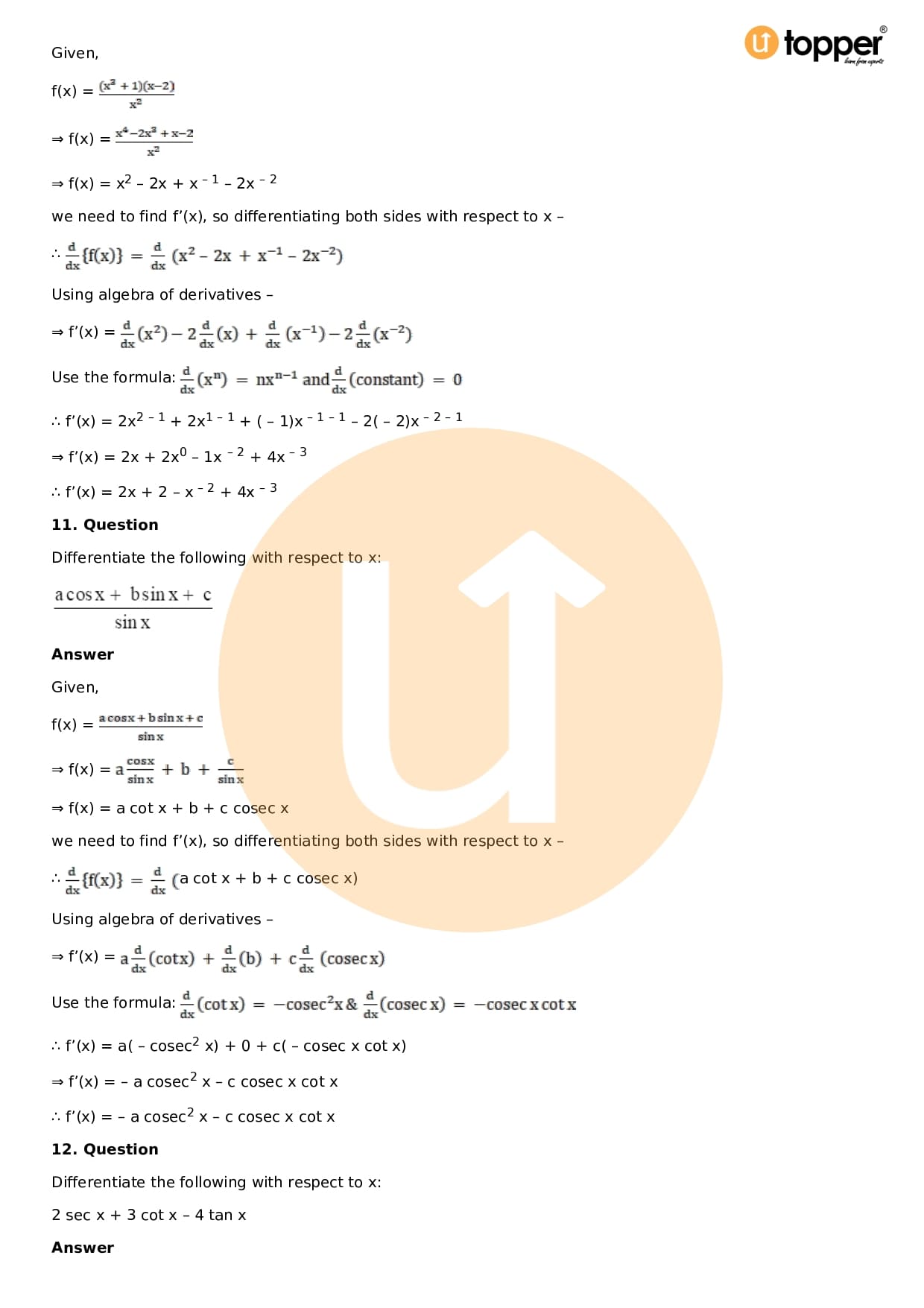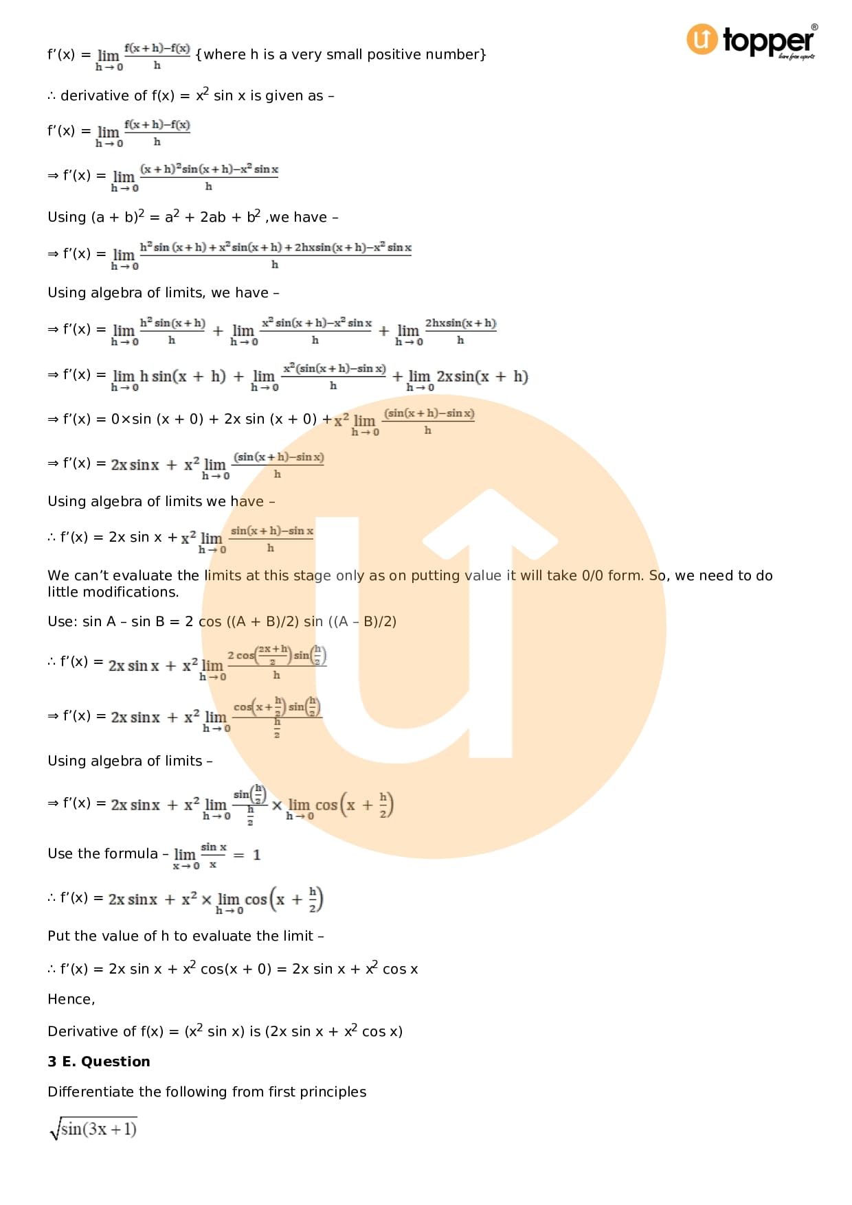Download the latest version of RD Sharma Solutions for Class 11 Maths Chapter 30 Derivatives PDF at Utopper. It provides step by step Solution PDF. You can download RD Sharma Maths Solutions with a free PDF download option, which includes chapter wise solutions. All the questions in RD Sharma Solutions have been solved and explained by expert mathematics teachers as per the CBSE Board guidelines. By studying these Maths Solutions, you can easily get good marks in the CBSE board exams.