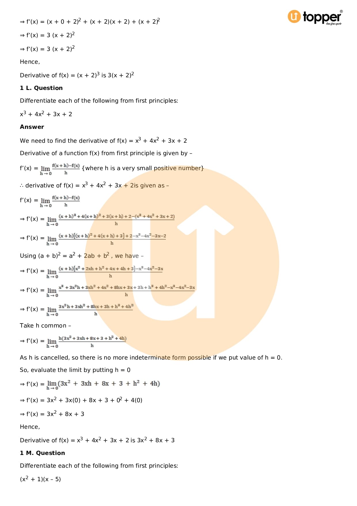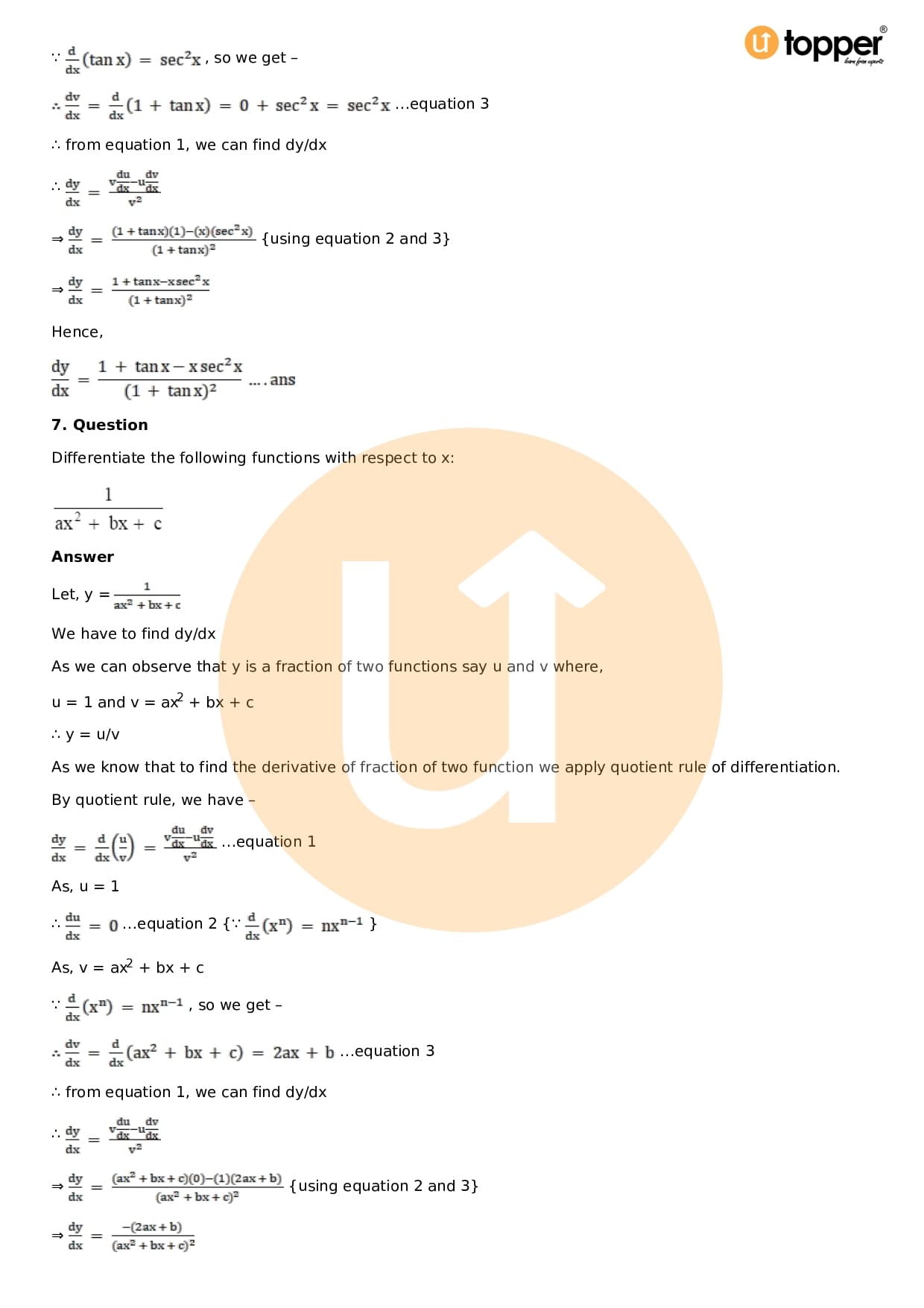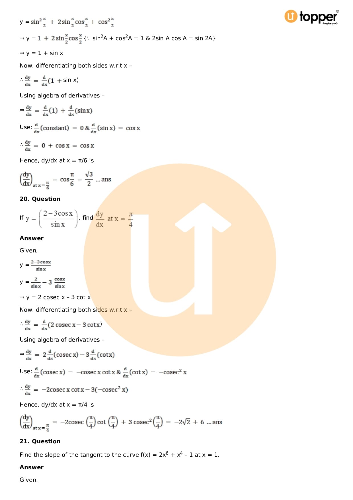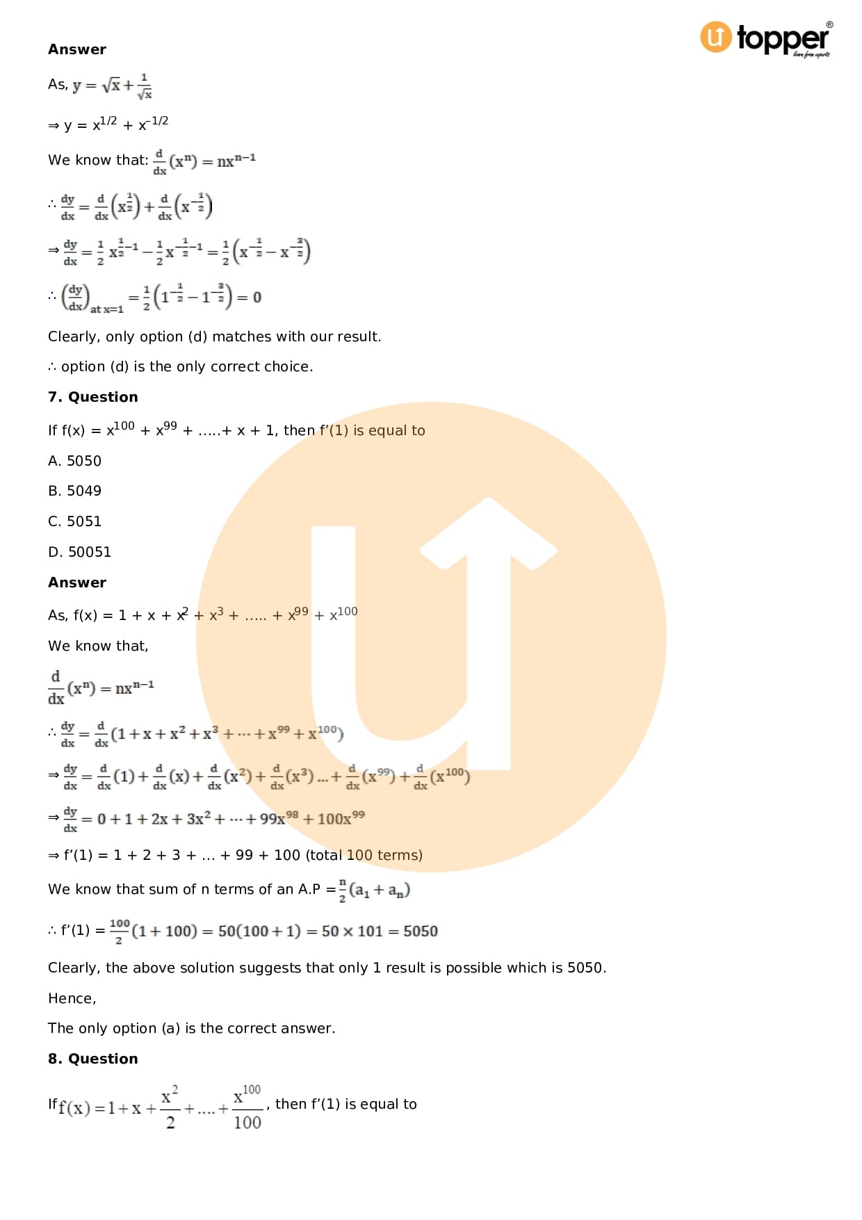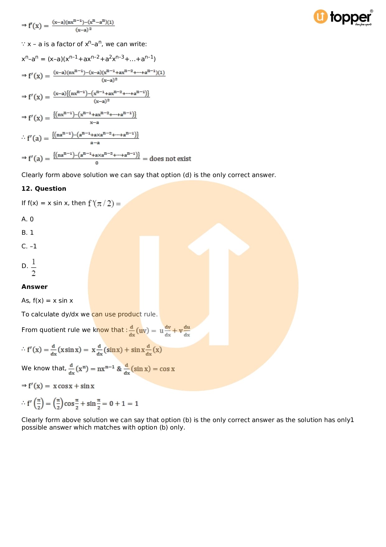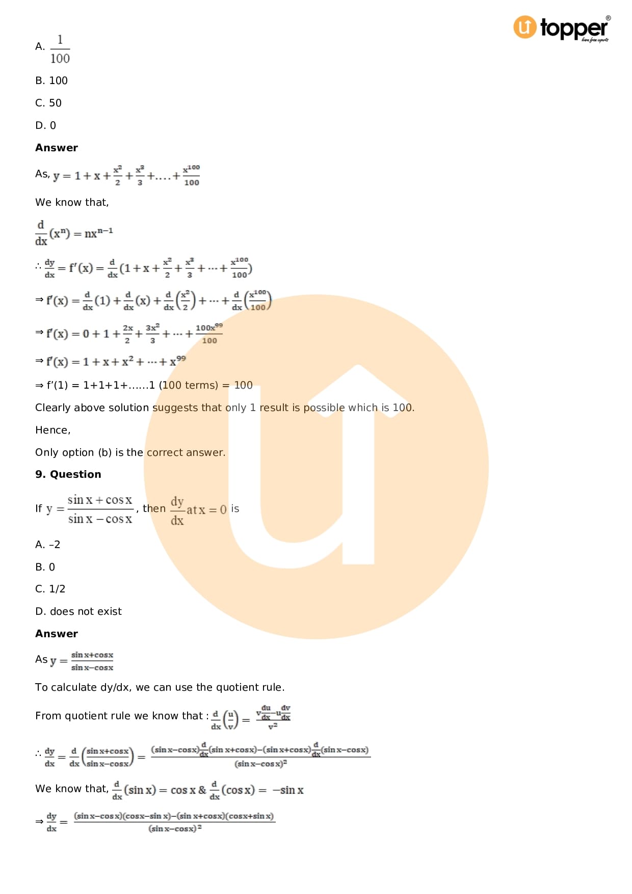 Download the latest version of RD Sharma Solutions for Class 11 Maths Chapter 30 Derivatives PDF at Utopper. It provides step by step Solution PDF. You can download RD Sharma Maths Solutions with a free PDF download option, which includes chapter wise solutions. All the questions in RD Sharma Solutions have been solved and explained by expert mathematics teachers as per the CBSE Board guidelines. By studying these Maths Solutions, you can easily get good marks in the CBSE board exams.