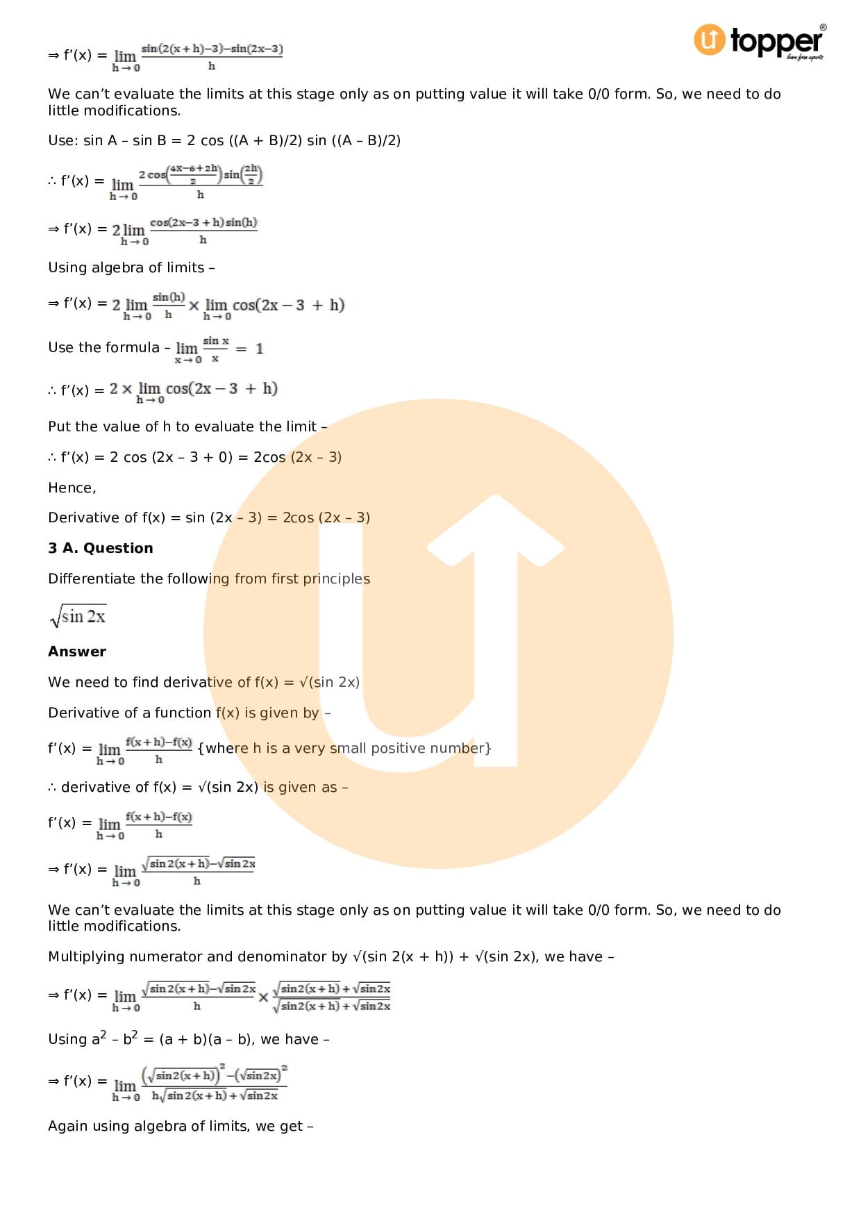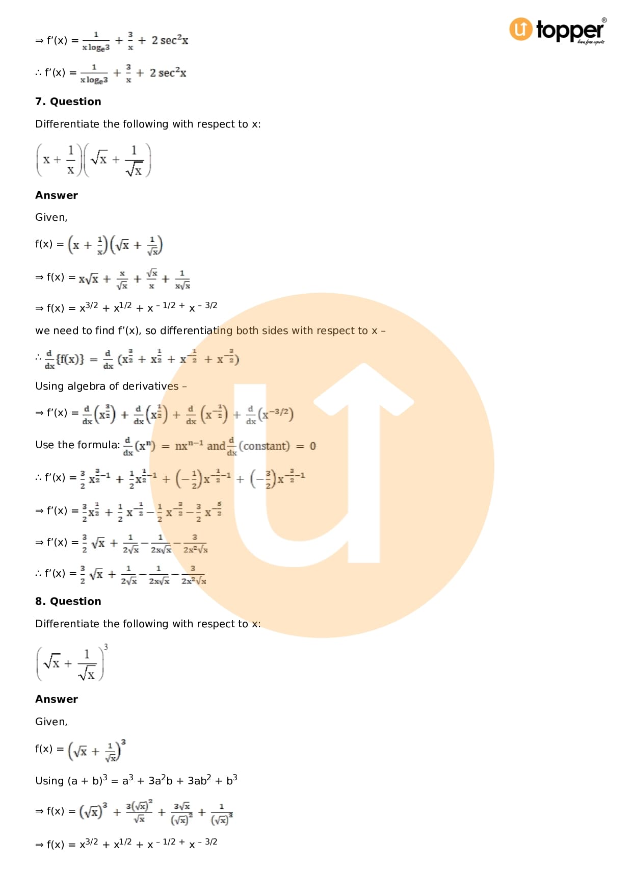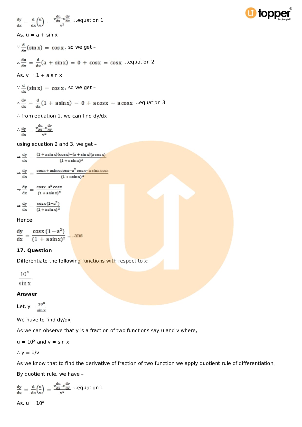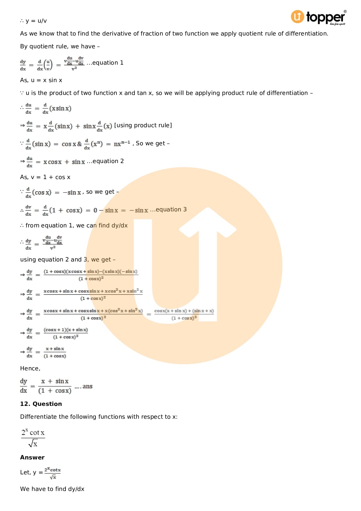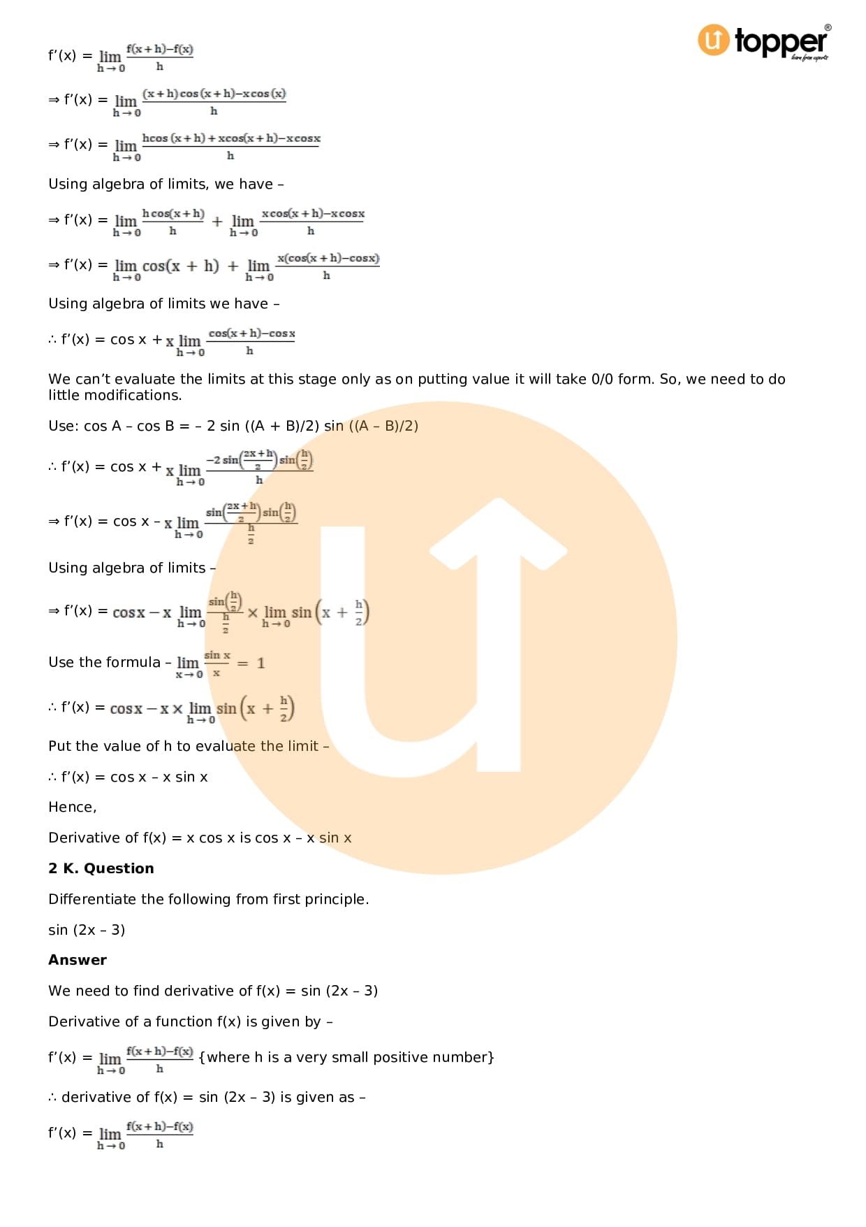 Download the latest version of RD Sharma Solutions for Class 11 Maths Chapter 30 Derivatives PDF at Utopper. It provides step by step Solution PDF. You can download RD Sharma Maths Solutions with a free PDF download option, which includes chapter wise solutions. All the questions in RD Sharma Solutions have been solved and explained by expert mathematics teachers as per the CBSE Board guidelines. By studying these Maths Solutions, you can easily get good marks in the CBSE board exams.