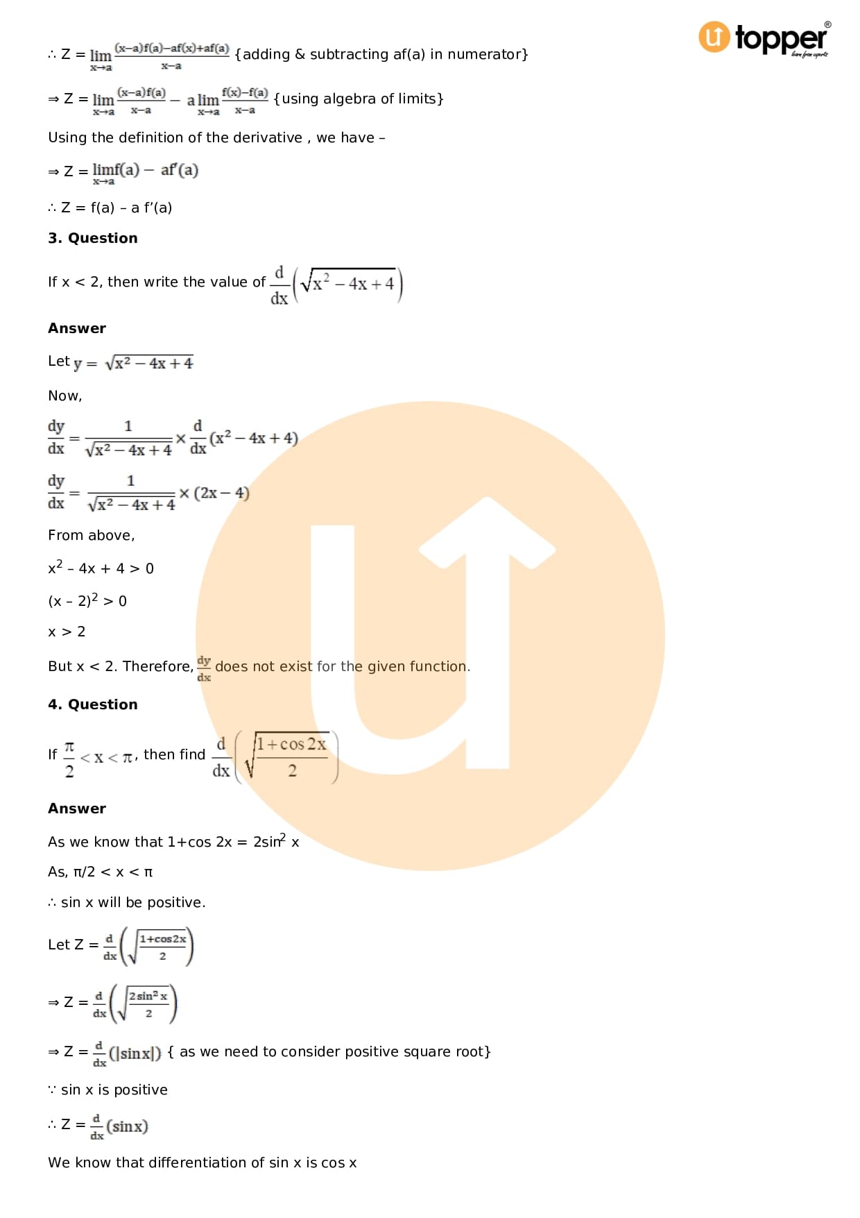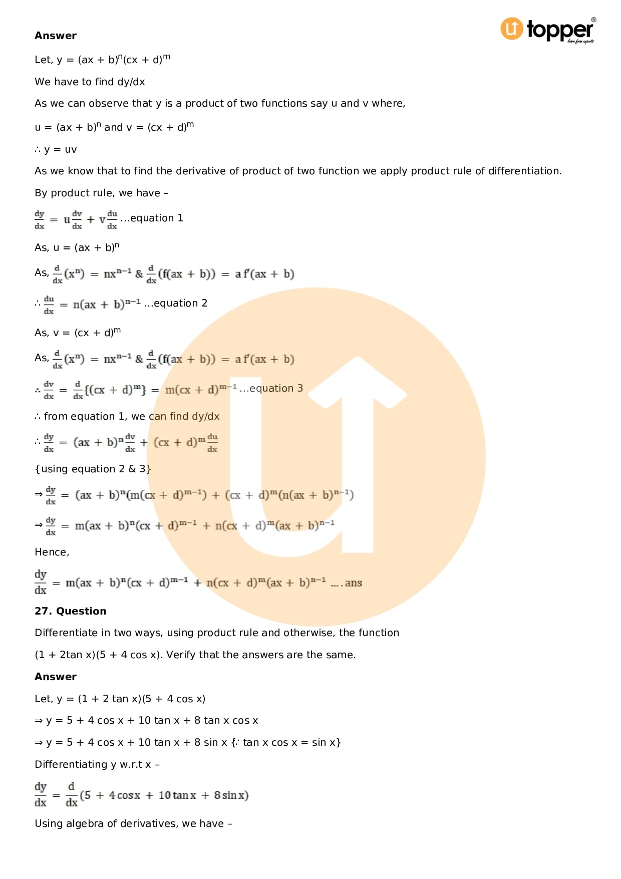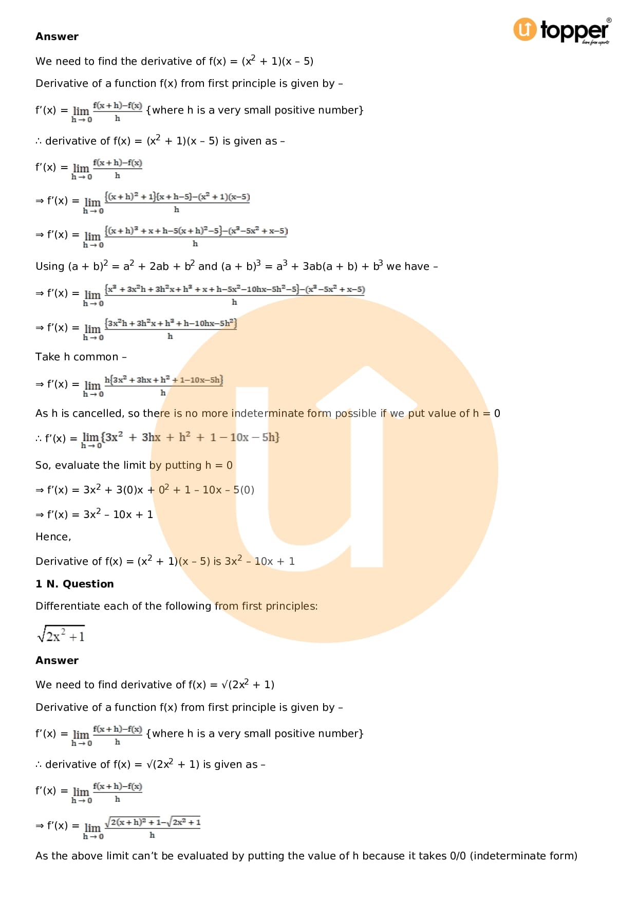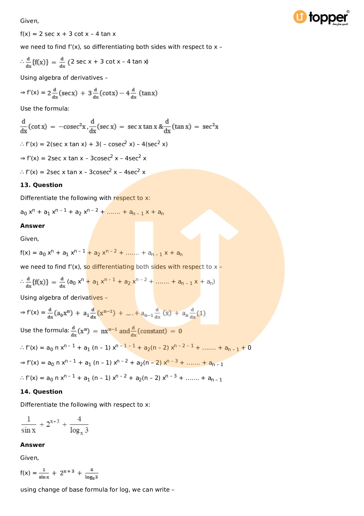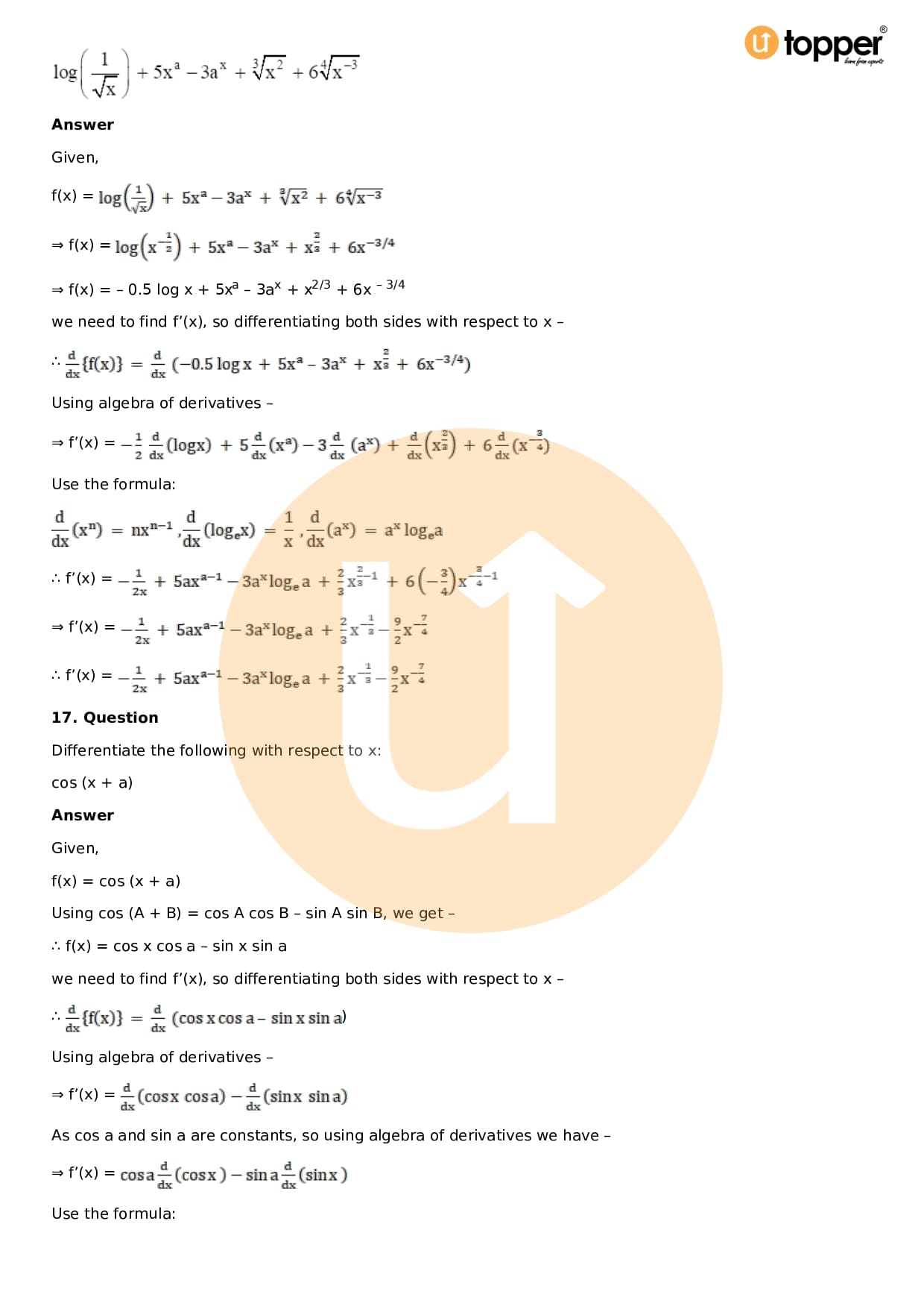 Download the latest version of RD Sharma Solutions for Class 11 Maths Chapter 30 Derivatives PDF at Utopper. It provides step by step Solution PDF. You can download RD Sharma Maths Solutions with a free PDF download option, which includes chapter wise solutions. All the questions in RD Sharma Solutions have been solved and explained by expert mathematics teachers as per the CBSE Board guidelines. By studying these Maths Solutions, you can easily get good marks in the CBSE board exams.