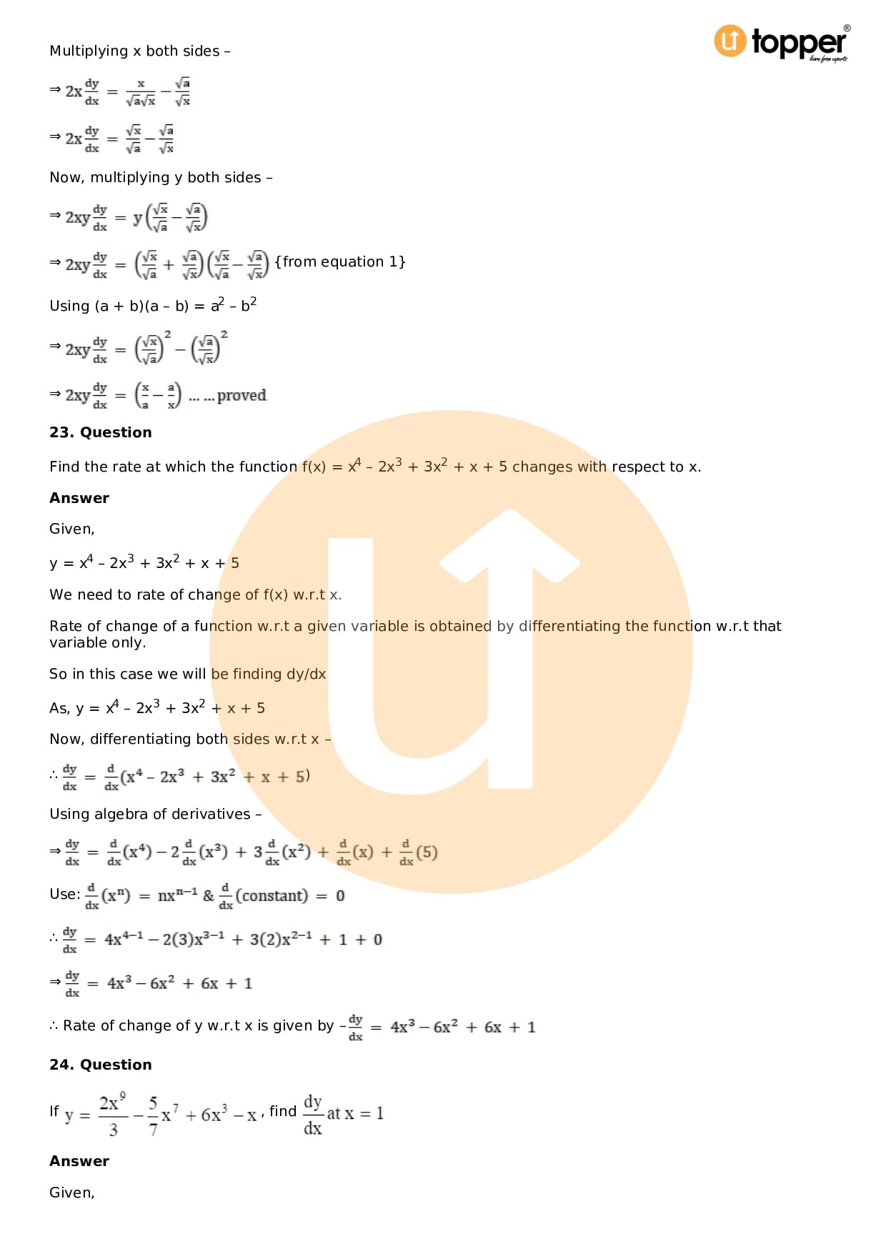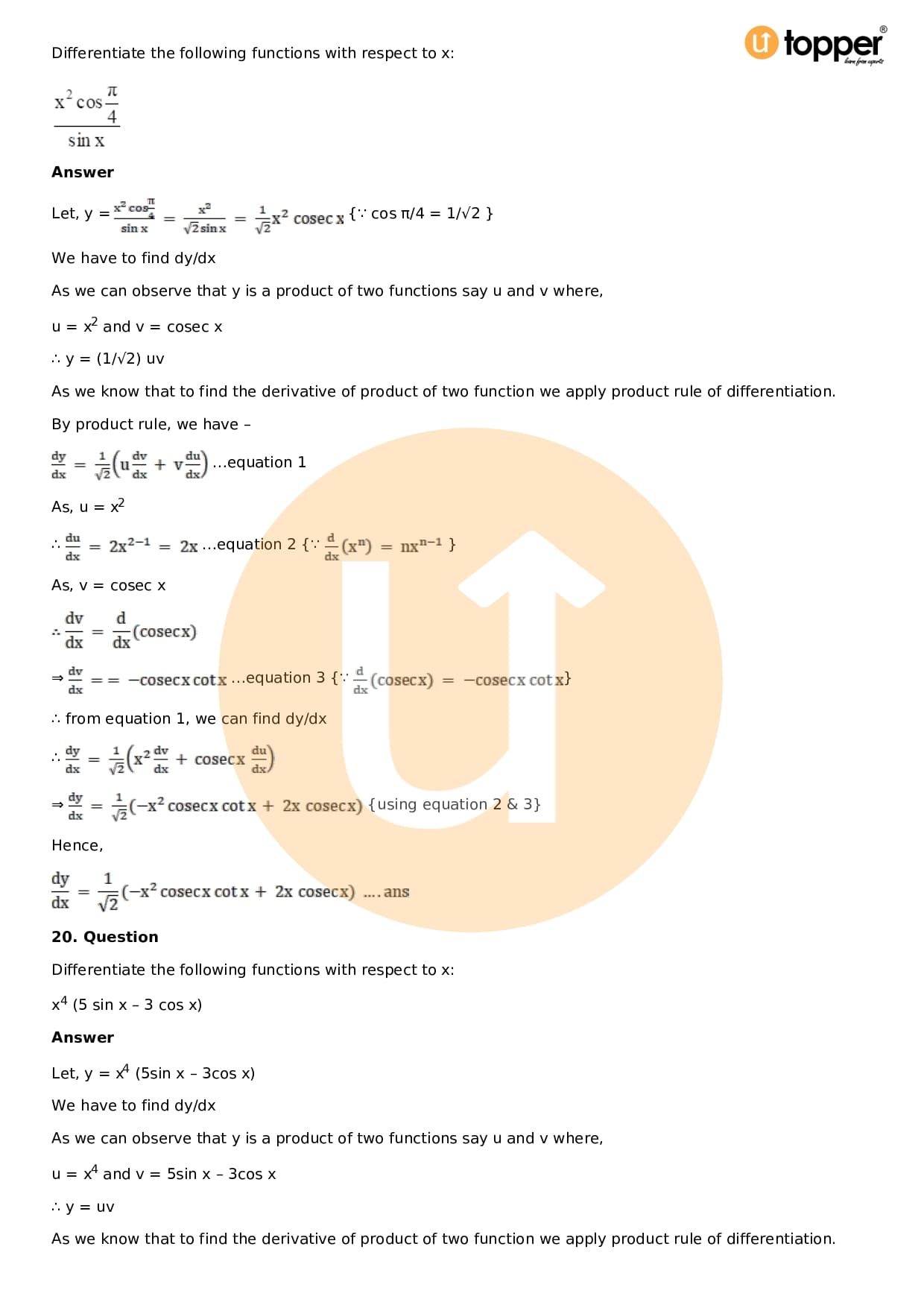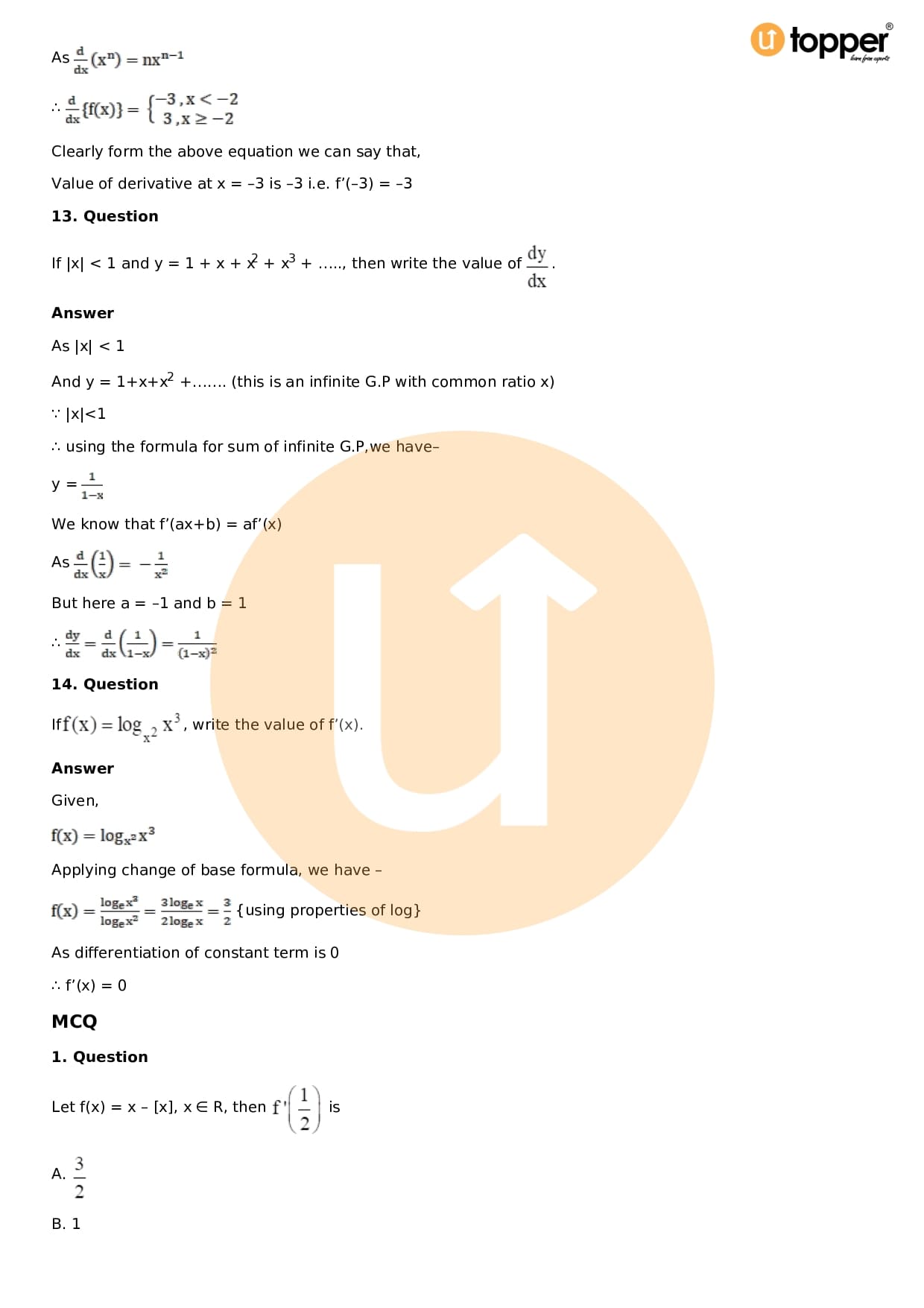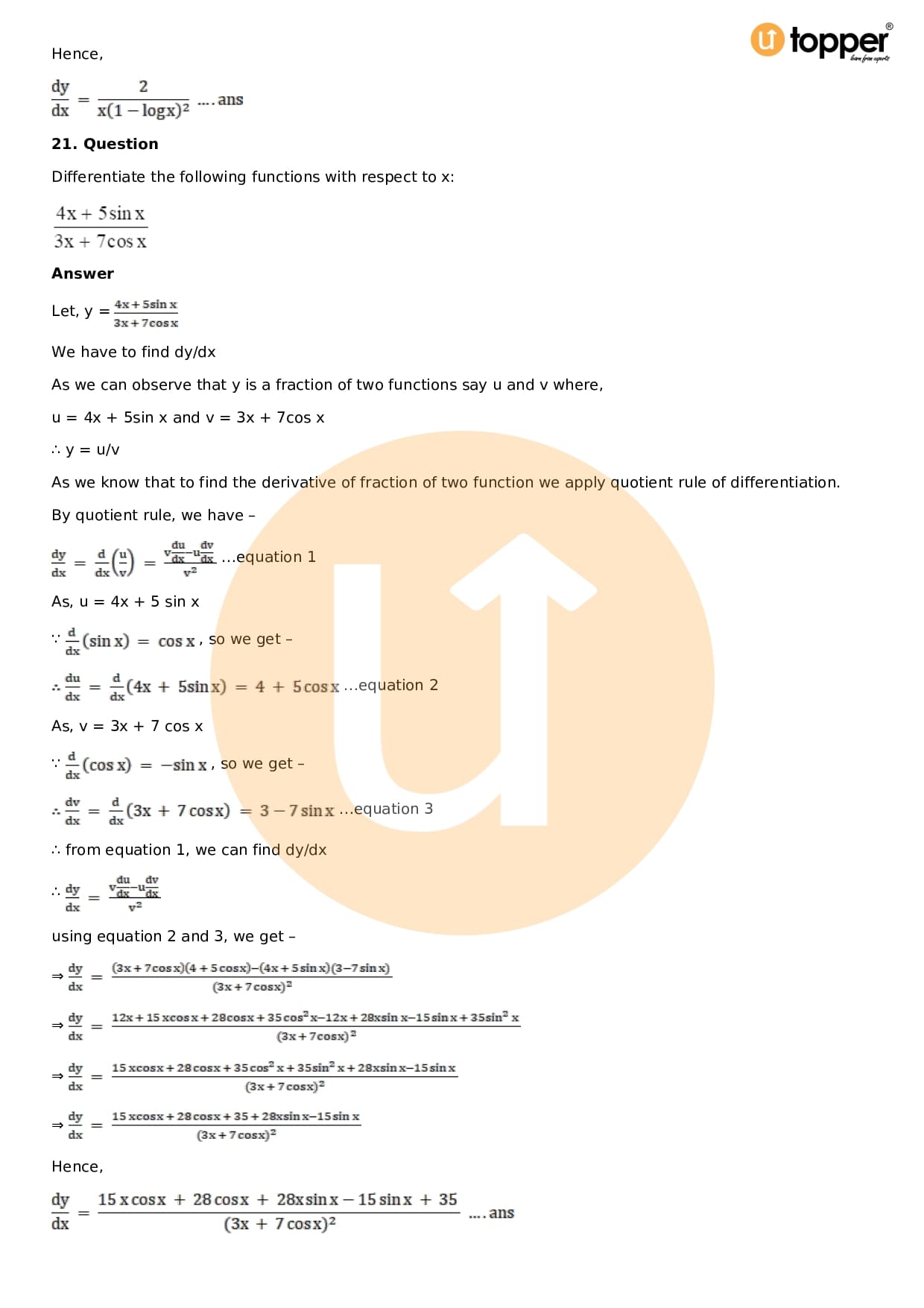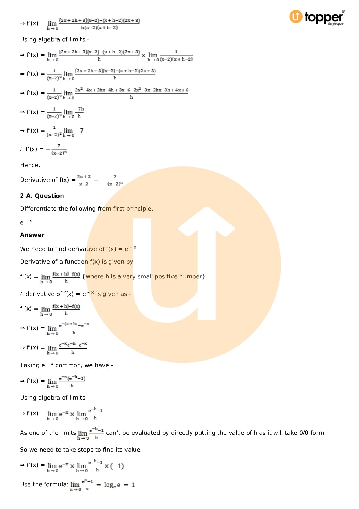 Download the latest version of RD Sharma Solutions for Class 11 Maths Chapter 30 Derivatives PDF at Utopper. It provides step by step Solution PDF. You can download RD Sharma Maths Solutions with a free PDF download option, which includes chapter wise solutions. All the questions in RD Sharma Solutions have been solved and explained by expert mathematics teachers as per the CBSE Board guidelines. By studying these Maths Solutions, you can easily get good marks in the CBSE board exams.