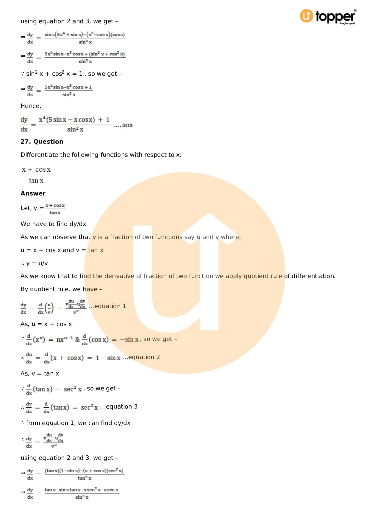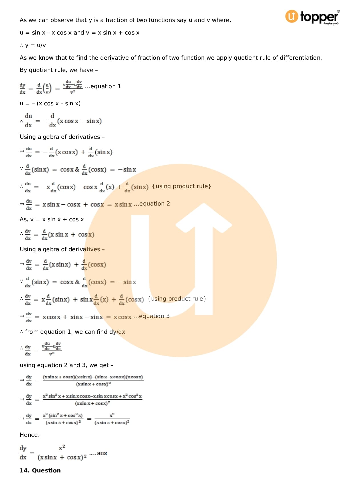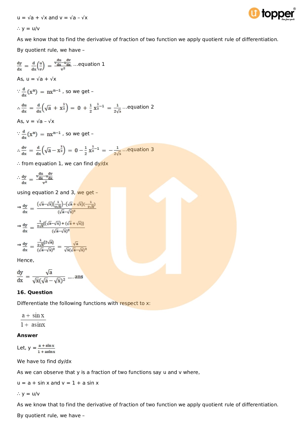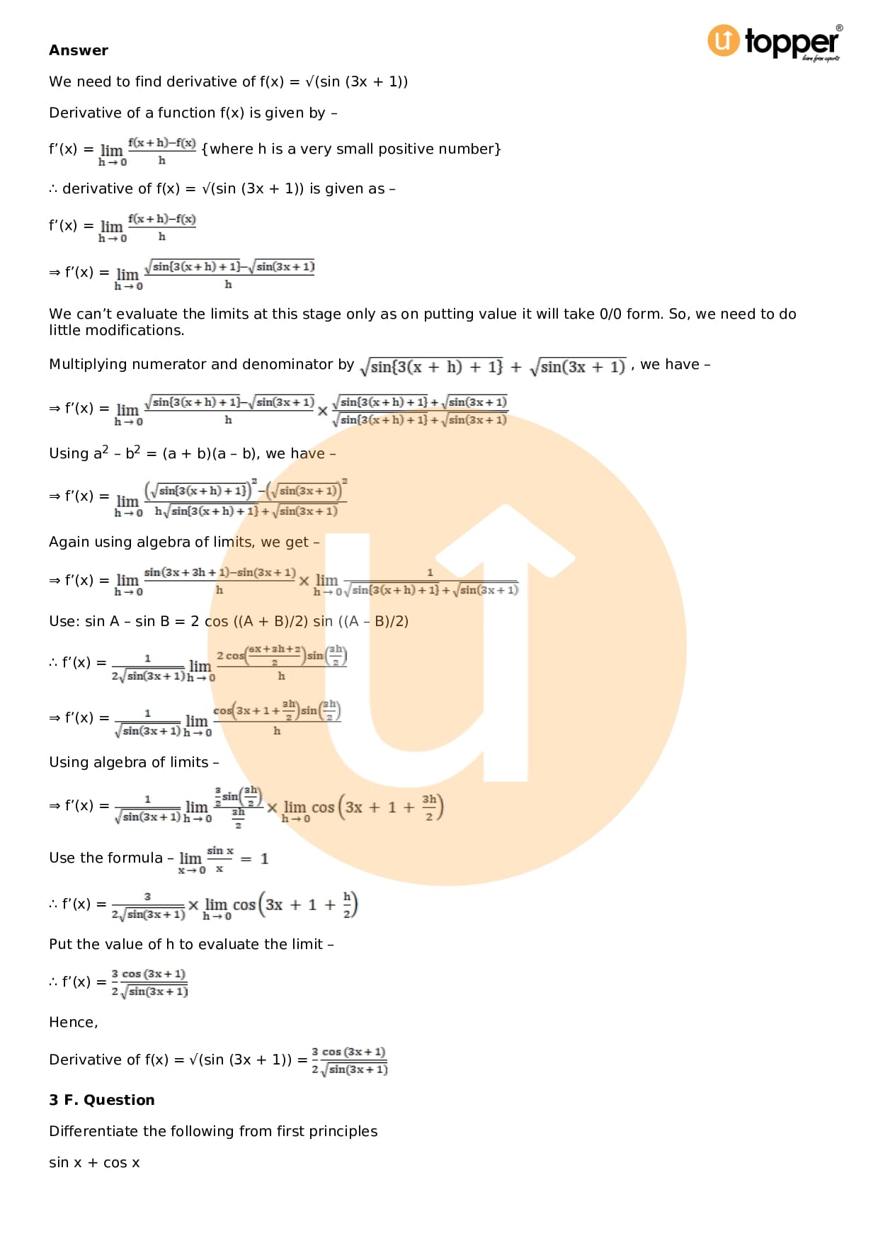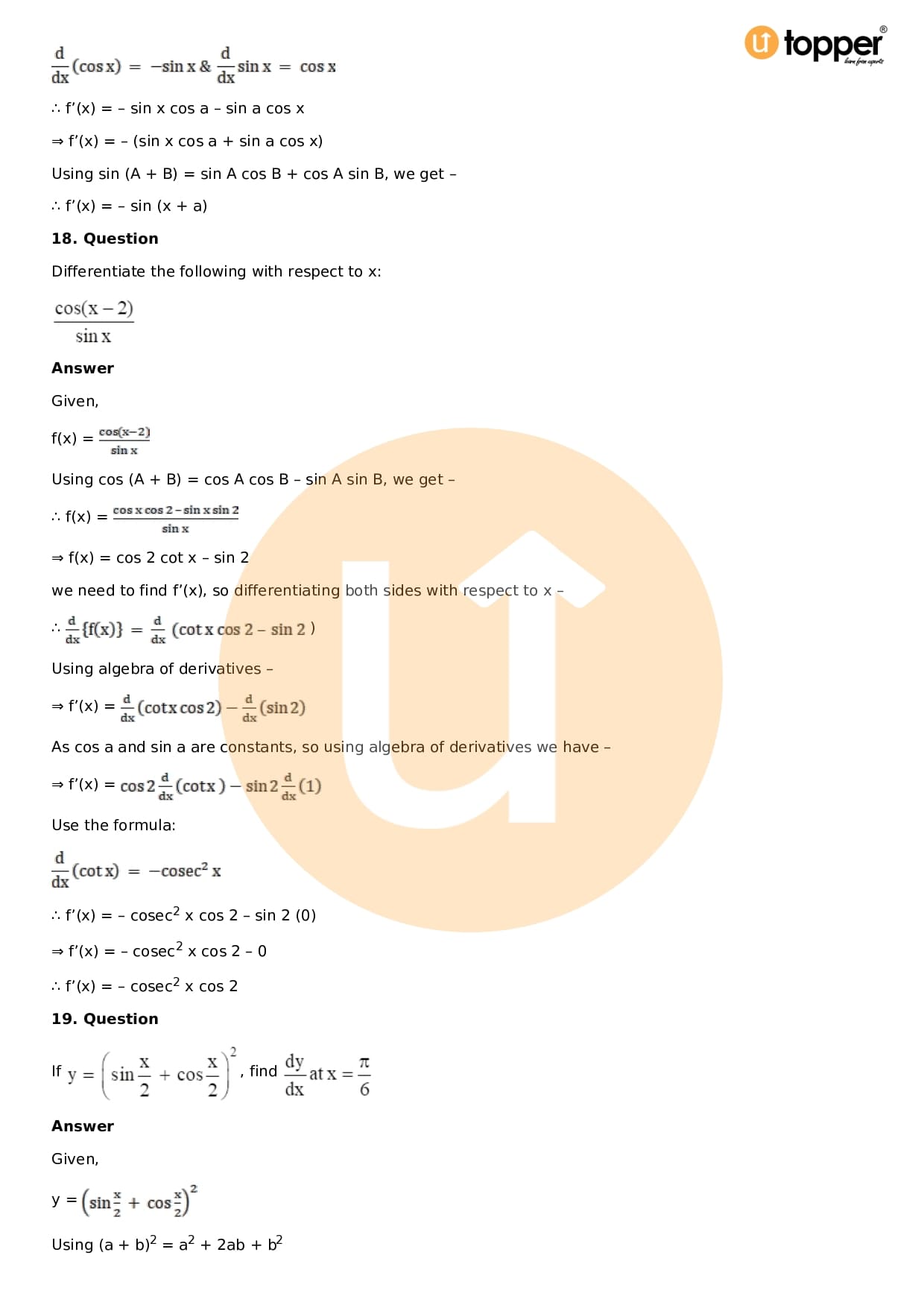 Download the latest version of RD Sharma Solutions for Class 11 Maths Chapter 30 Derivatives PDF at Utopper. It provides step by step Solution PDF. You can download RD Sharma Maths Solutions with a free PDF download option, which includes chapter wise solutions. All the questions in RD Sharma Solutions have been solved and explained by expert mathematics teachers as per the CBSE Board guidelines. By studying these Maths Solutions, you can easily get good marks in the CBSE board exams.
