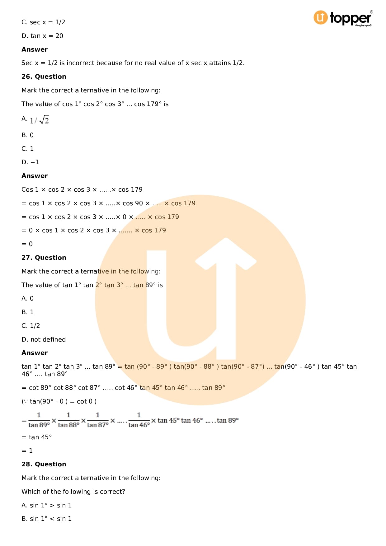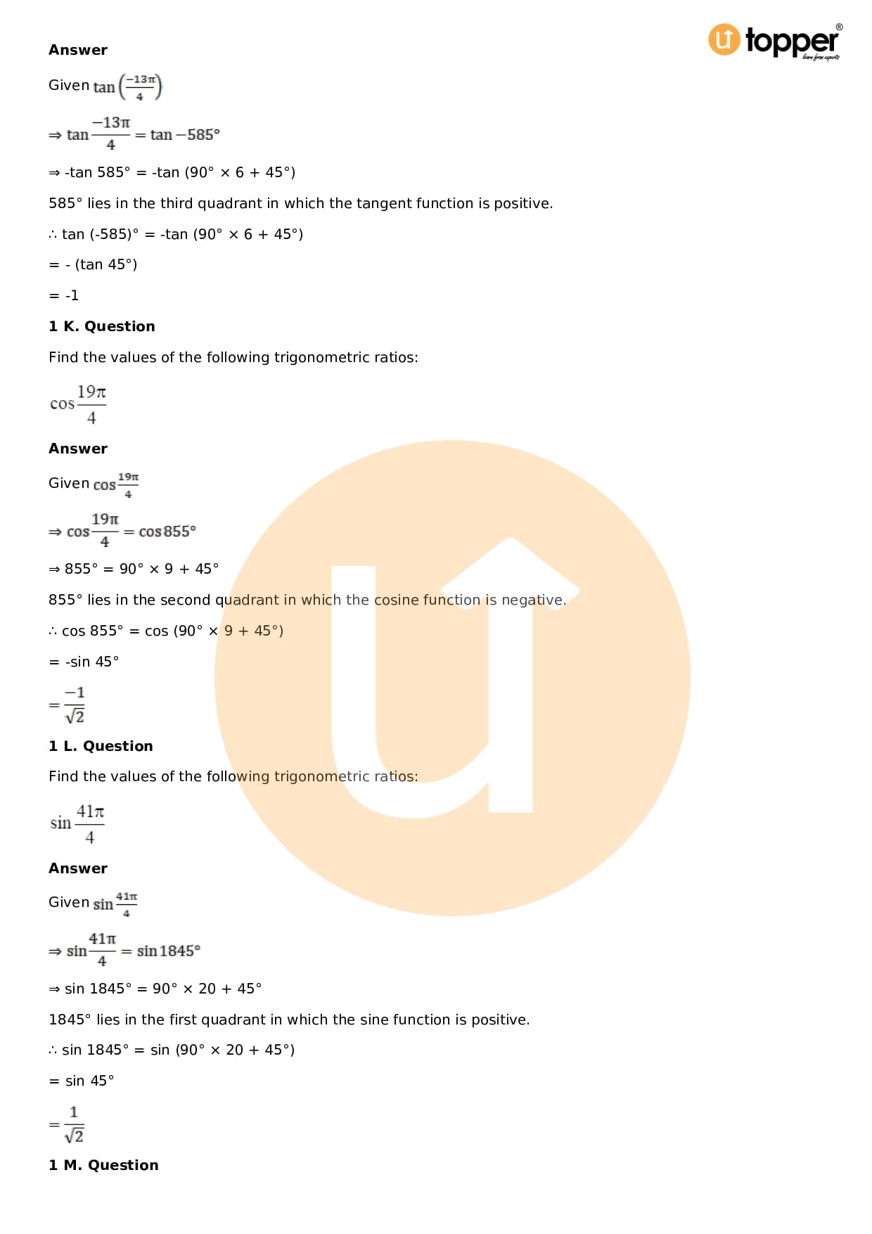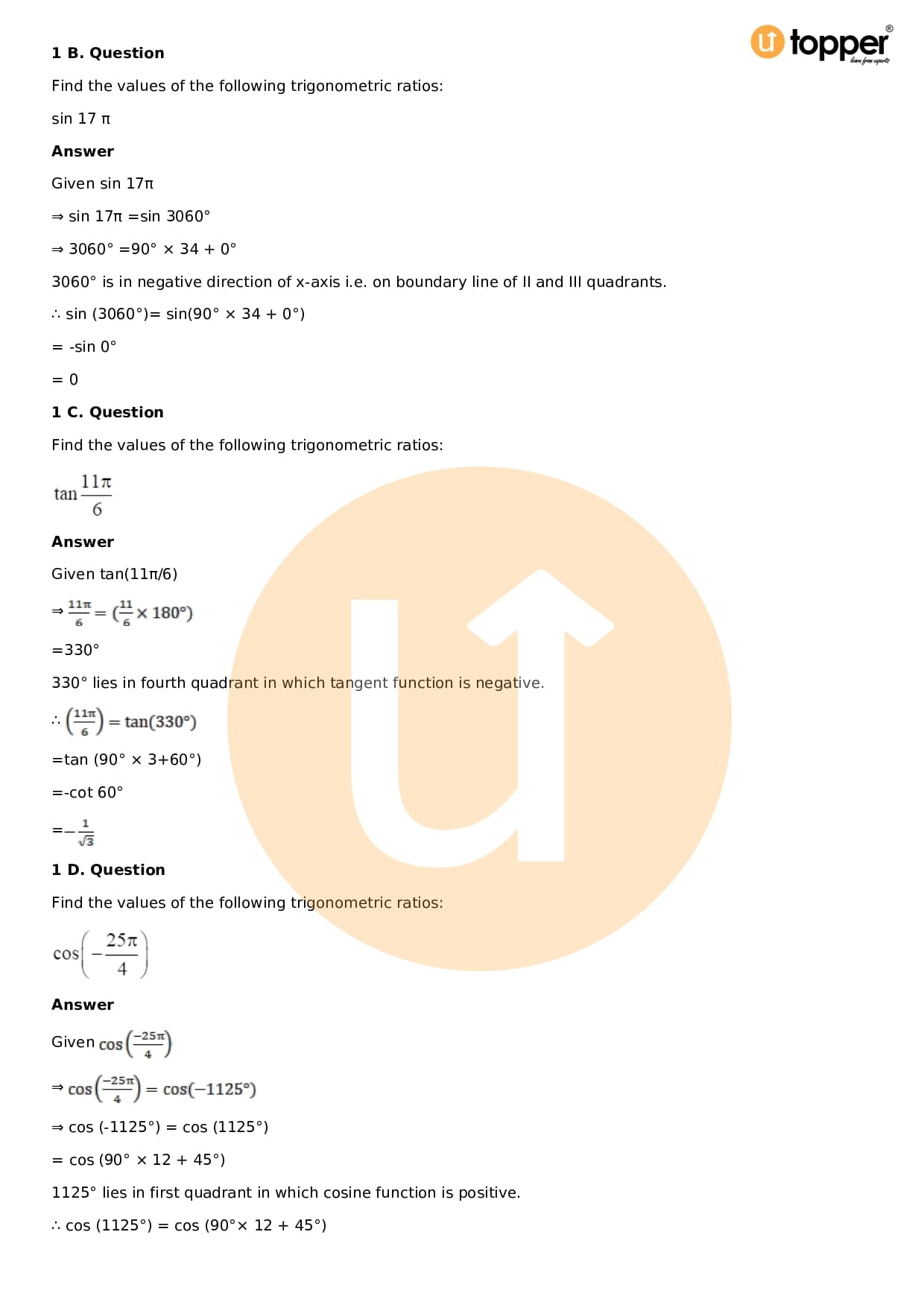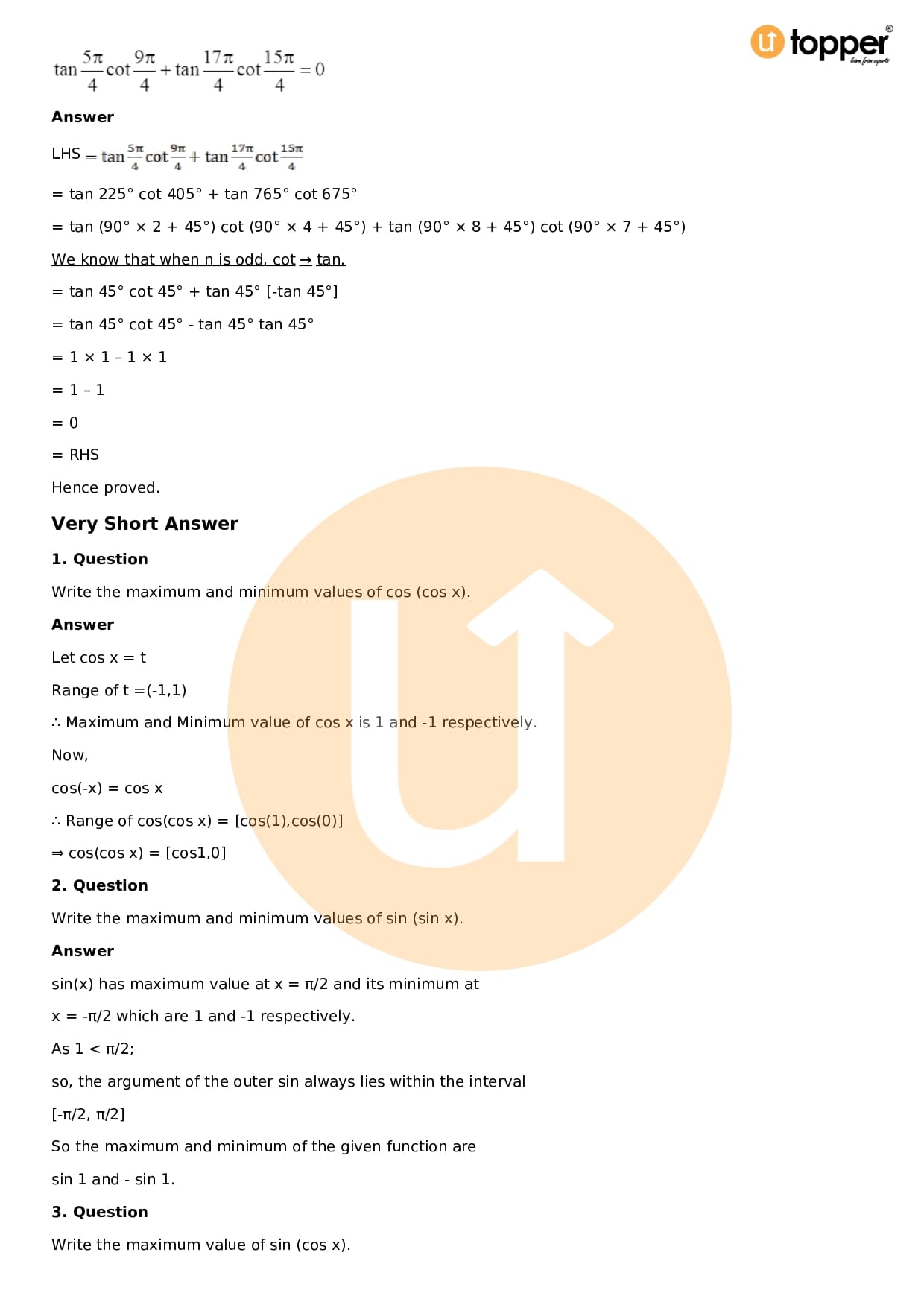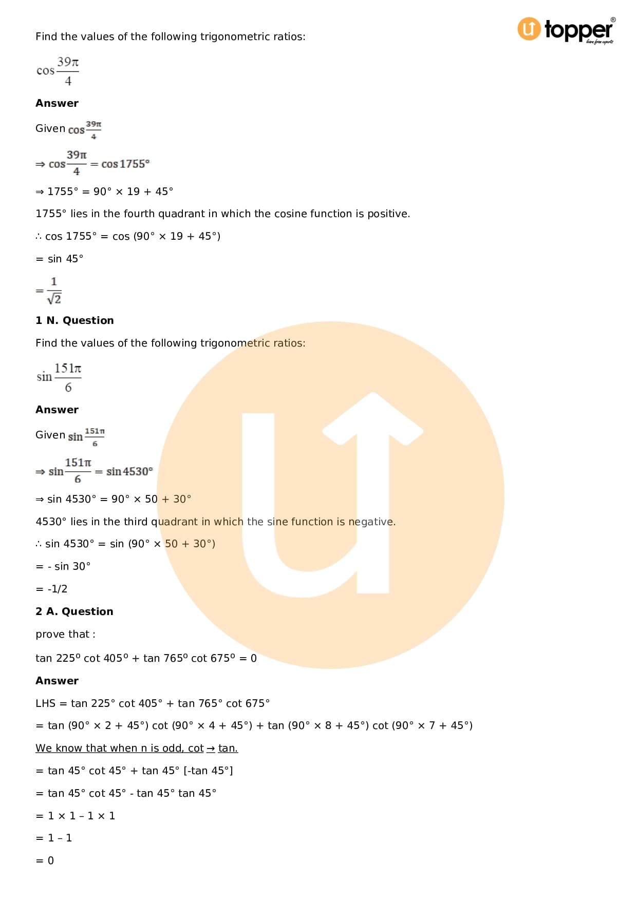 Download the latest version of RD Sharma Solutions for Class 11 Maths Chapter 5 Trigonometric Functions PDF at Utopper. It provides step by step Solution PDF. You can download RD Sharma Maths Solutions with a free PDF download option, which includes chapter wise solutions. All the questions in RD Sharma Solutions have been solved and explained by expert mathematics teachers as per the CBSE Board guidelines. By studying these Maths Solutions, you can easily get good marks in the CBSE board exams.