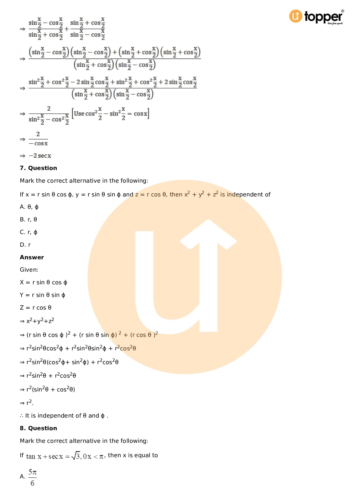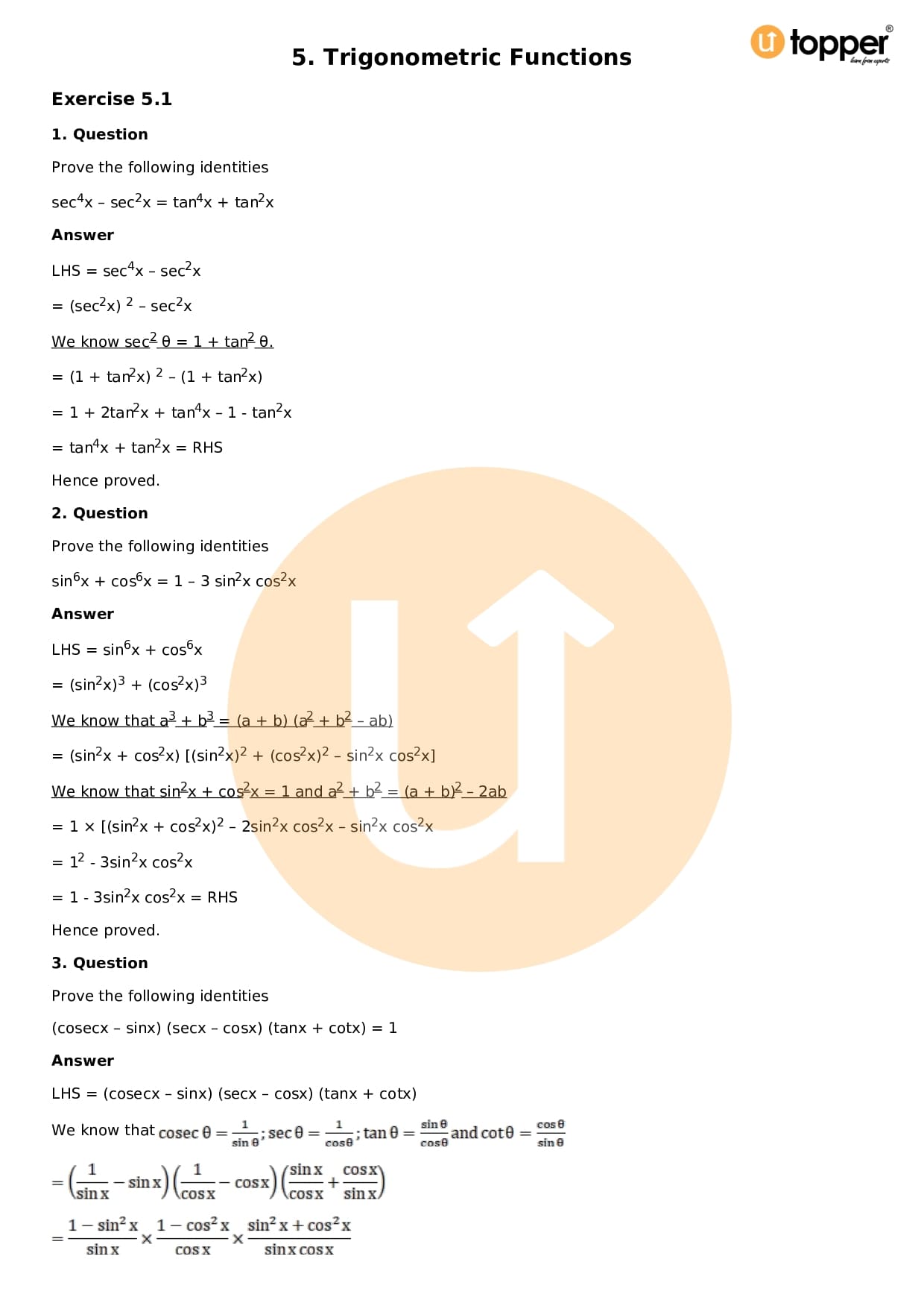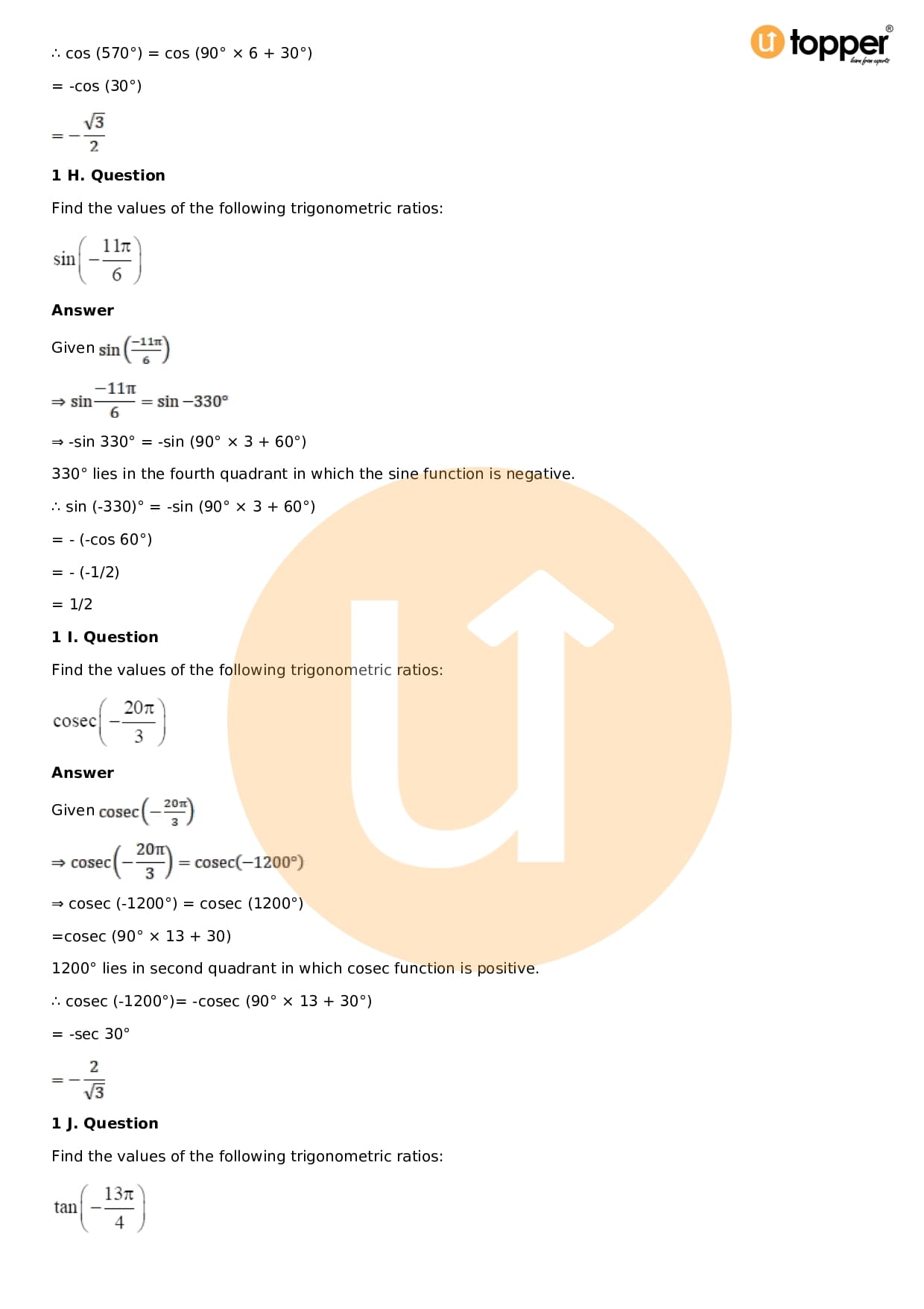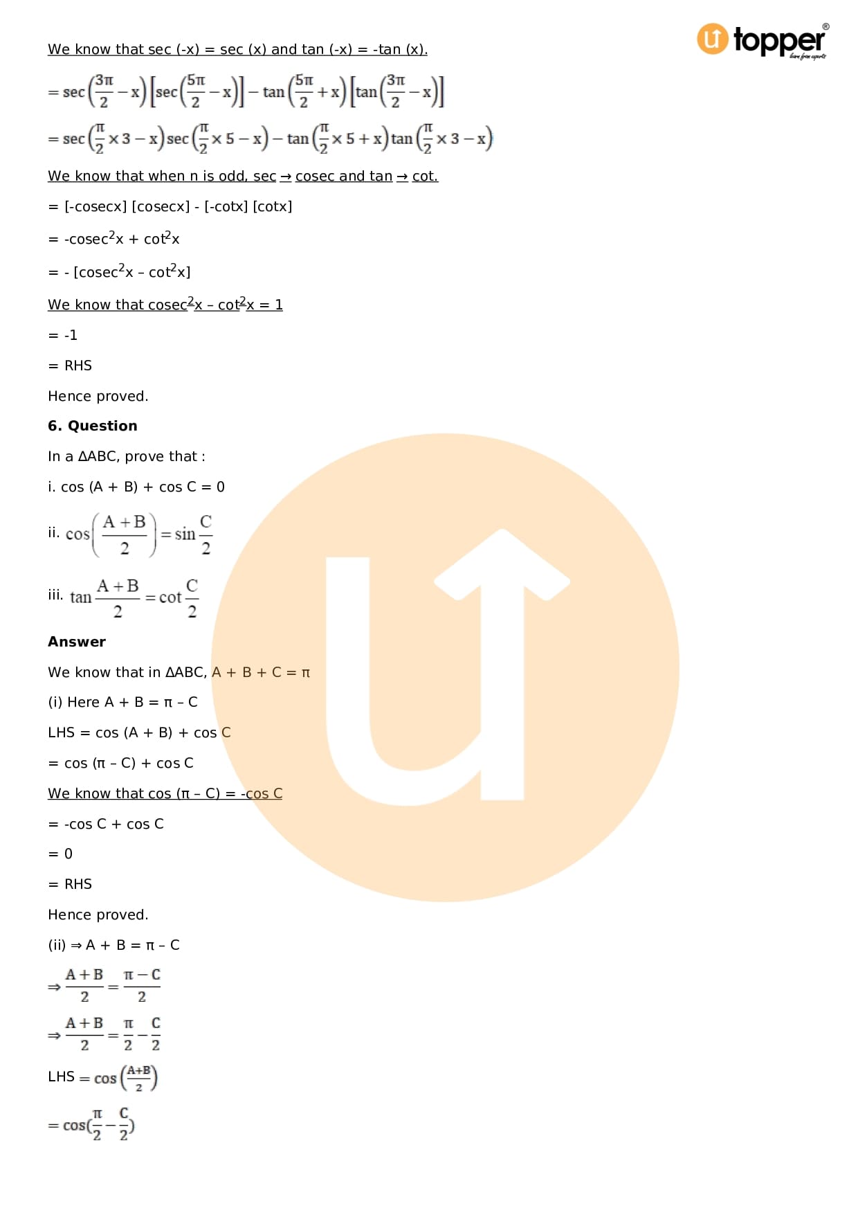 Download the latest version of RD Sharma Solutions for Class 11 Maths Chapter 5 Trigonometric Functions PDF at Utopper. It provides step by step Solution PDF. You can download RD Sharma Maths Solutions with a free PDF download option, which includes chapter wise solutions. All the questions in RD Sharma Solutions have been solved and explained by expert mathematics teachers as per the CBSE Board guidelines. By studying these Maths Solutions, you can easily get good marks in the CBSE board exams.