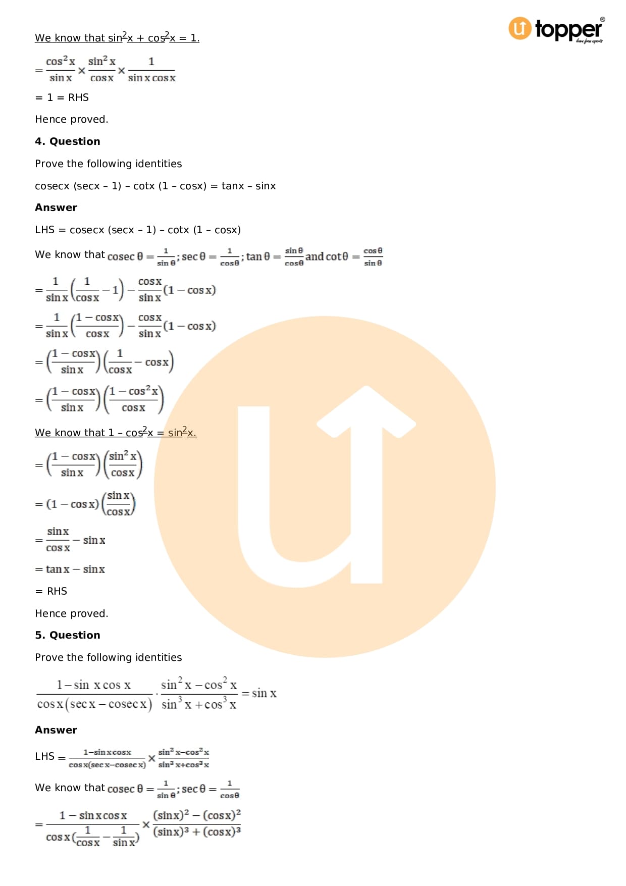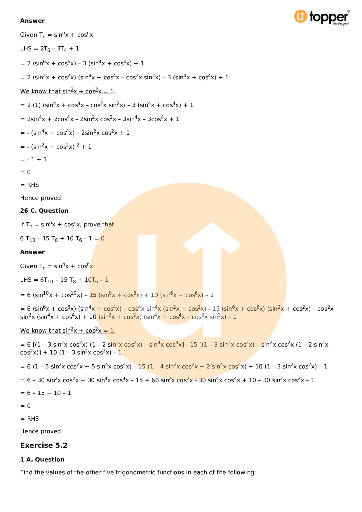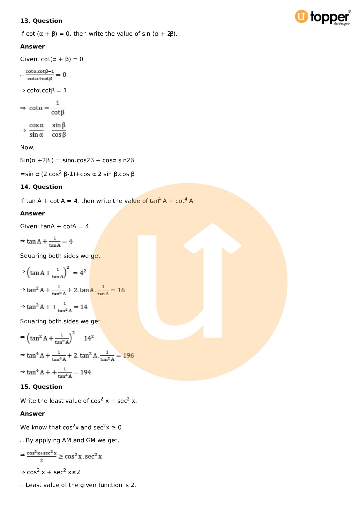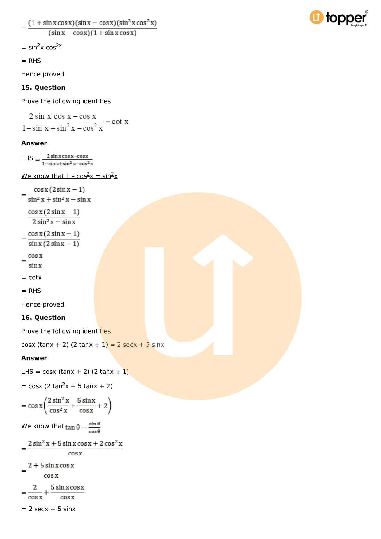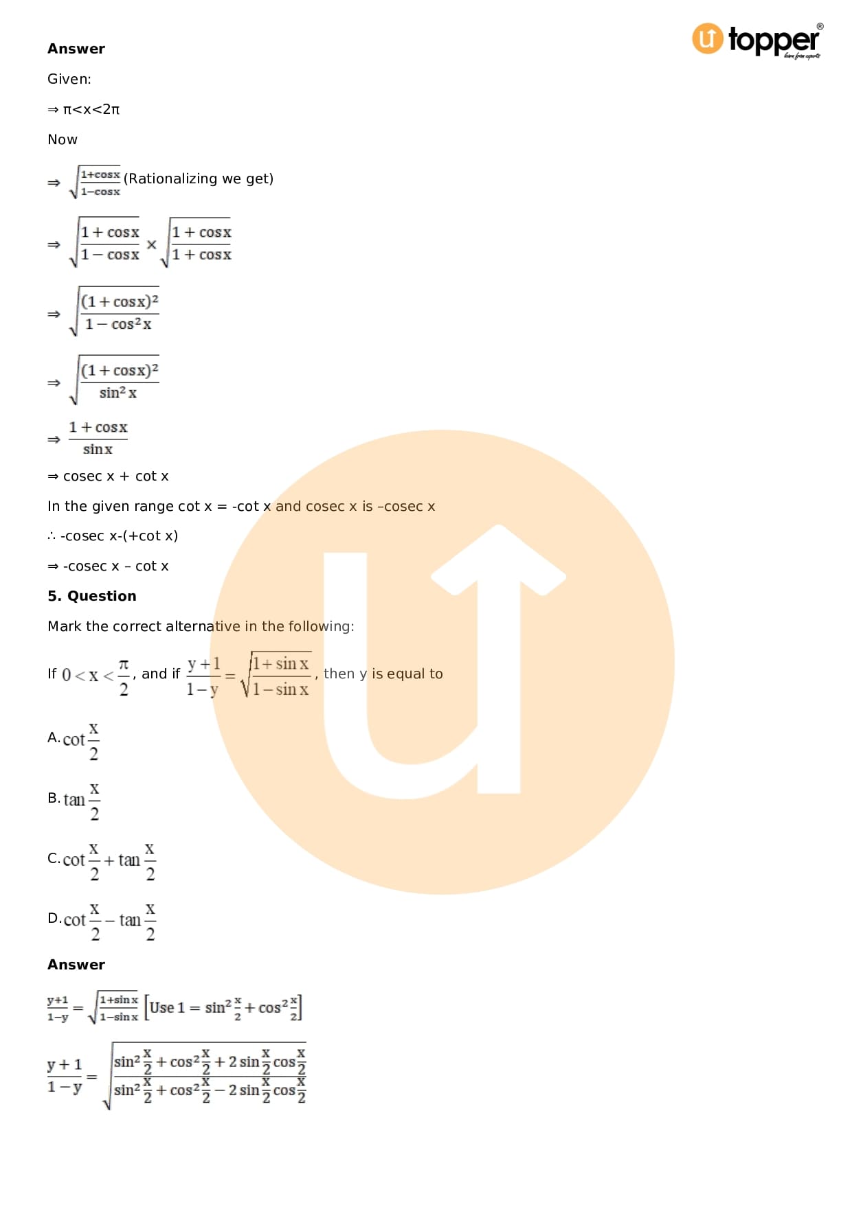 Download the latest version of RD Sharma Solutions for Class 11 Maths Chapter 5 Trigonometric Functions PDF at Utopper. It provides step by step Solution PDF. You can download RD Sharma Maths Solutions with a free PDF download option, which includes chapter wise solutions. All the questions in RD Sharma Solutions have been solved and explained by expert mathematics teachers as per the CBSE Board guidelines. By studying these Maths Solutions, you can easily get good marks in the CBSE board exams.
