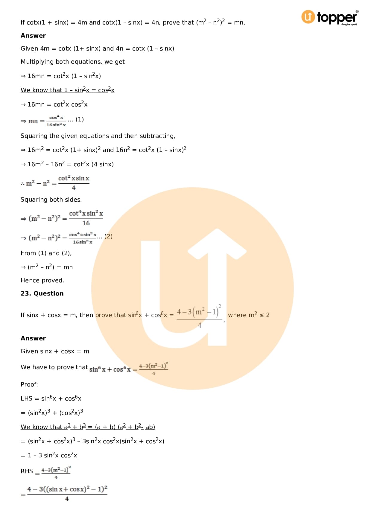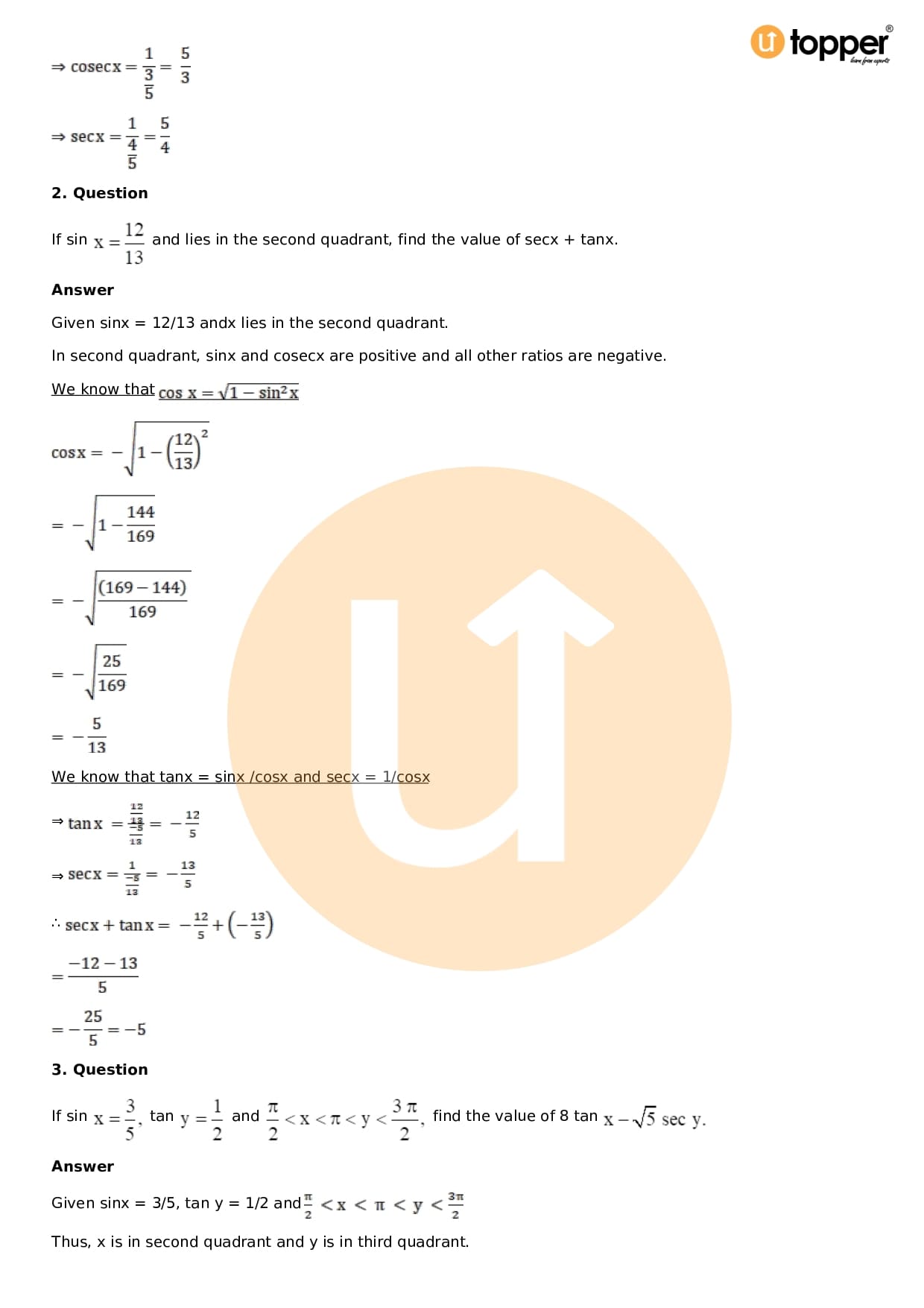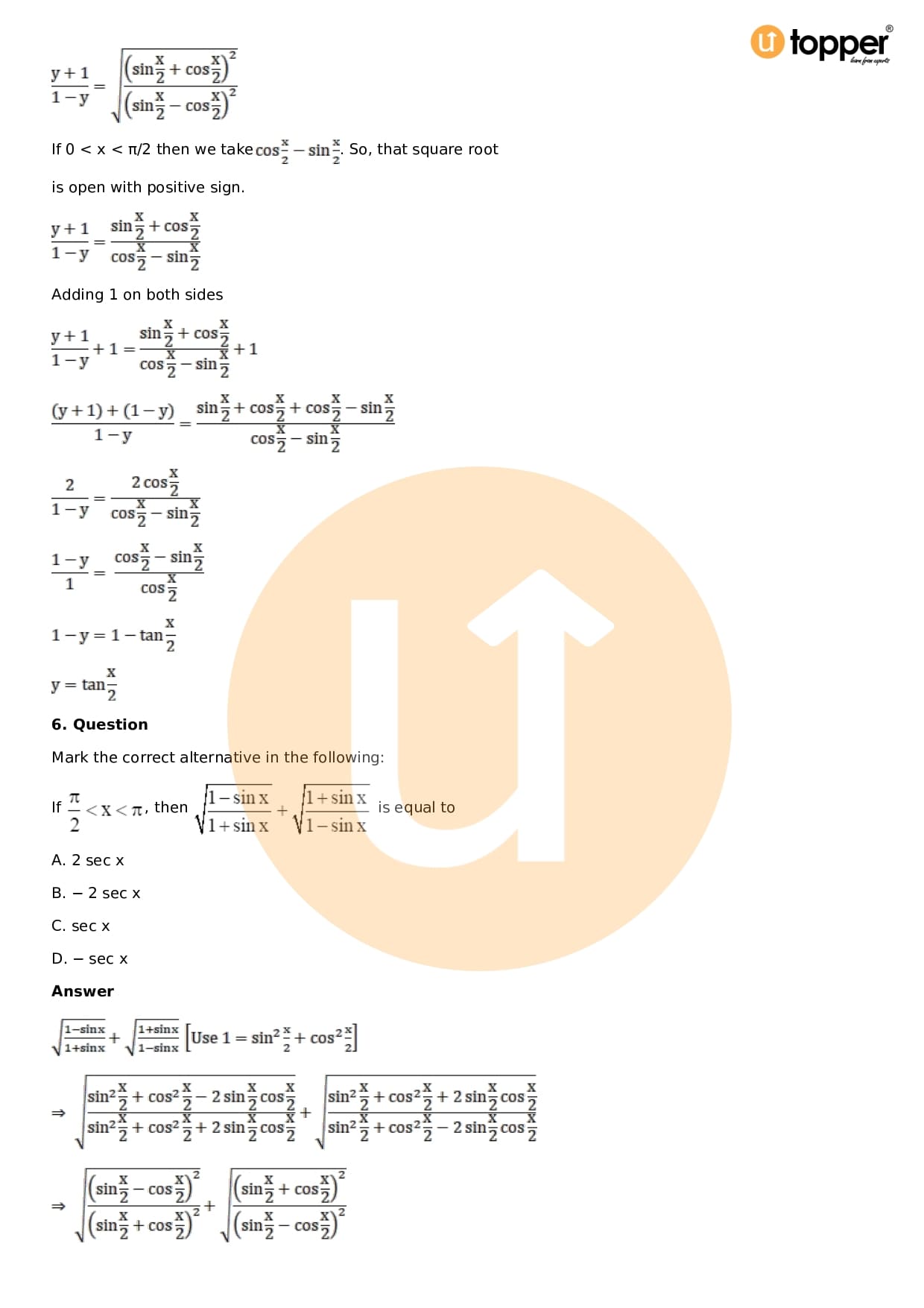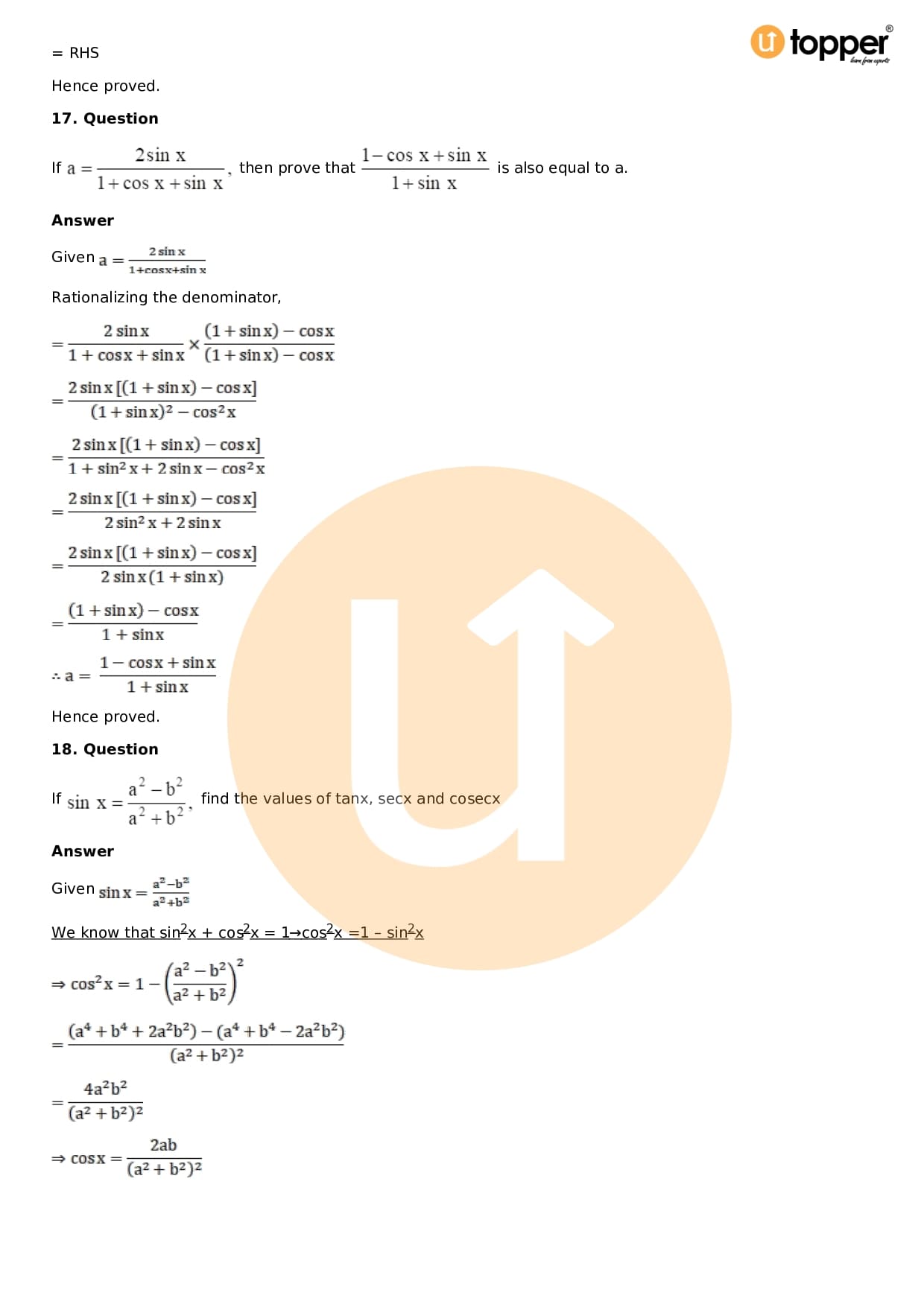 Download the latest version of RD Sharma Solutions for Class 11 Maths Chapter 5 Trigonometric Functions PDF at Utopper. It provides step by step Solution PDF. You can download RD Sharma Maths Solutions with a free PDF download option, which includes chapter wise solutions. All the questions in RD Sharma Solutions have been solved and explained by expert mathematics teachers as per the CBSE Board guidelines. By studying these Maths Solutions, you can easily get good marks in the CBSE board exams.