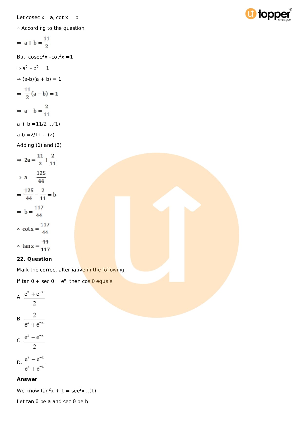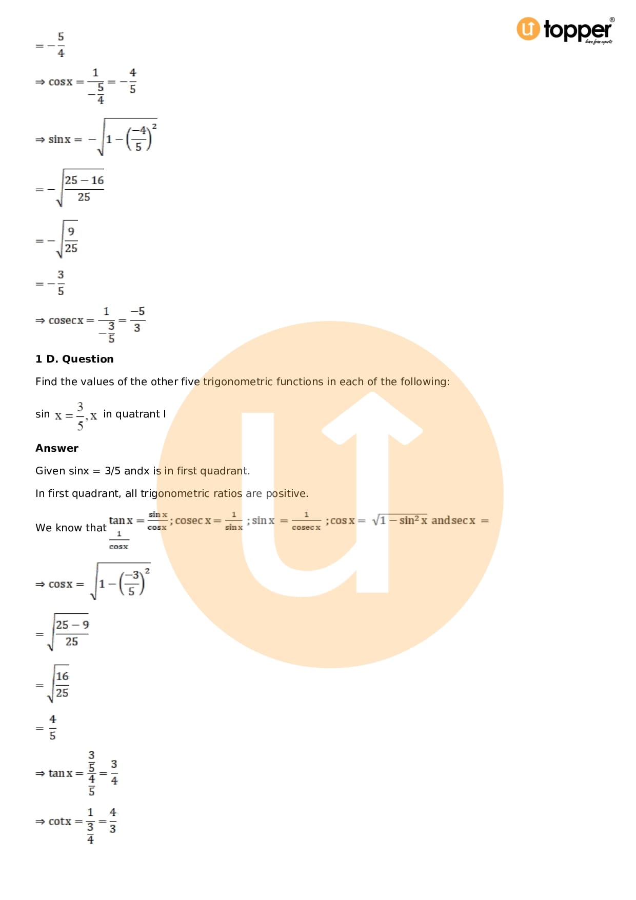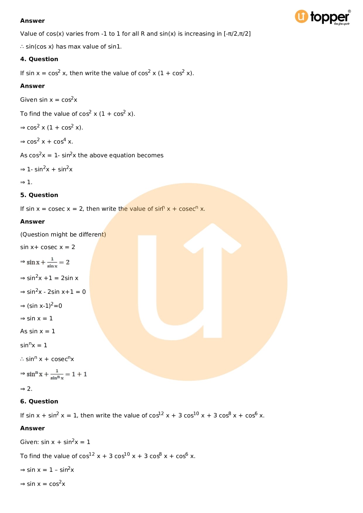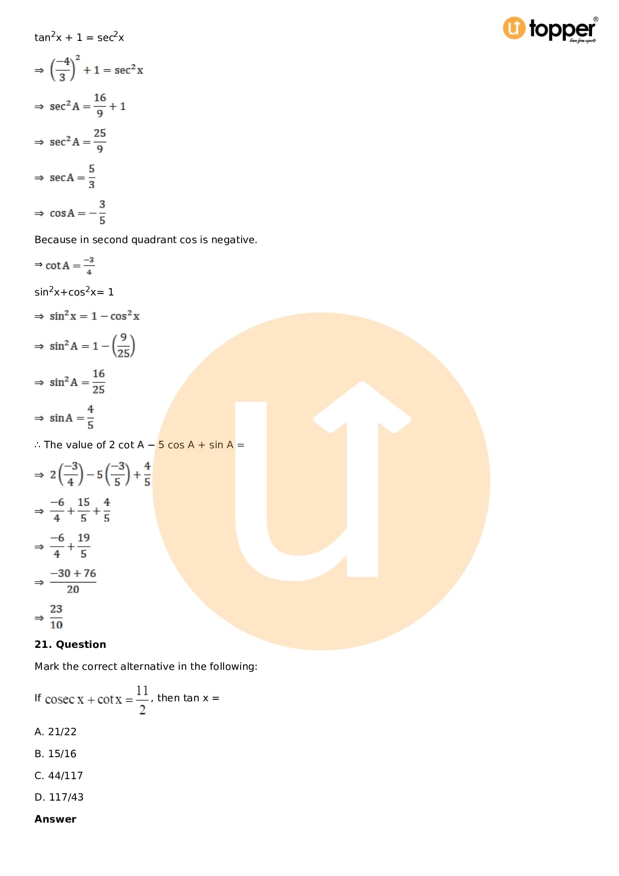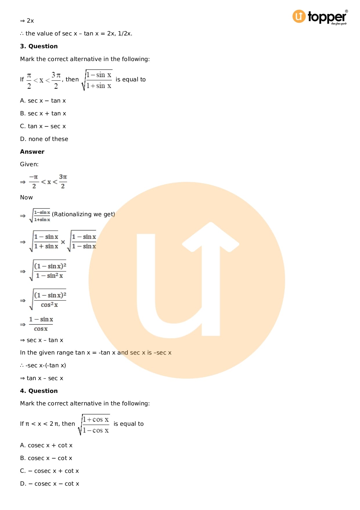 Download the latest version of RD Sharma Solutions for Class 11 Maths Chapter 5 Trigonometric Functions PDF at Utopper. It provides step by step Solution PDF. You can download RD Sharma Maths Solutions with a free PDF download option, which includes chapter wise solutions. All the questions in RD Sharma Solutions have been solved and explained by expert mathematics teachers as per the CBSE Board guidelines. By studying these Maths Solutions, you can easily get good marks in the CBSE board exams.