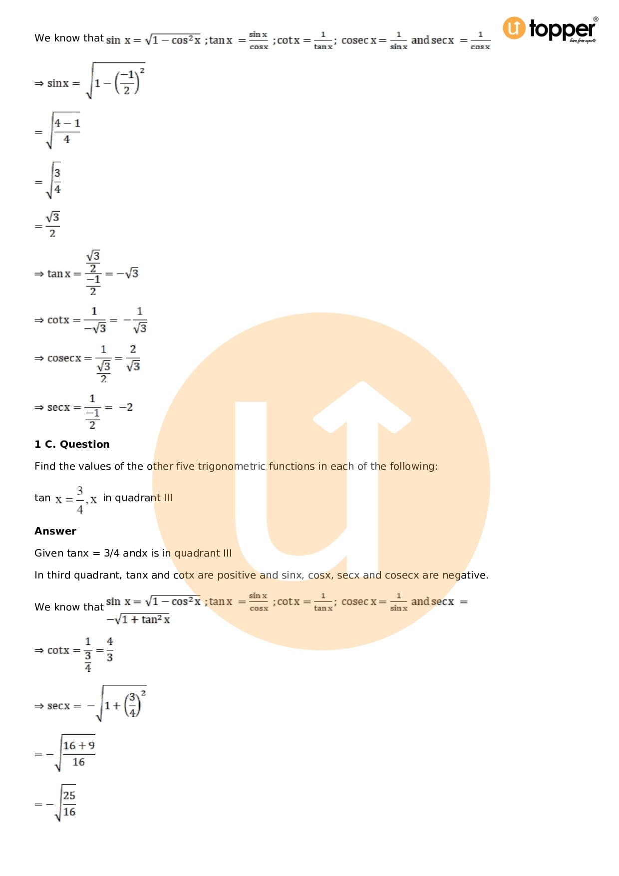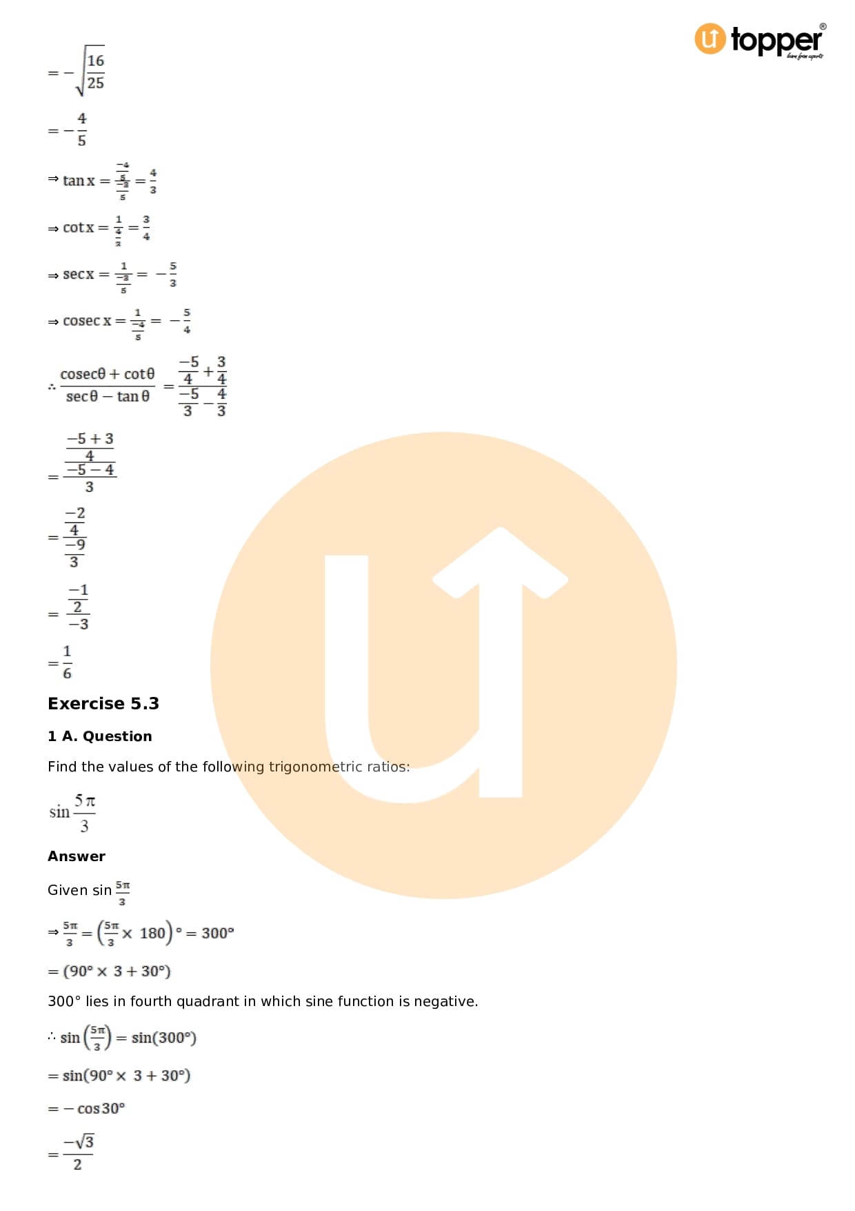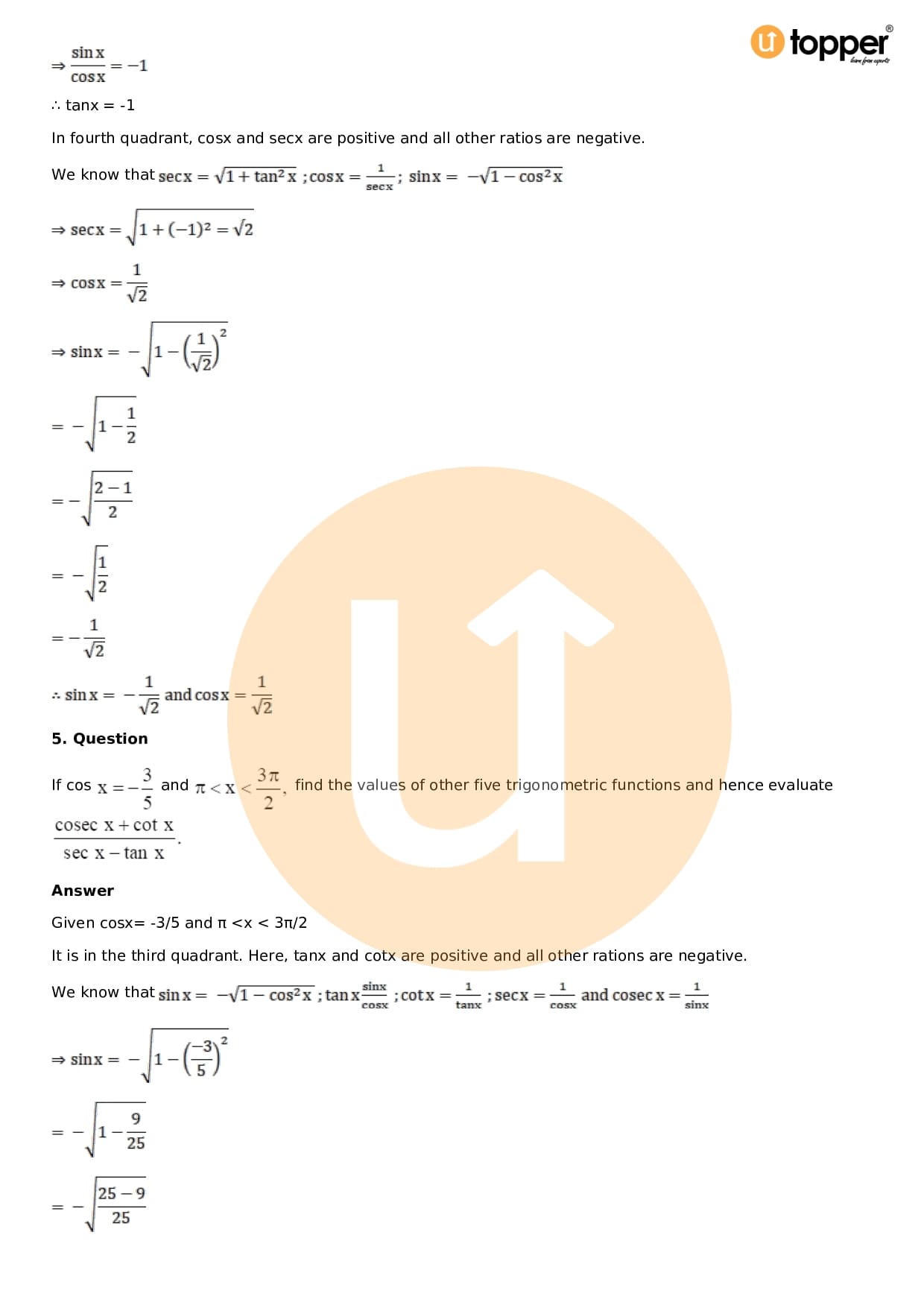 - Chapter 5 – Trigonometric Functions