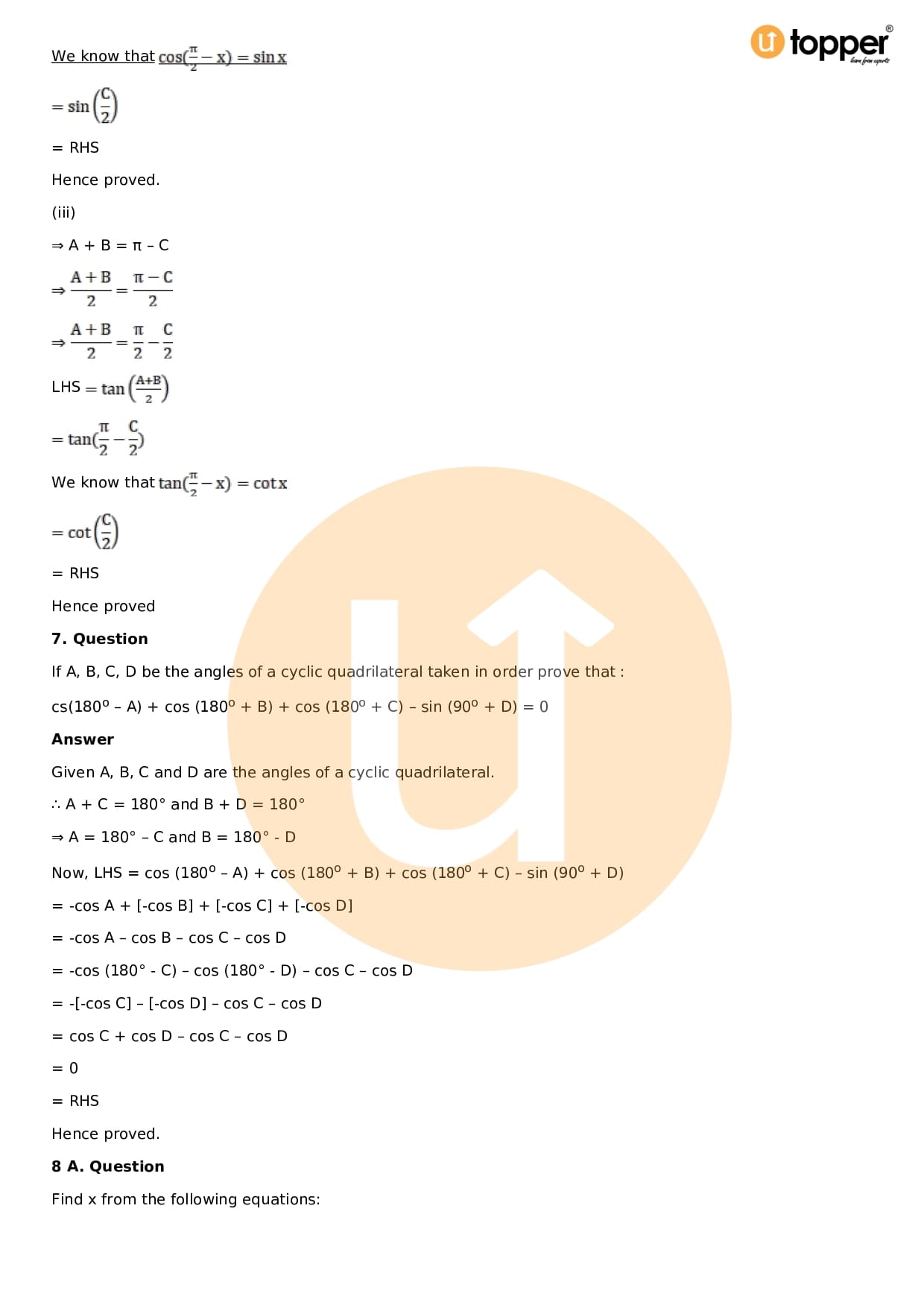 - Chapter 7 – Trigonometric Ratios of Compound Angles