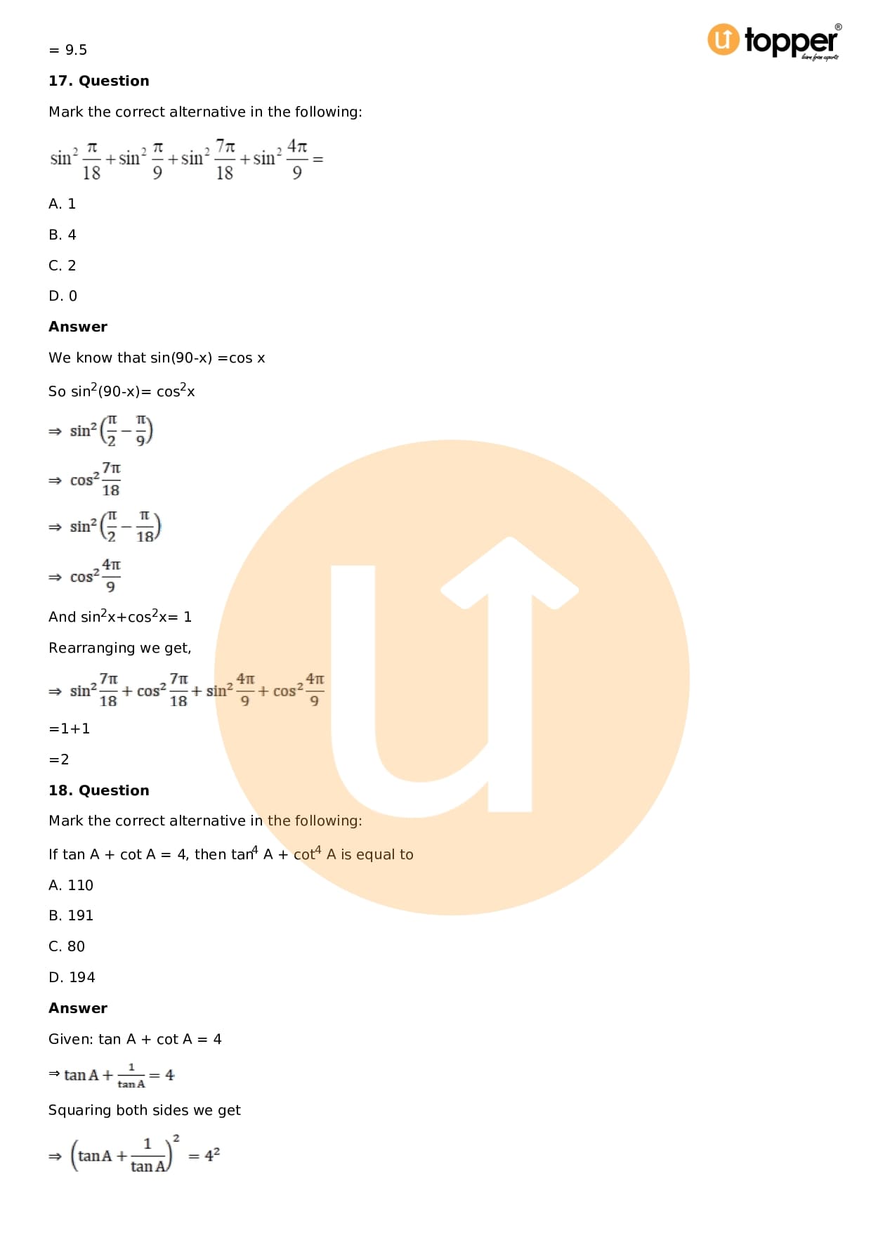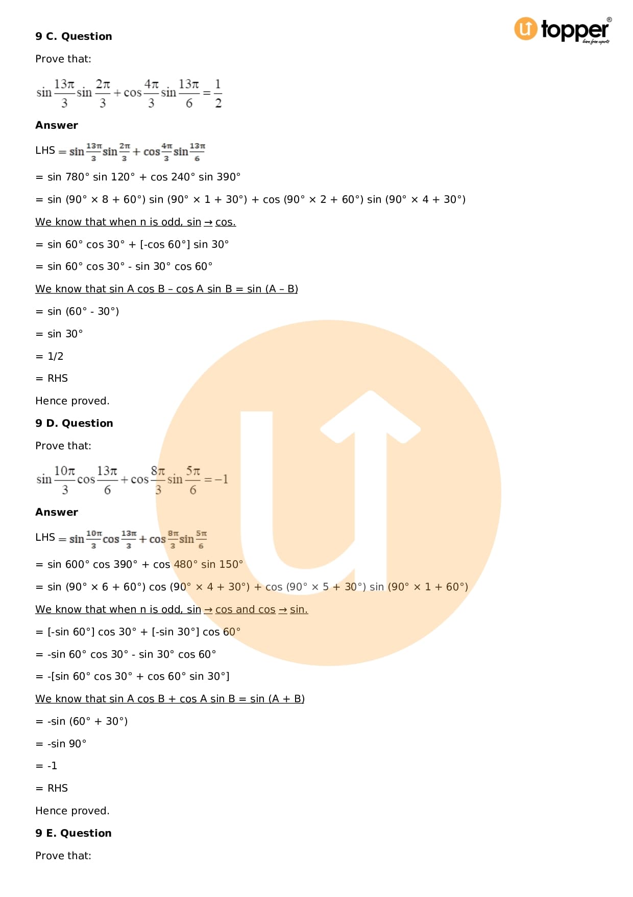 - Chapter 9 – Trigonometric Ratios of Multiple and Submultiple Angles