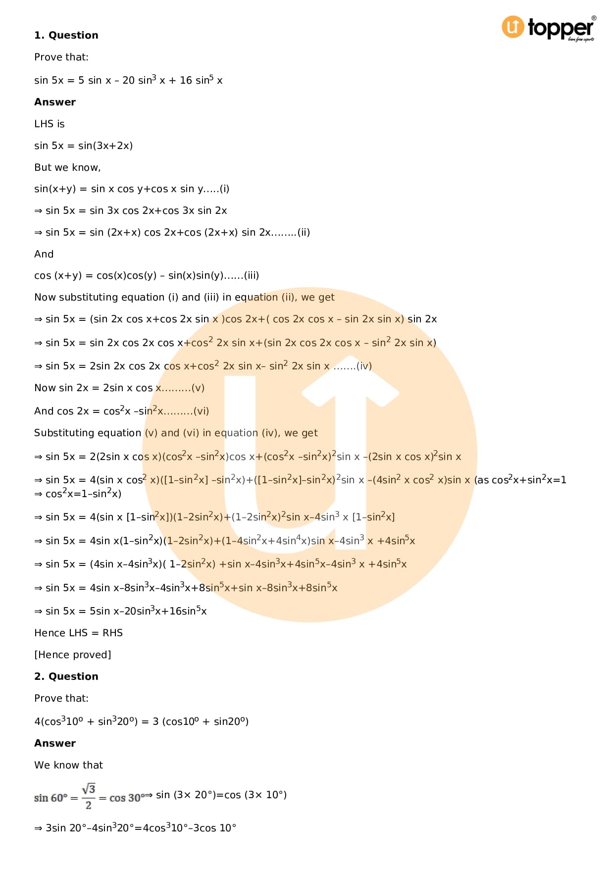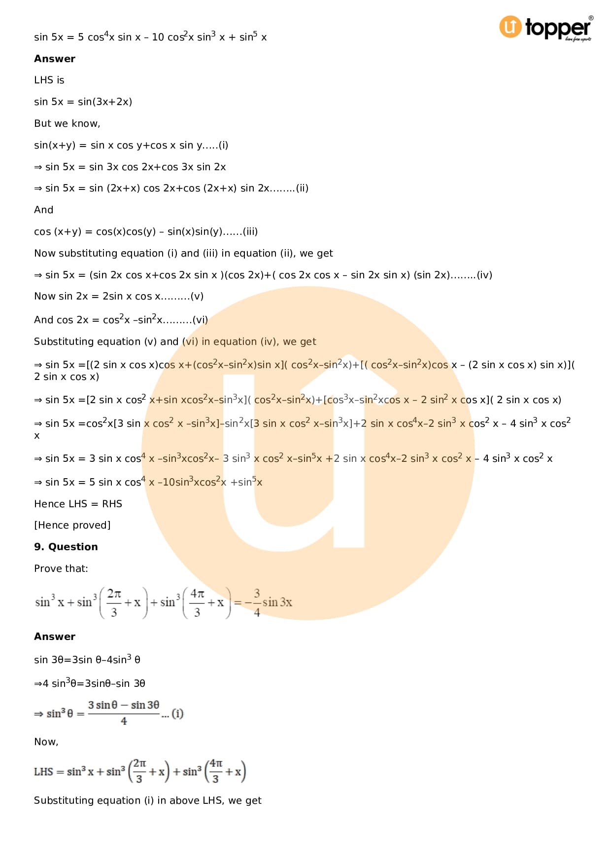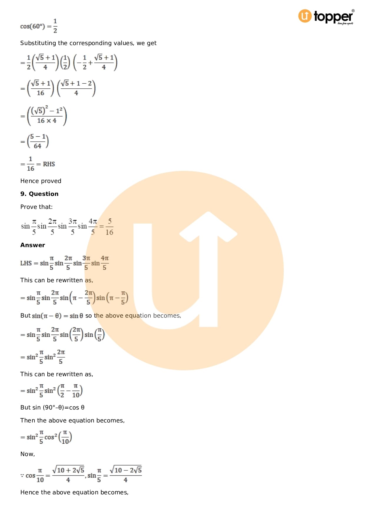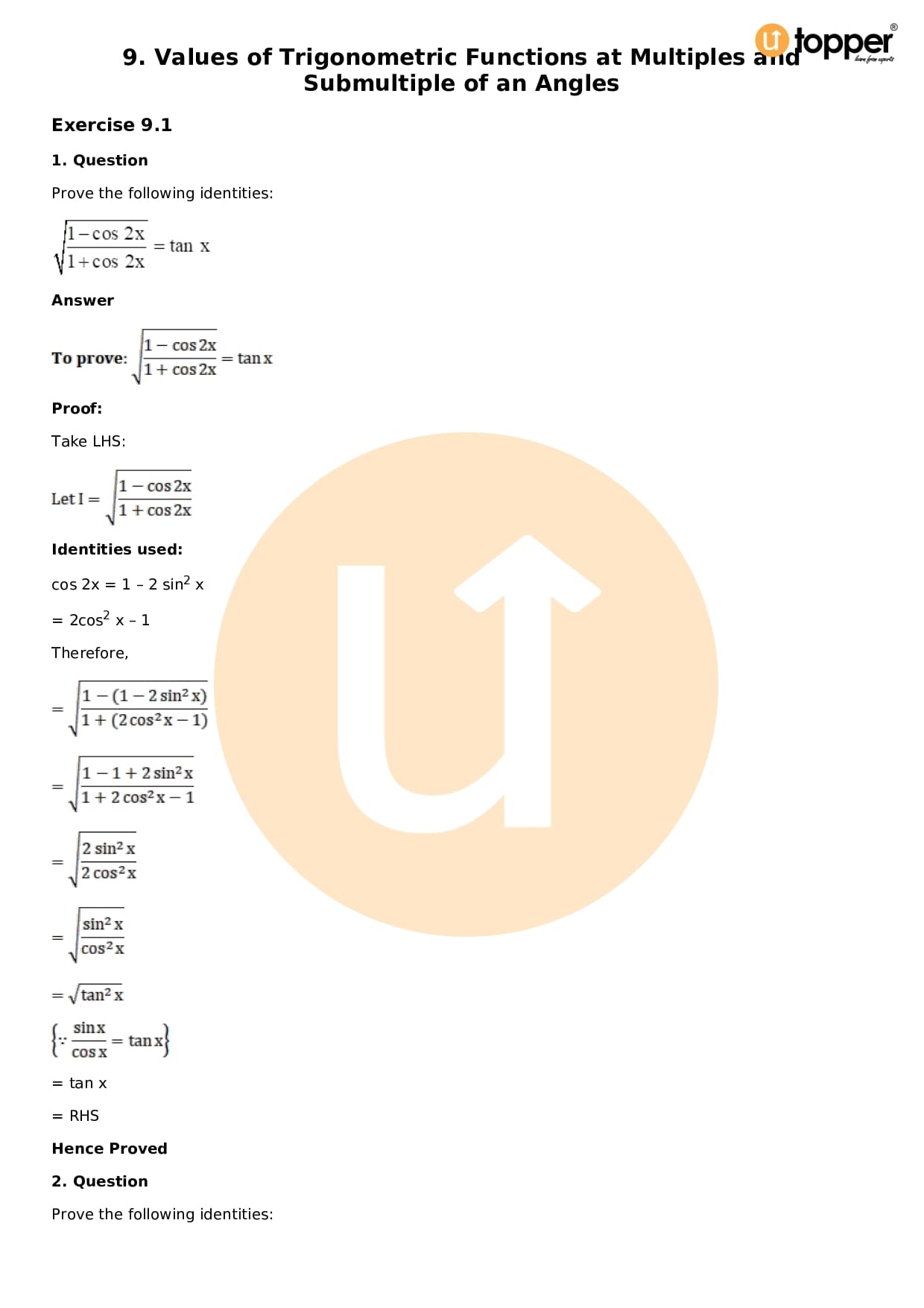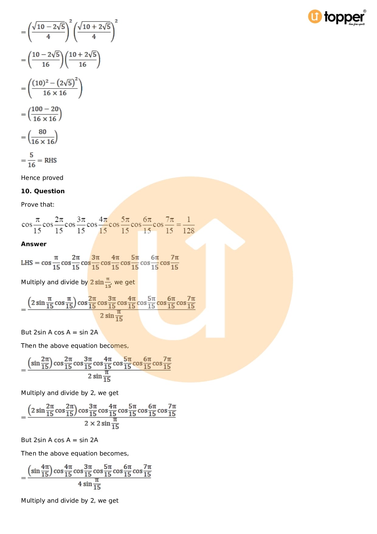 - Chapter 9 – Trigonometric Ratios of Multiple and Submultiple Angles