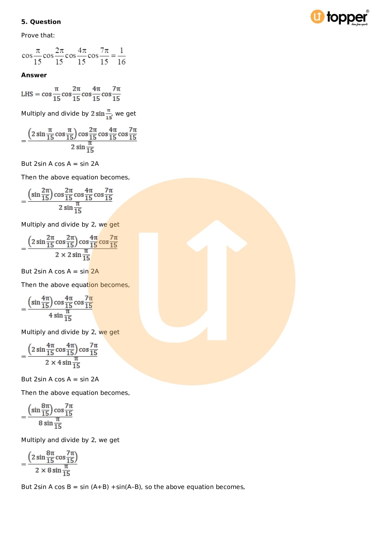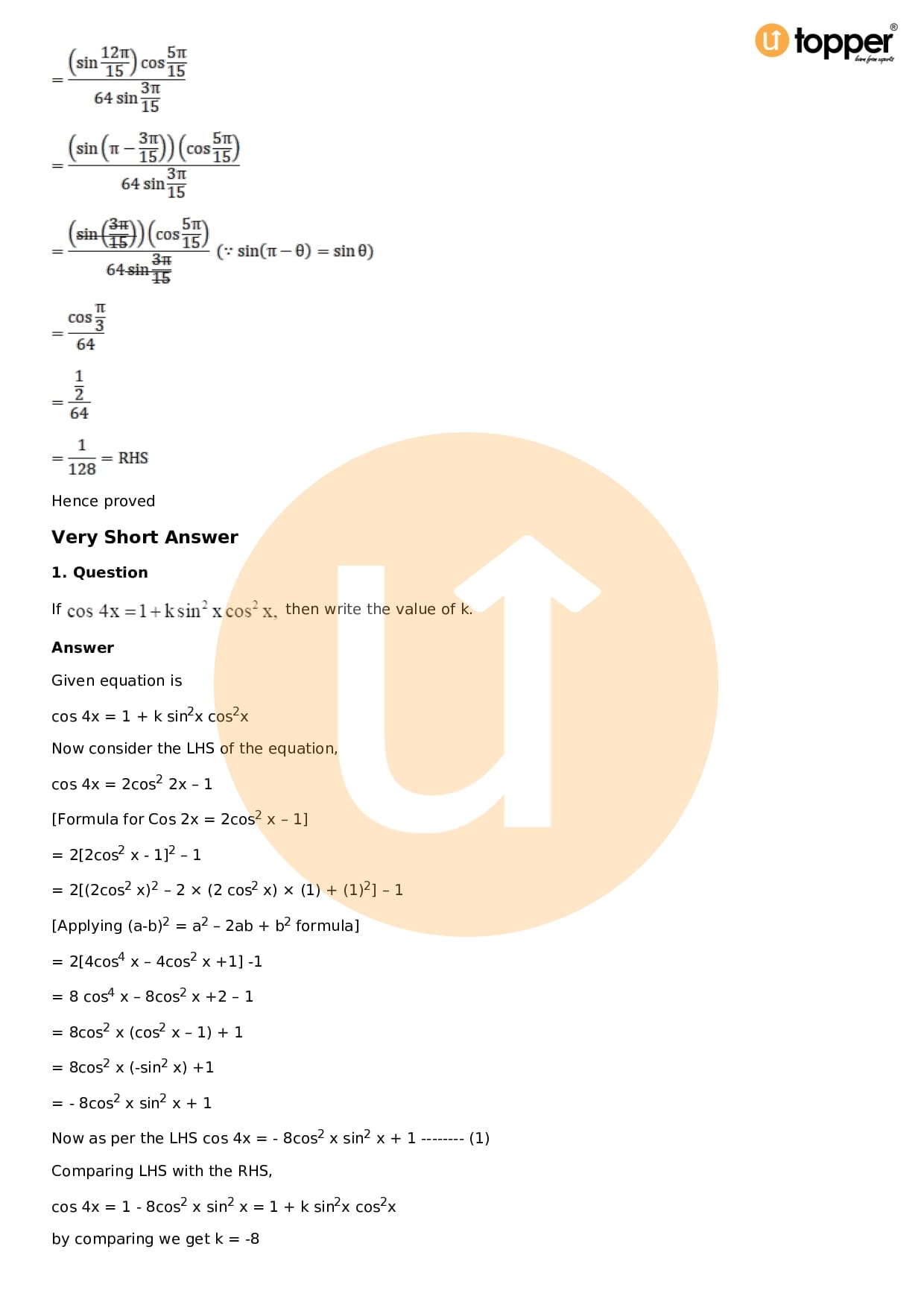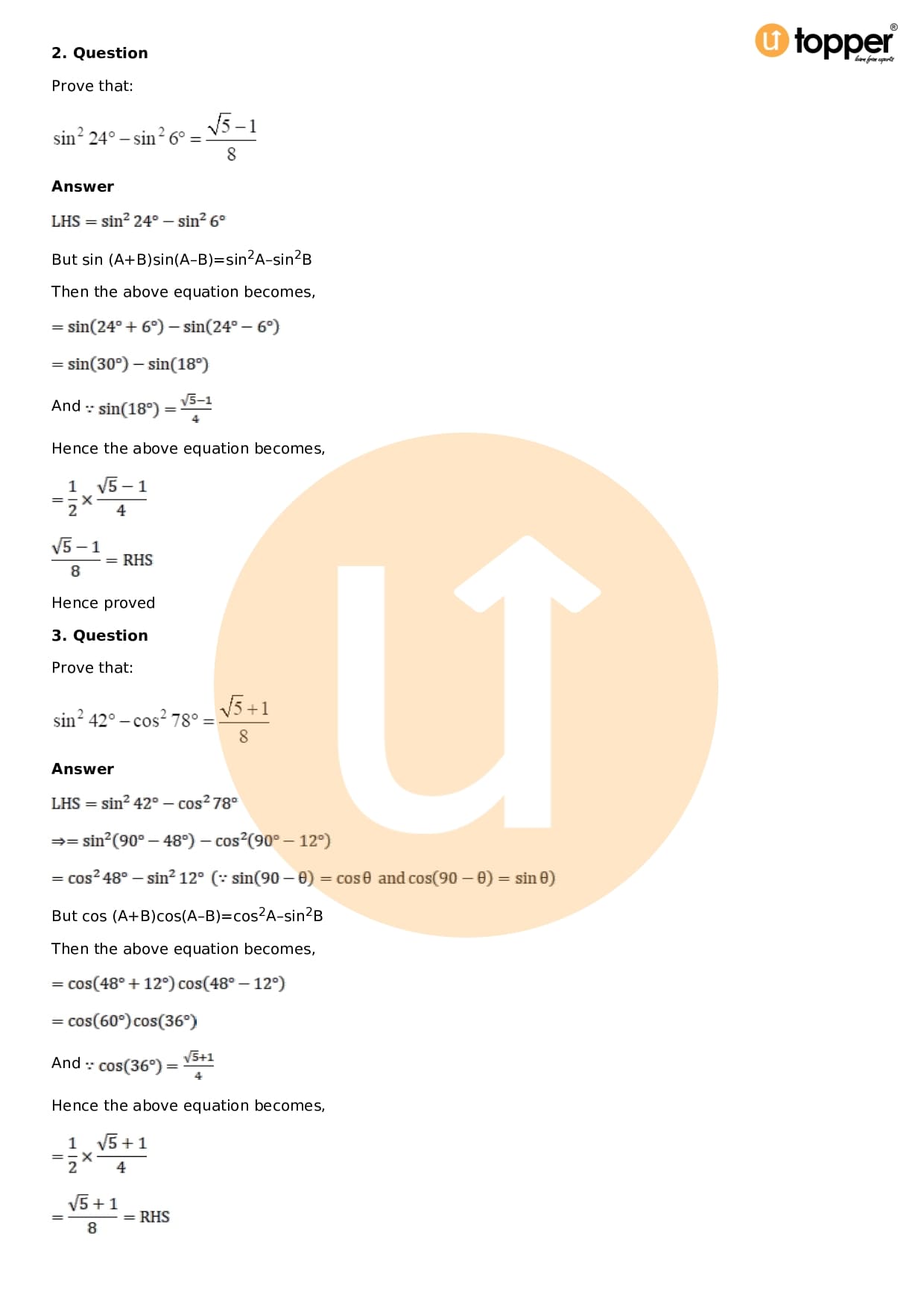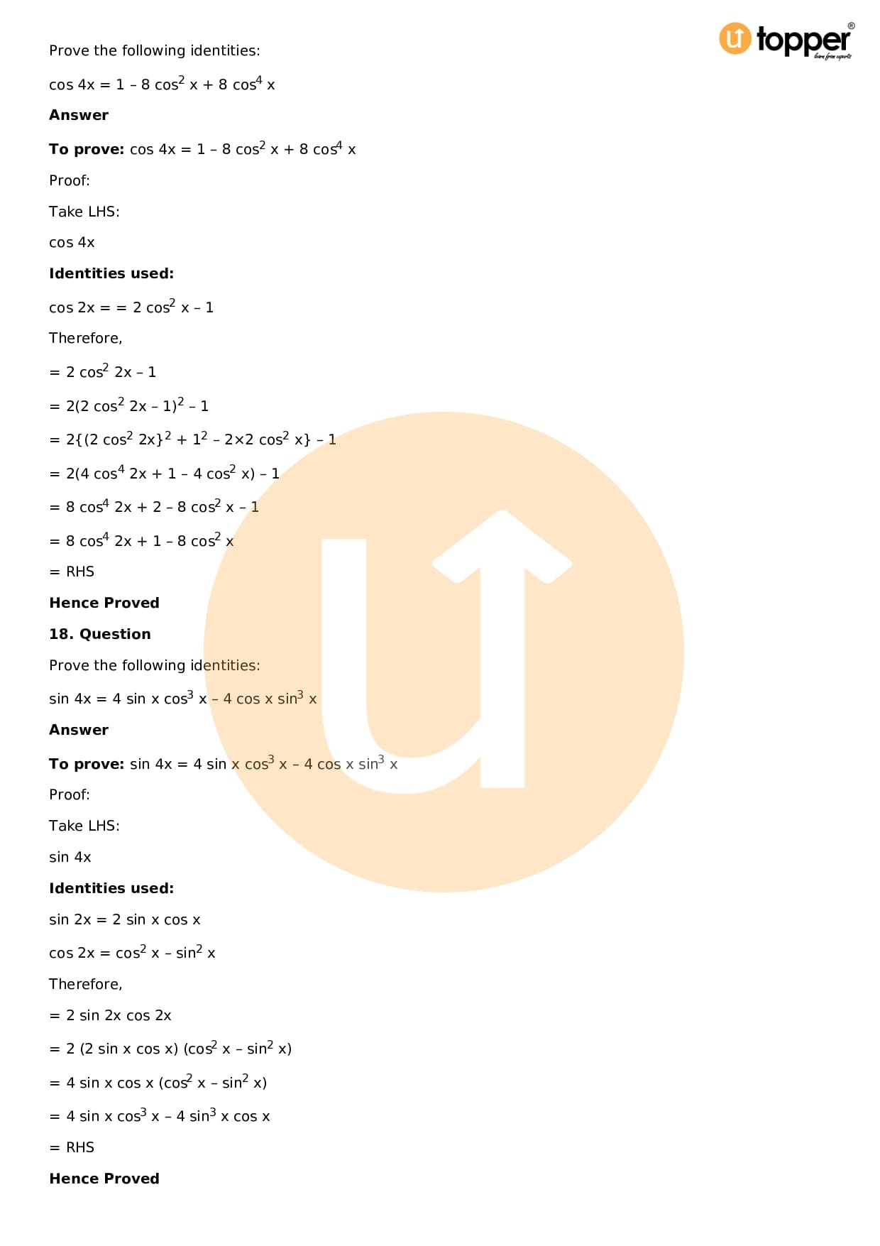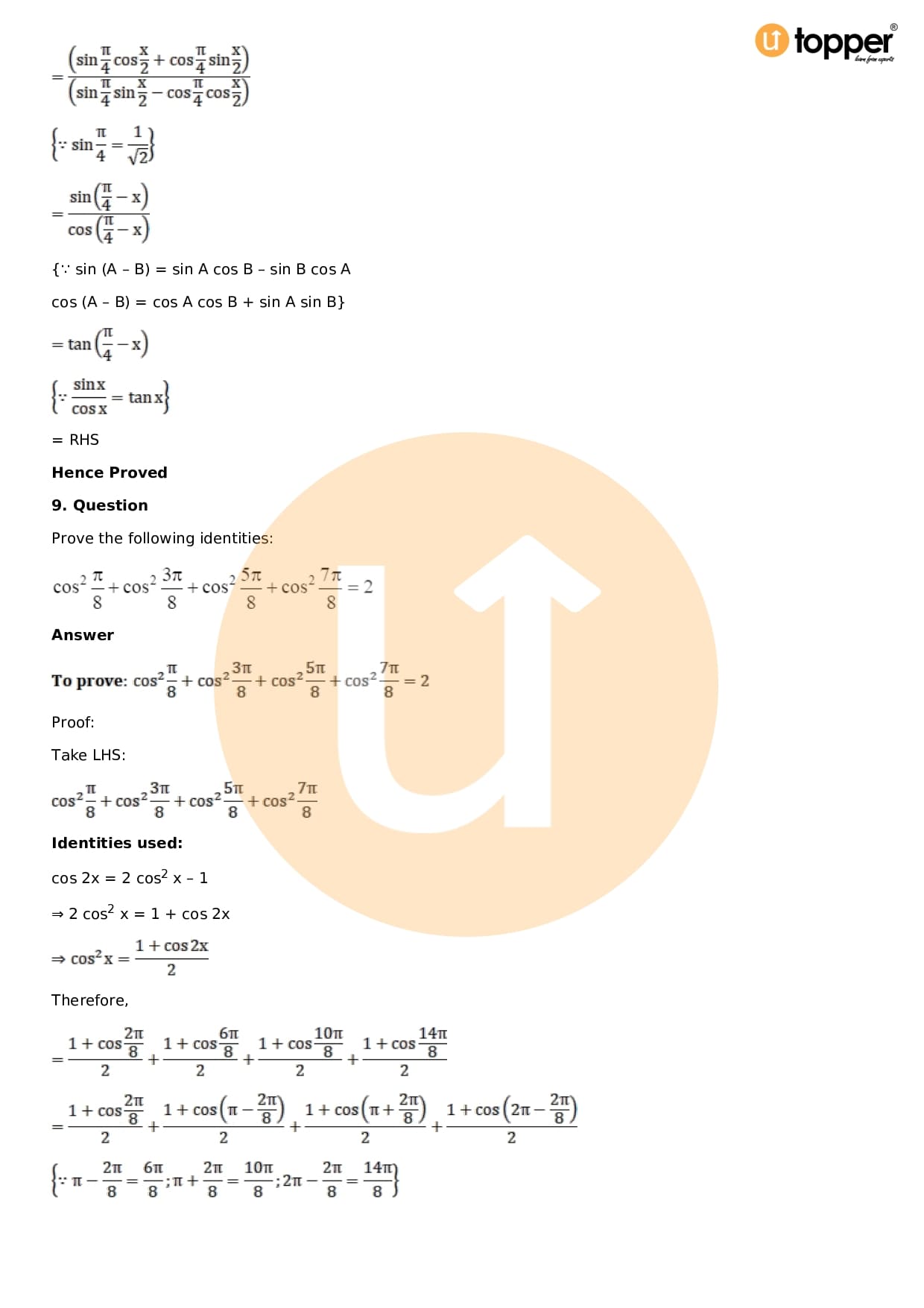 - Chapter 9 – Trigonometric Ratios of Multiple and Submultiple Angles