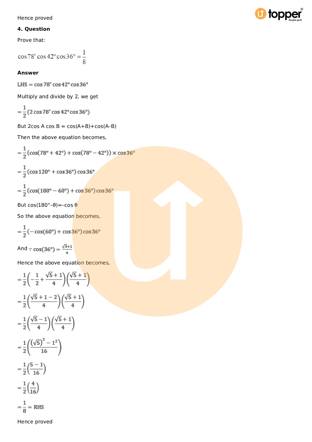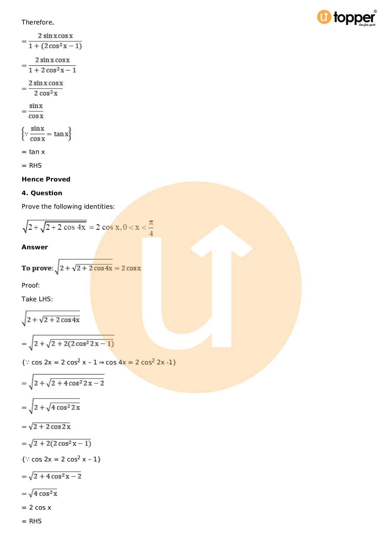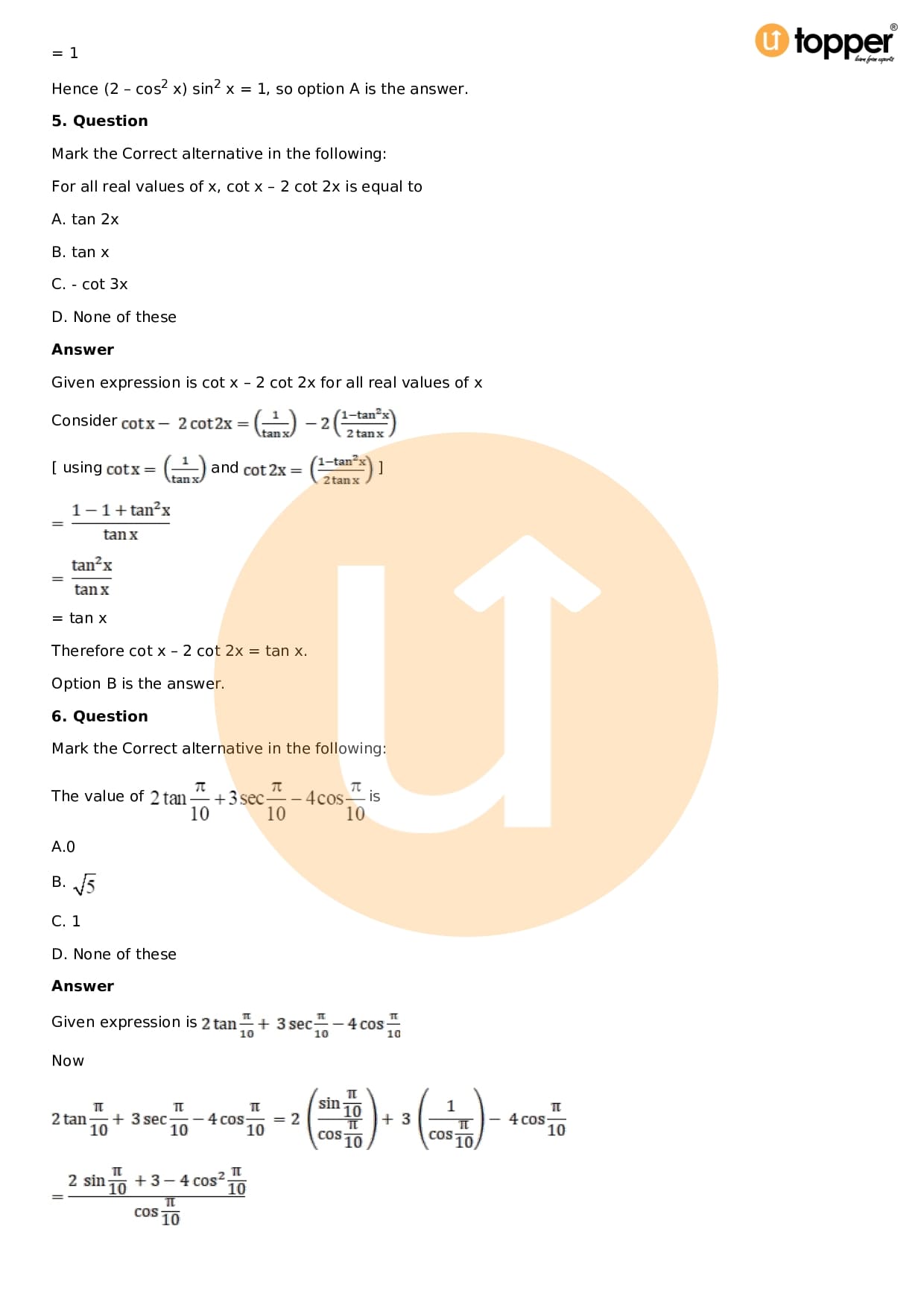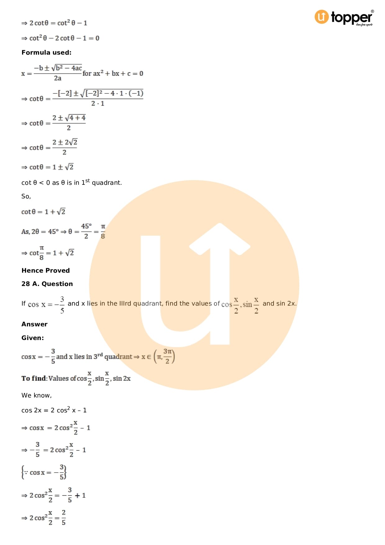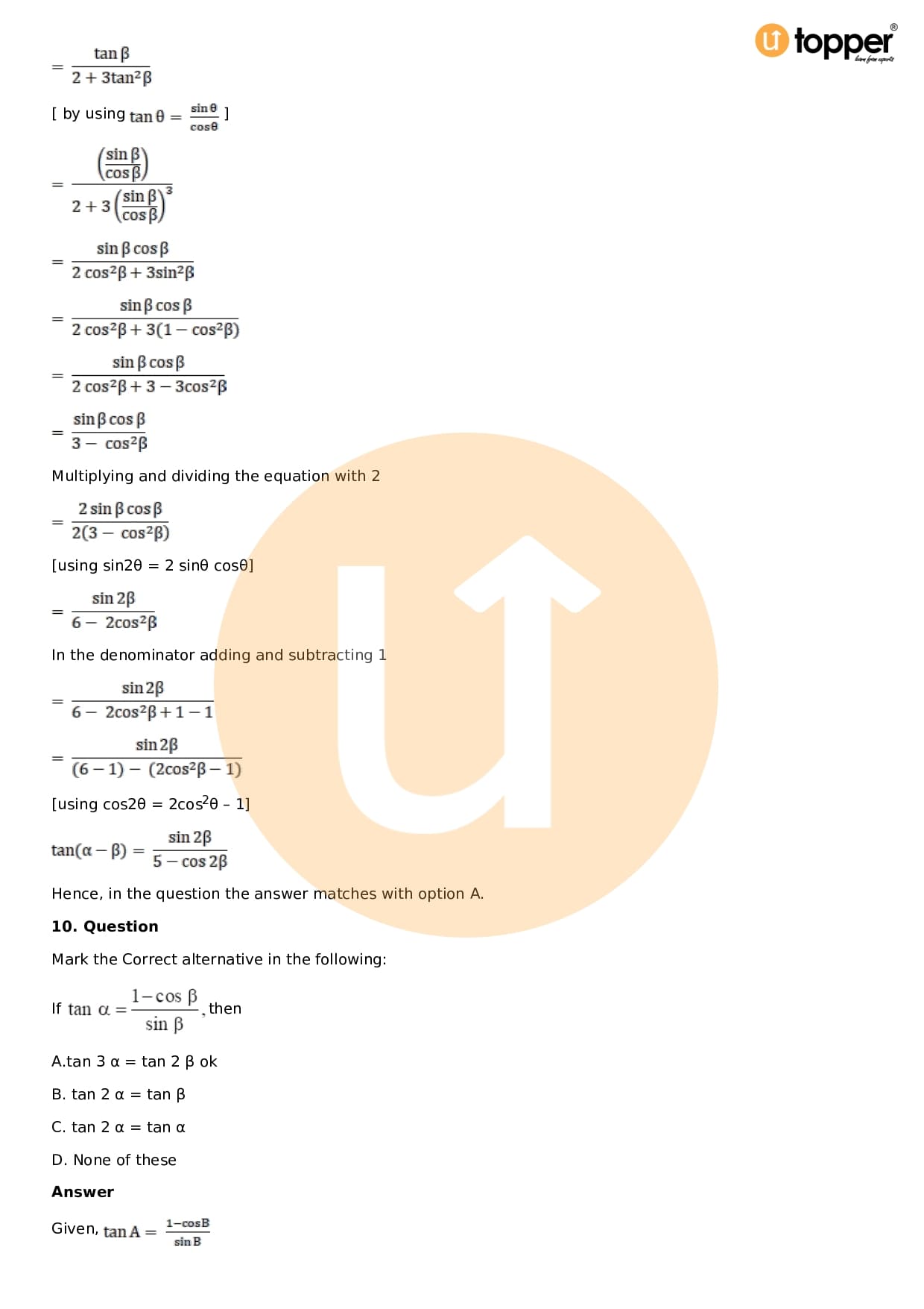 - Chapter 9 – Trigonometric Ratios of Multiple and Submultiple Angles