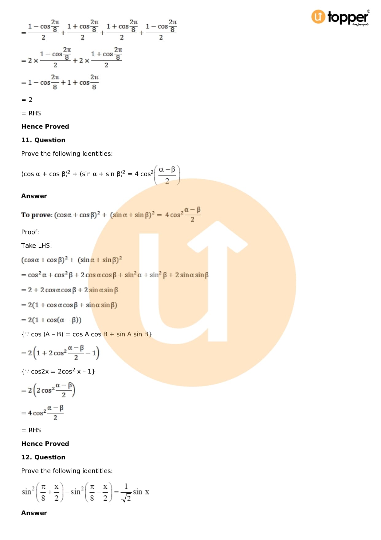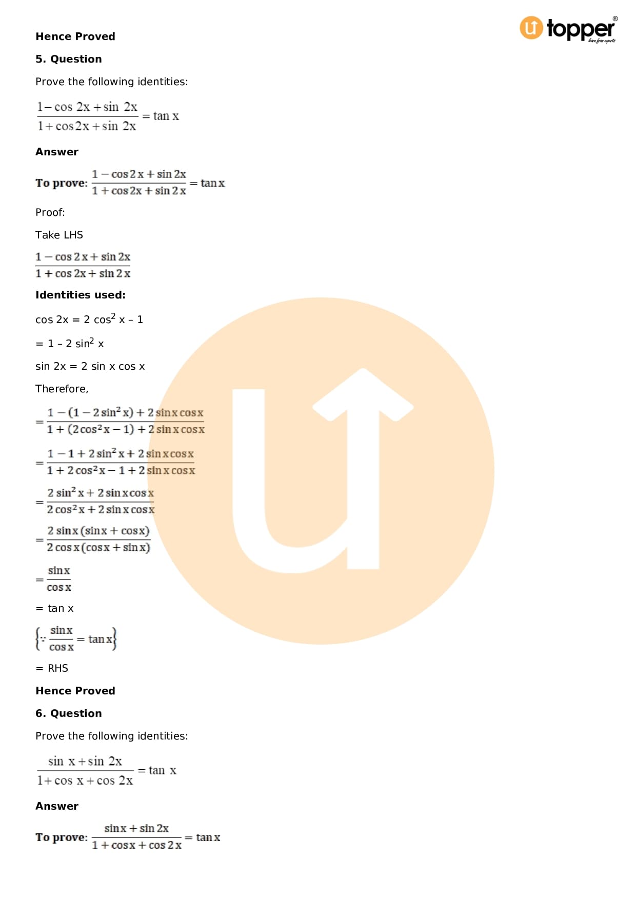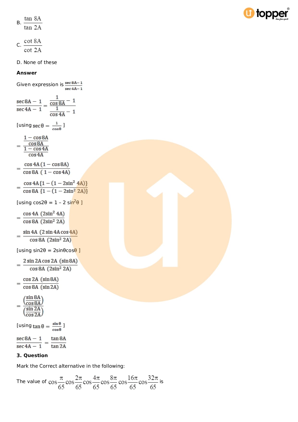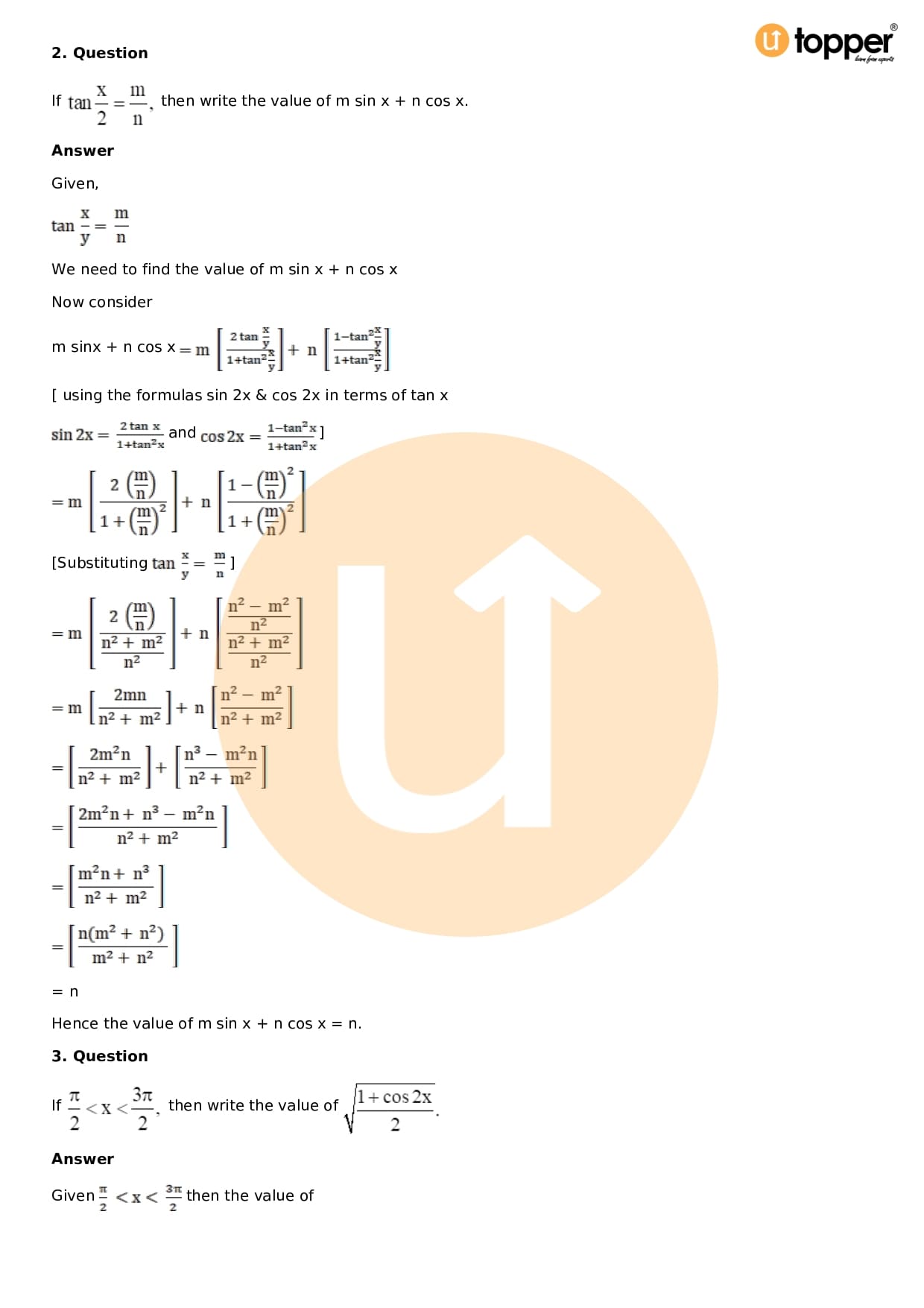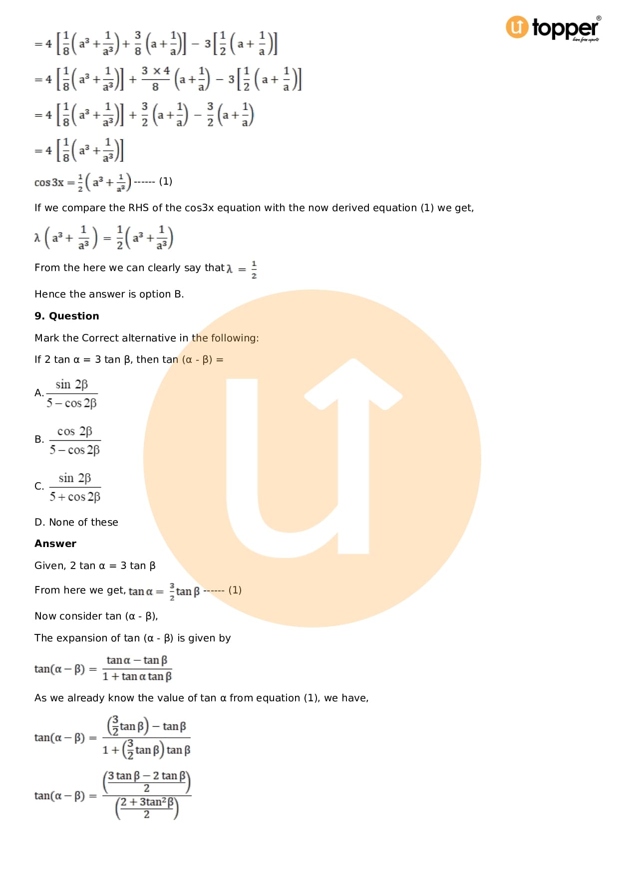 - Chapter 9 – Trigonometric Ratios of Multiple and Submultiple Angles