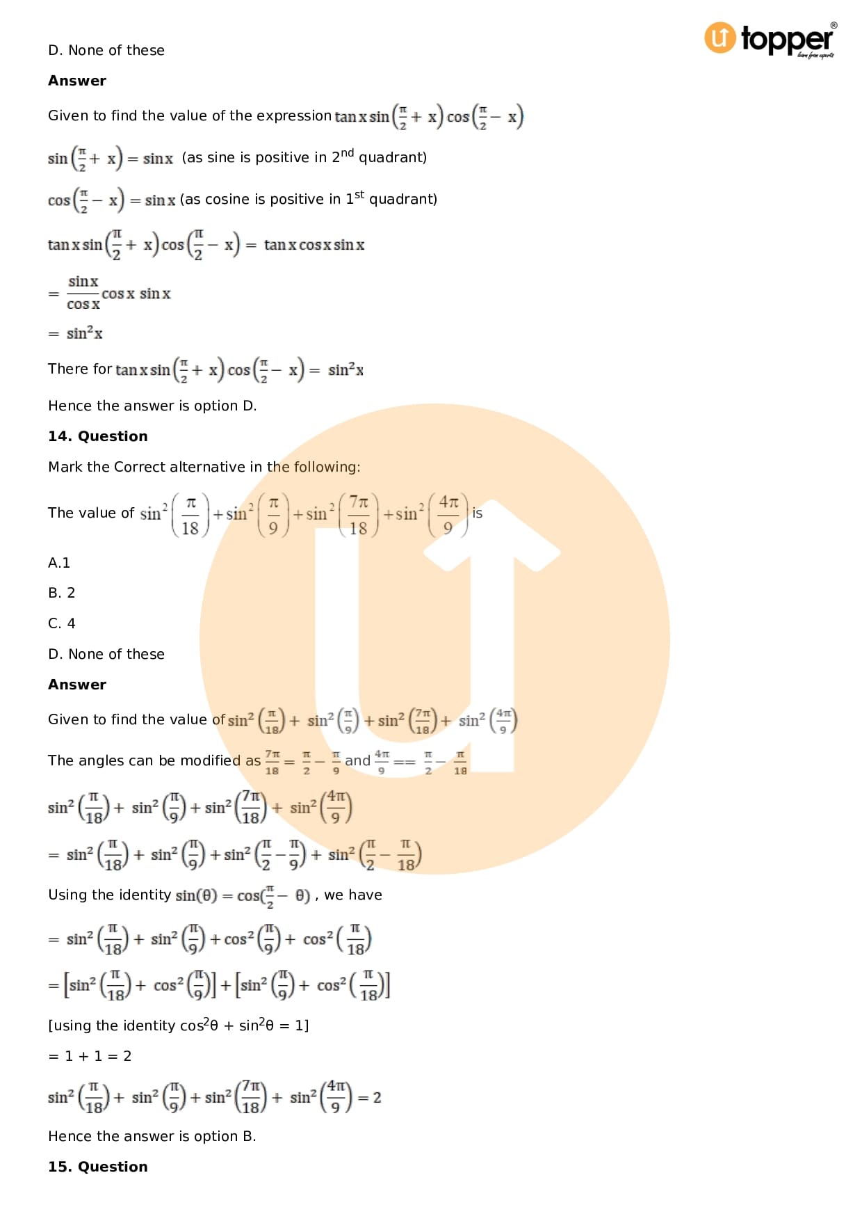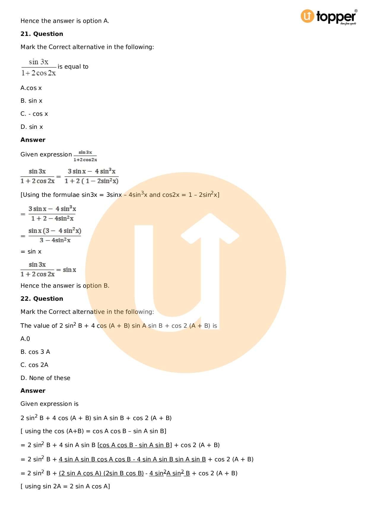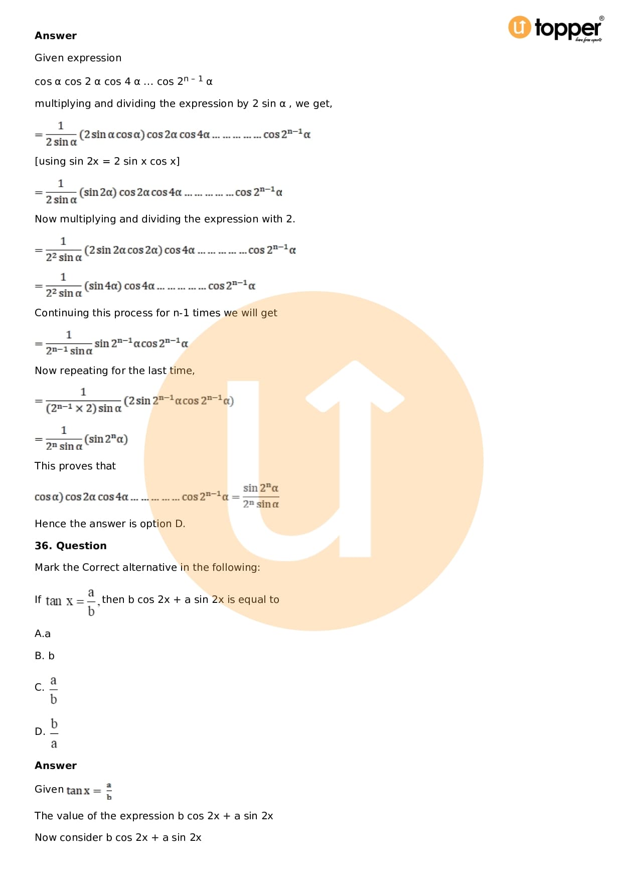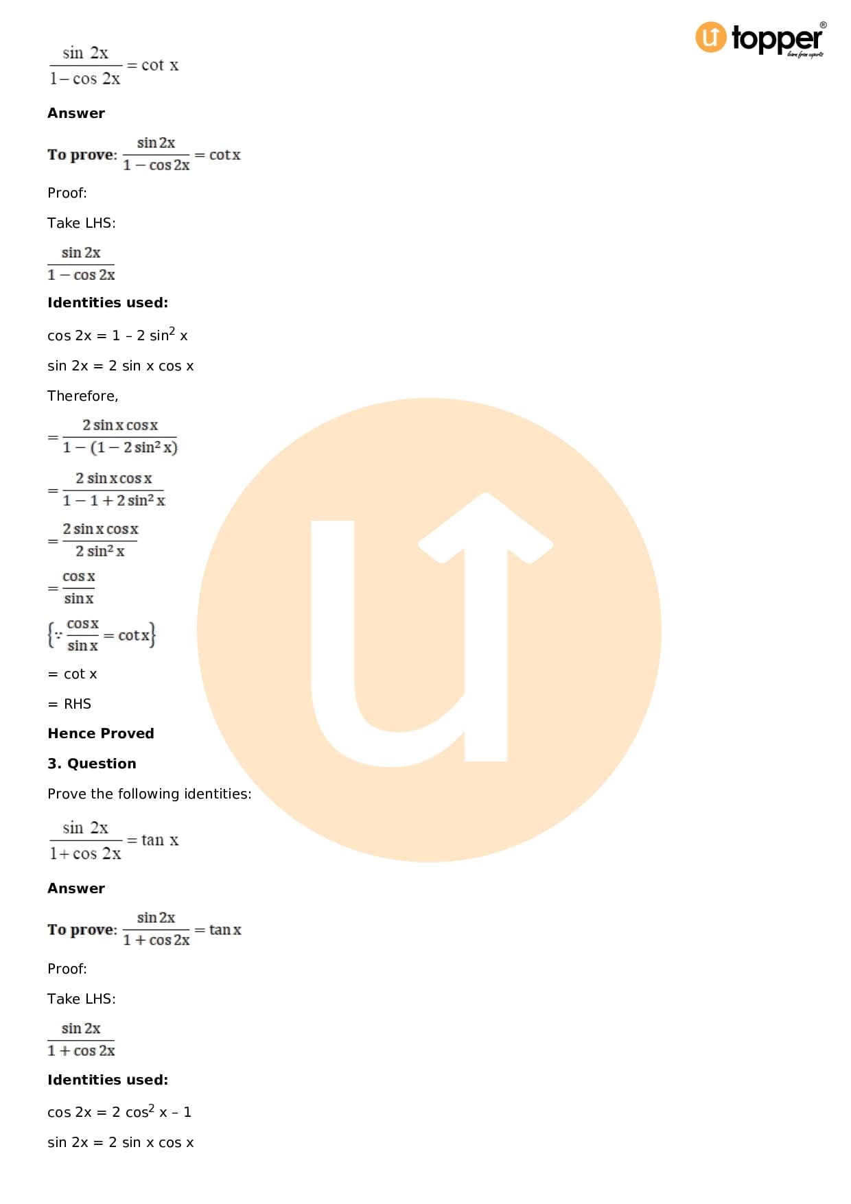 - Chapter 9 – Trigonometric Ratios of Multiple and Submultiple Angles