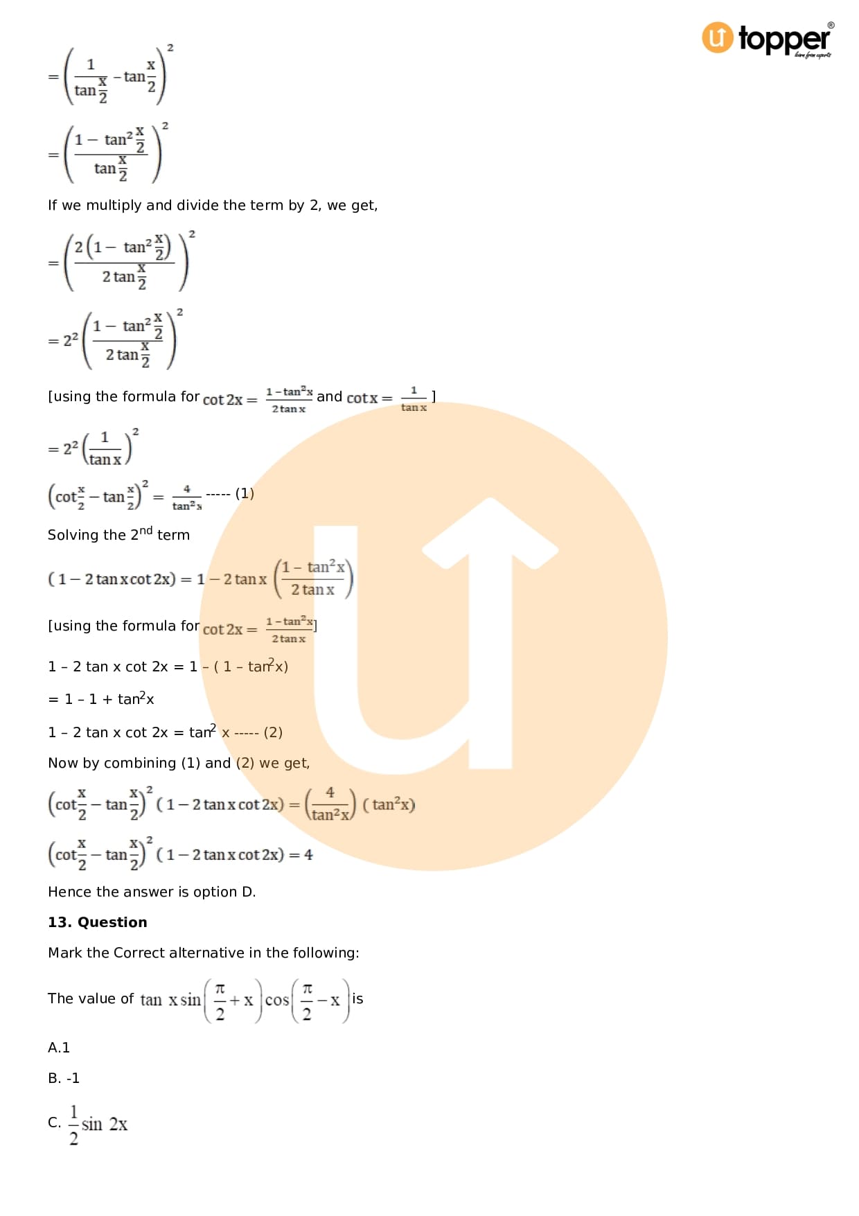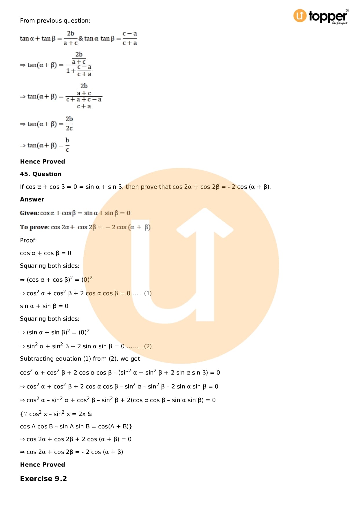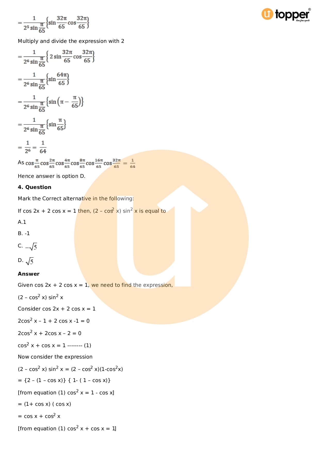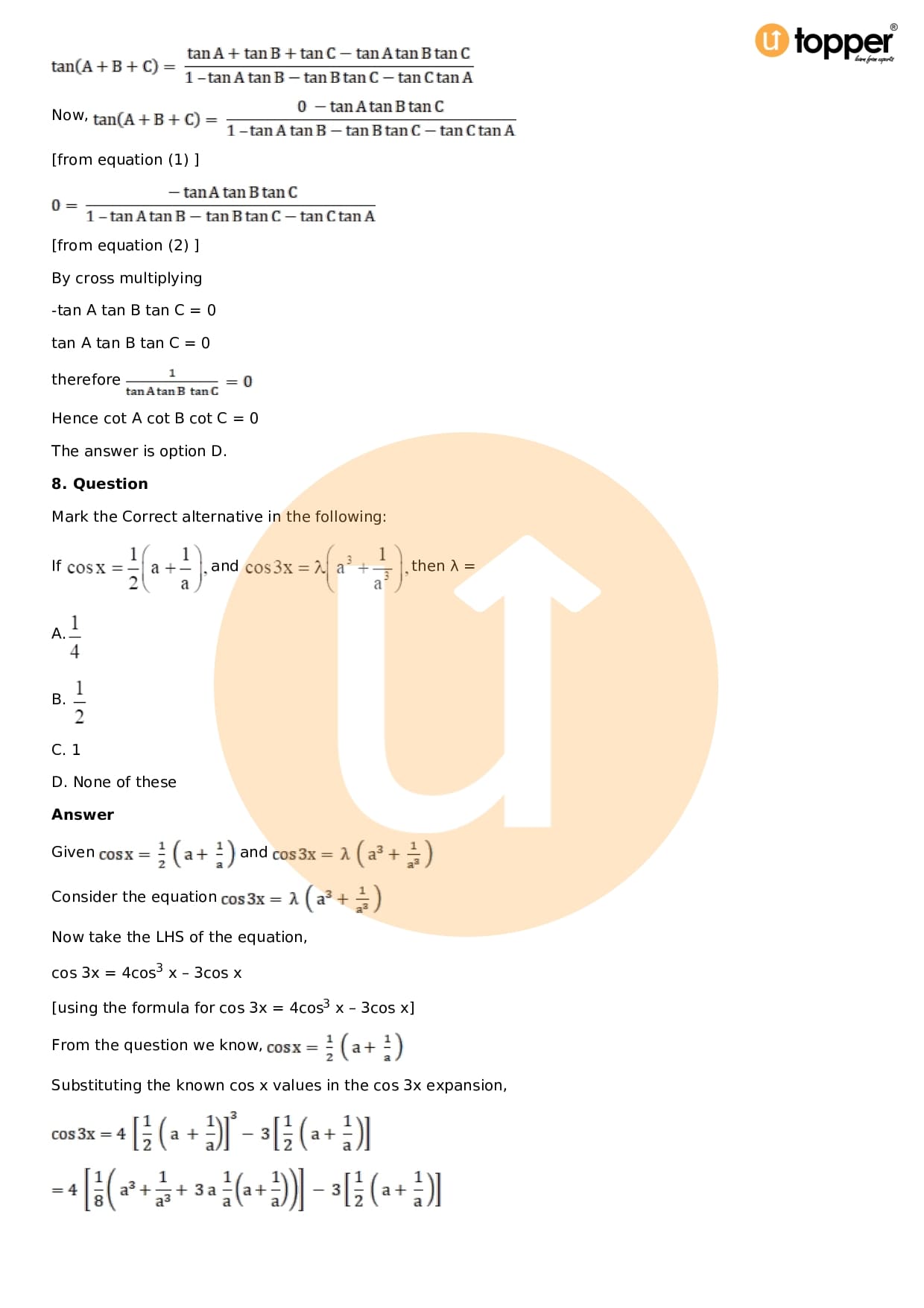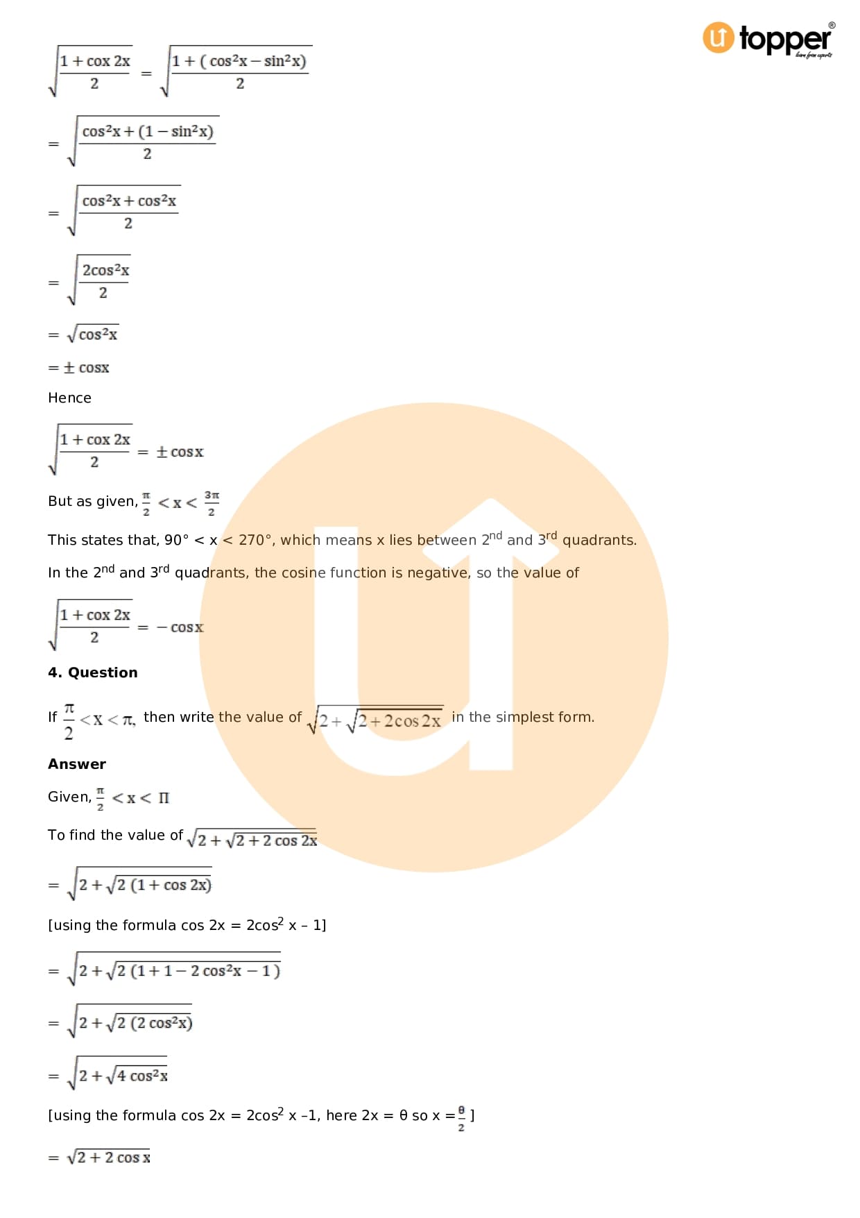 - Chapter 9 – Trigonometric Ratios of Multiple and Submultiple Angles