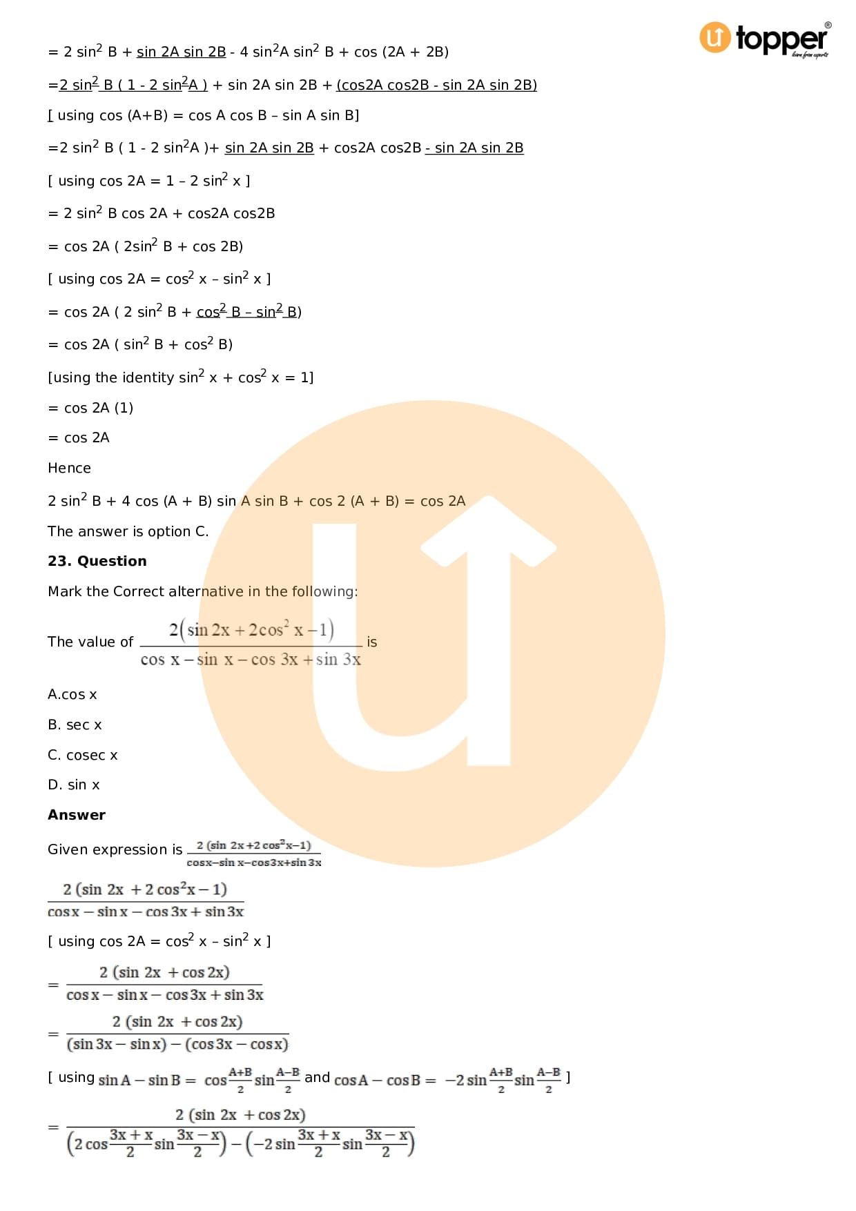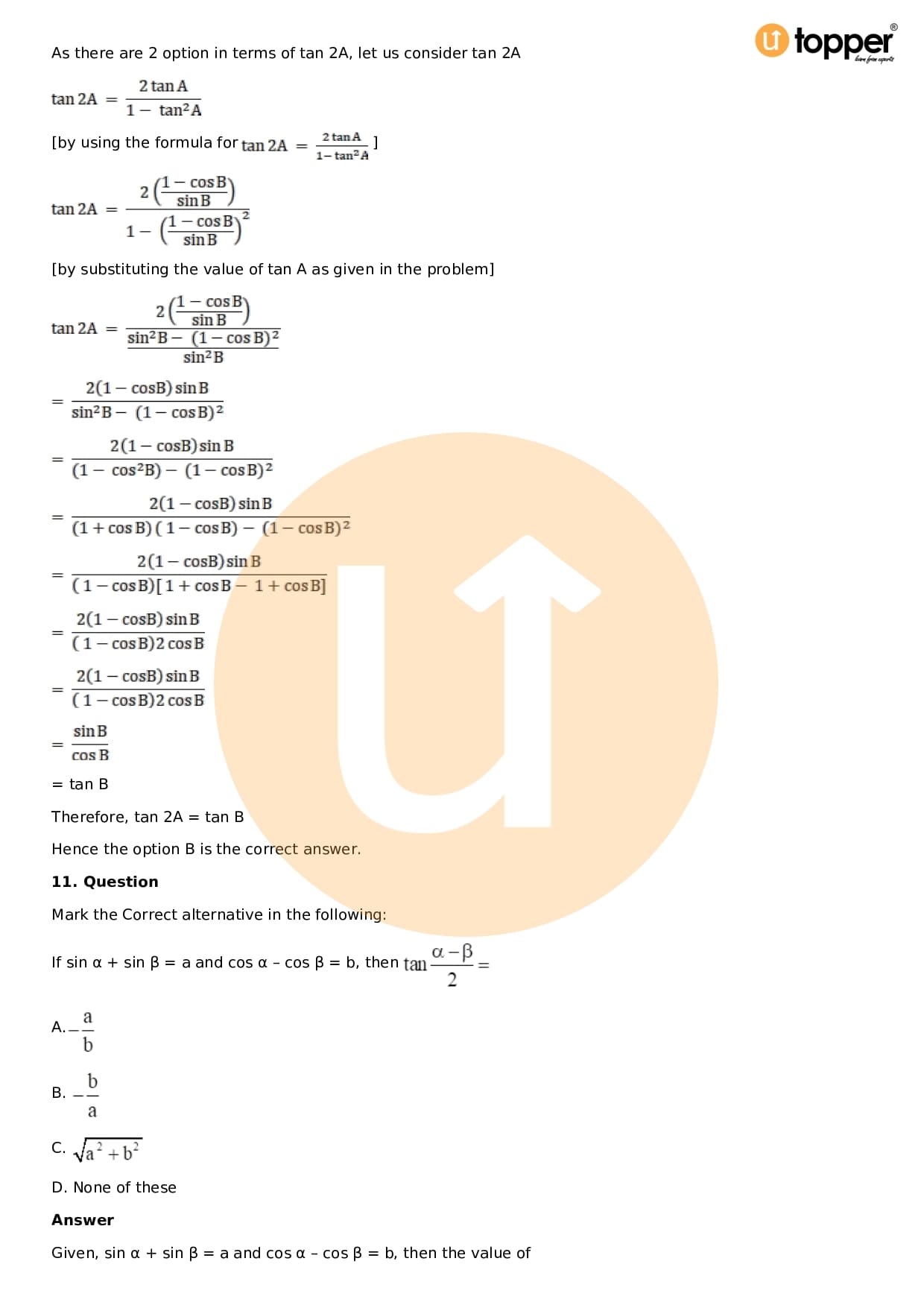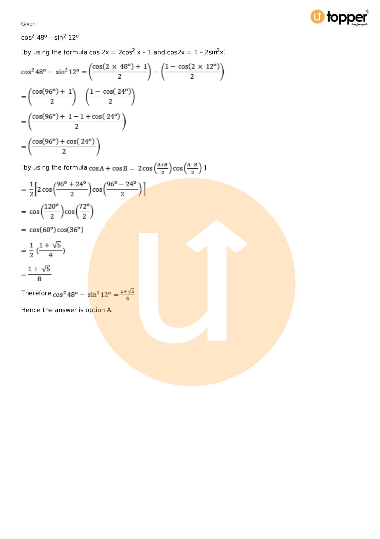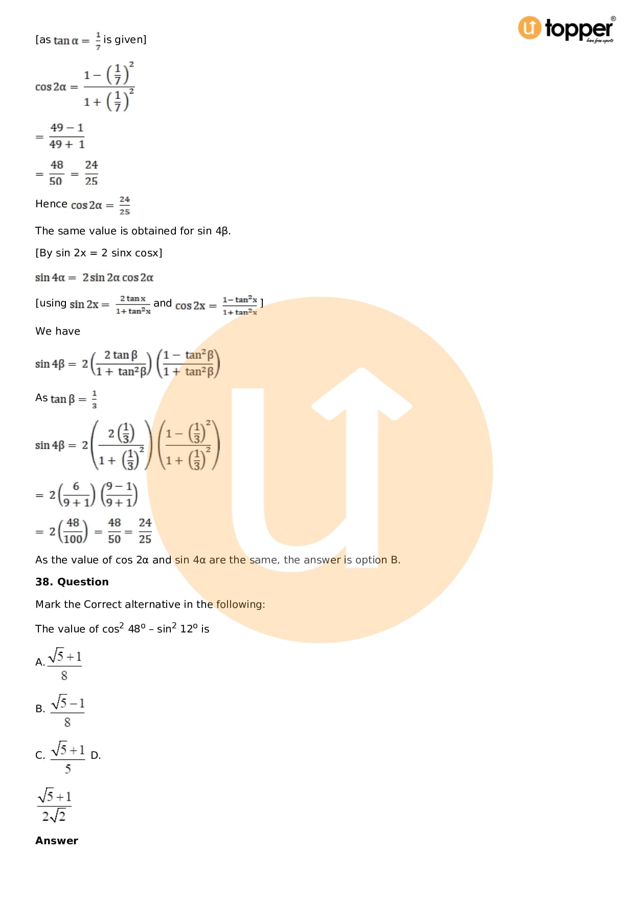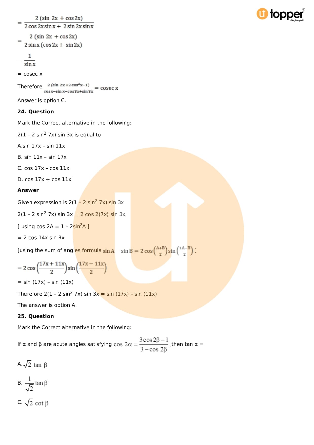 - Chapter 9 – Trigonometric Ratios of Multiple and Submultiple Angles