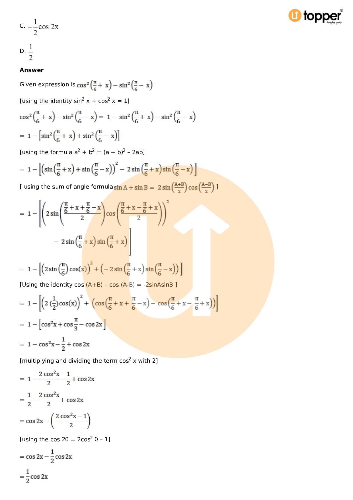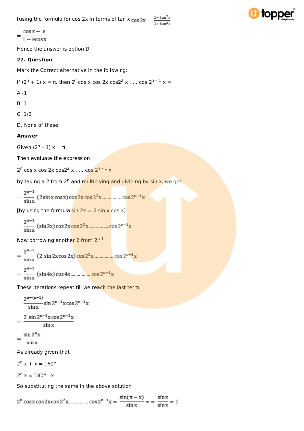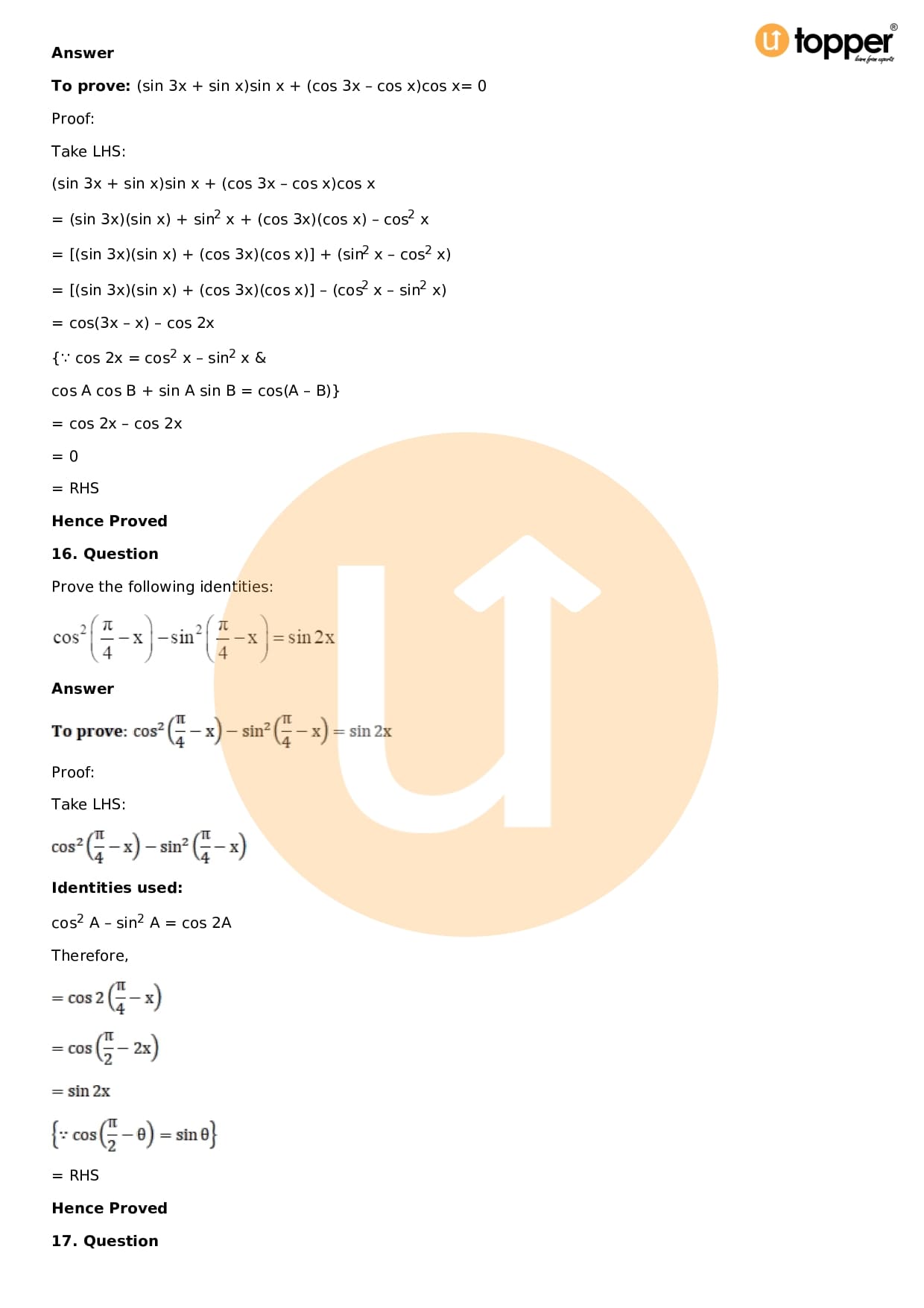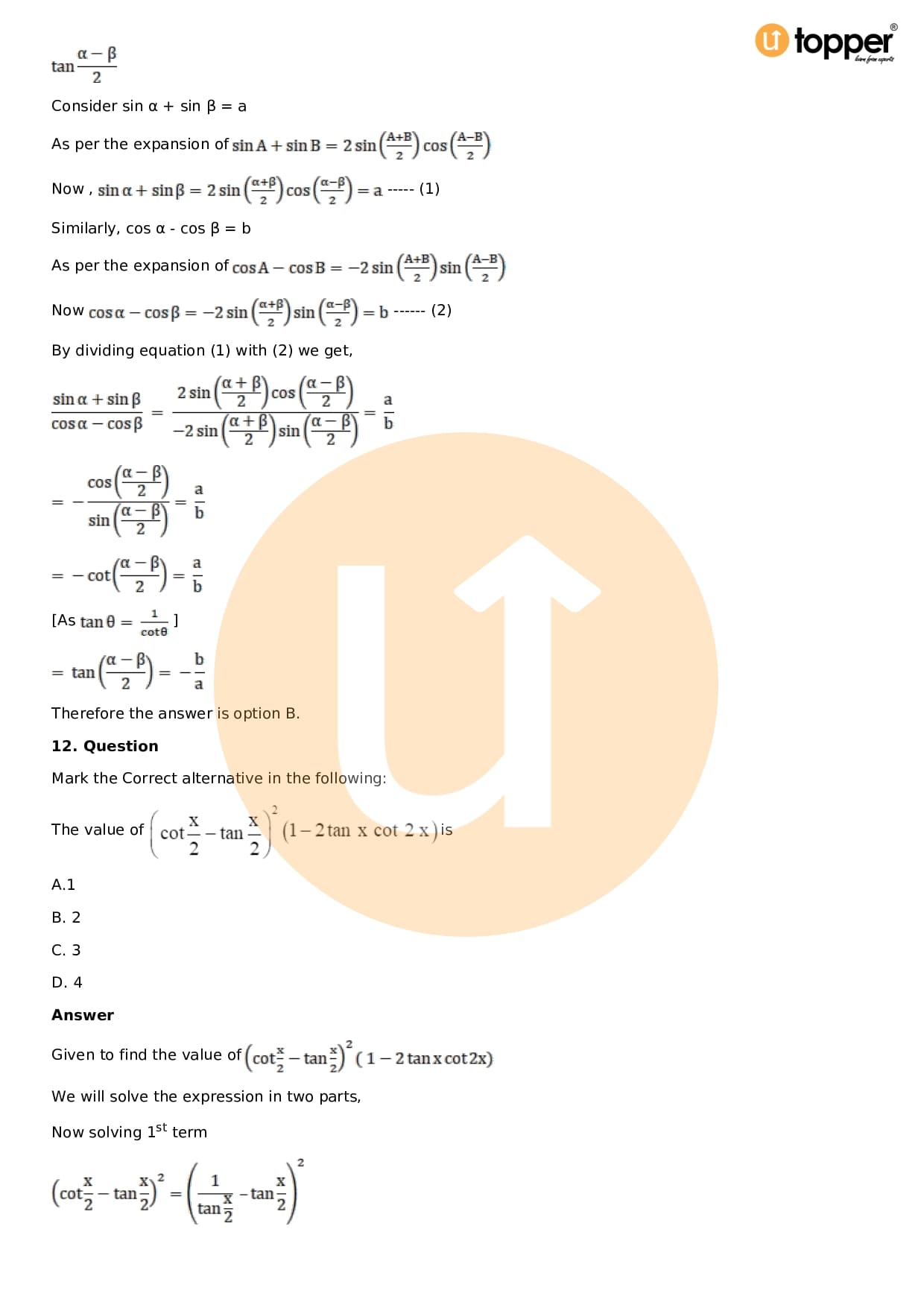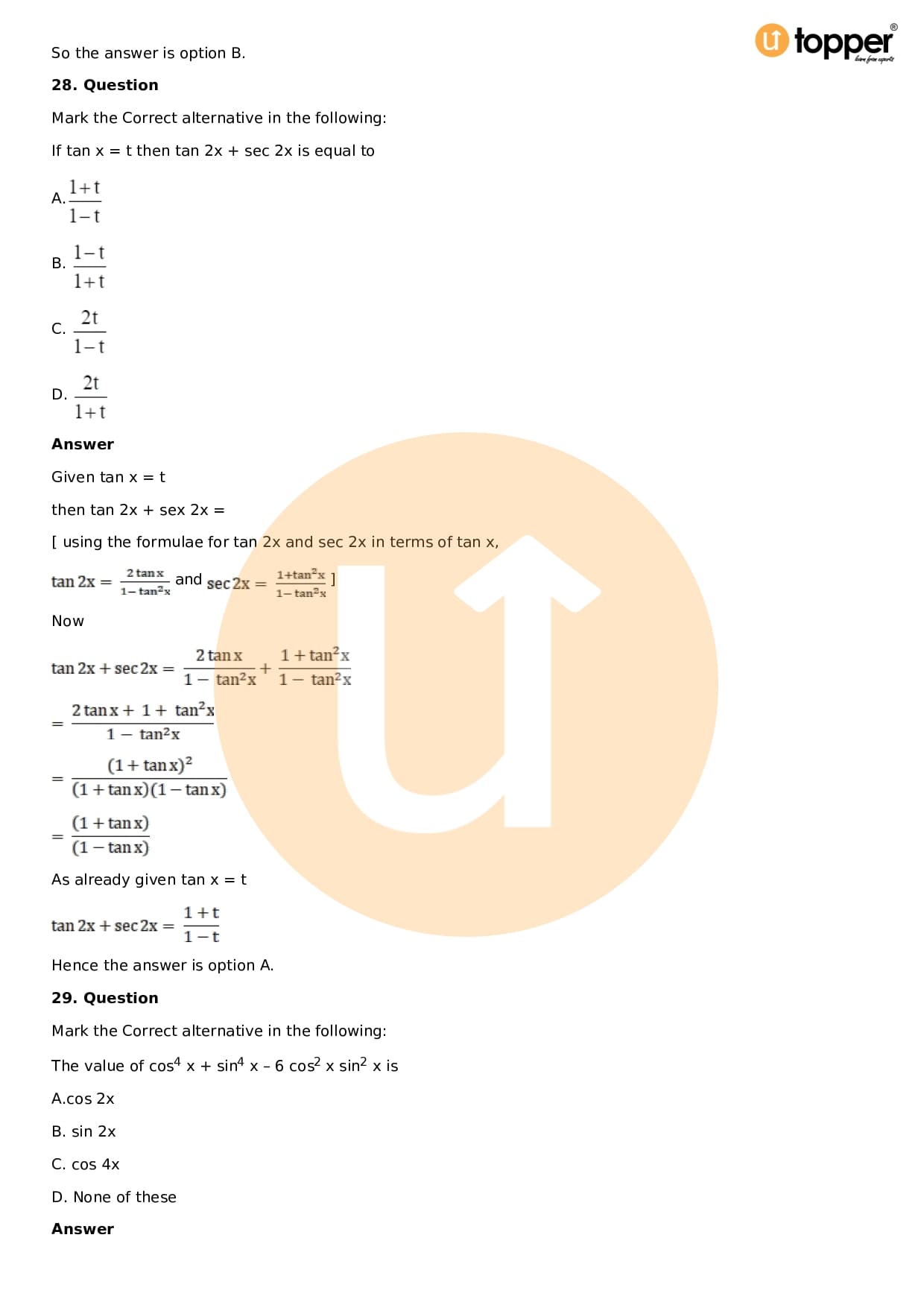 - Chapter 9 – Trigonometric Ratios of Multiple and Submultiple Angles