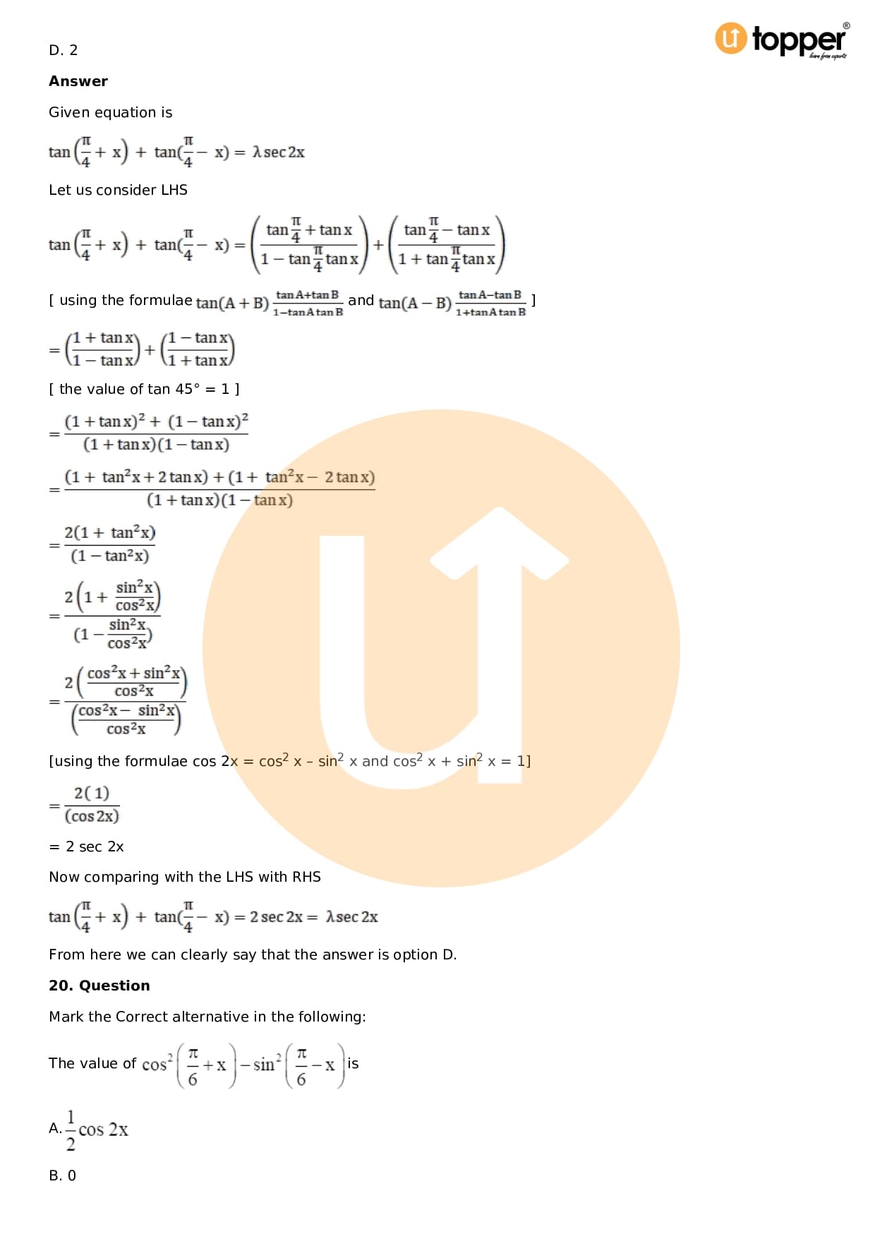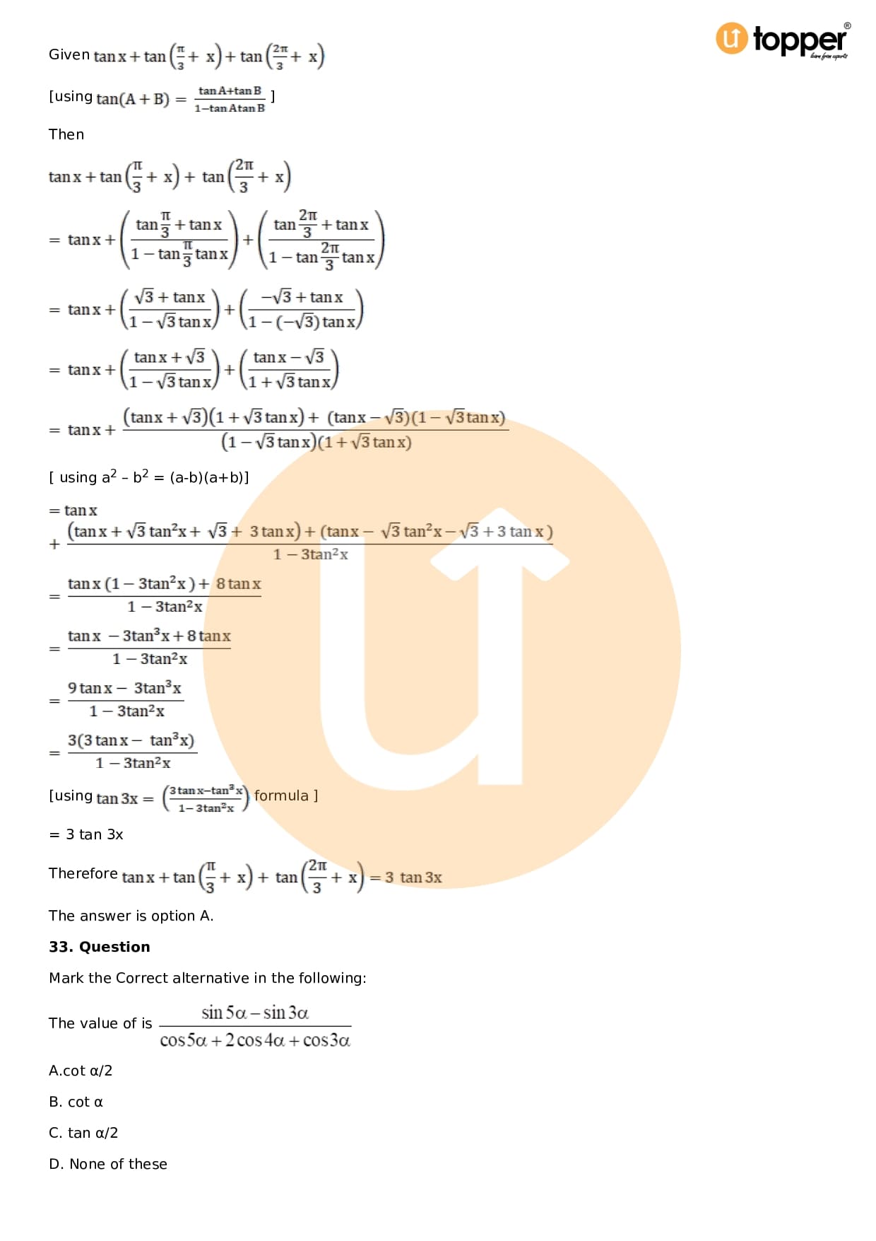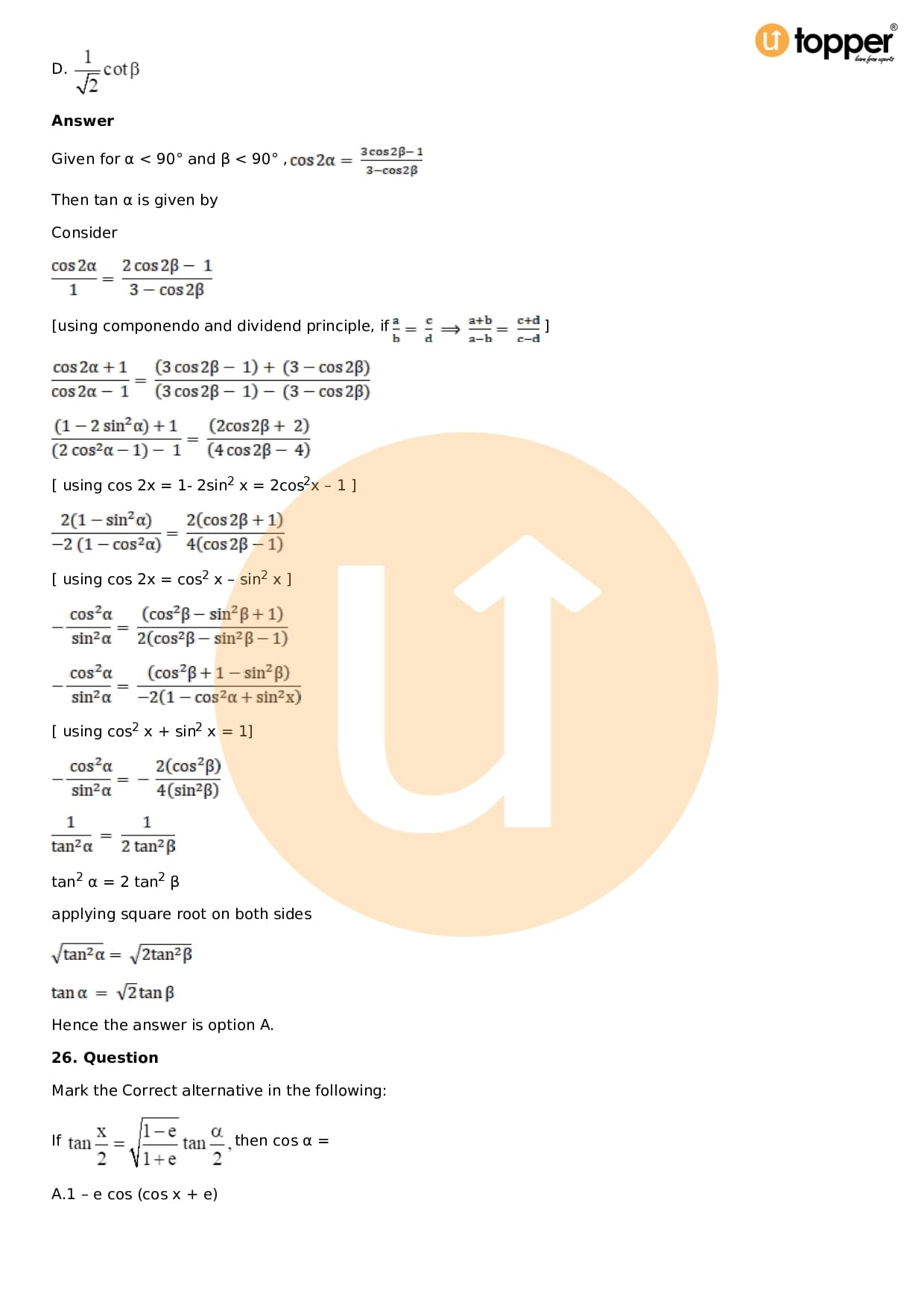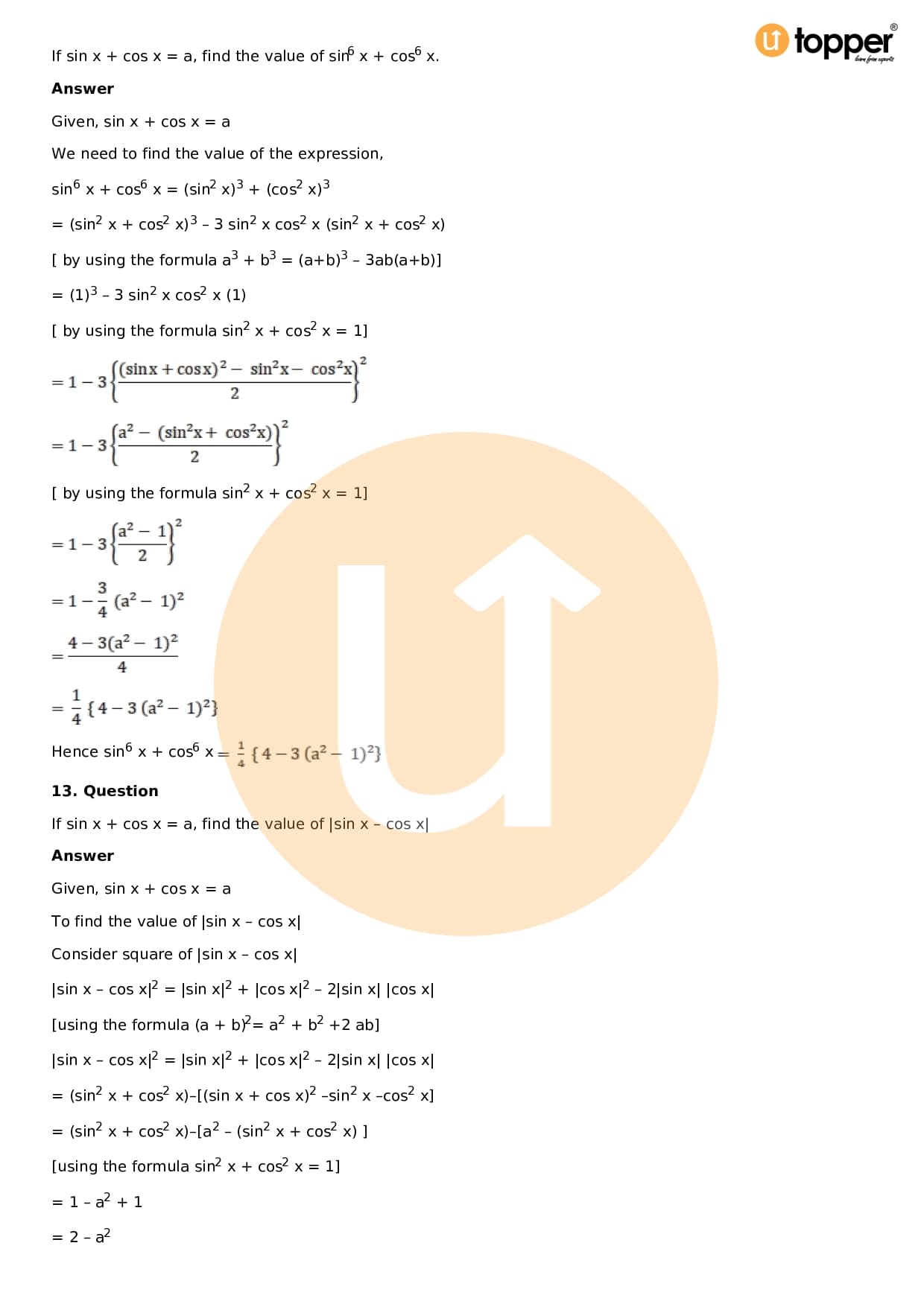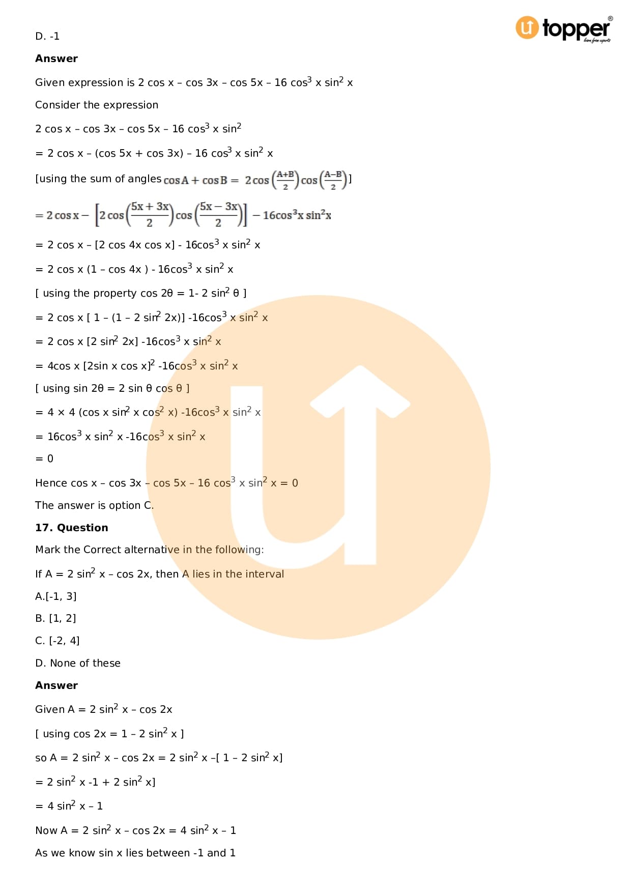 - Chapter 9 – Trigonometric Ratios of Multiple and Submultiple Angles