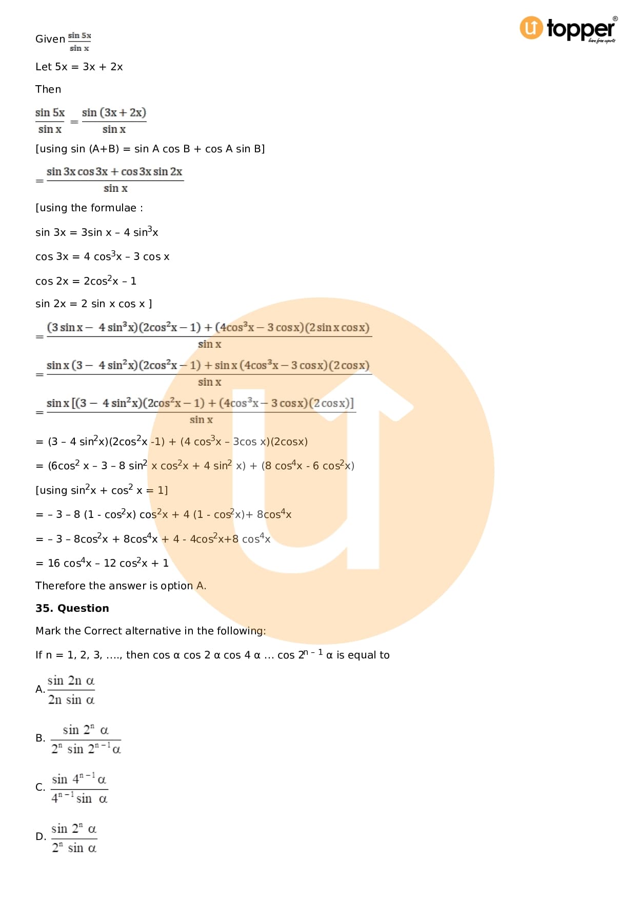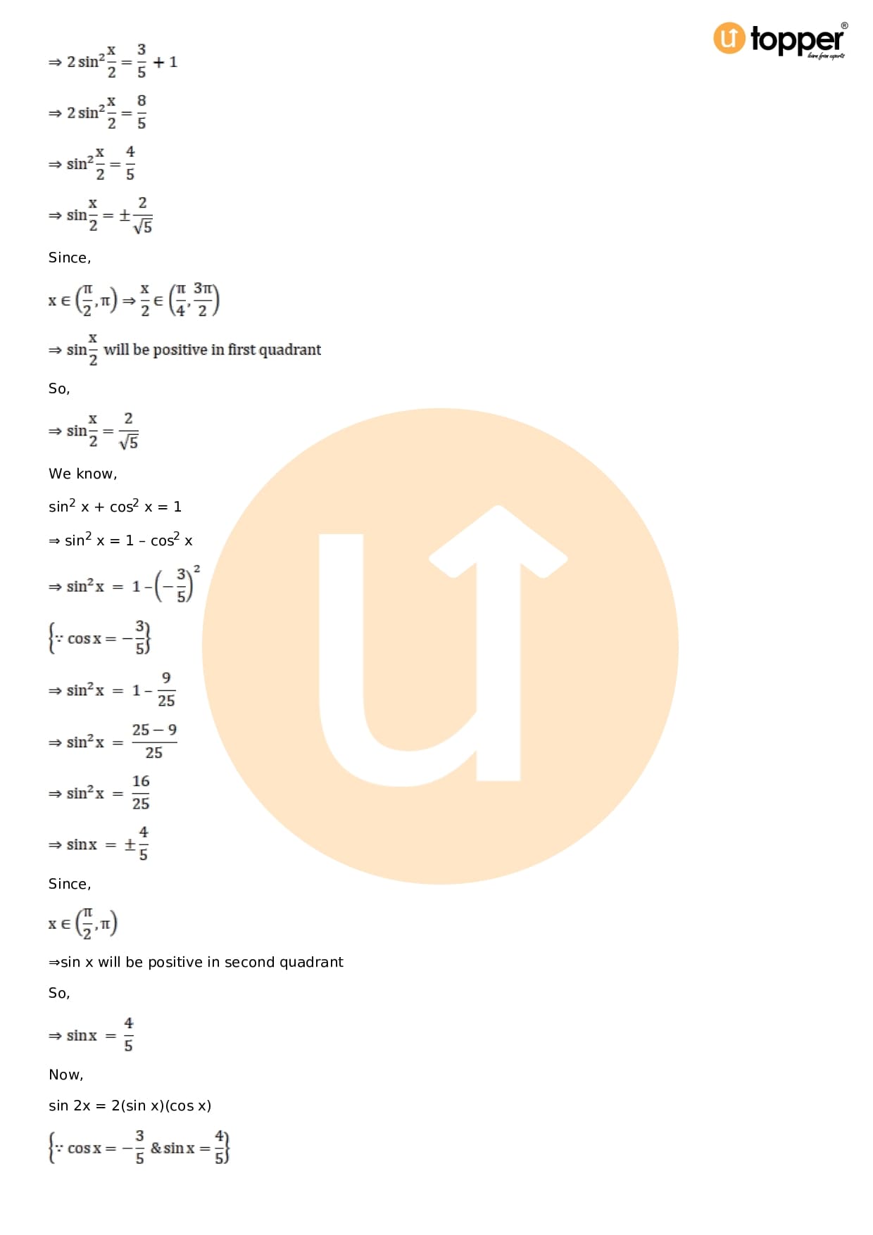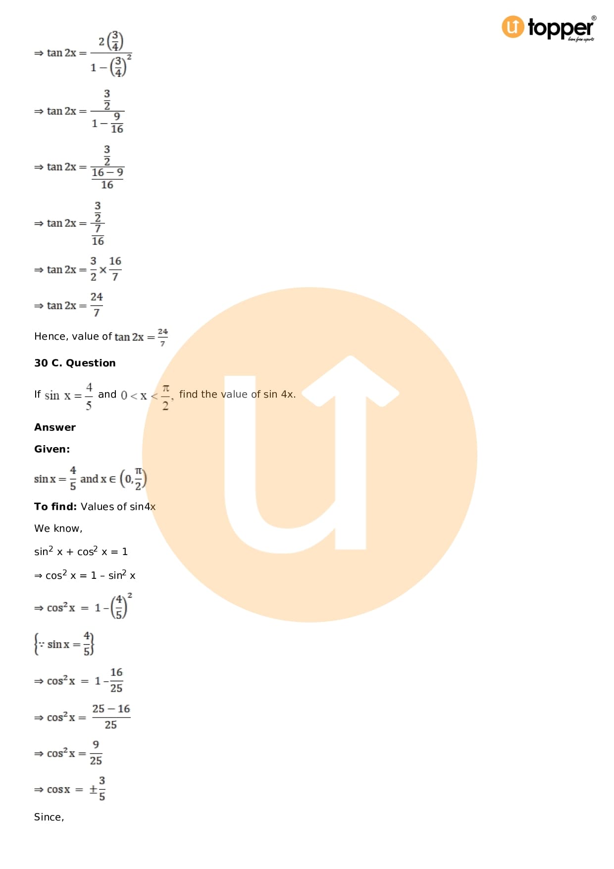 Chapter 9 – Trigonometric Ratios of Multiple and Submultiple Angles