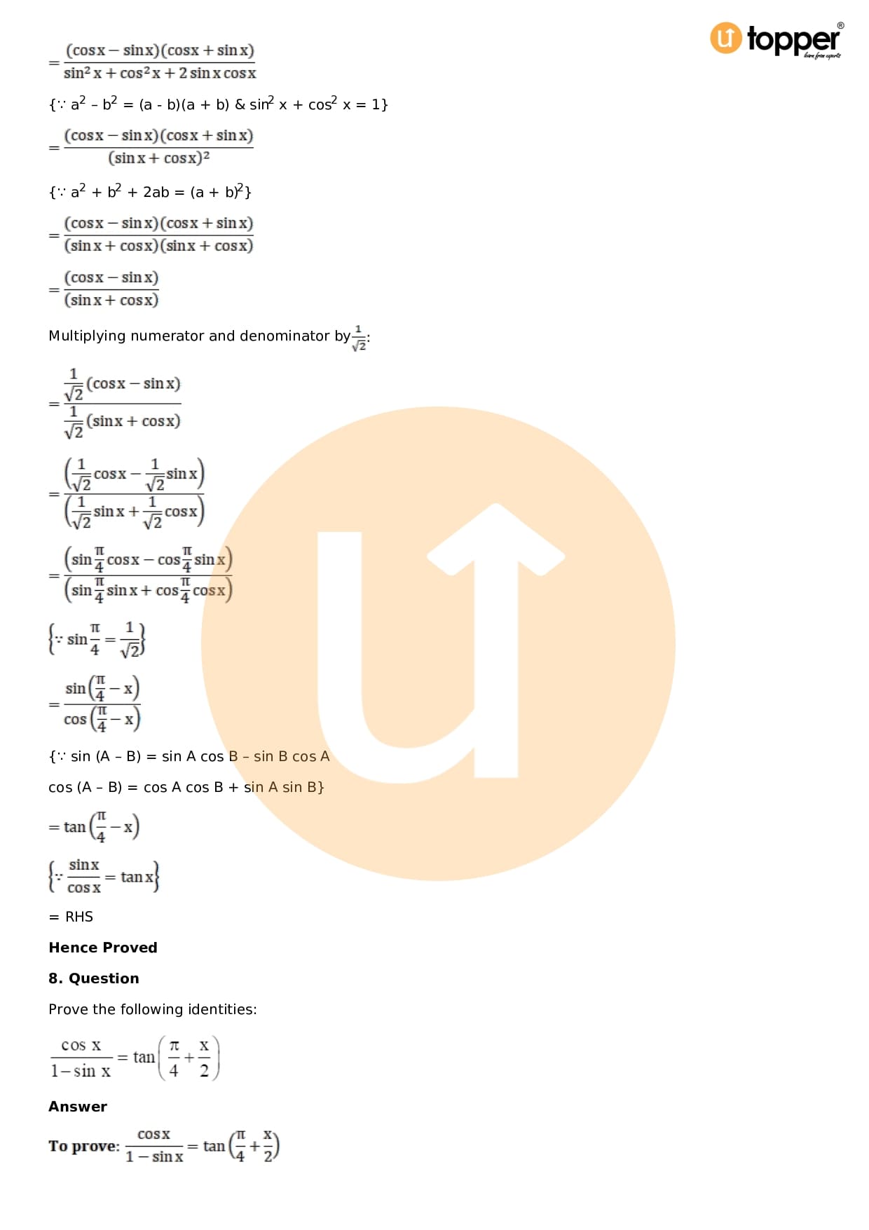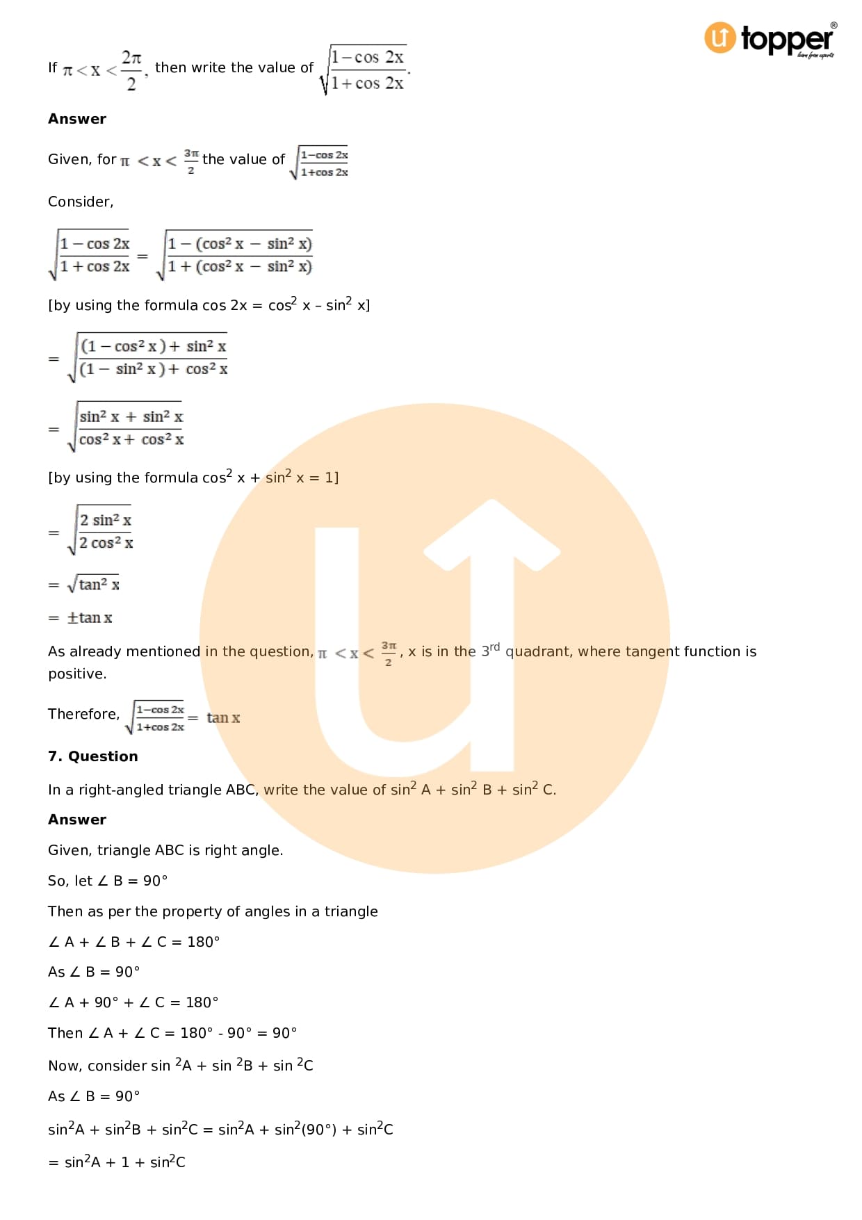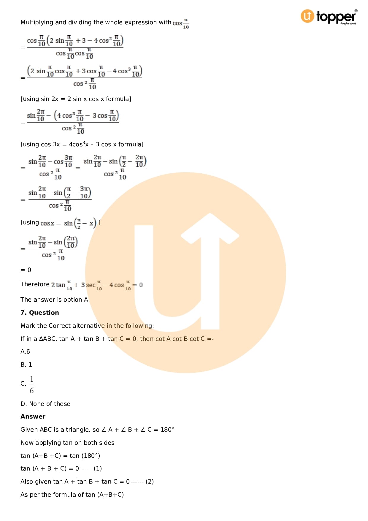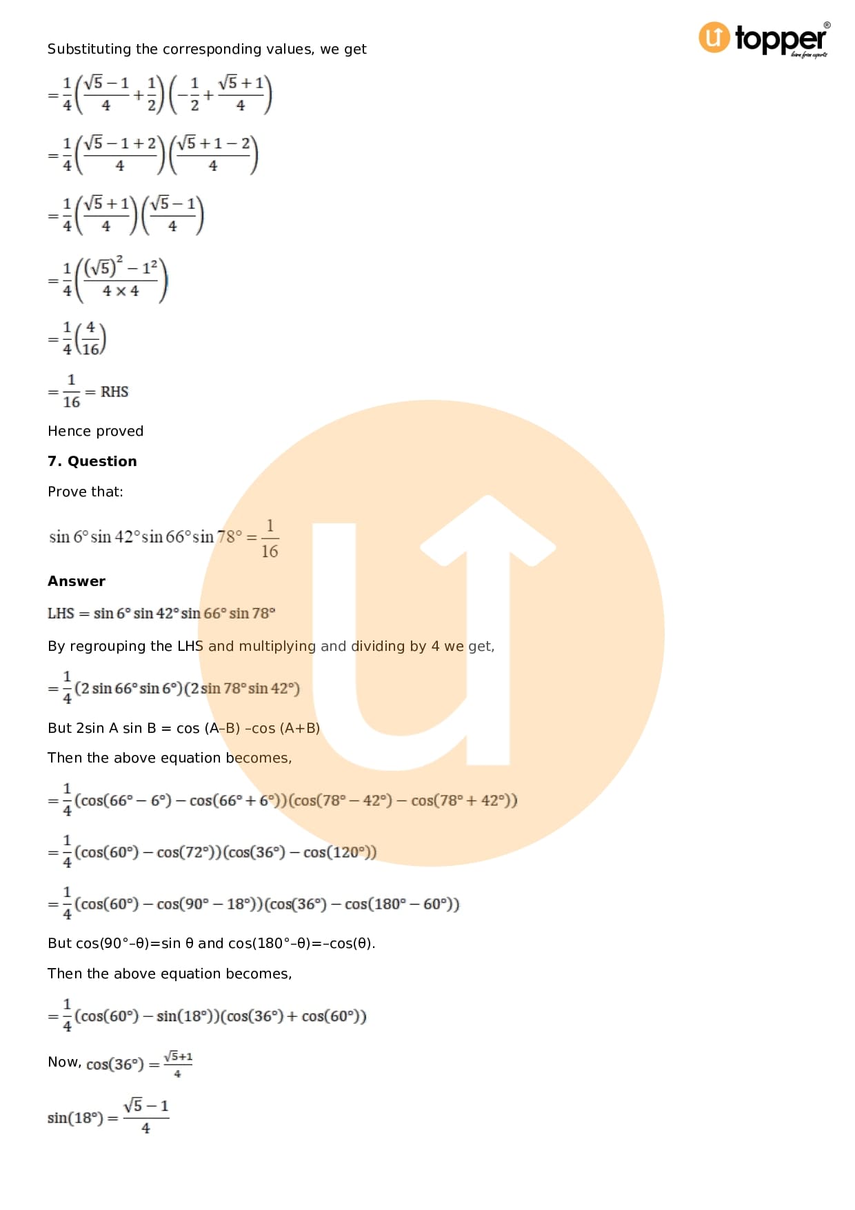 - Chapter 7 – Trigonometric Ratios of Compound Angles