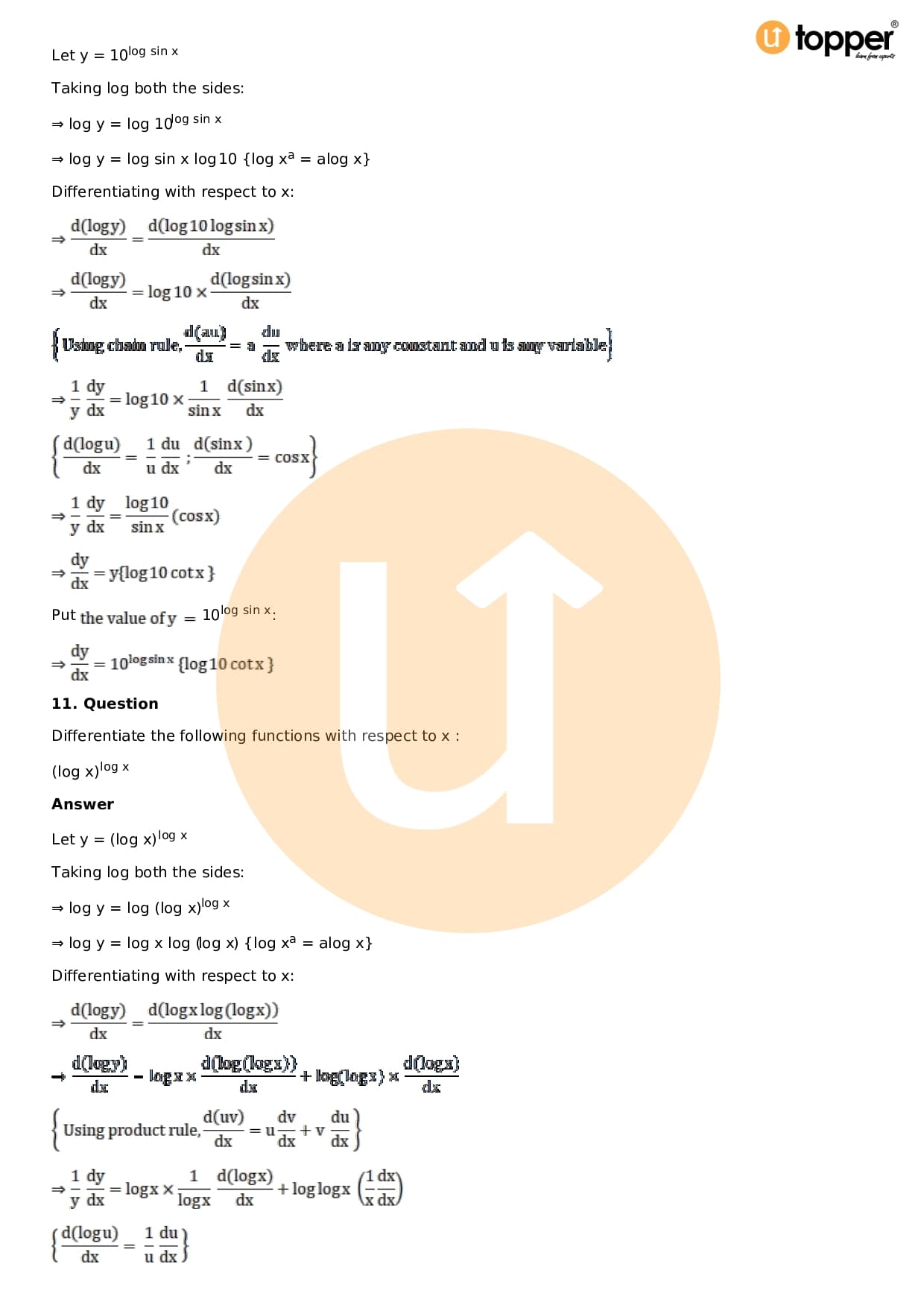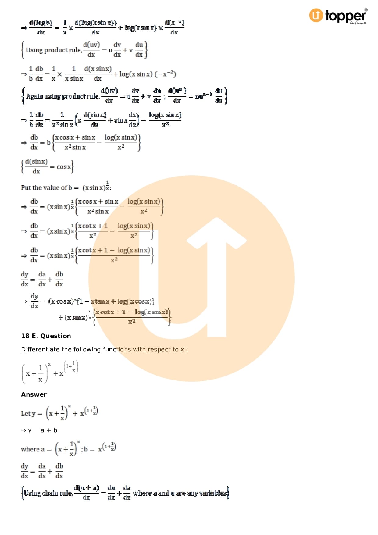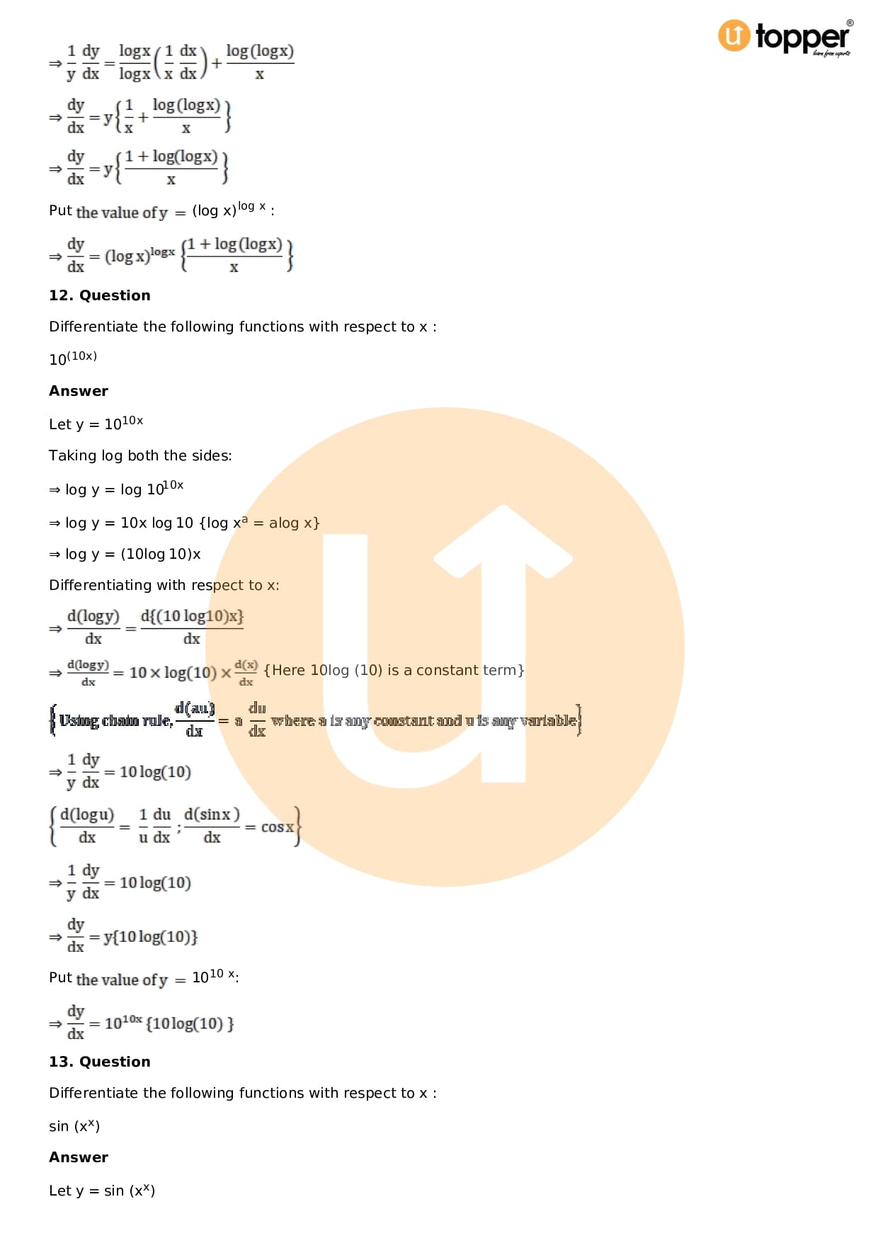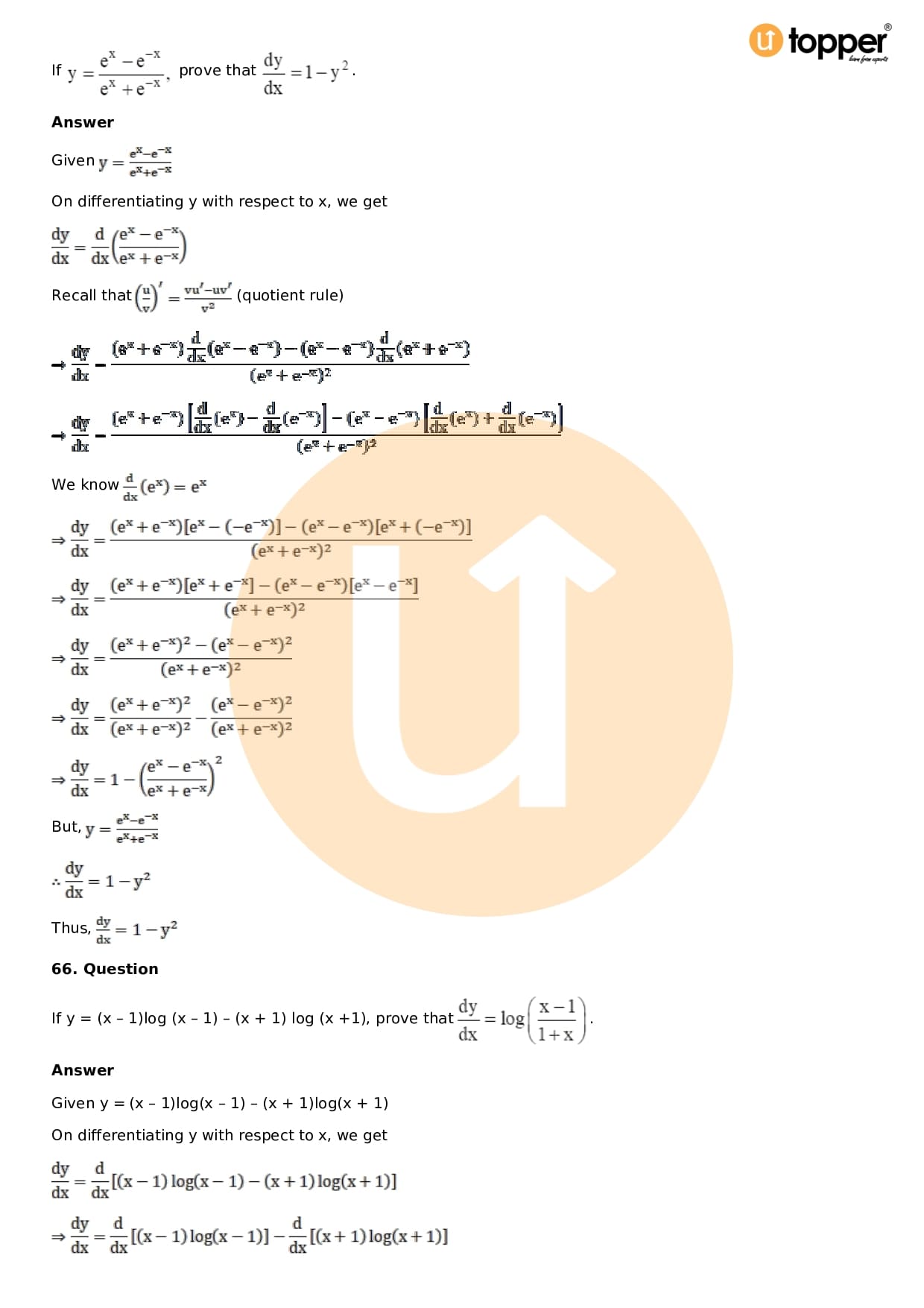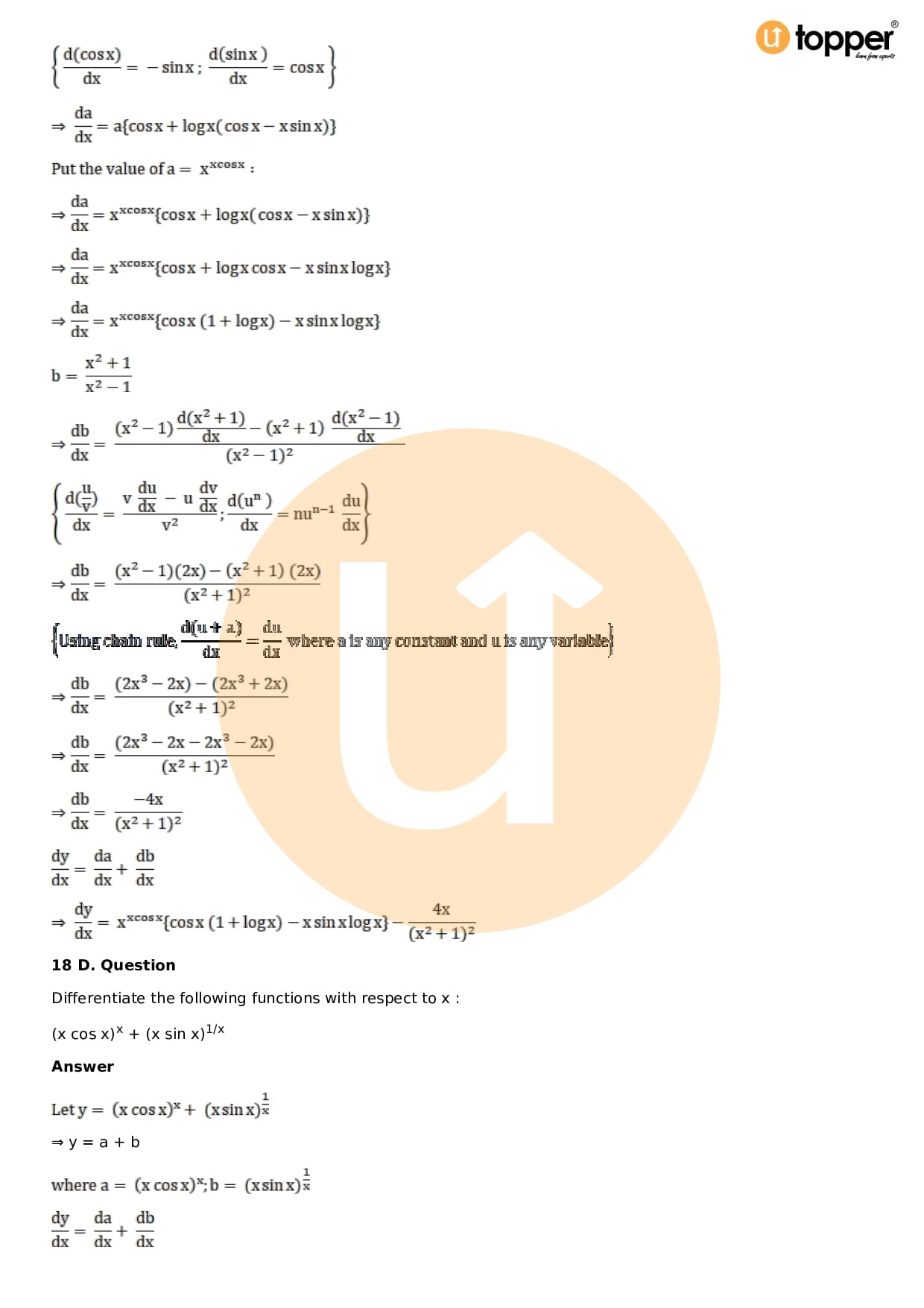 RD Sharma Class 12 Maths Chapter 11 Differentiation Solutions PDF Download