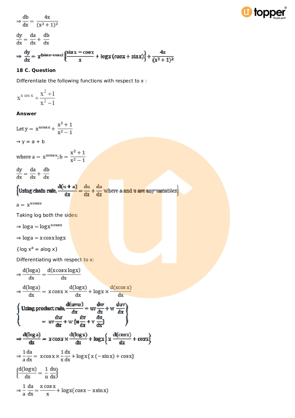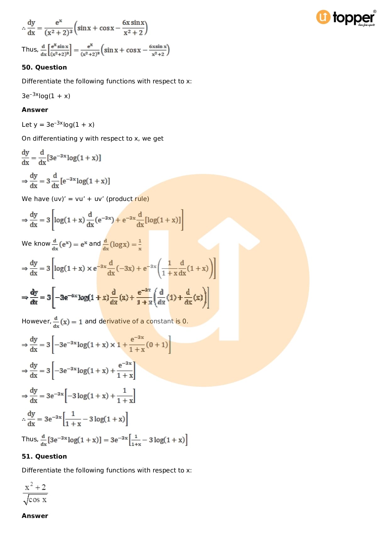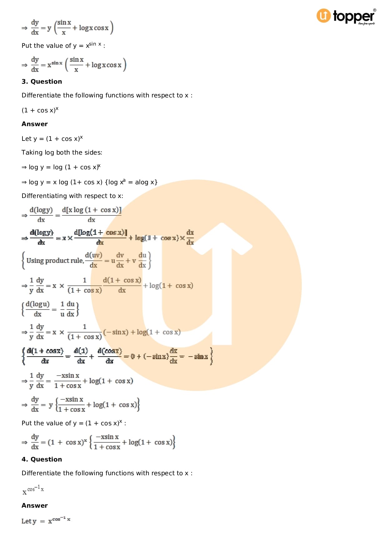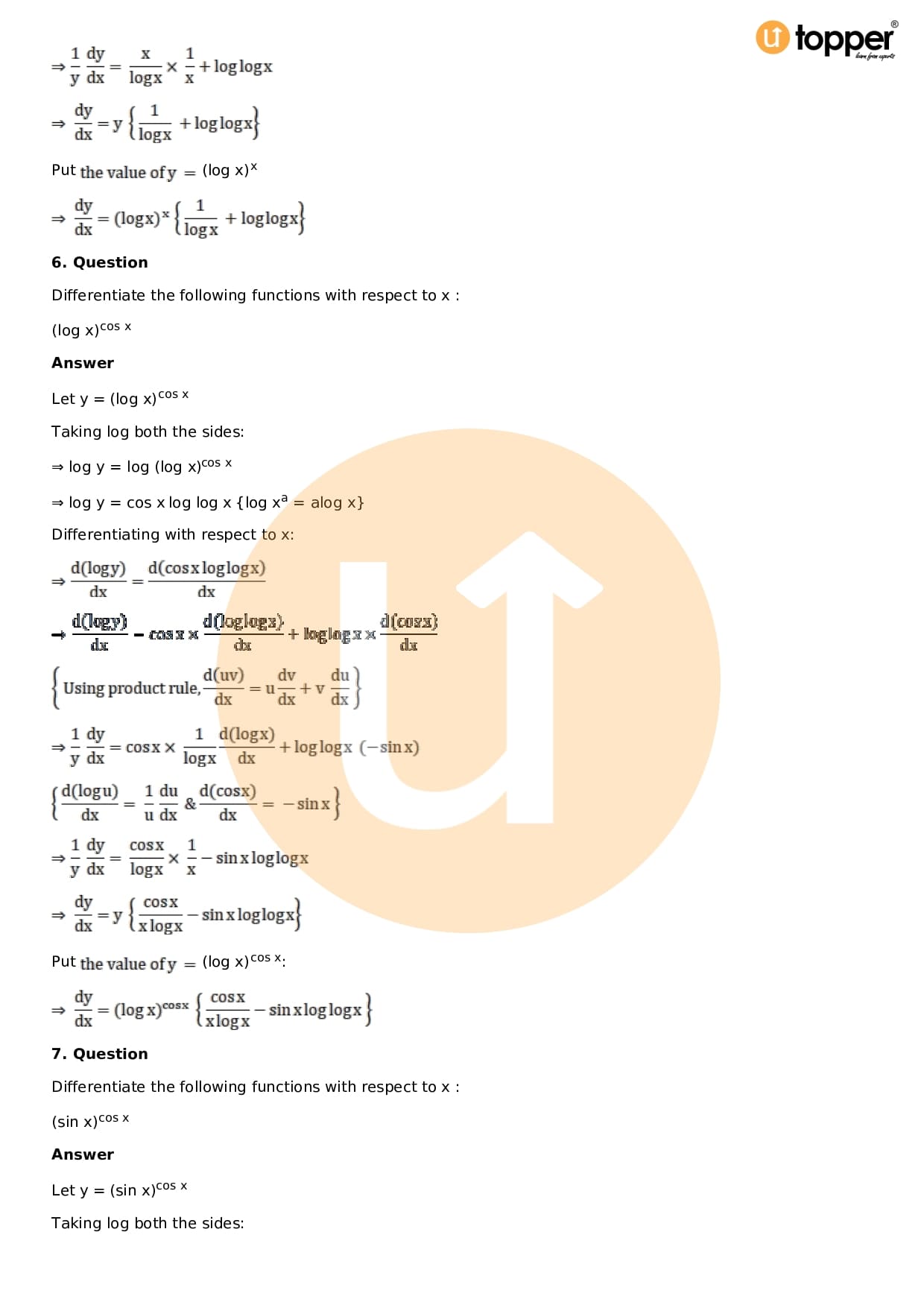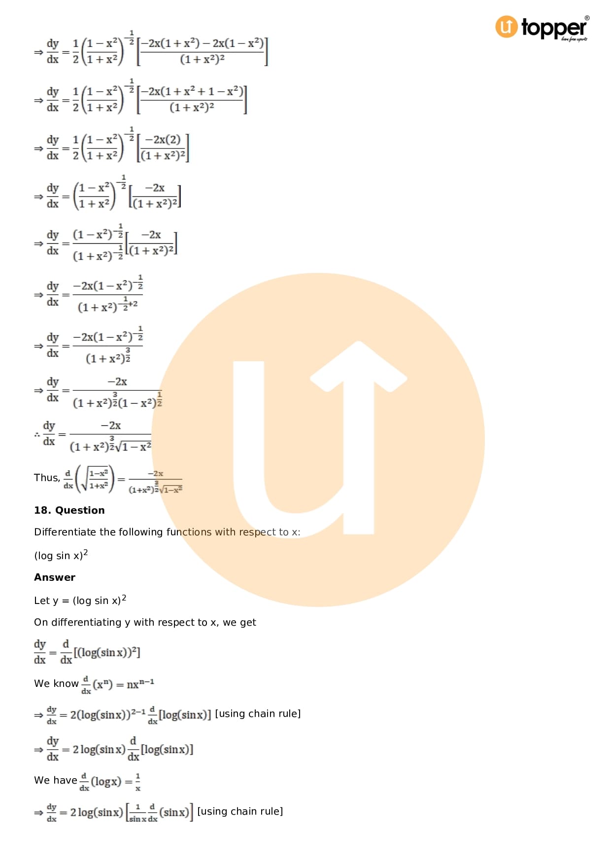 RD Sharma Class 12 Maths Chapter 11 Differentiation Solutions PDF Download
