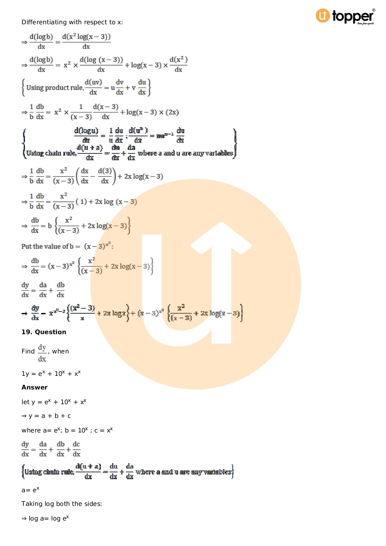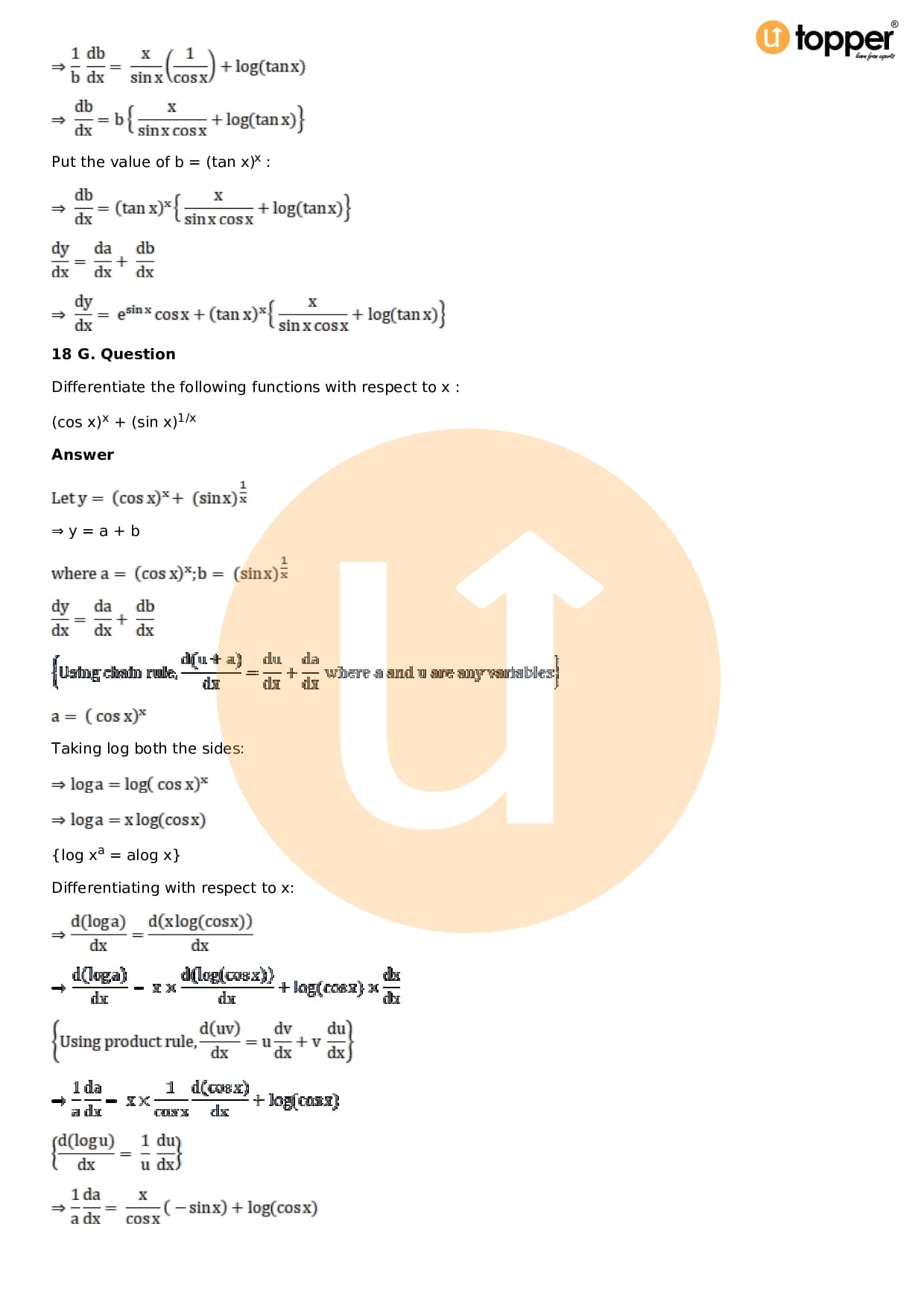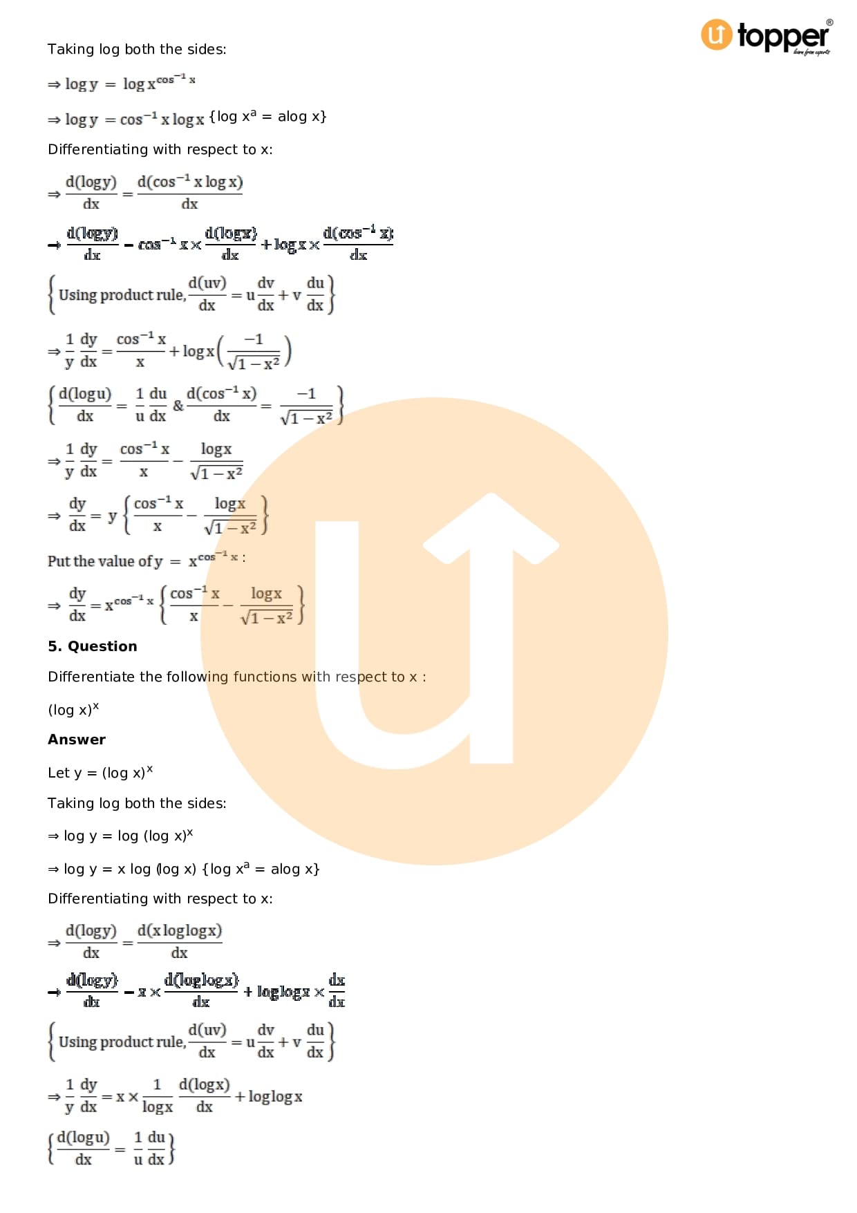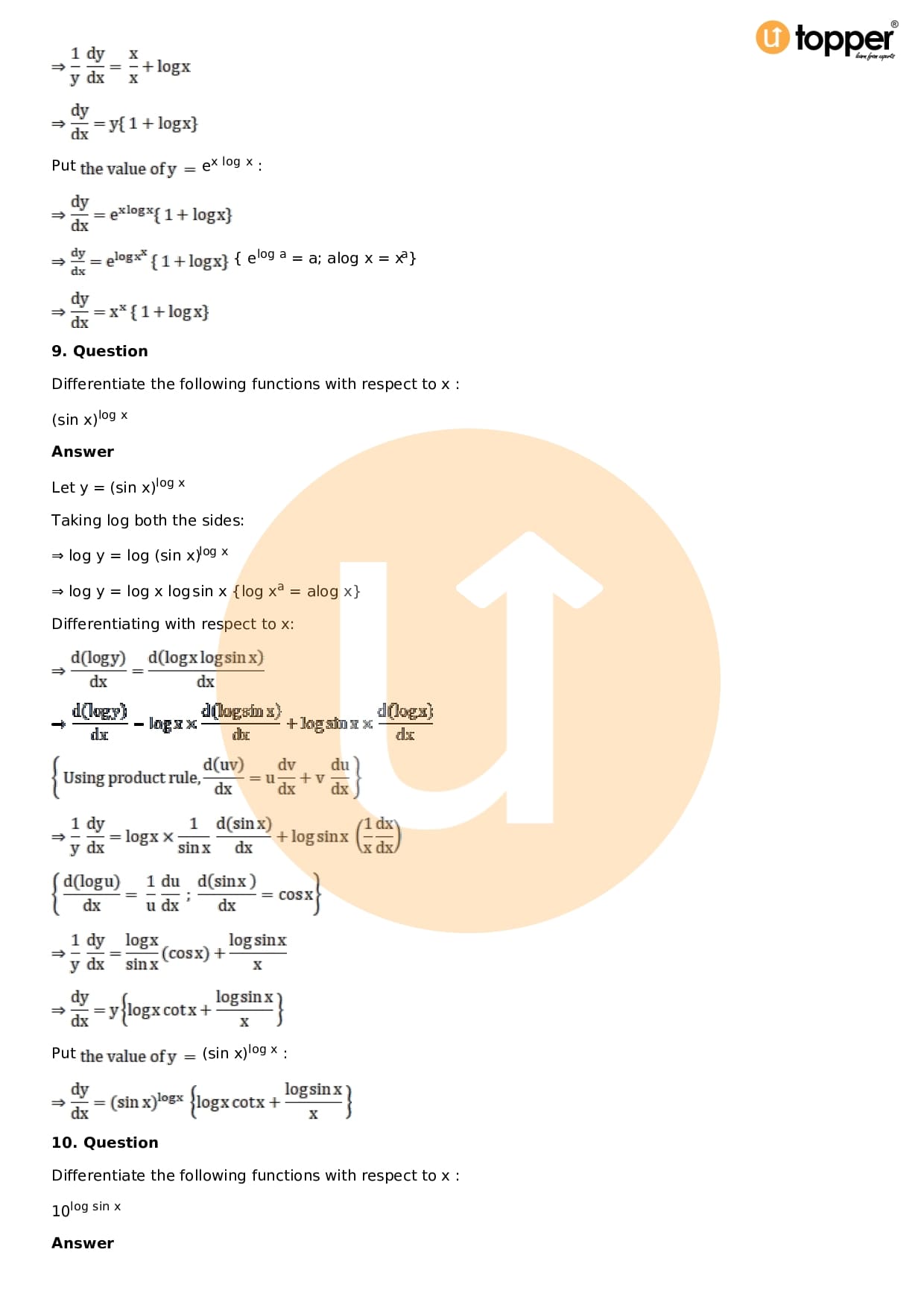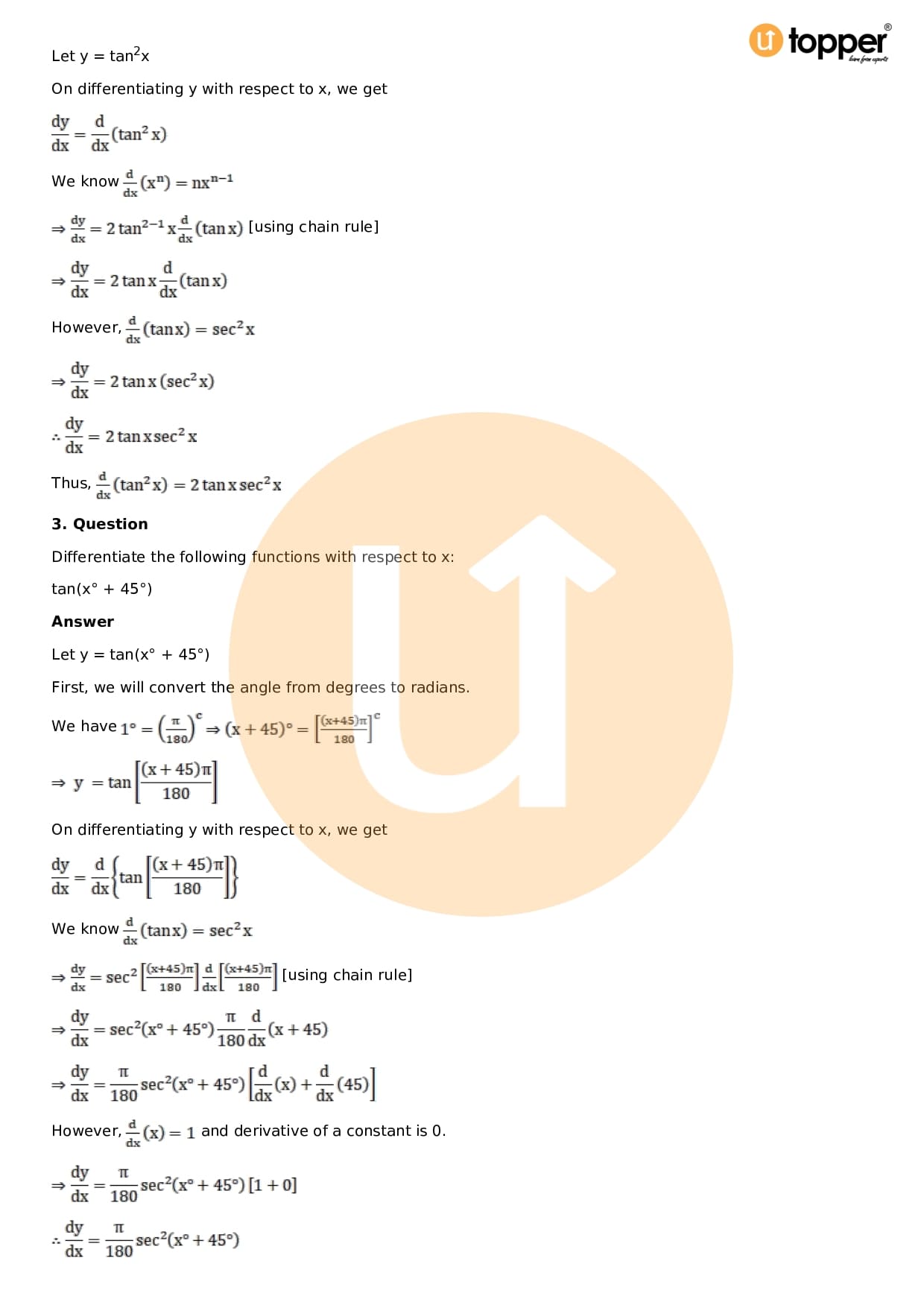 RD Sharma Class 12 Maths Chapter 11 Differentiation Solutions PDF Download