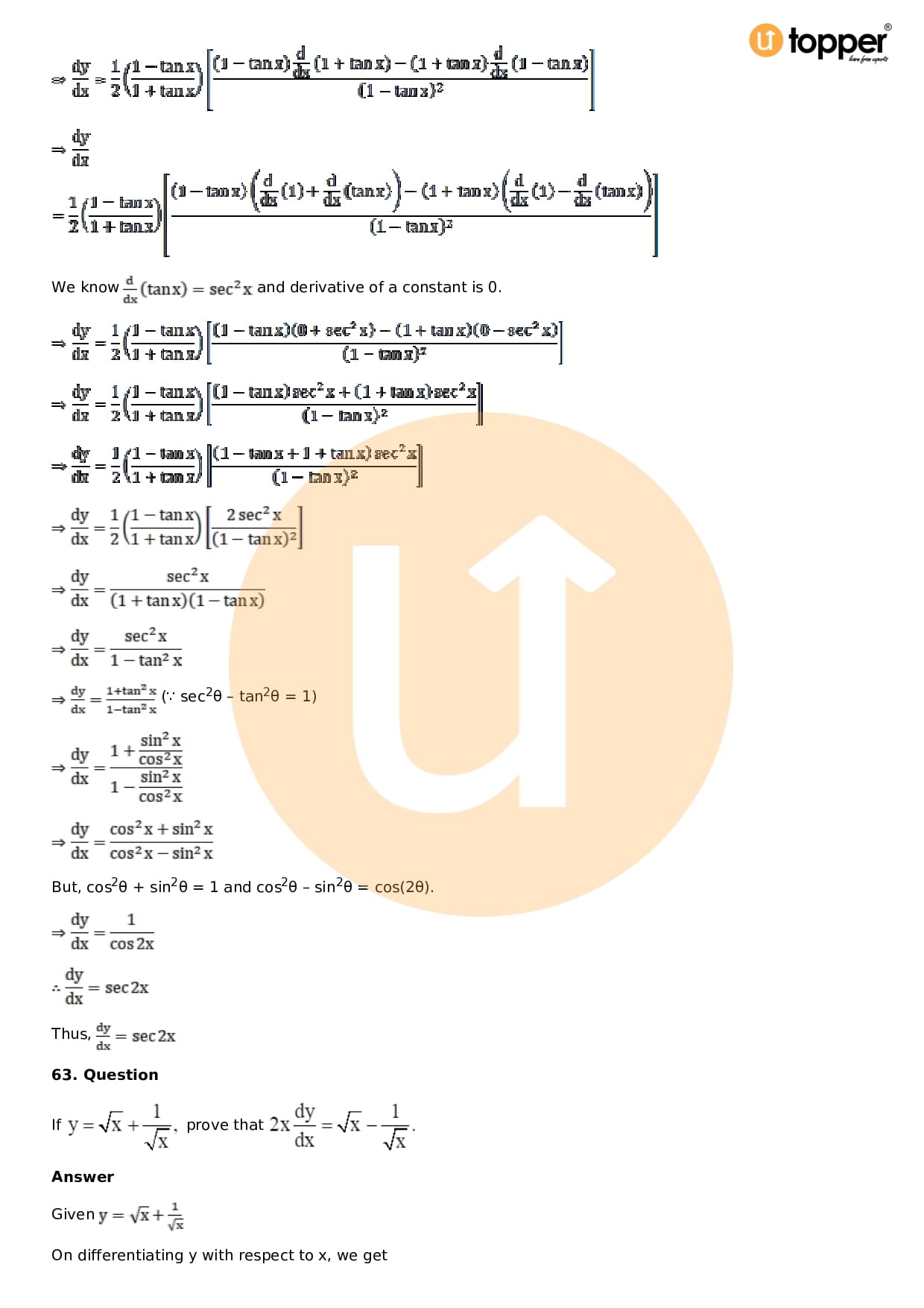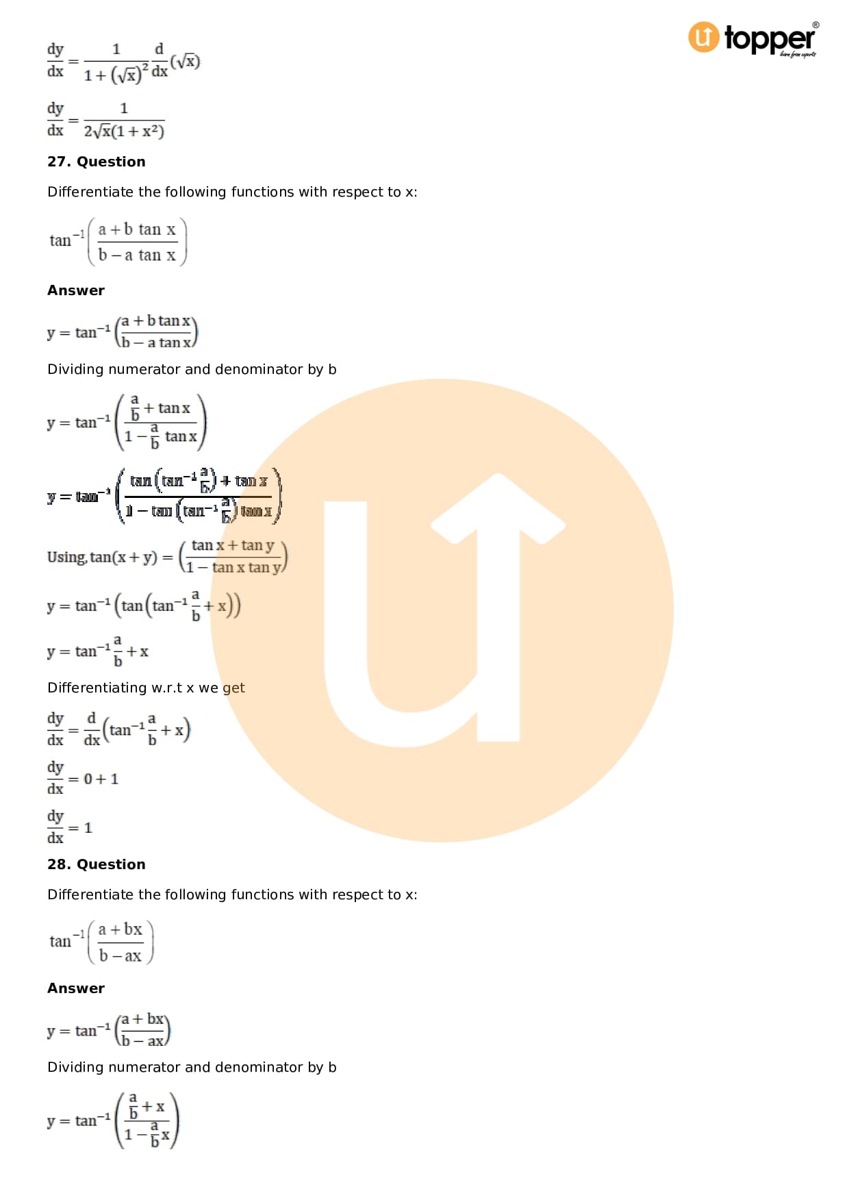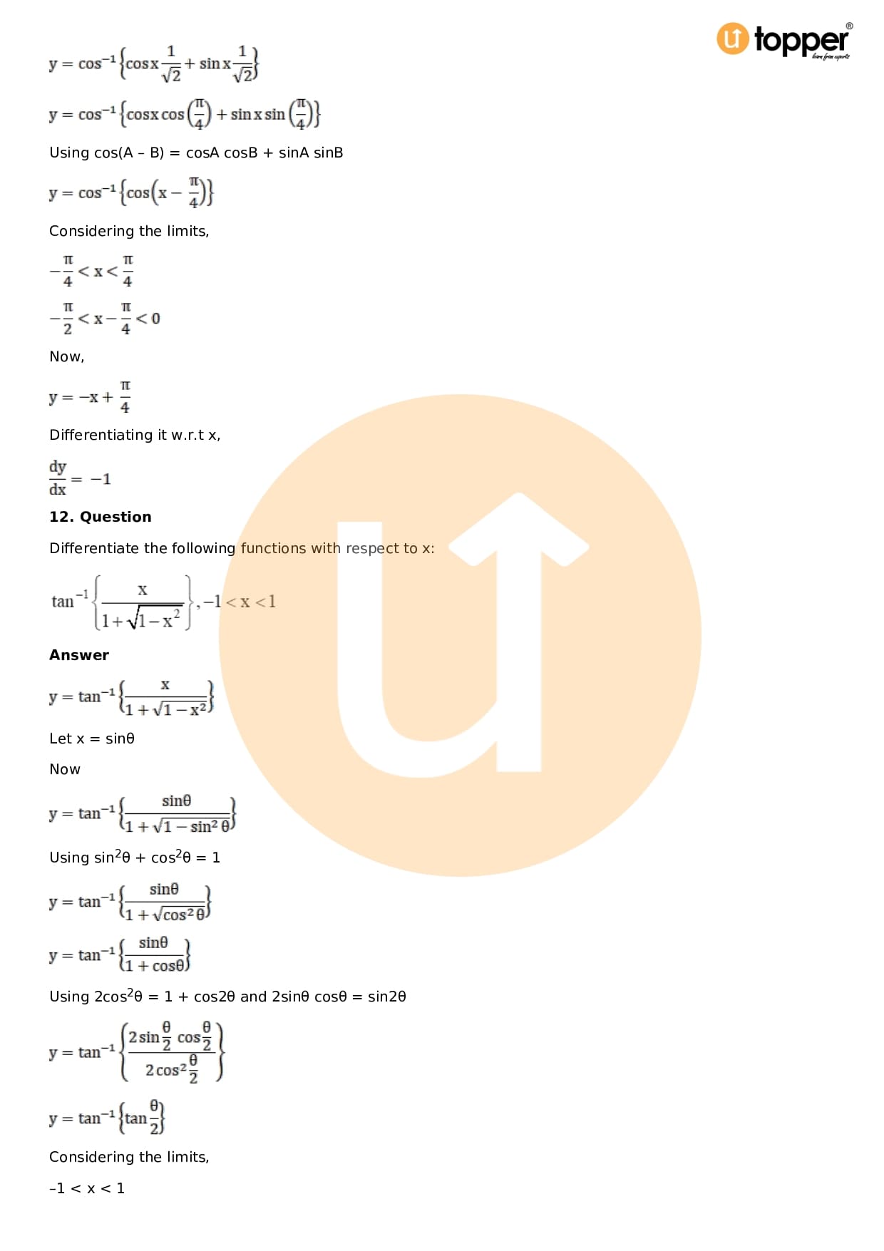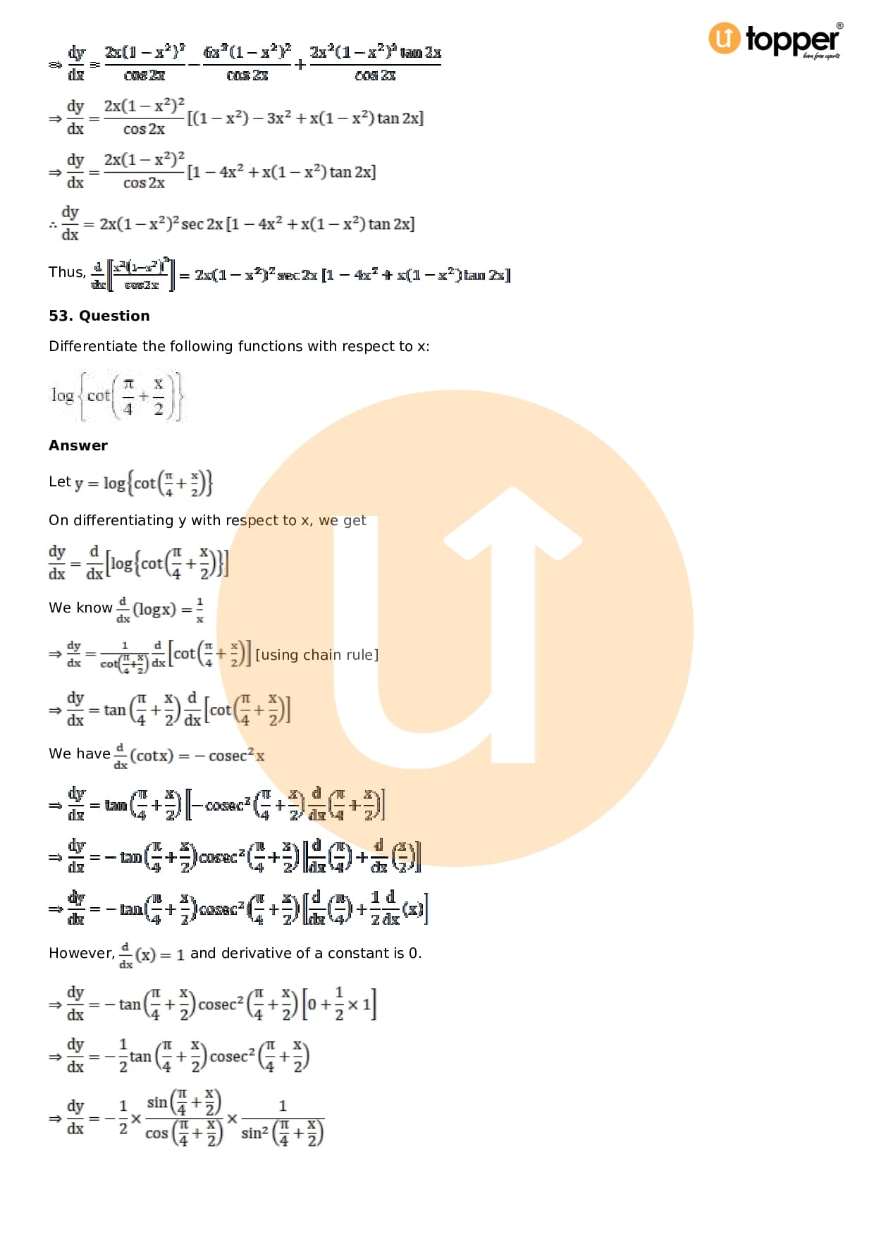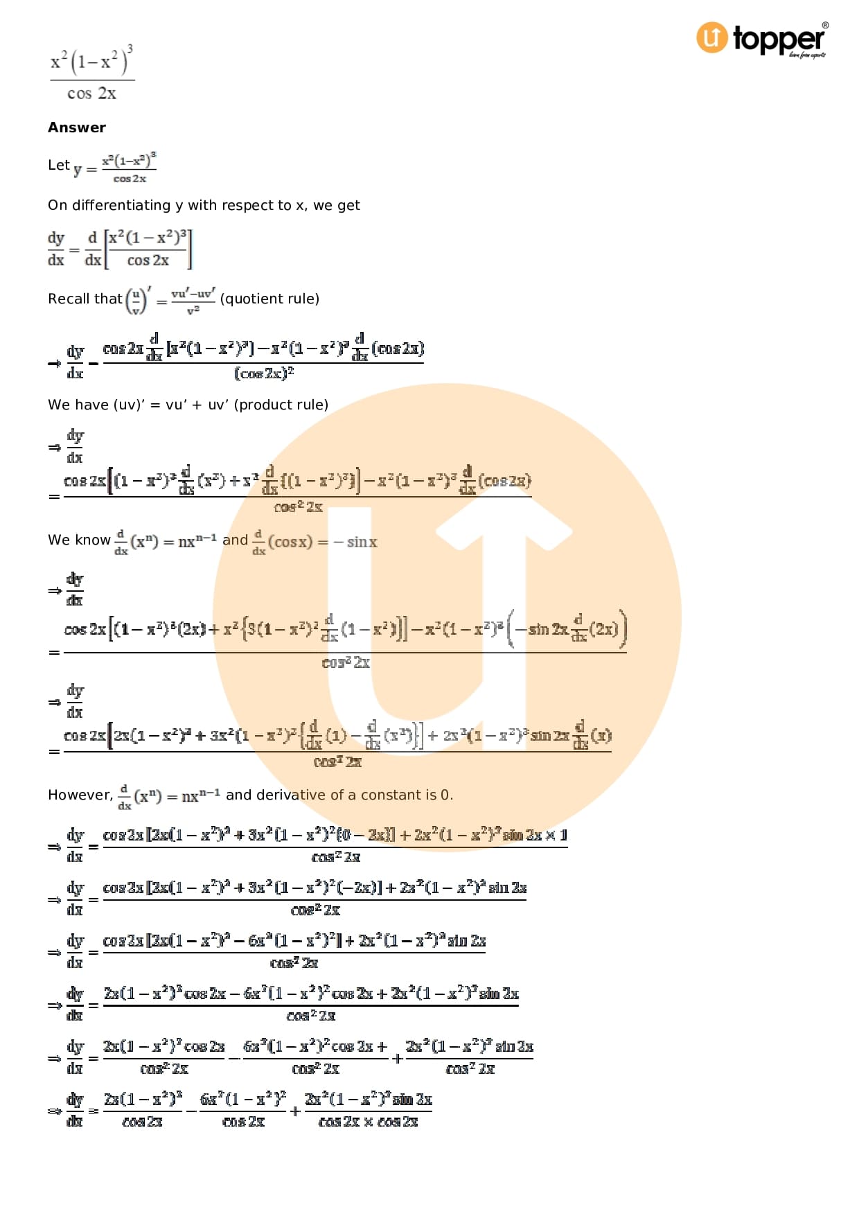 RD Sharma Class 12 Maths Chapter 11 Differentiation Solutions PDF Download