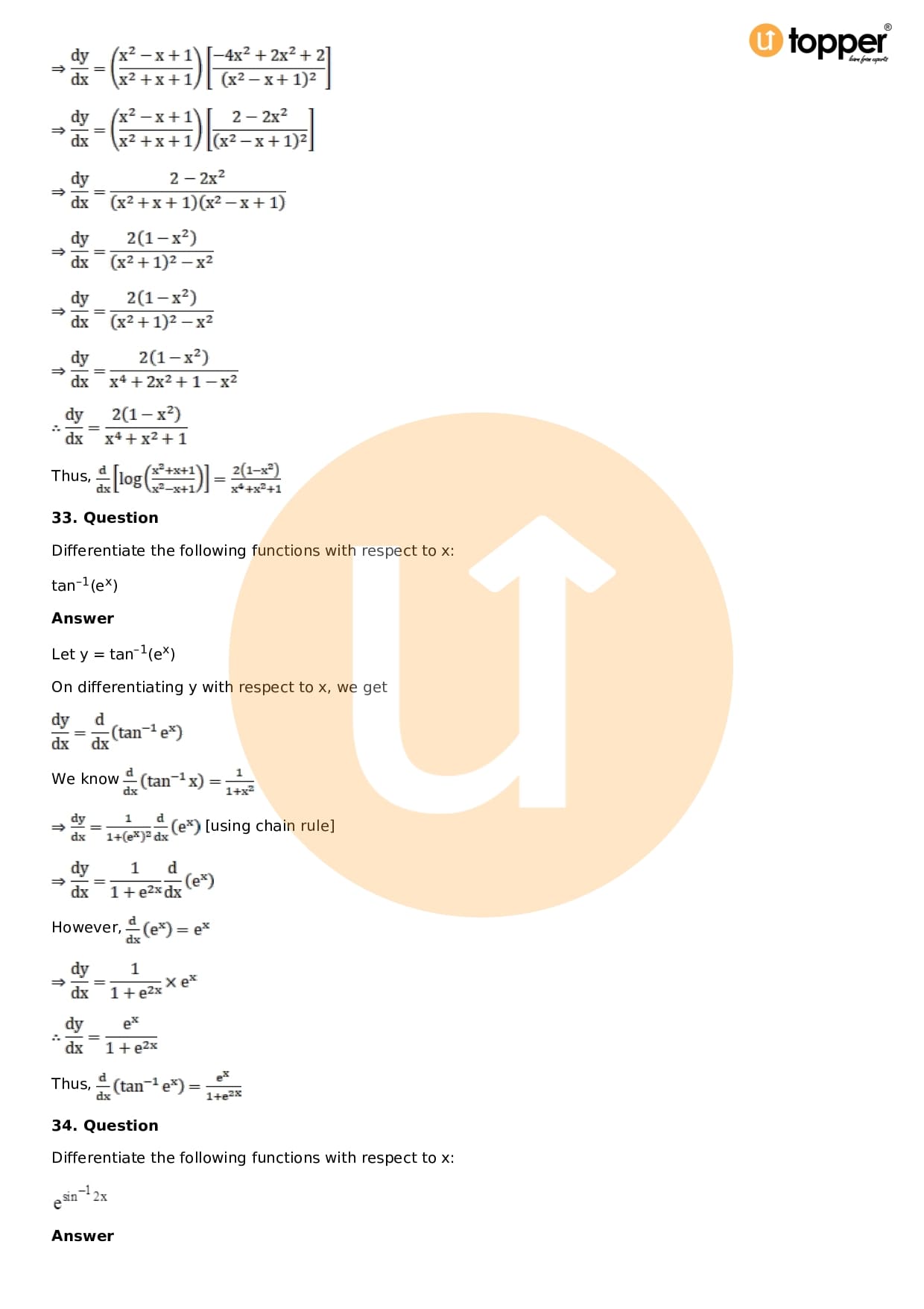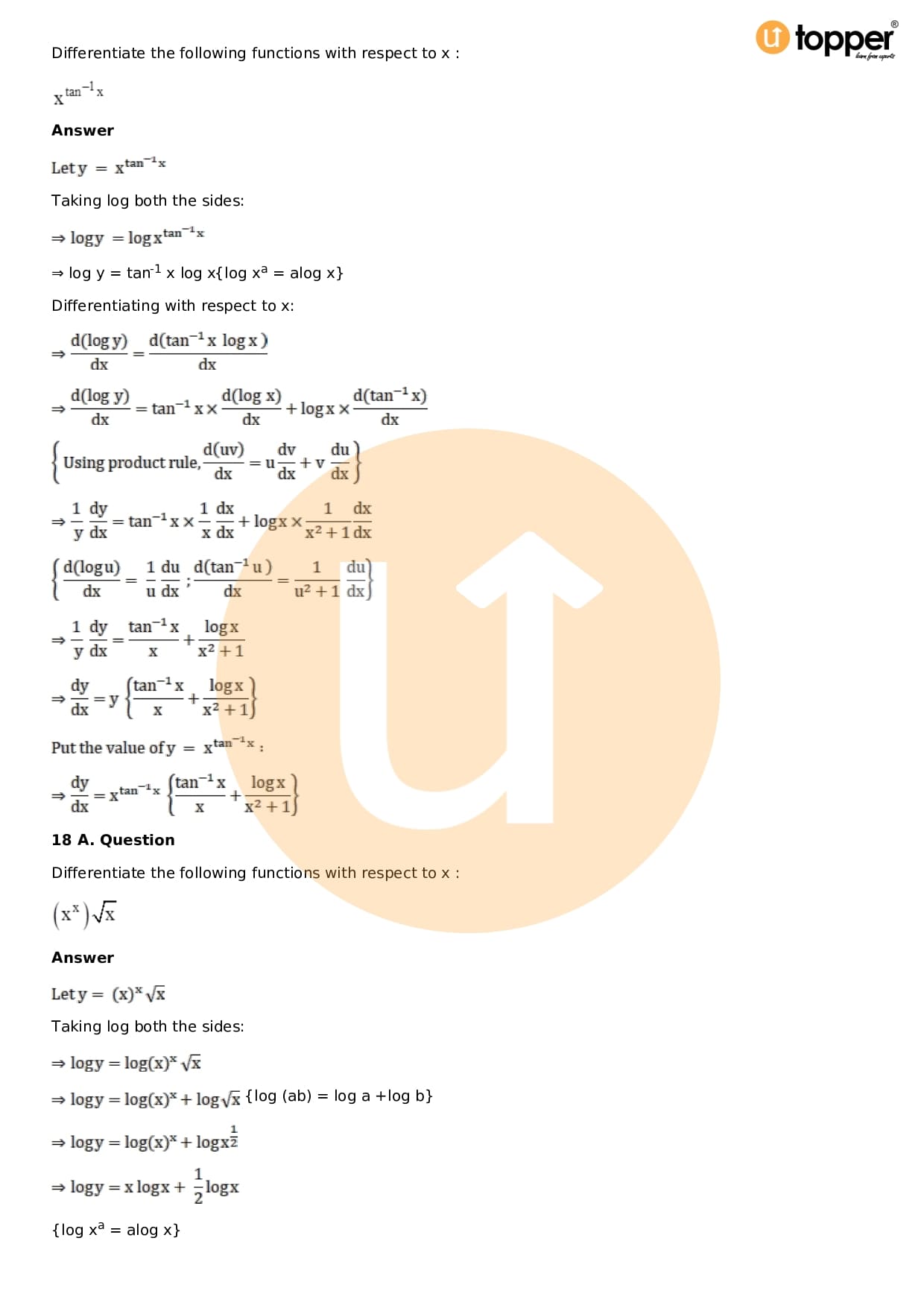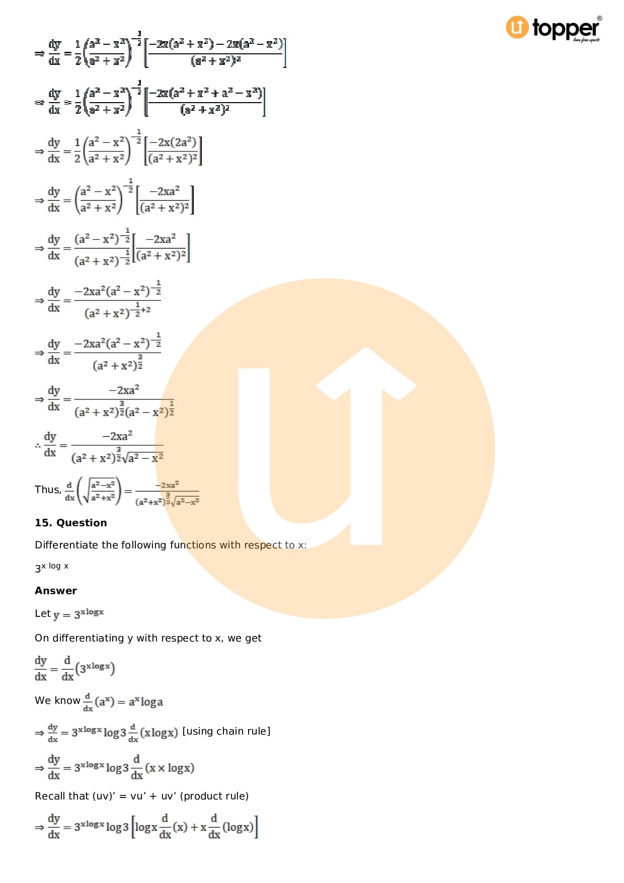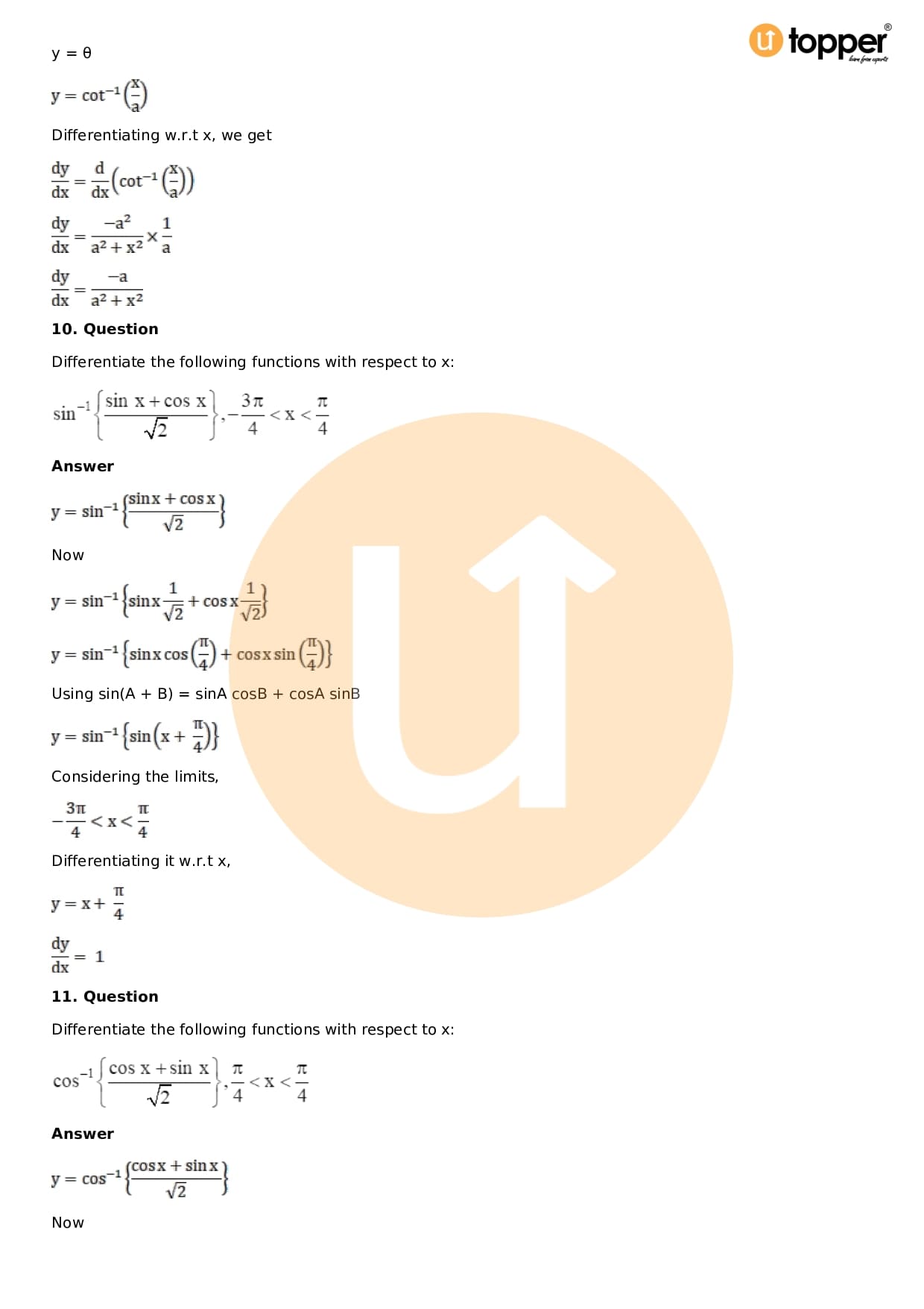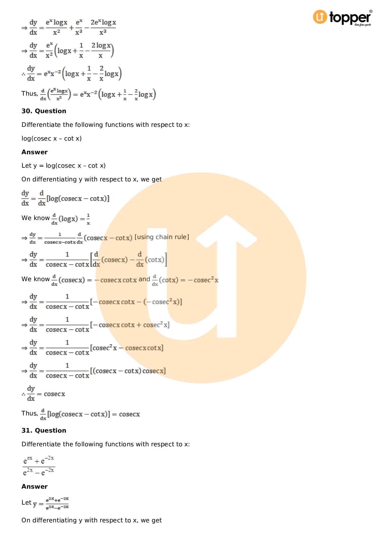 RD Sharma Class 12 Maths Chapter 11 Differentiation Solutions PDF Download