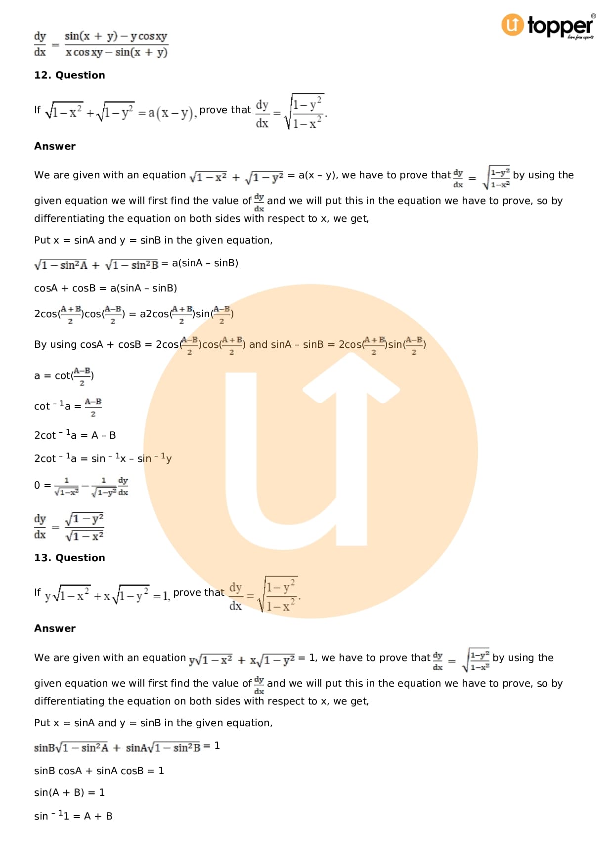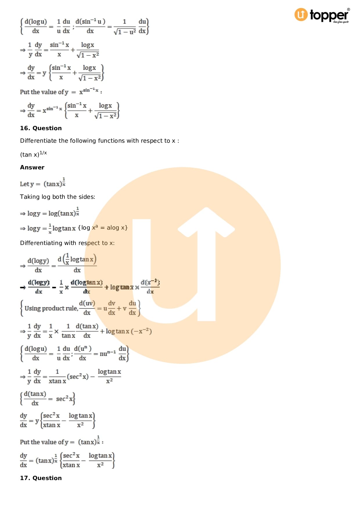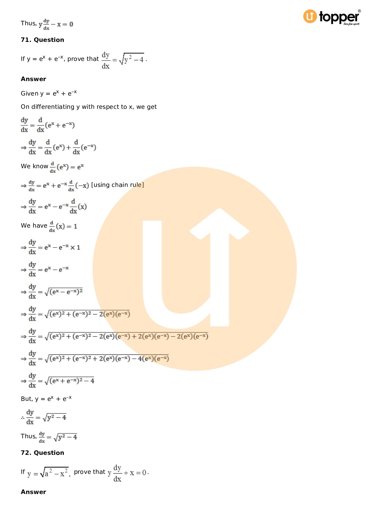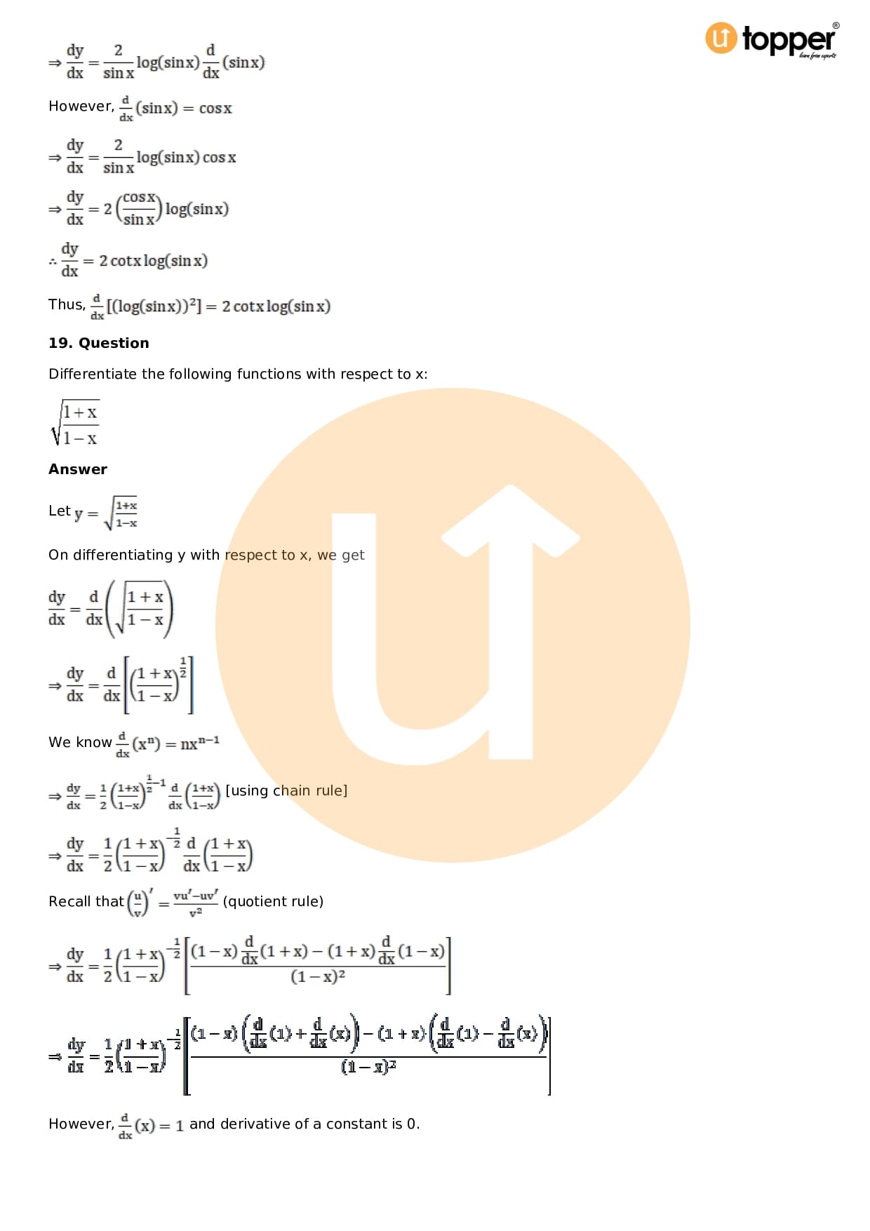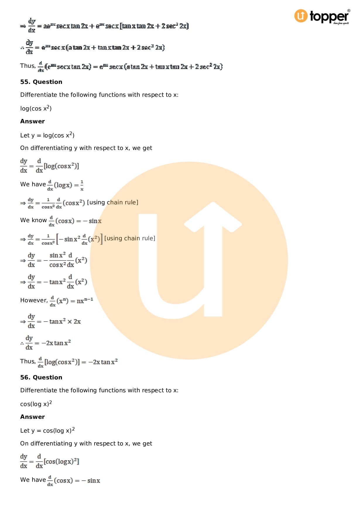 RD Sharma Class 12 Maths Chapter 11 Differentiation Solutions PDF Download