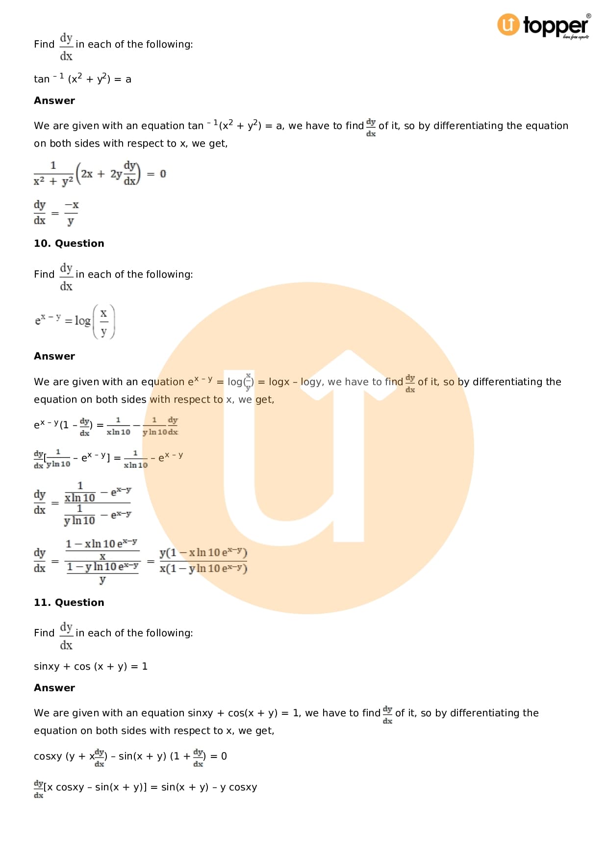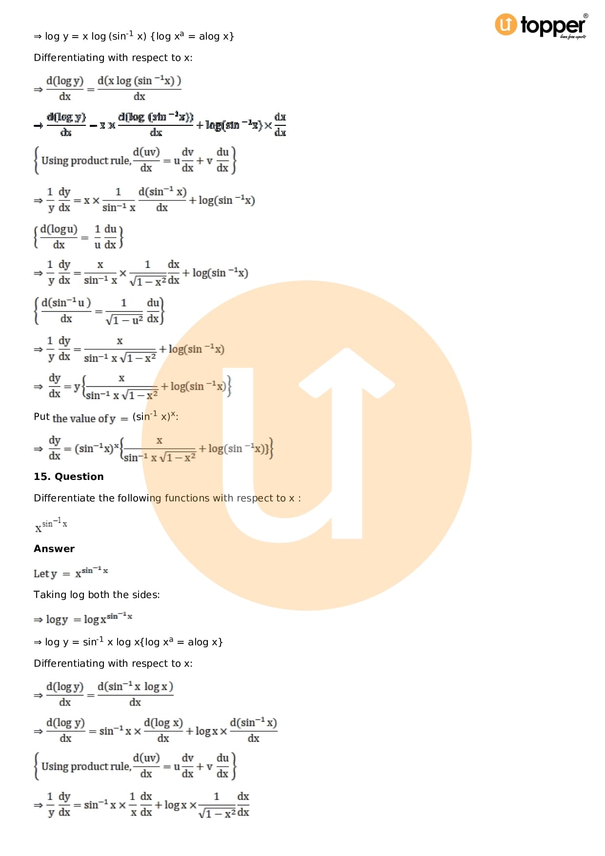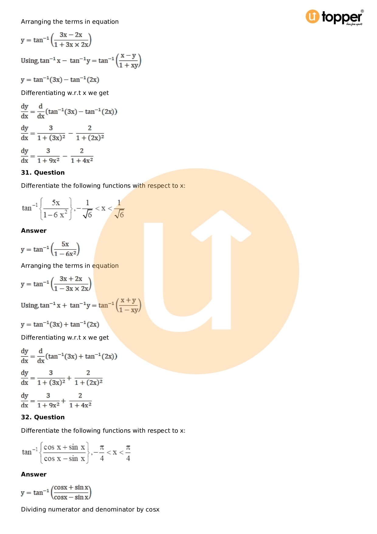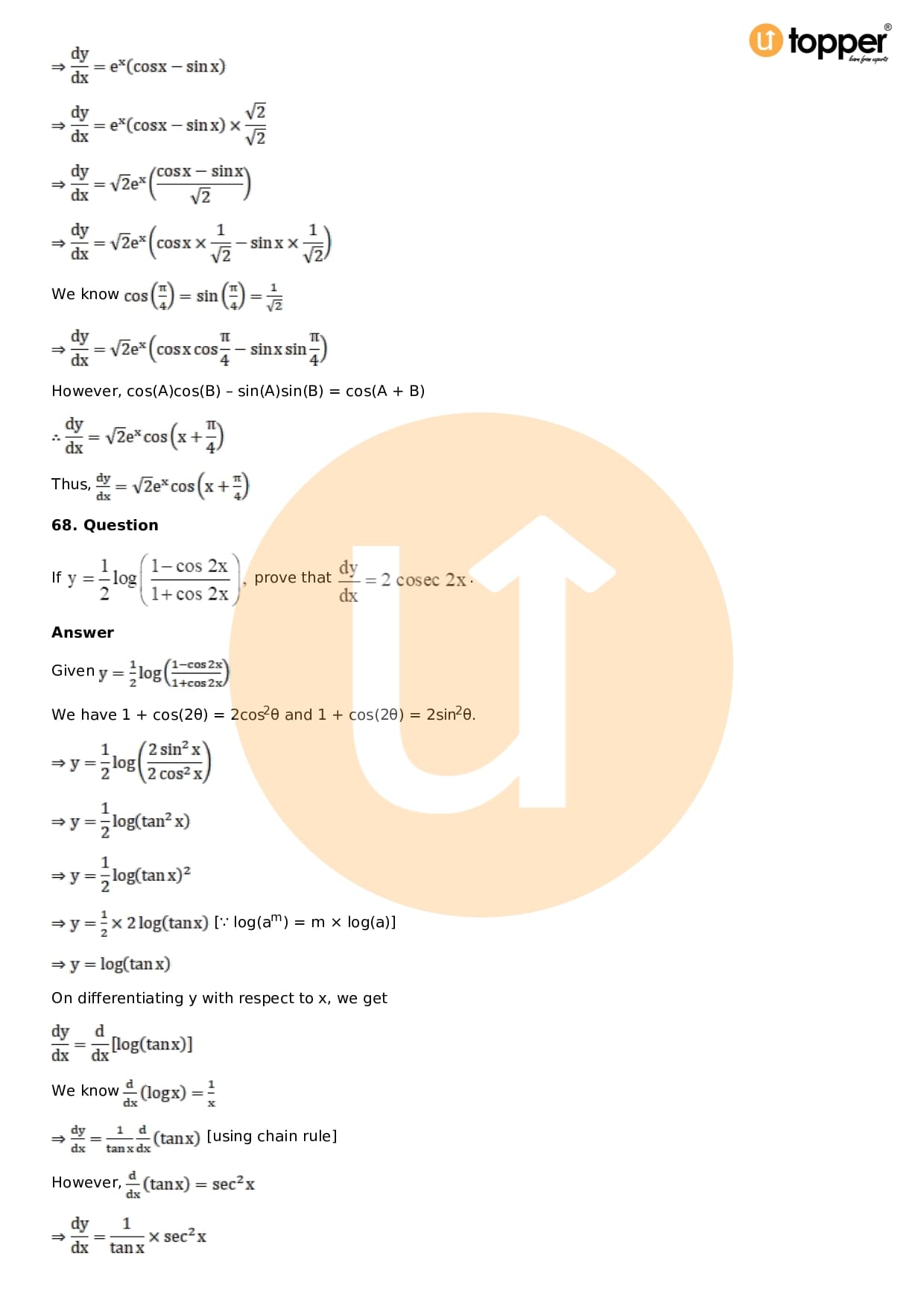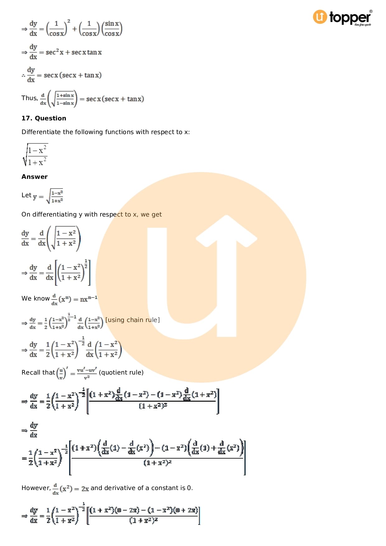 RD Sharma Class 12 Maths Chapter 11 Differentiation Solutions PDF Download