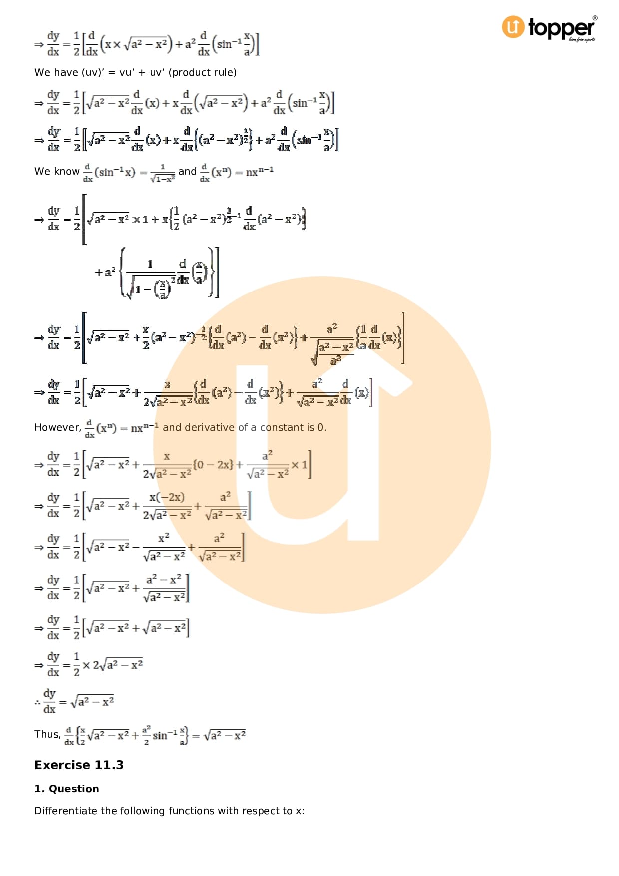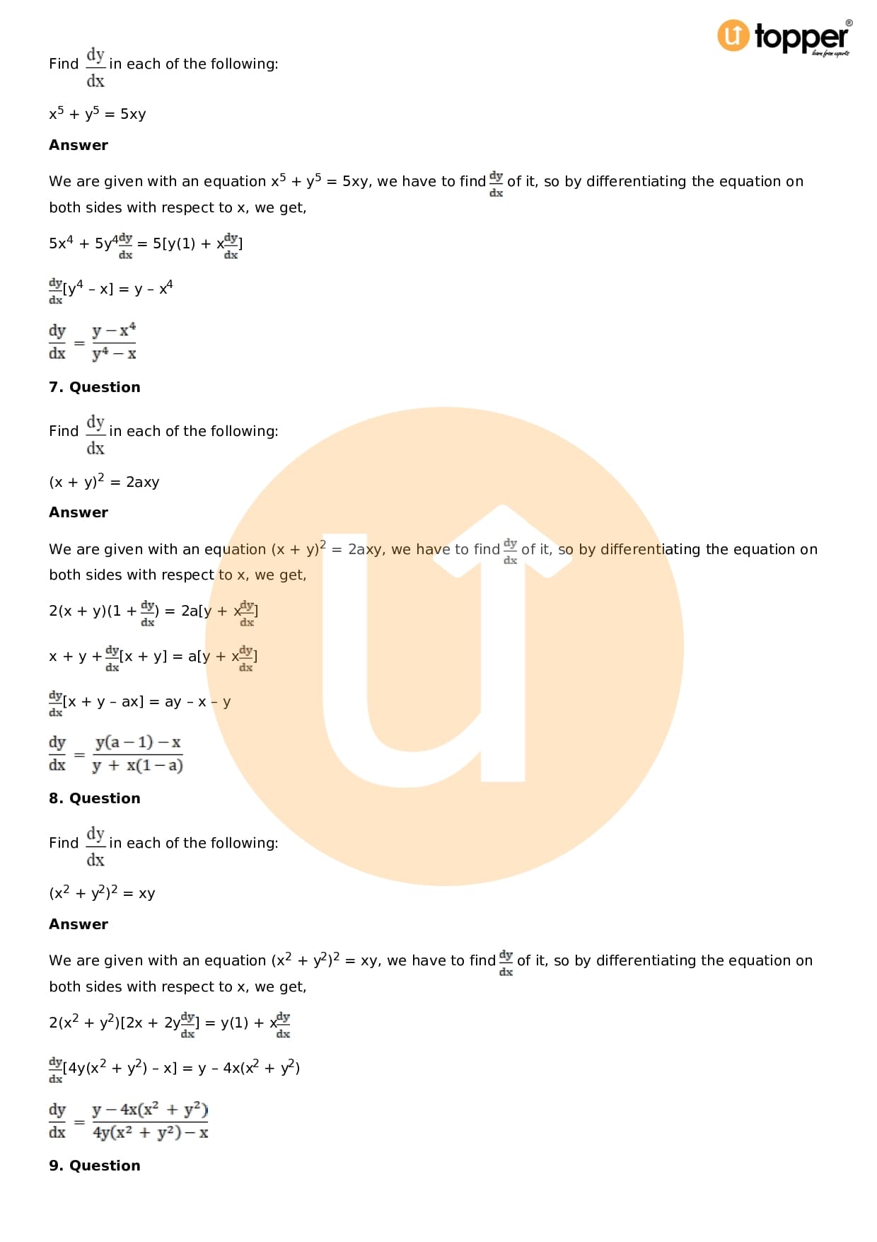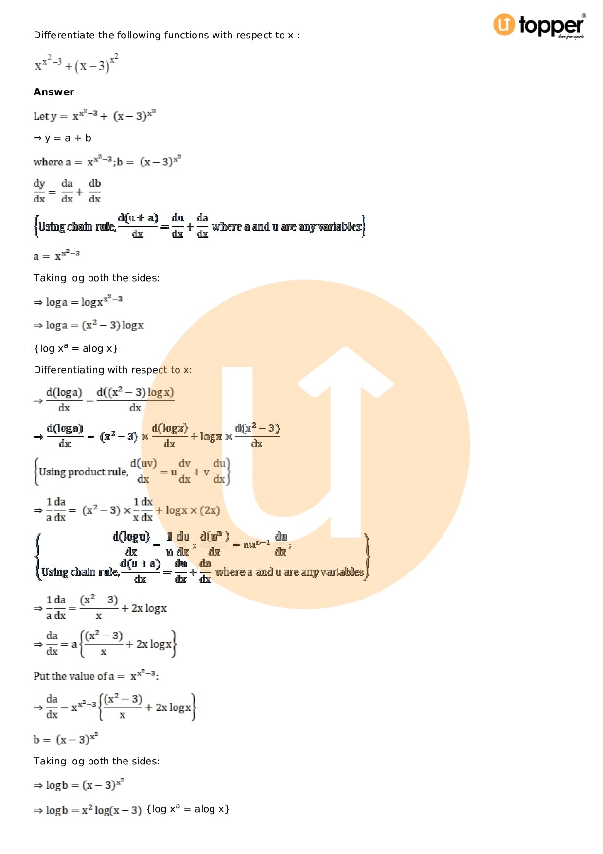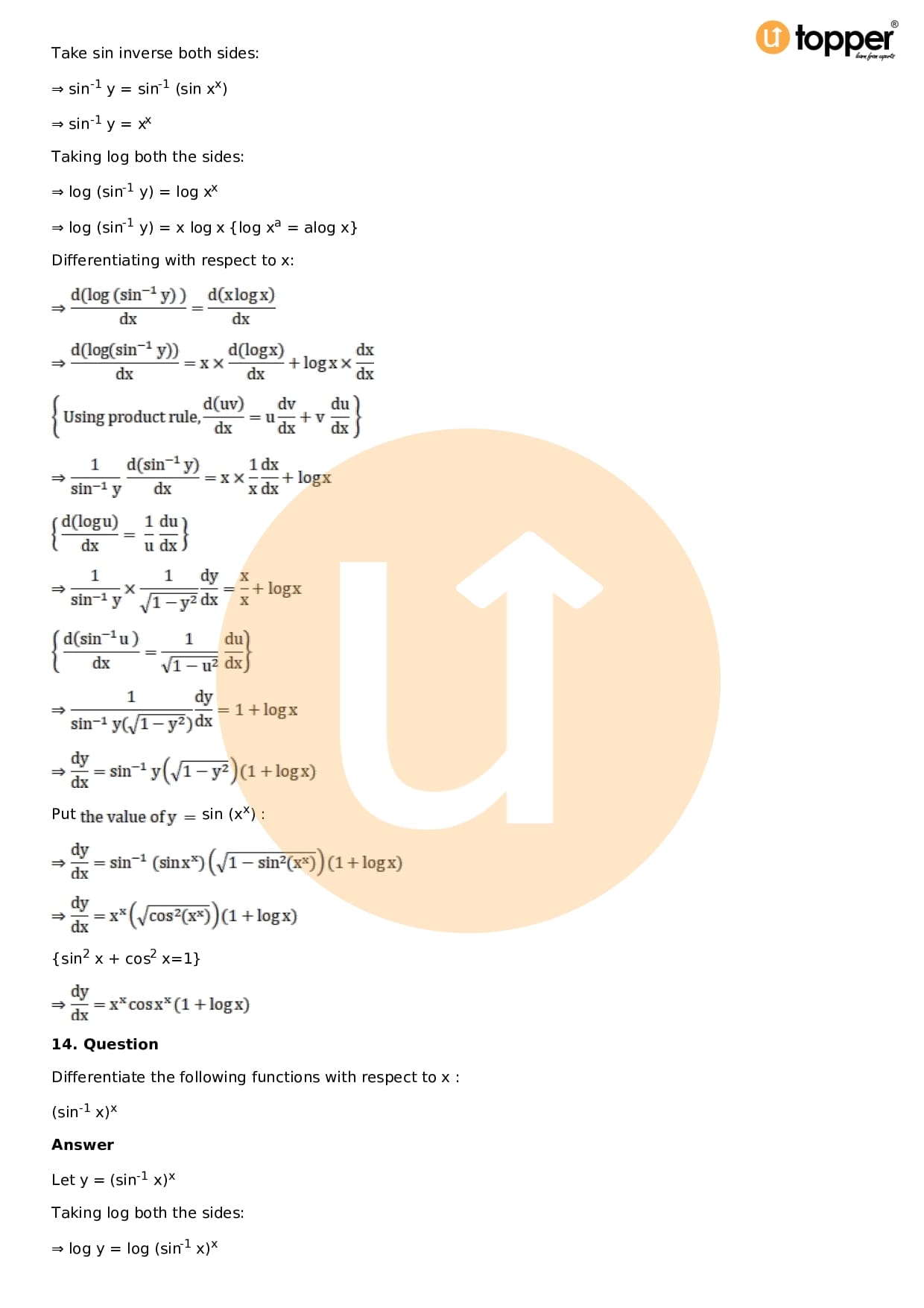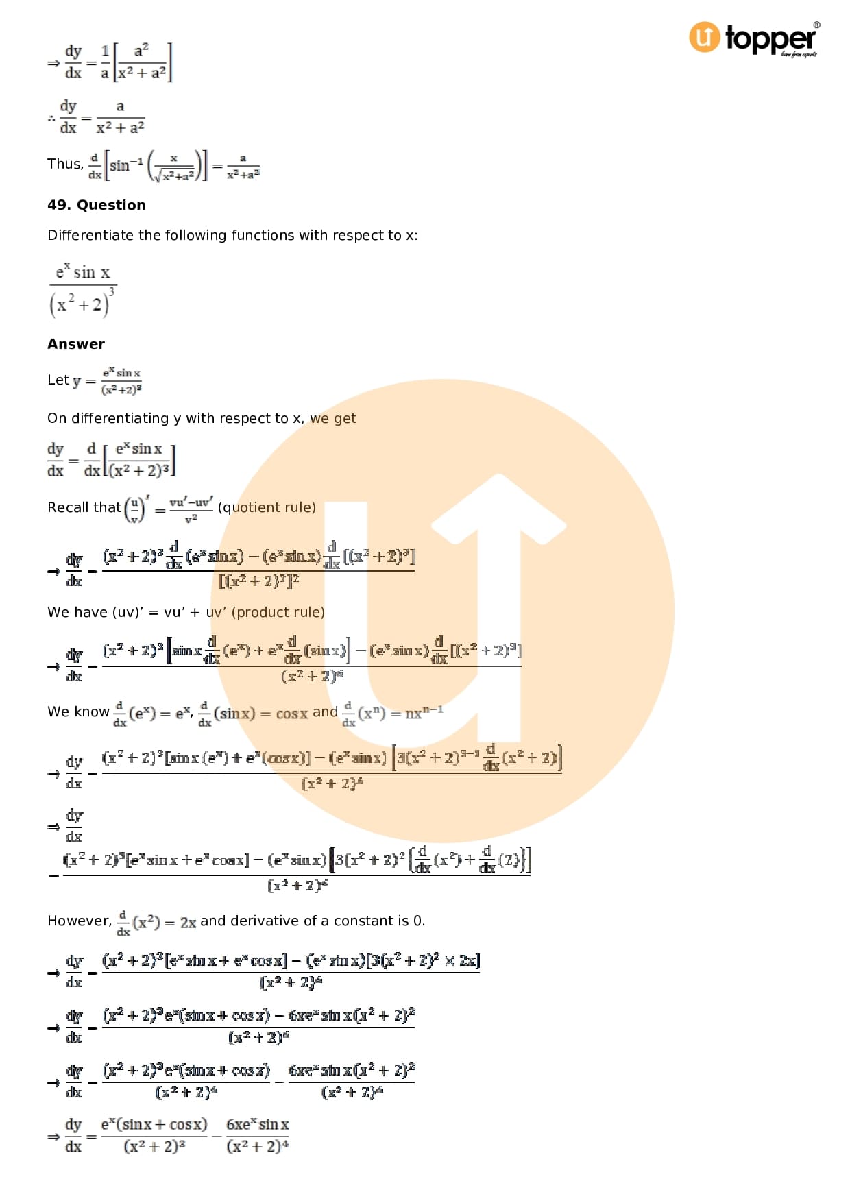 RD Sharma Class 12 Maths Chapter 11 Differentiation Solutions PDF Download