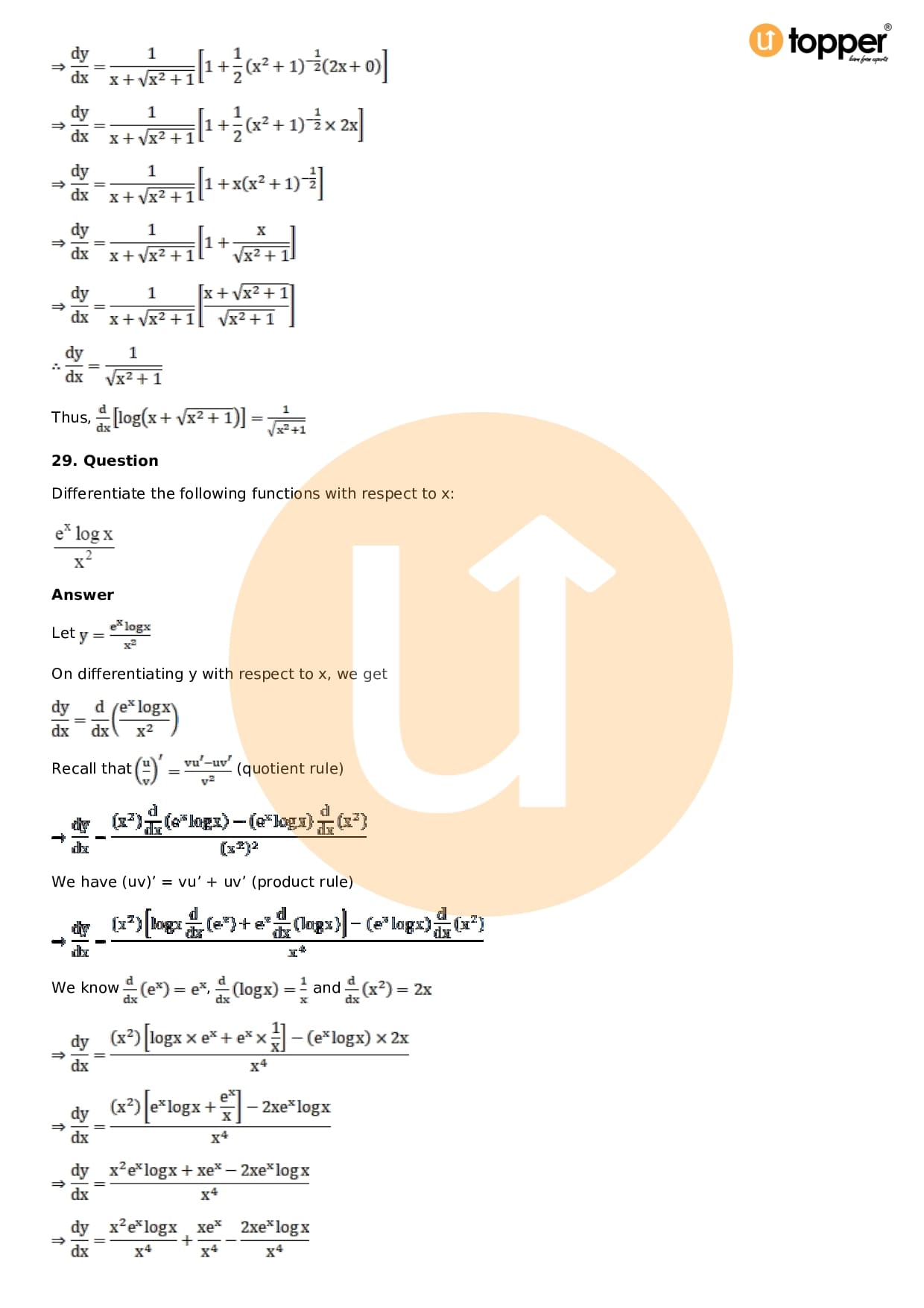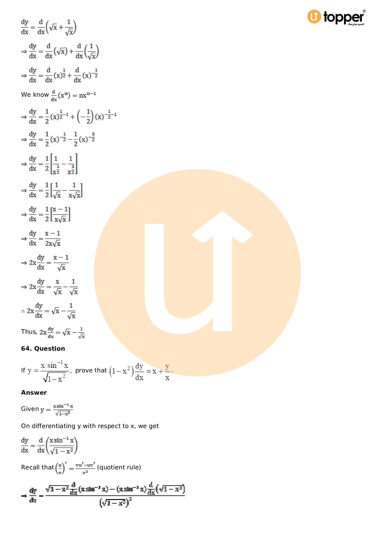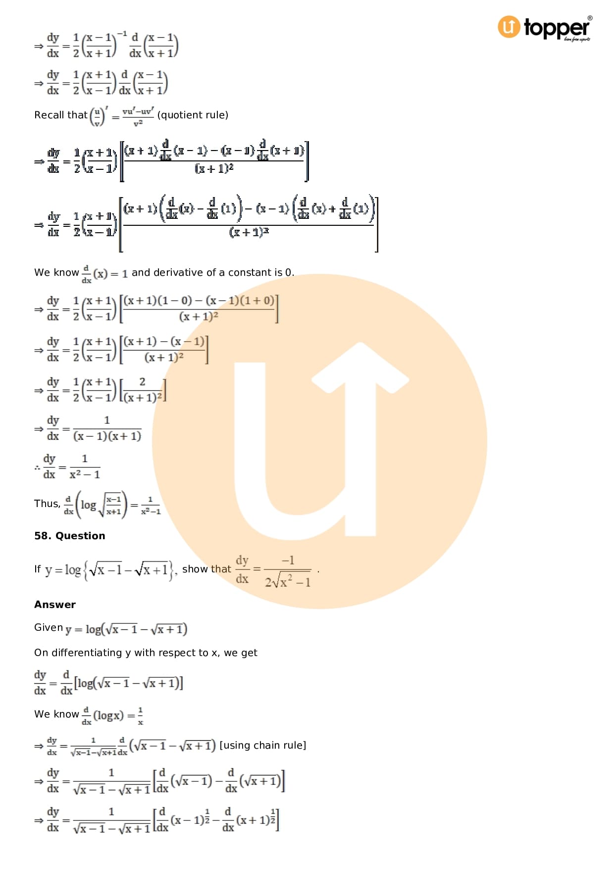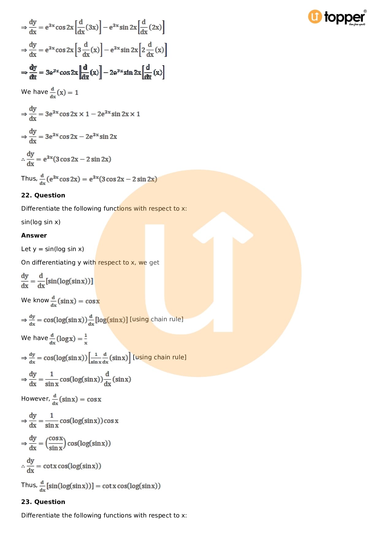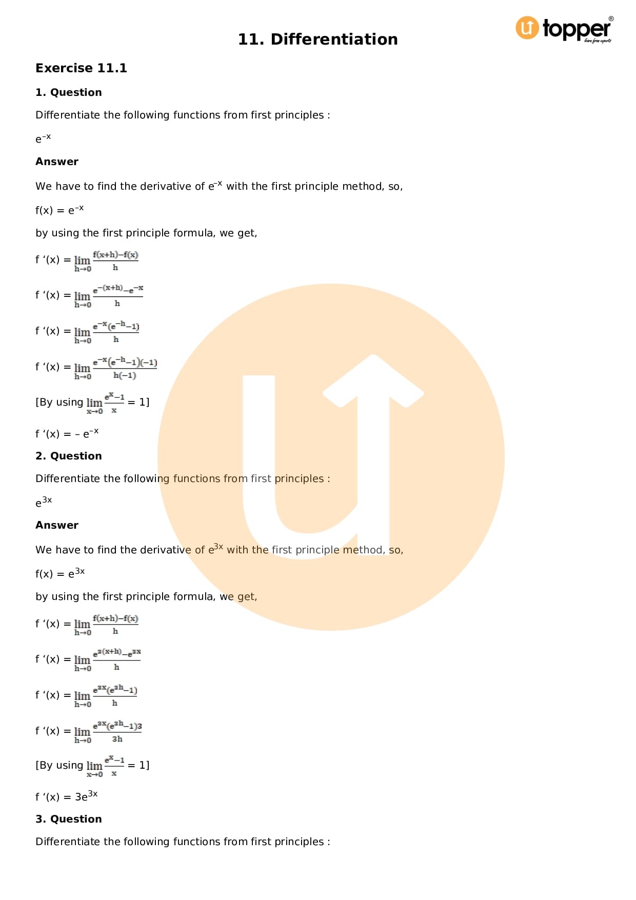 RD Sharma Class 12 Maths Chapter 11 Differentiation Solutions PDF Download