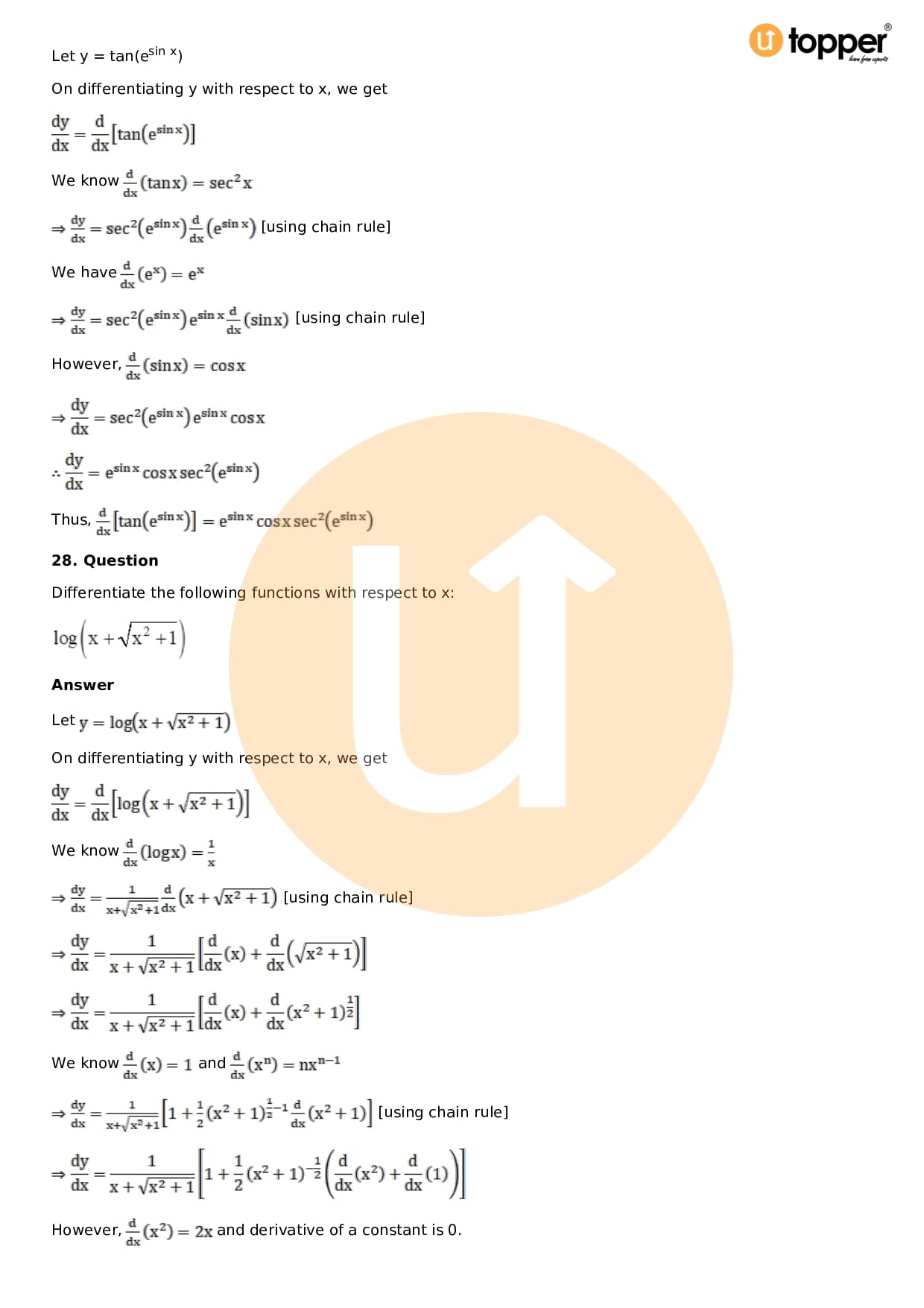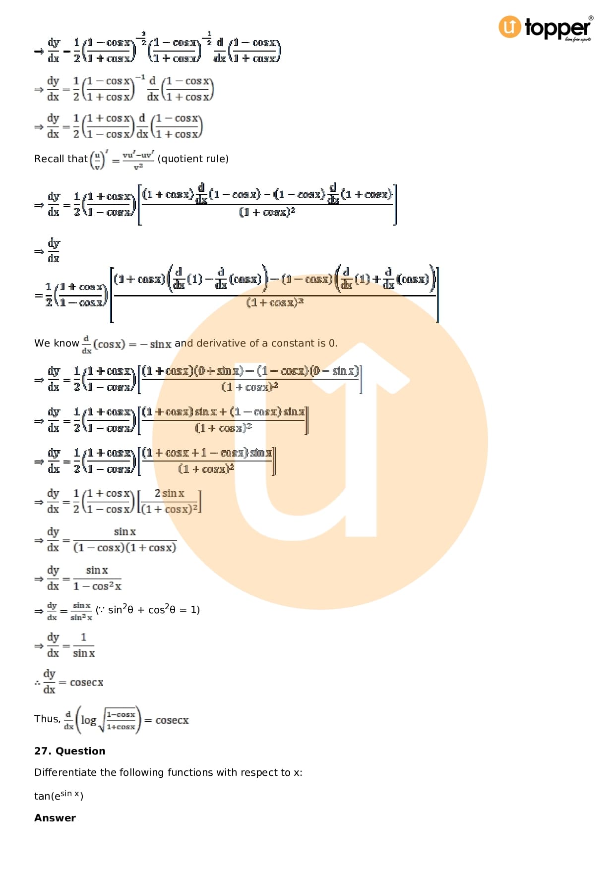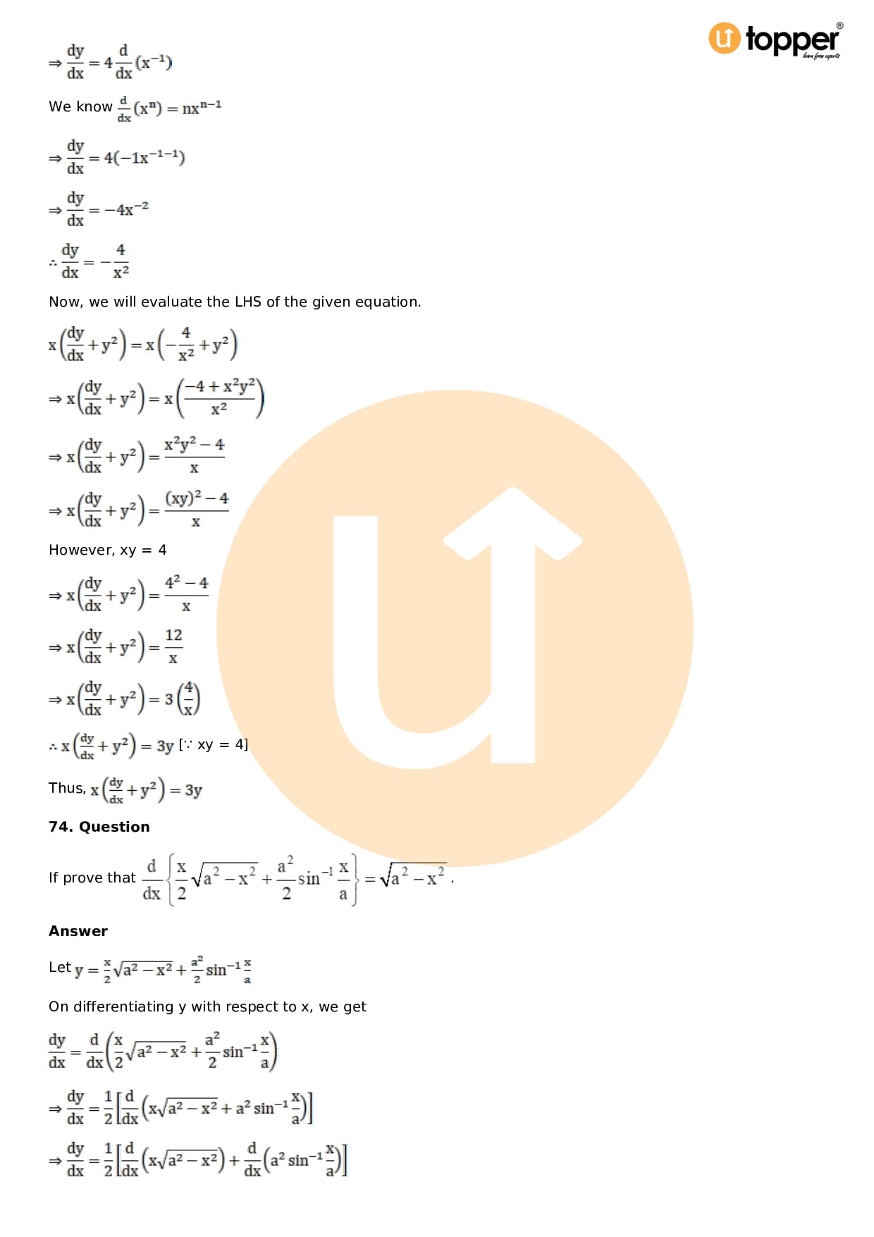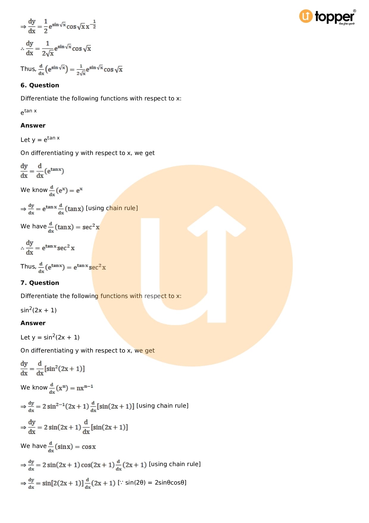 RD Sharma Class 12 Maths Chapter 11 Differentiation Solutions PDF Download