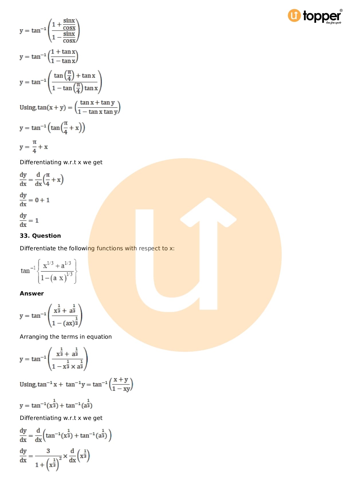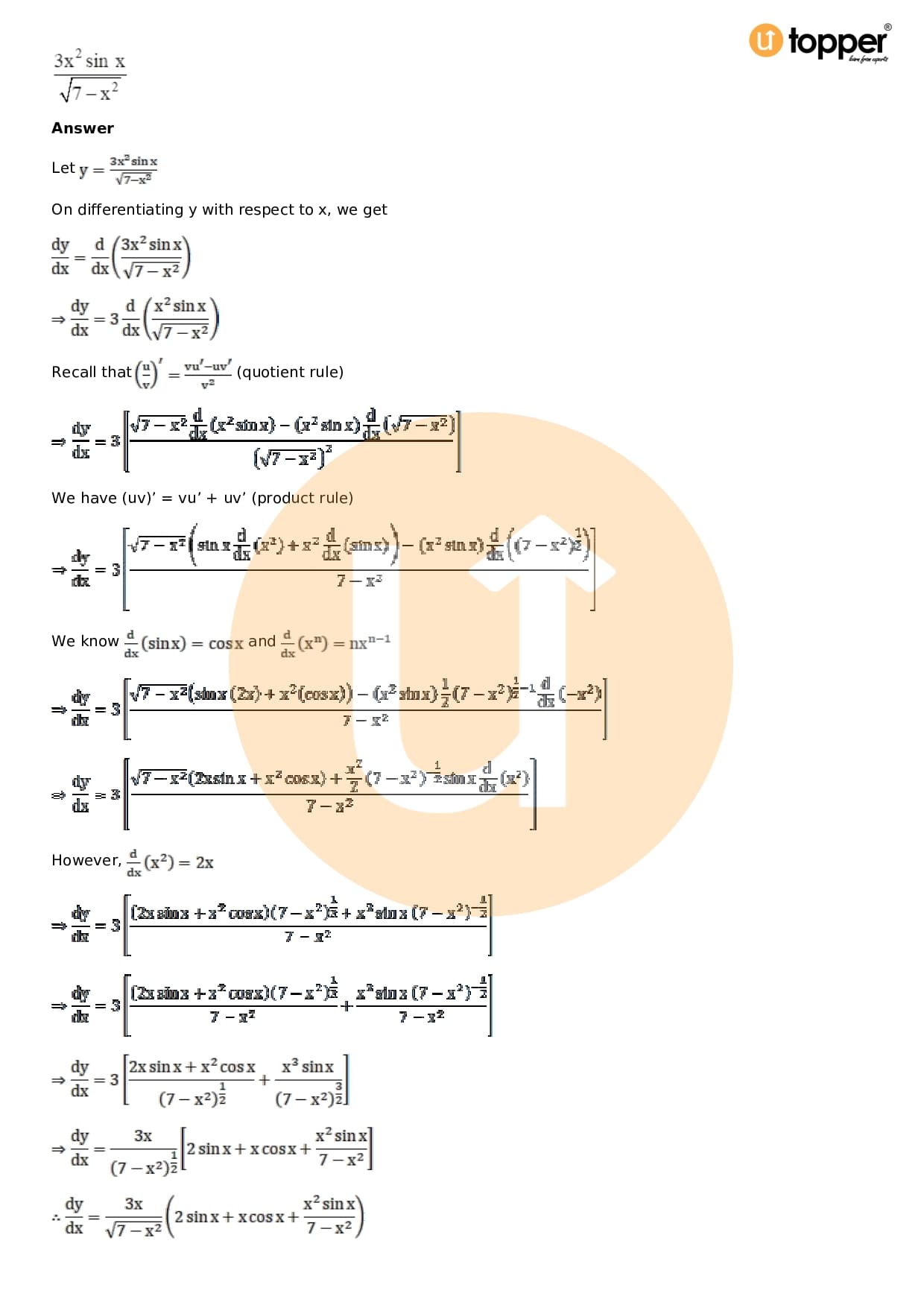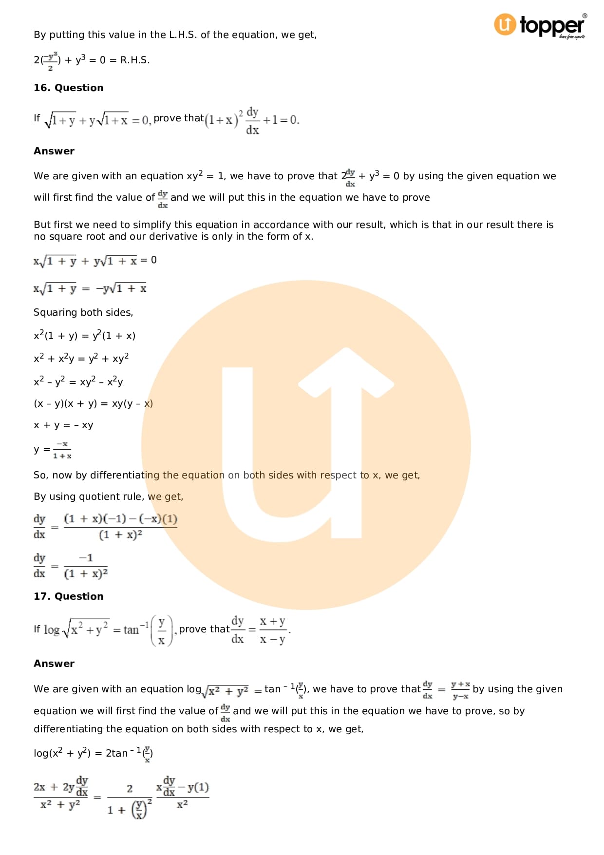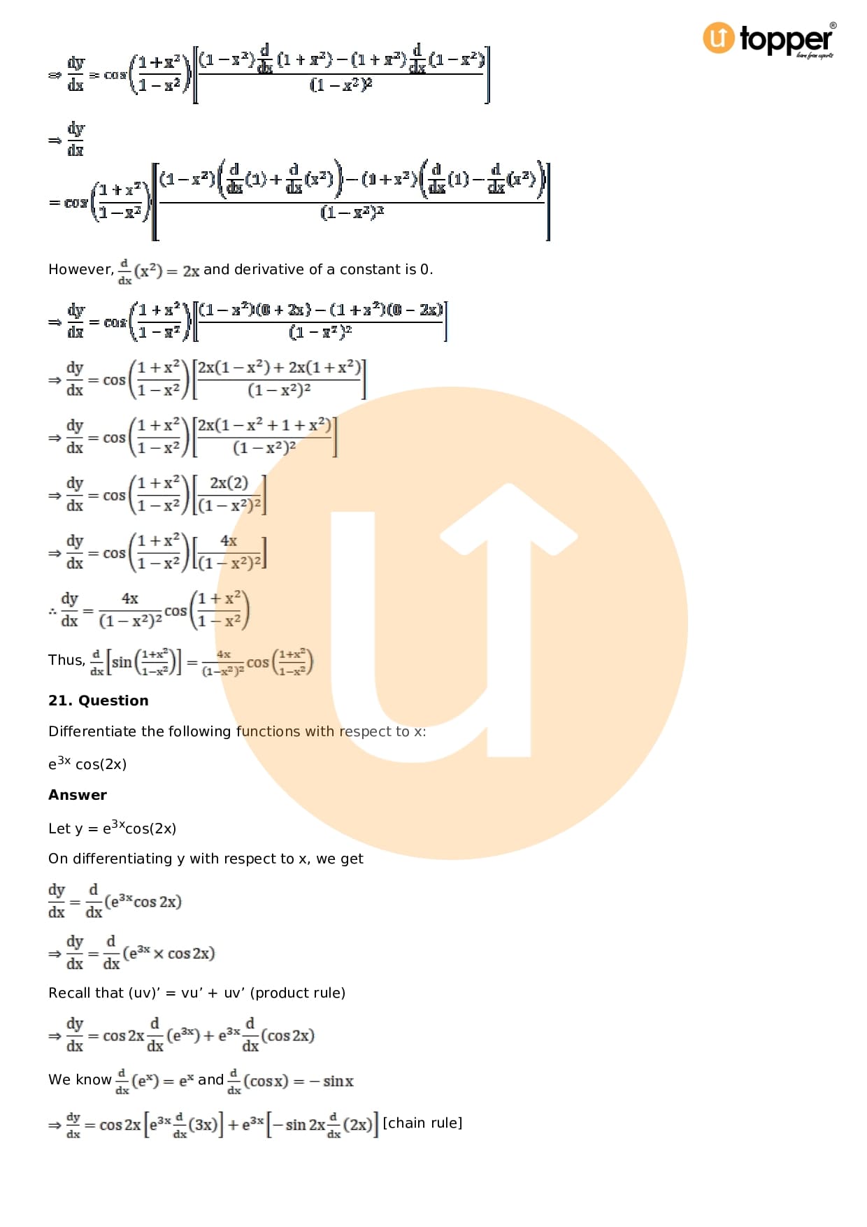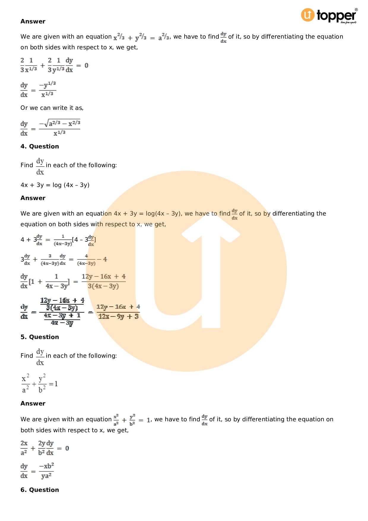 RD Sharma Class 12 Maths Chapter 11 Differentiation Solutions PDF Download