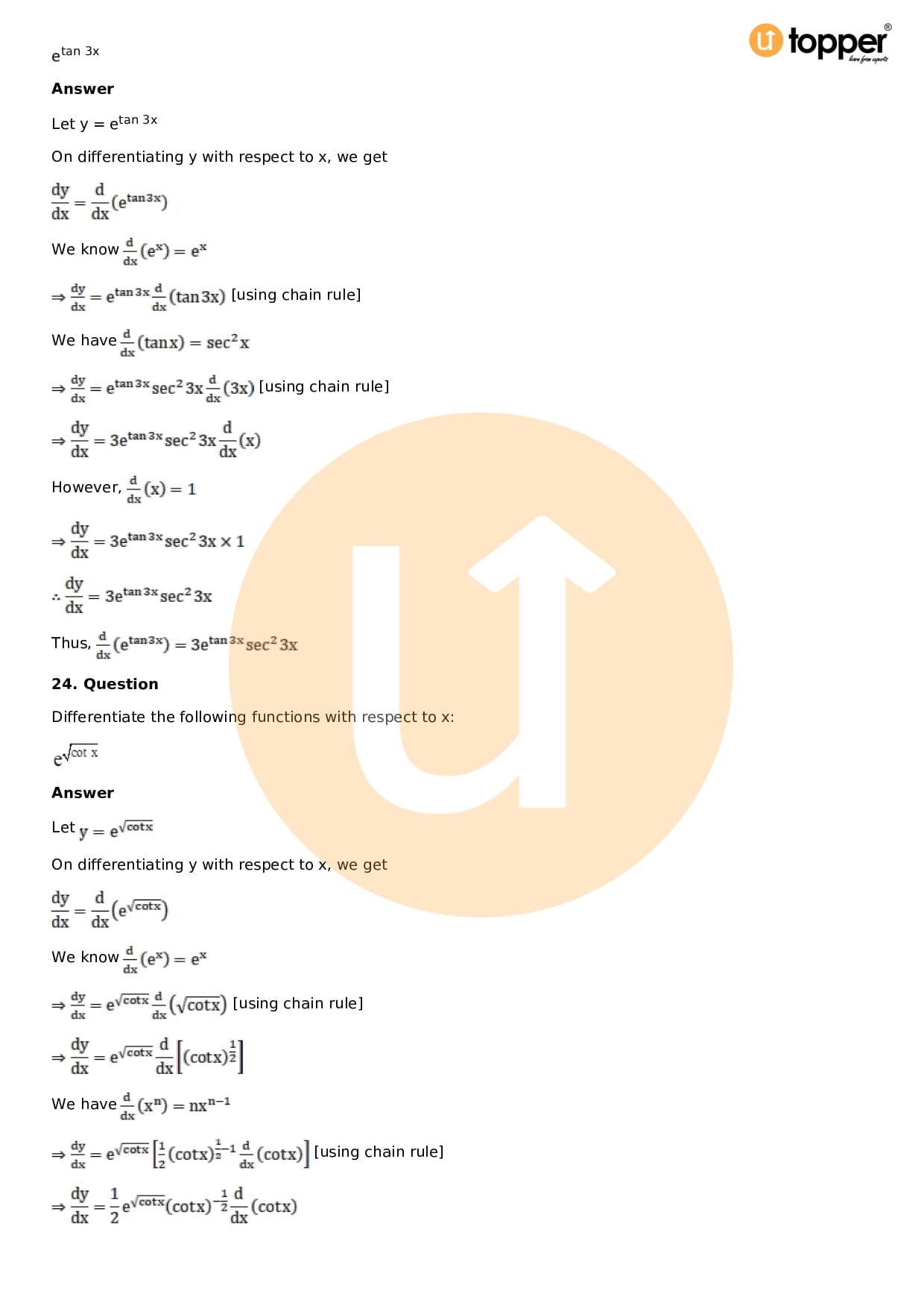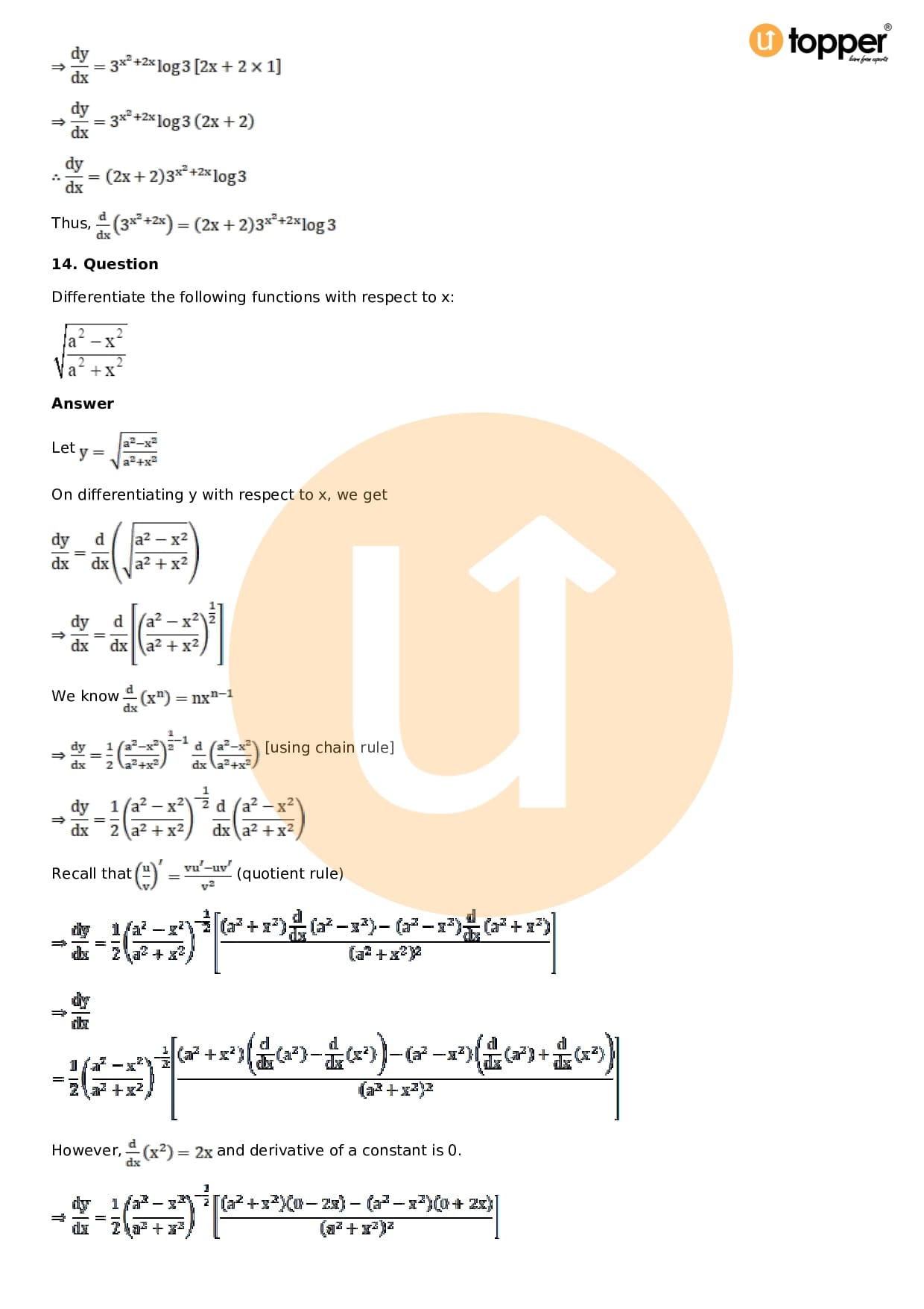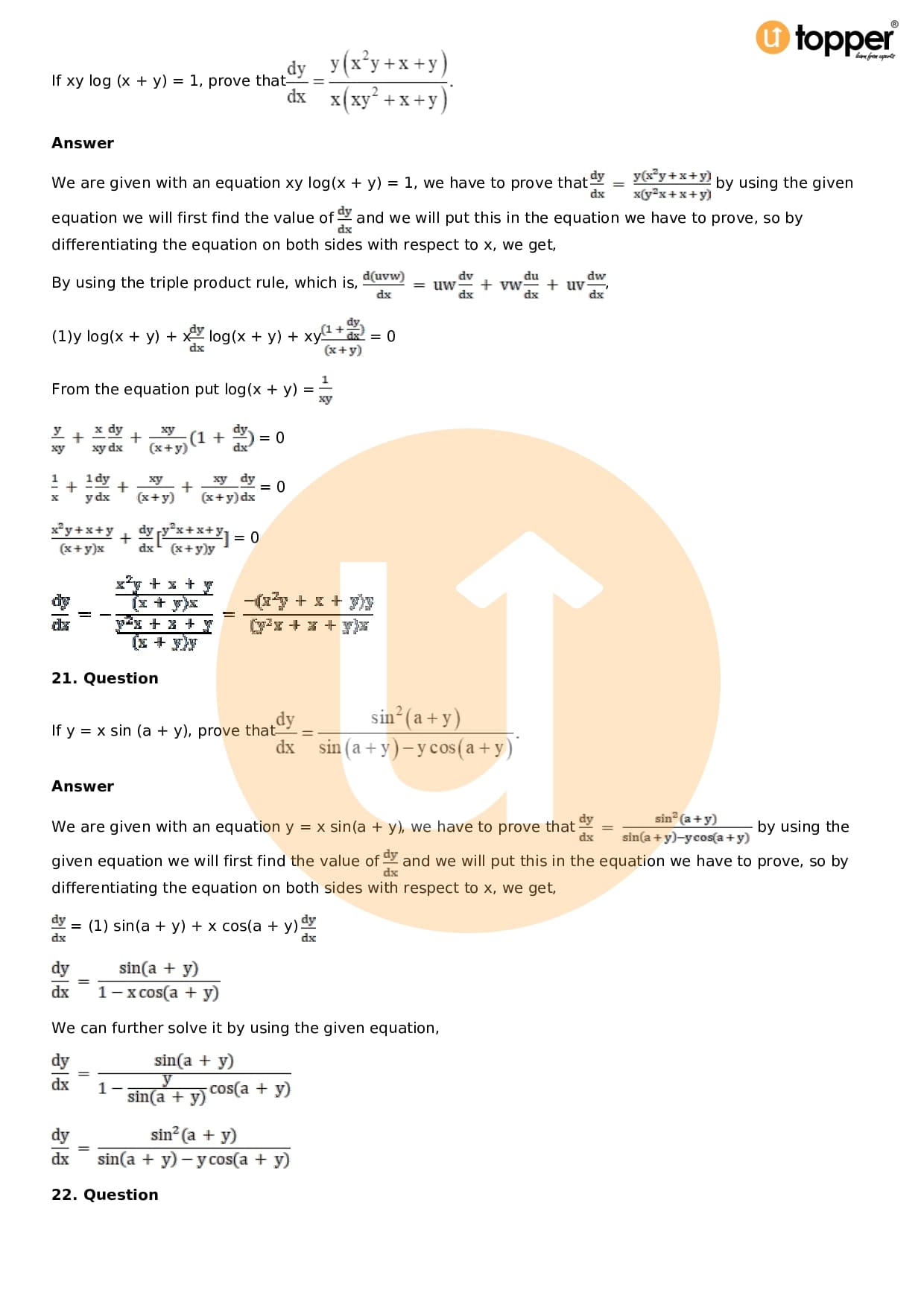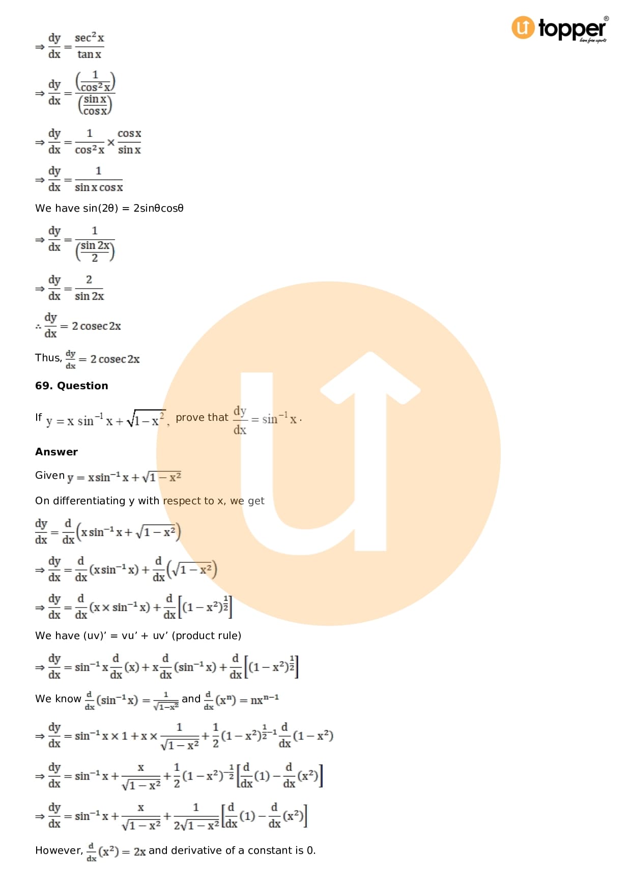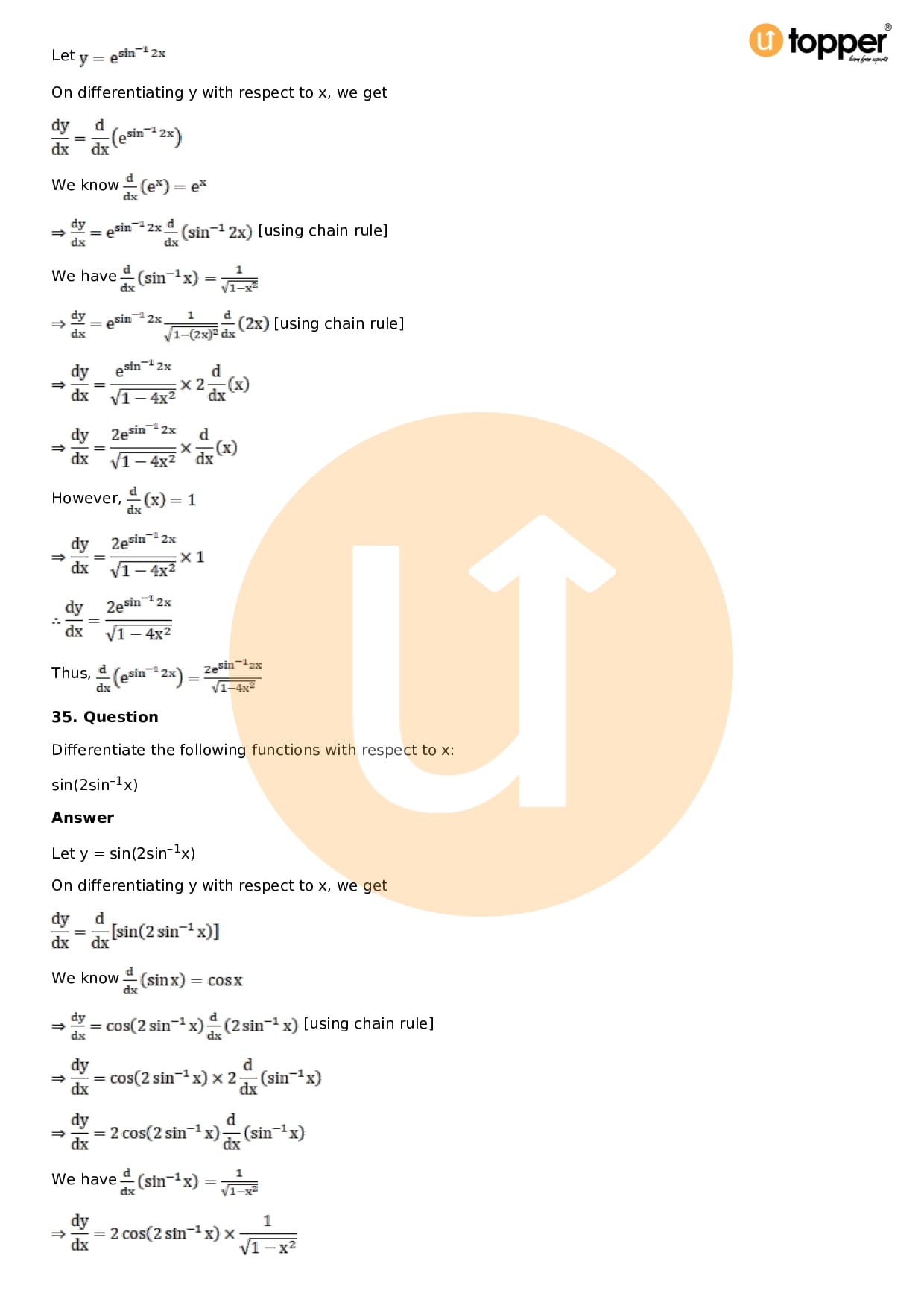 RD Sharma Class 12 Maths Chapter 11 Differentiation Solutions PDF Download