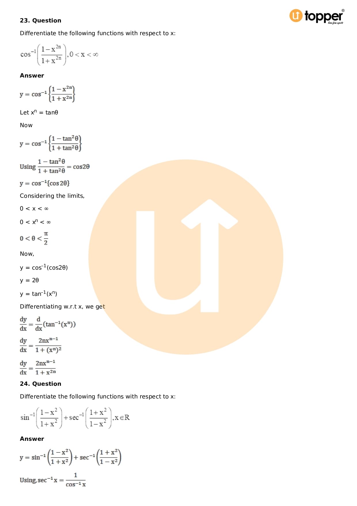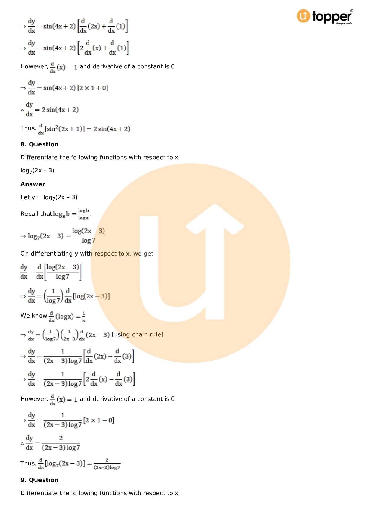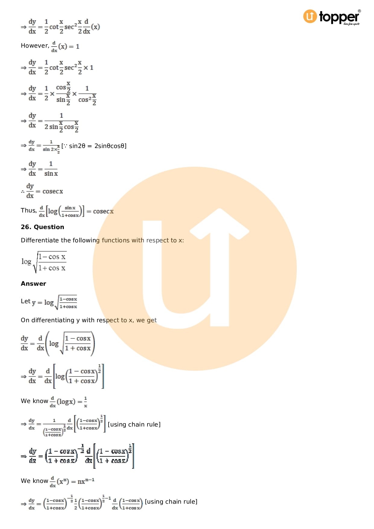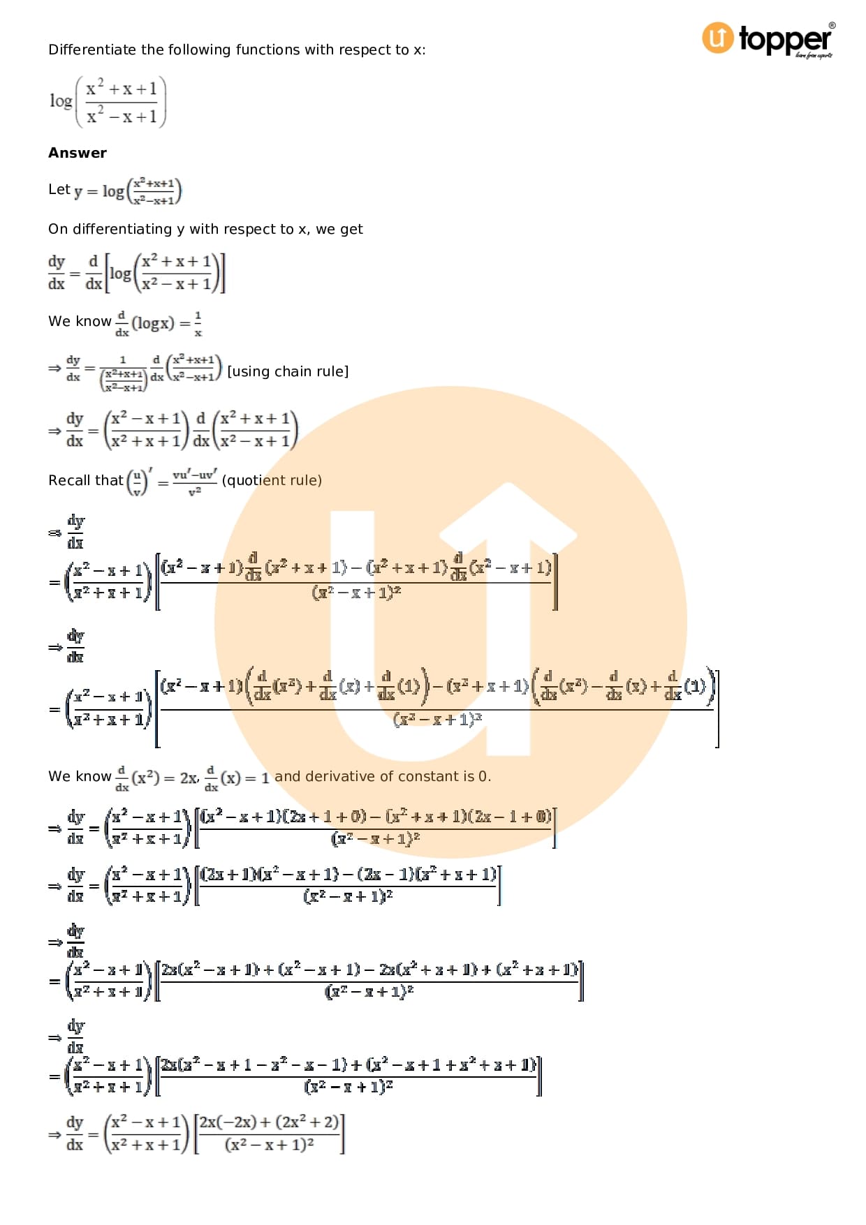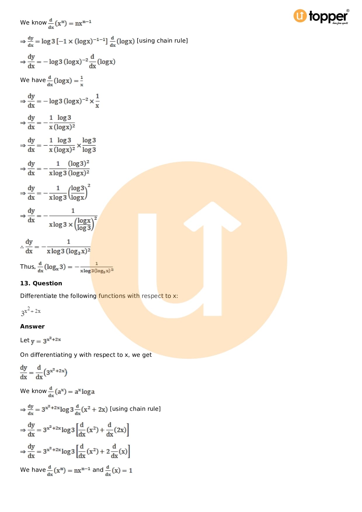 RD Sharma Class 12 Maths Chapter 11 Differentiation Solutions PDF Download