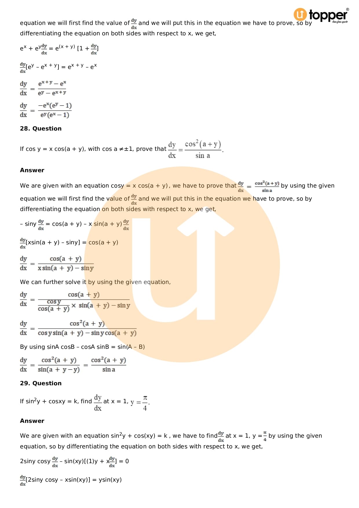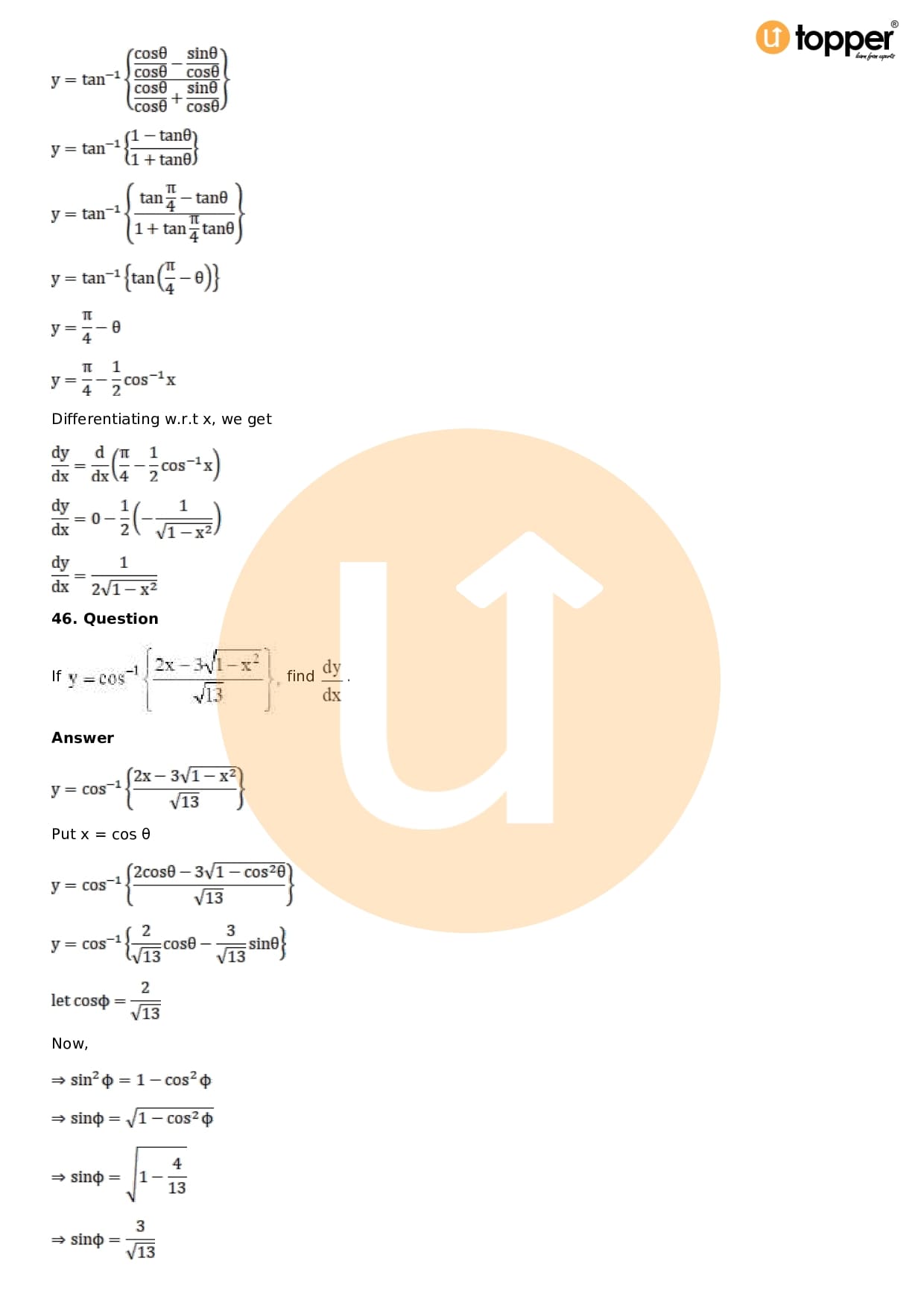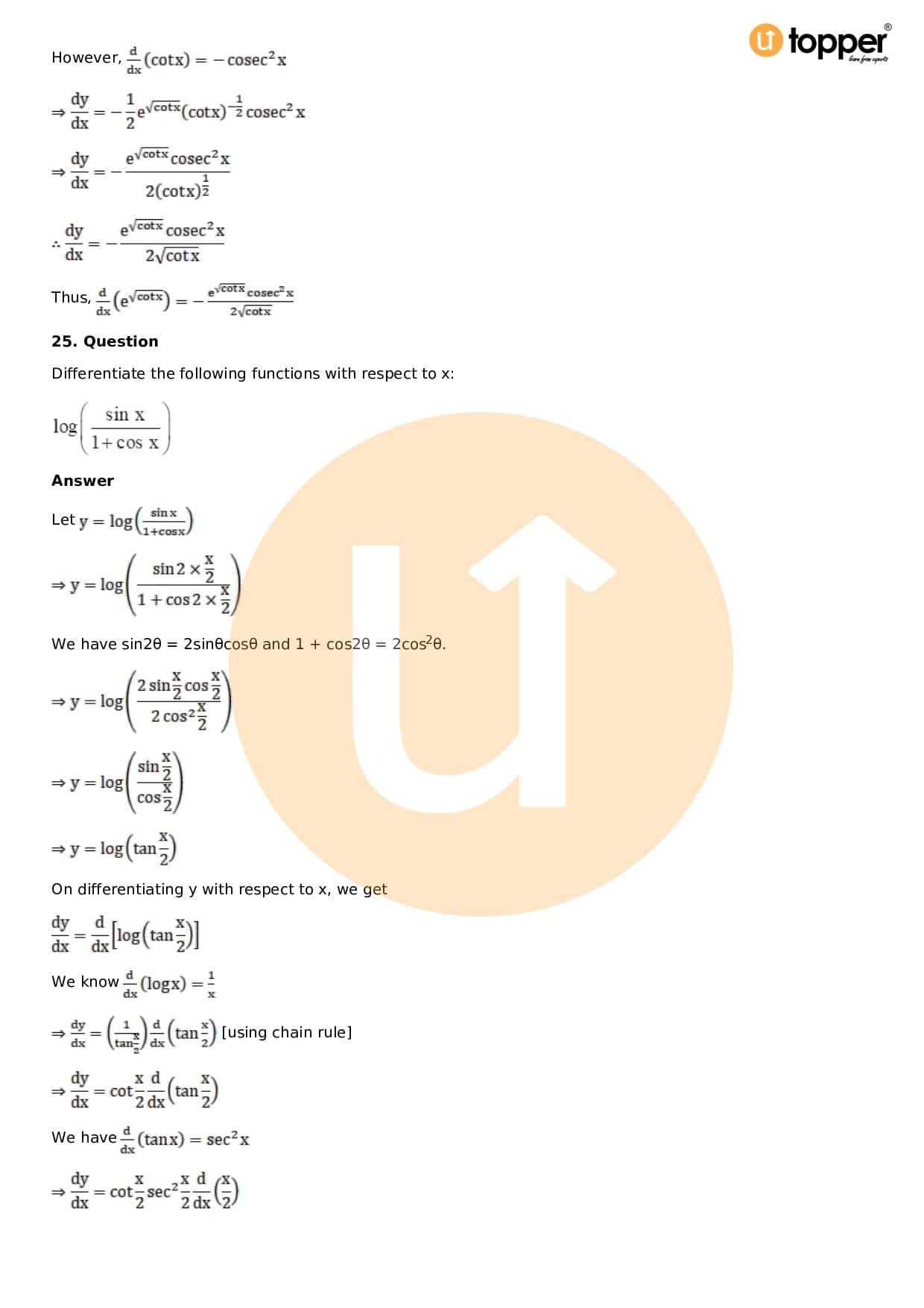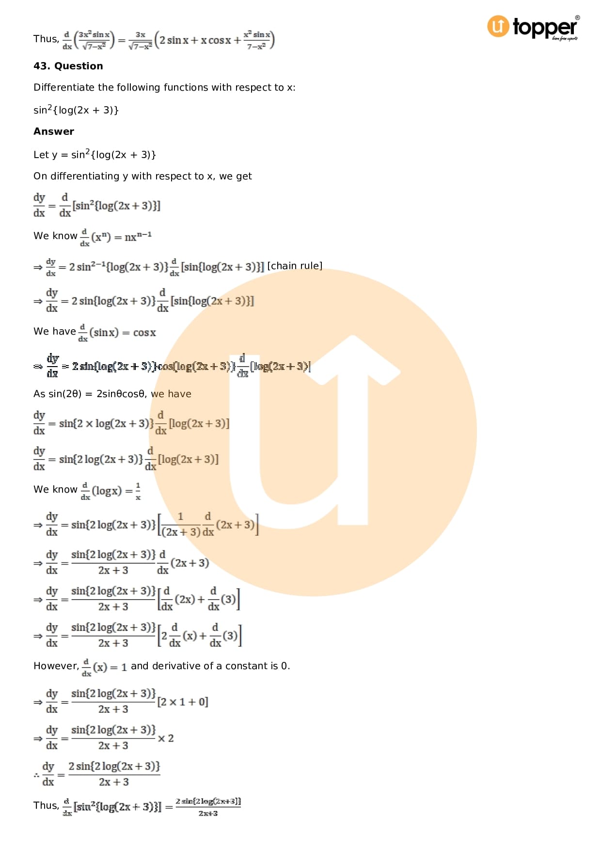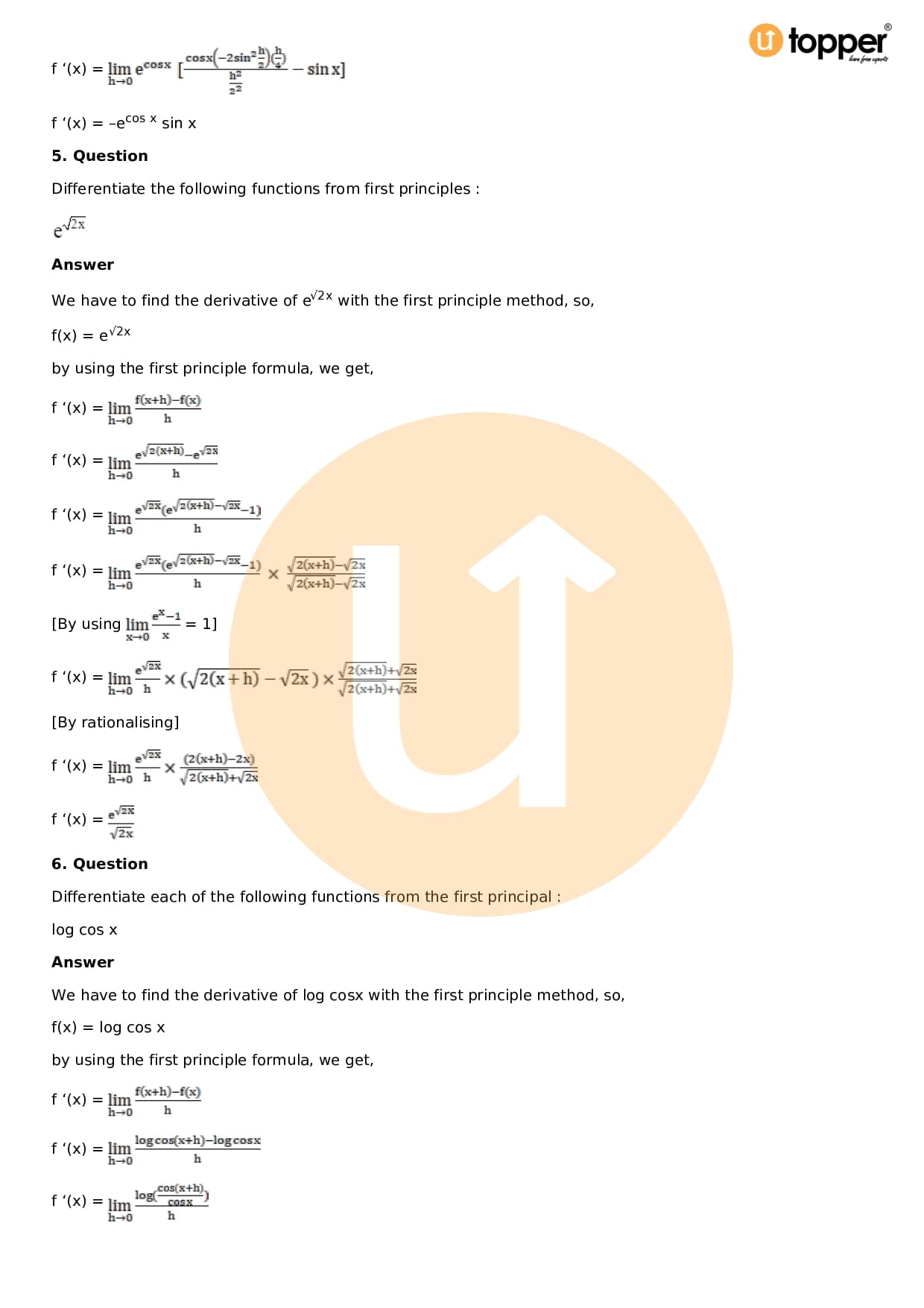 RD Sharma Class 12 Maths Chapter 11 Differentiation Solutions PDF Download