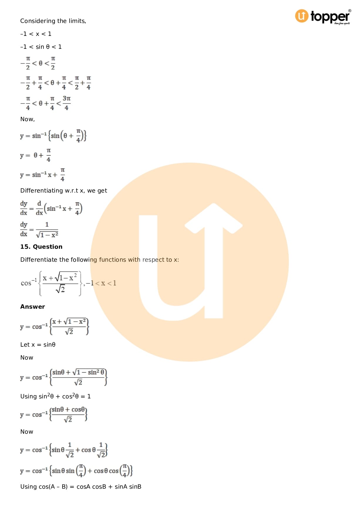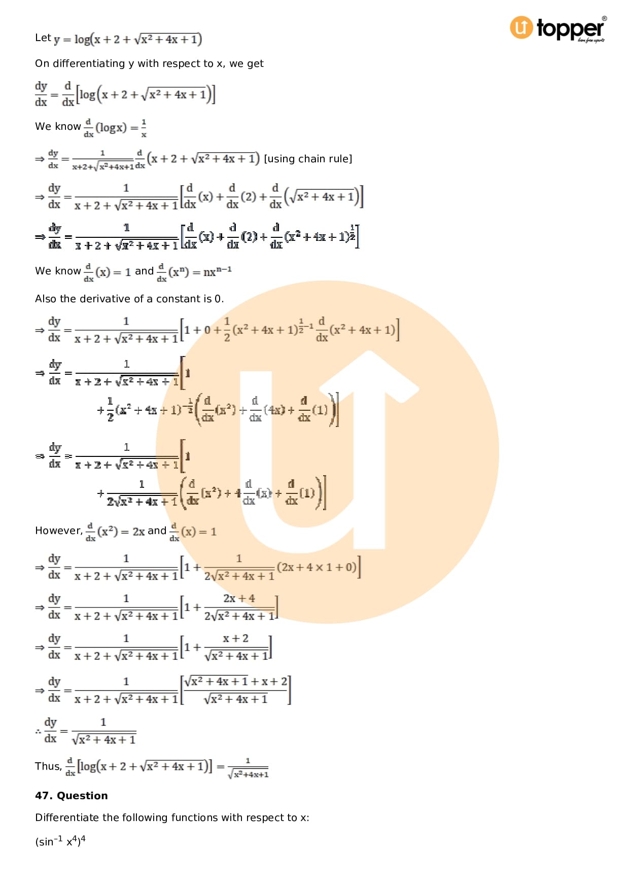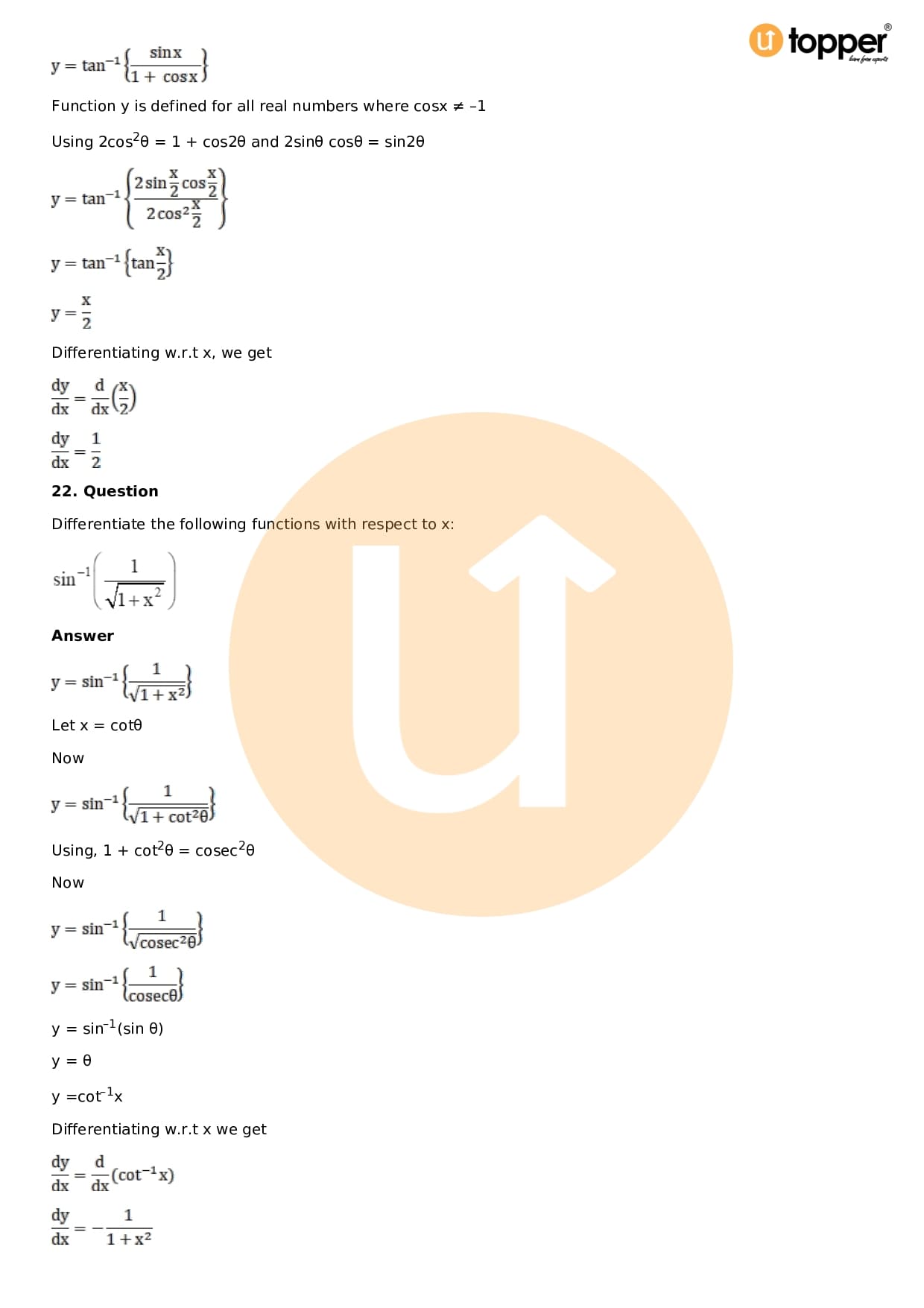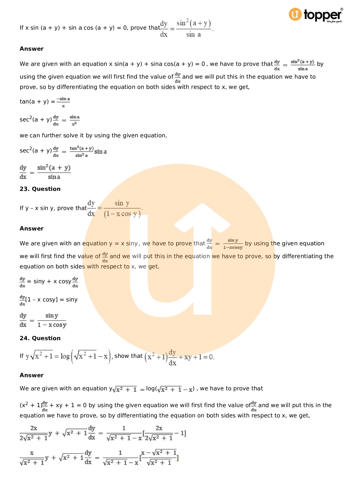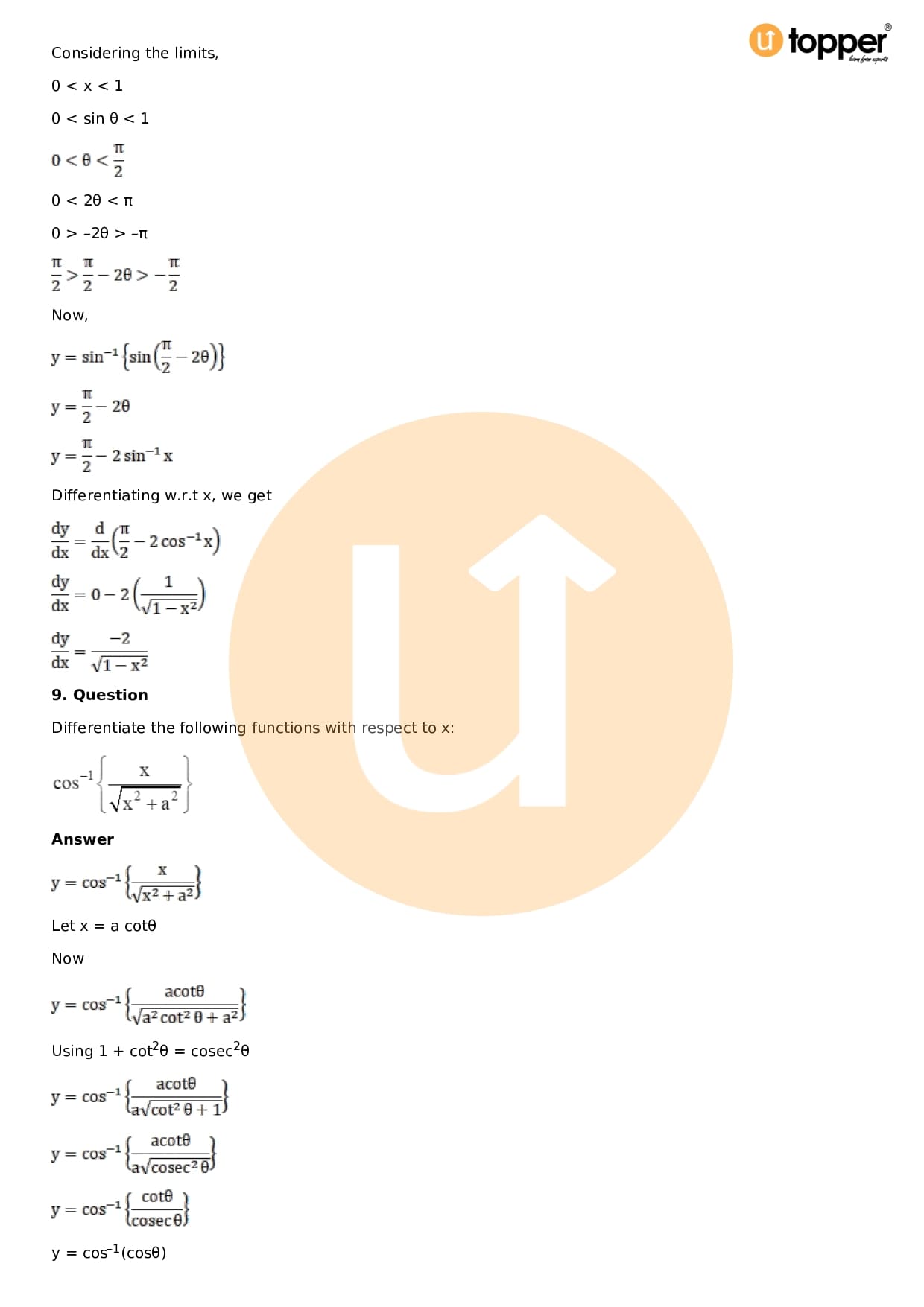 RD Sharma Class 12 Maths Chapter 11 Differentiation Solutions PDF Download