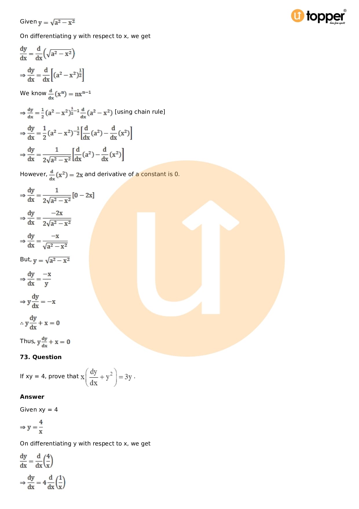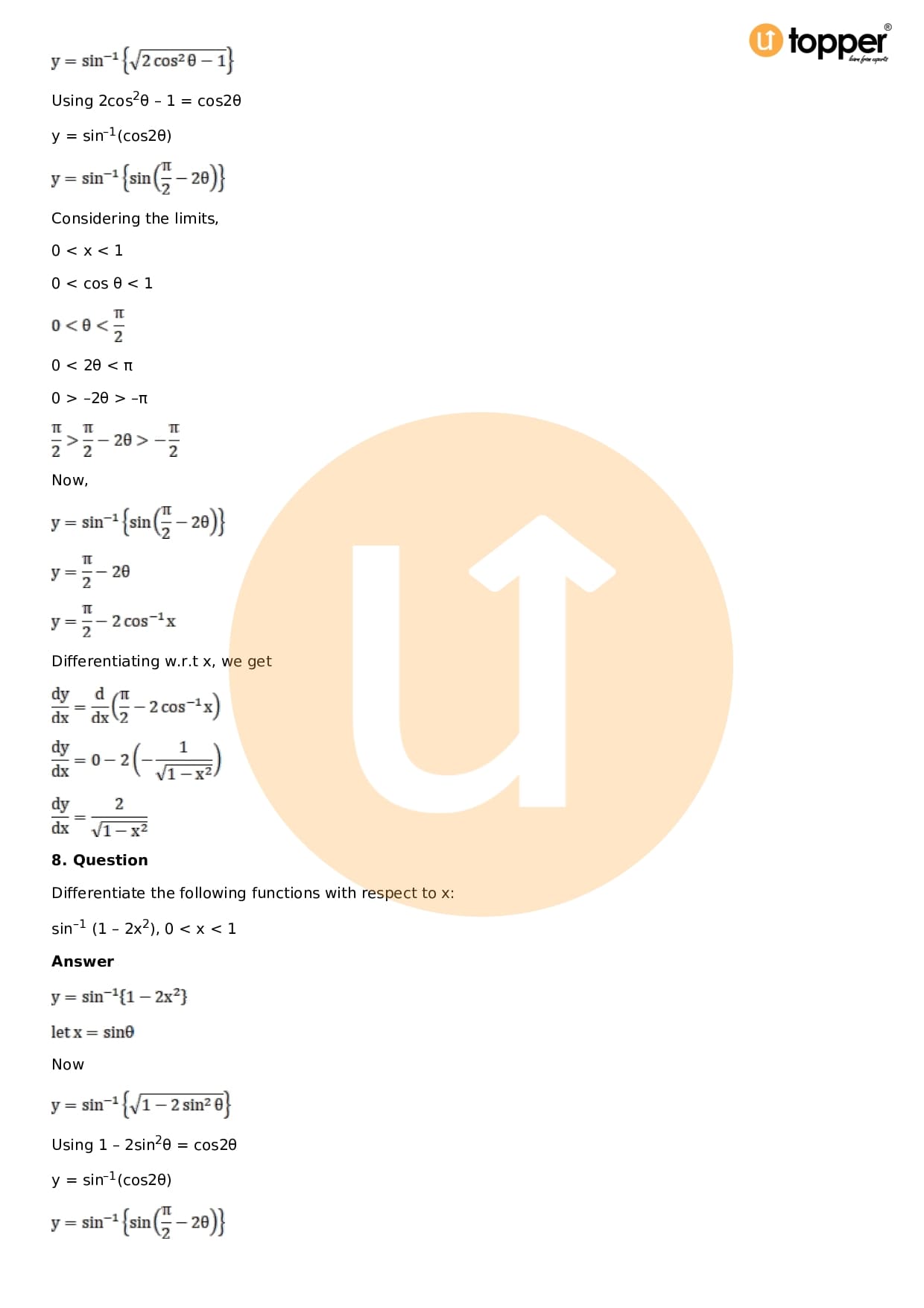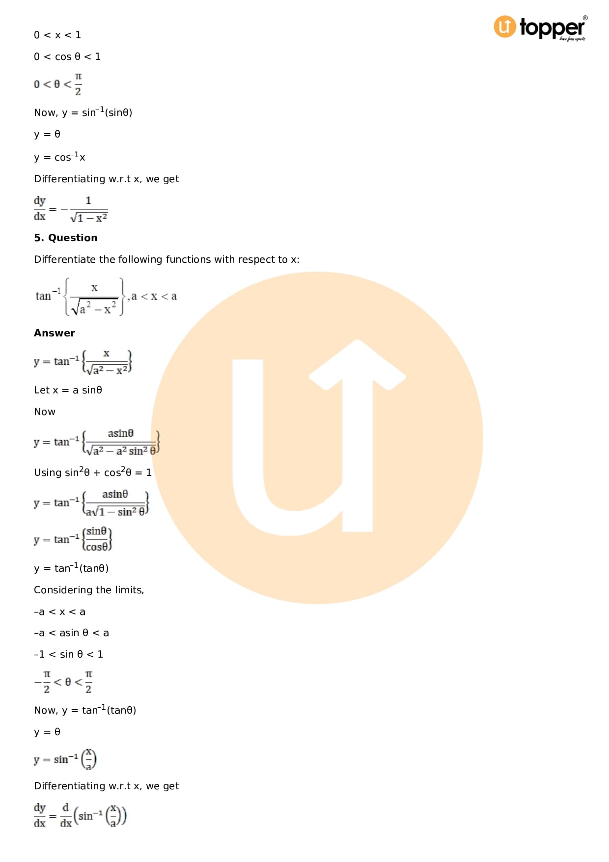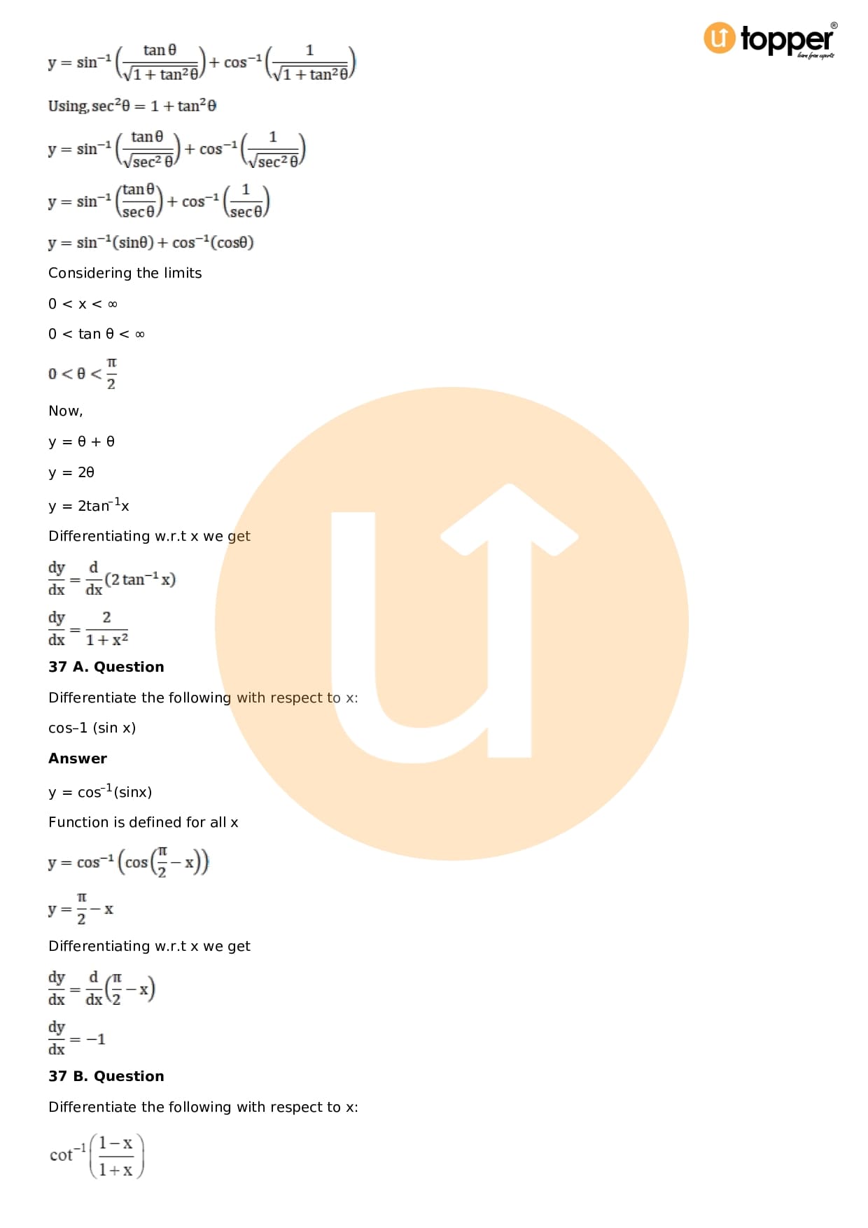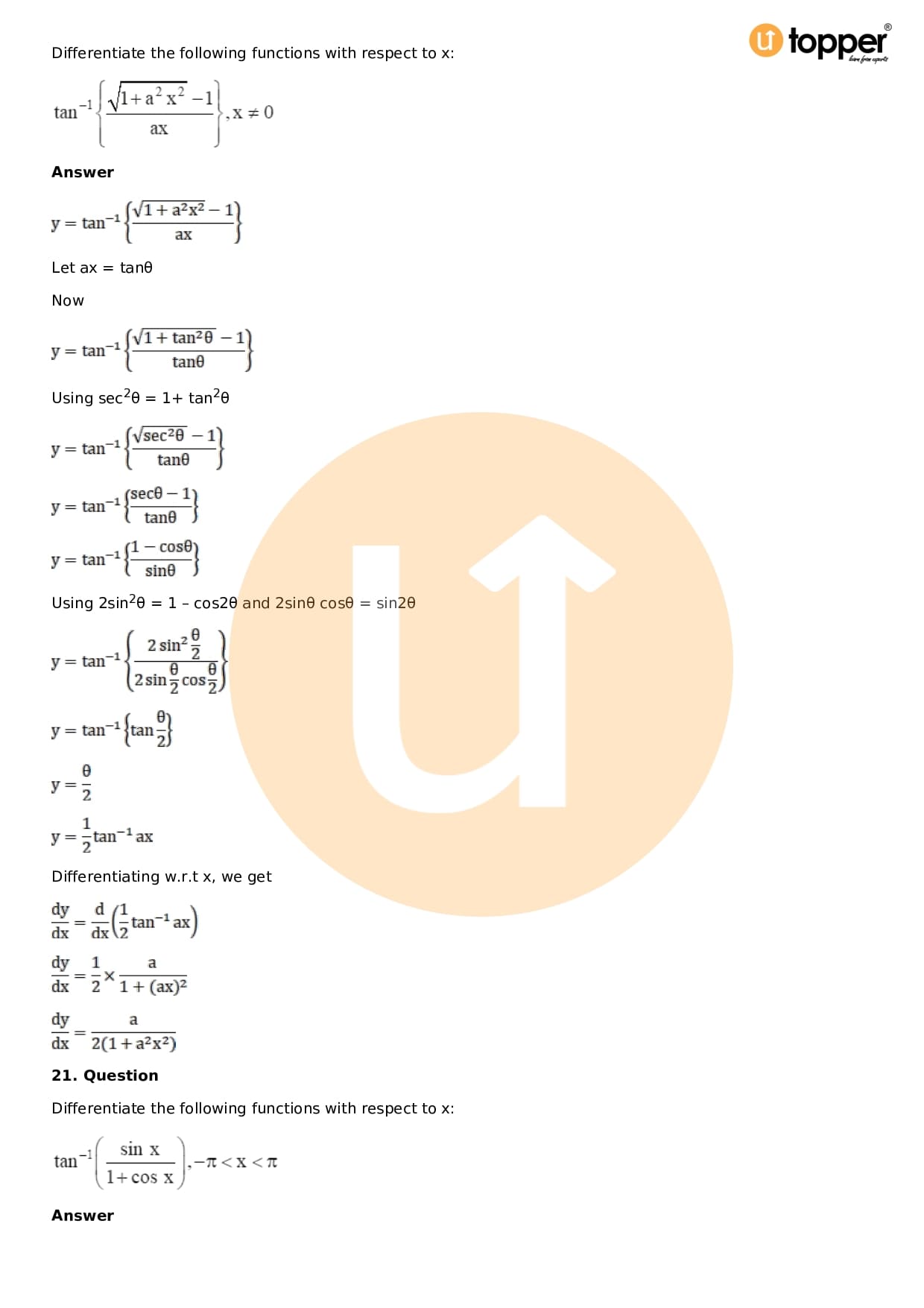 RD Sharma Class 12 Maths Chapter 11 Differentiation Solutions PDF Download