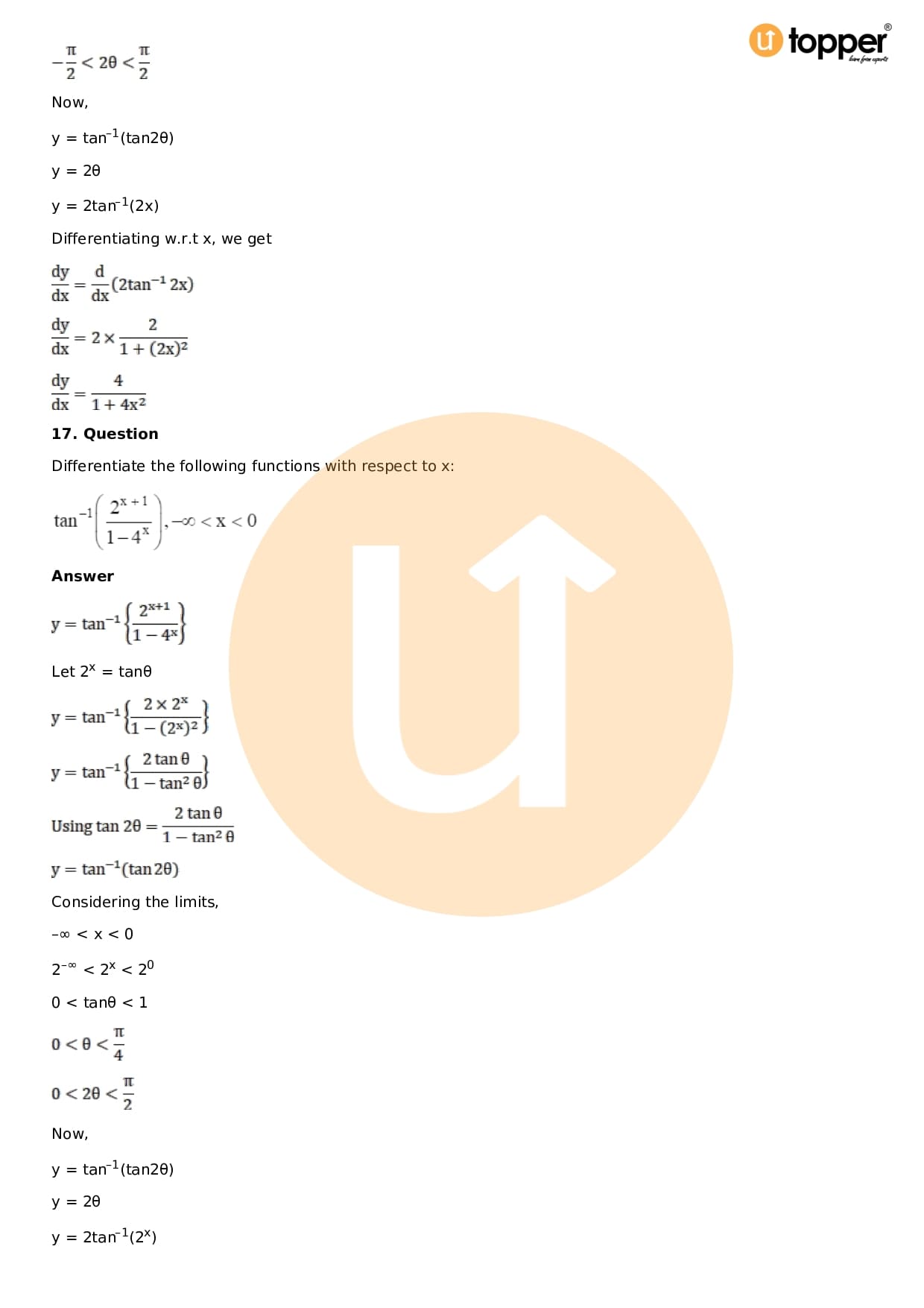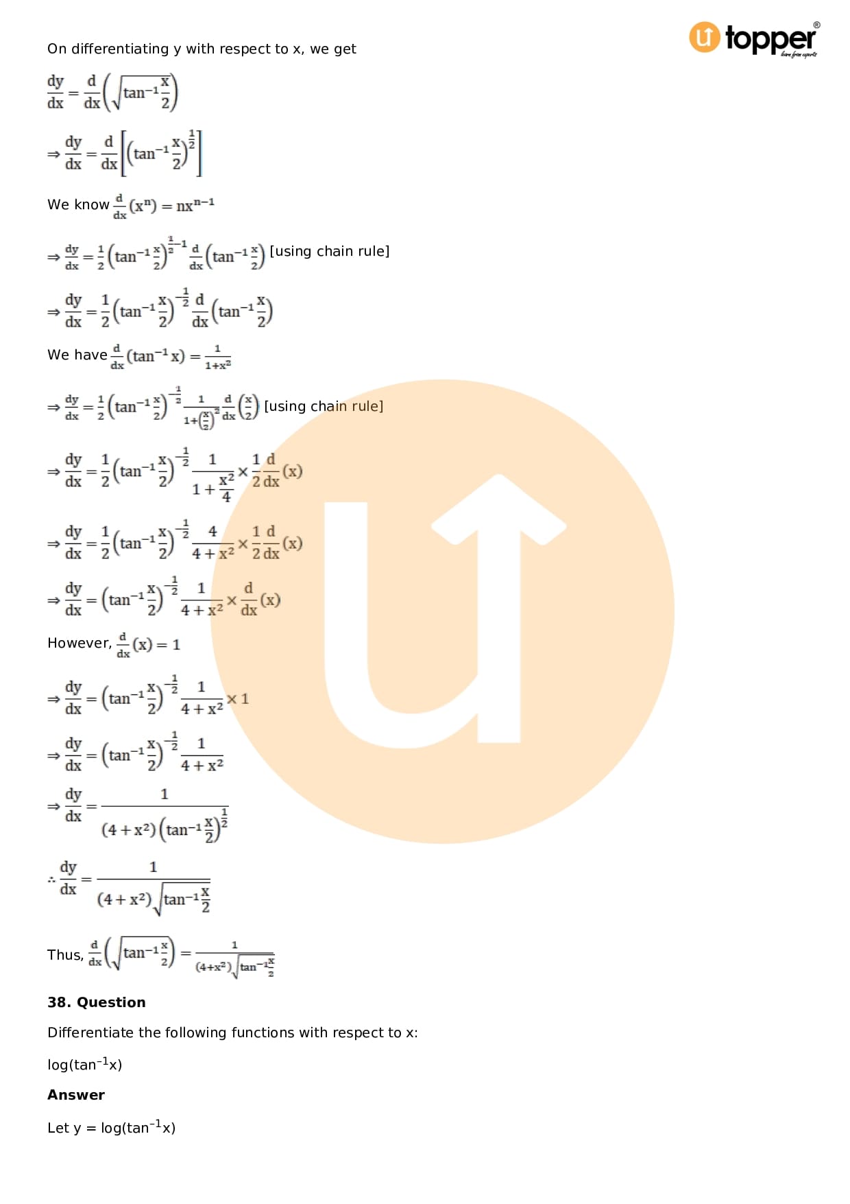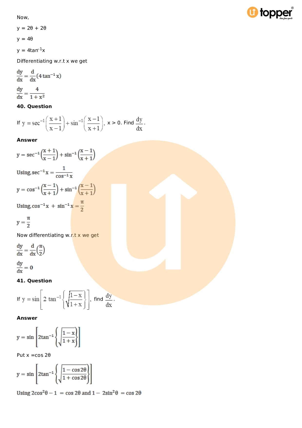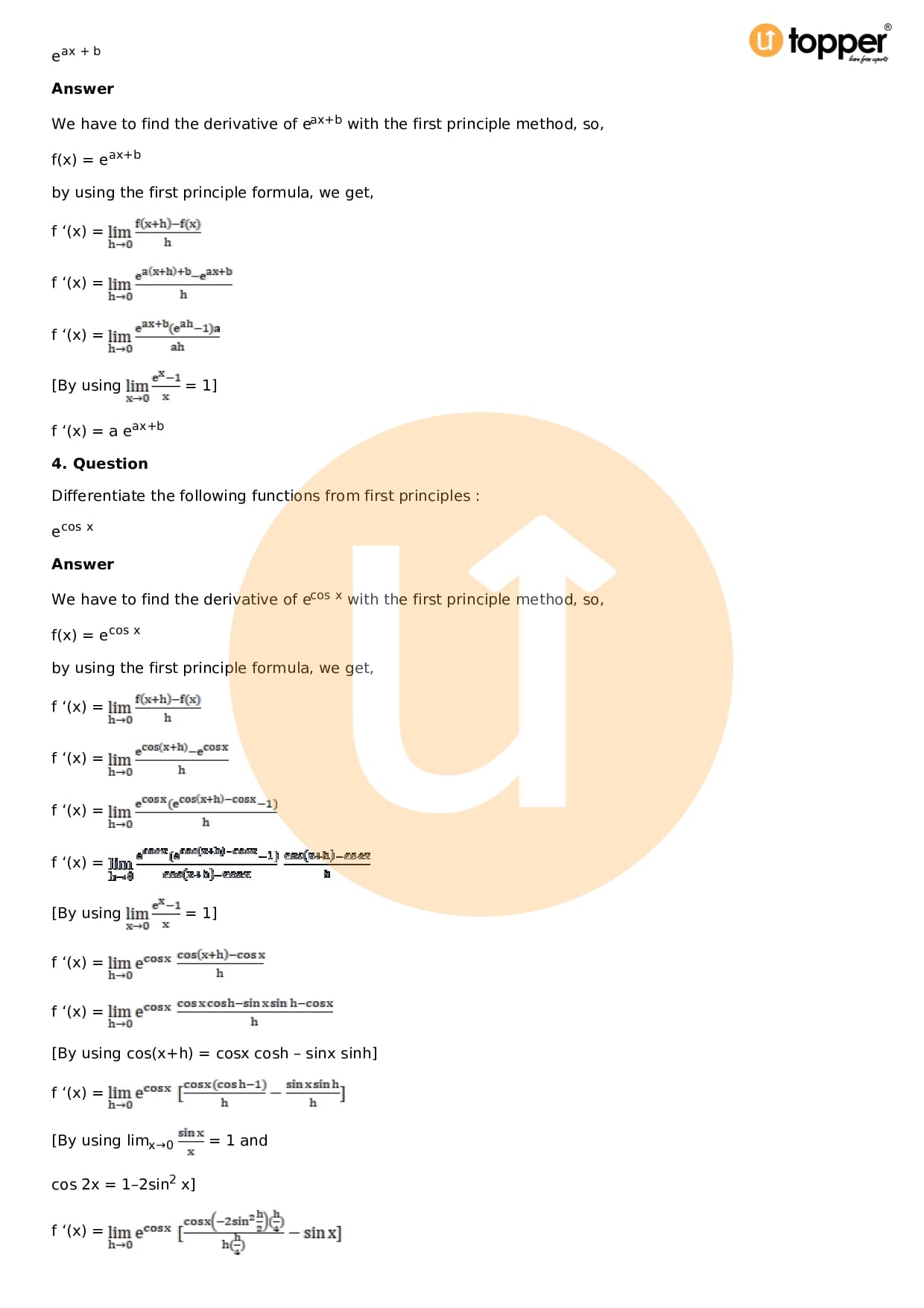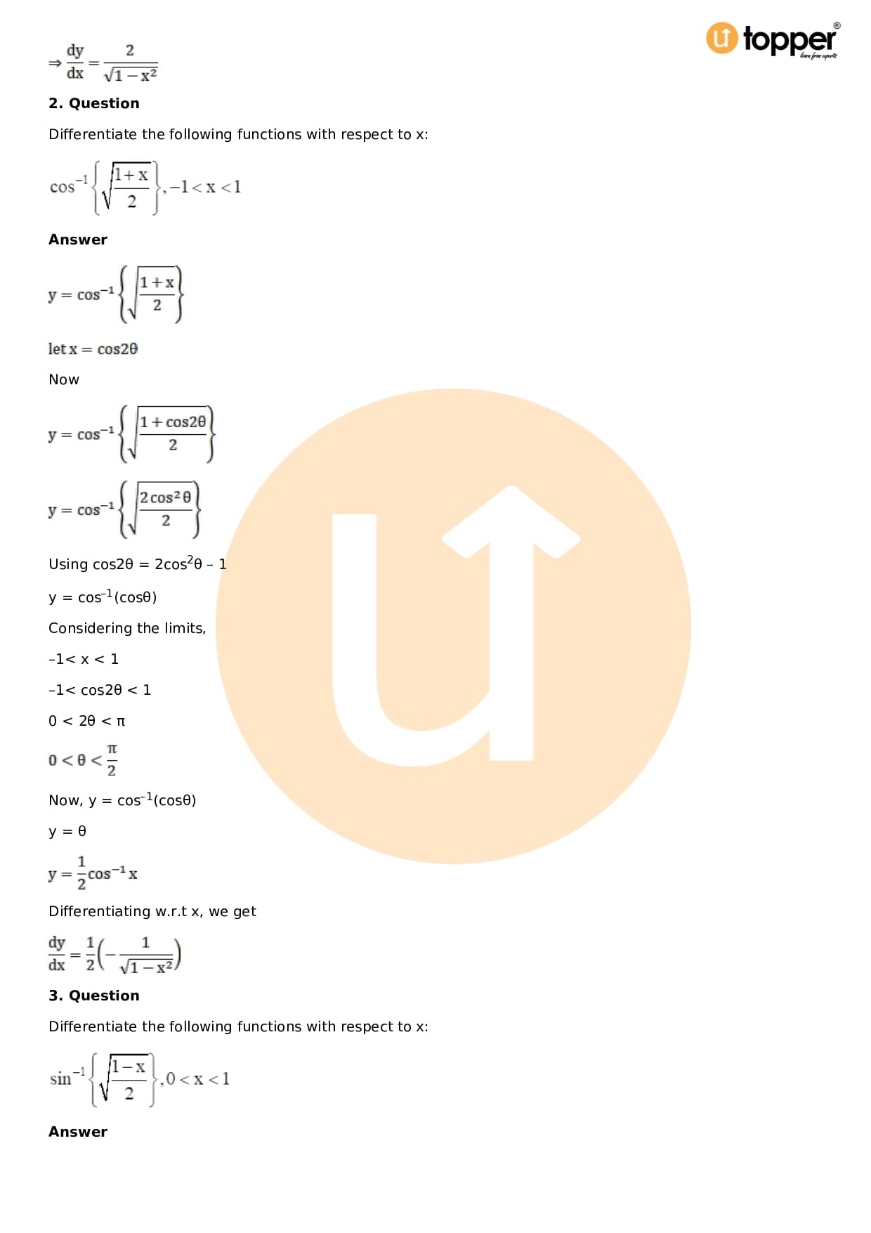 RD Sharma Class 12 Maths Chapter 11 Differentiation Solutions PDF Download