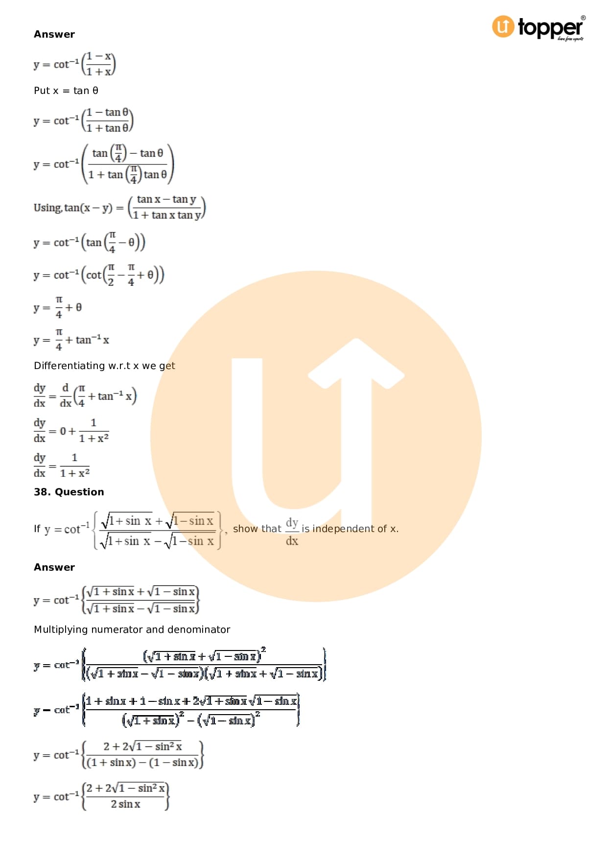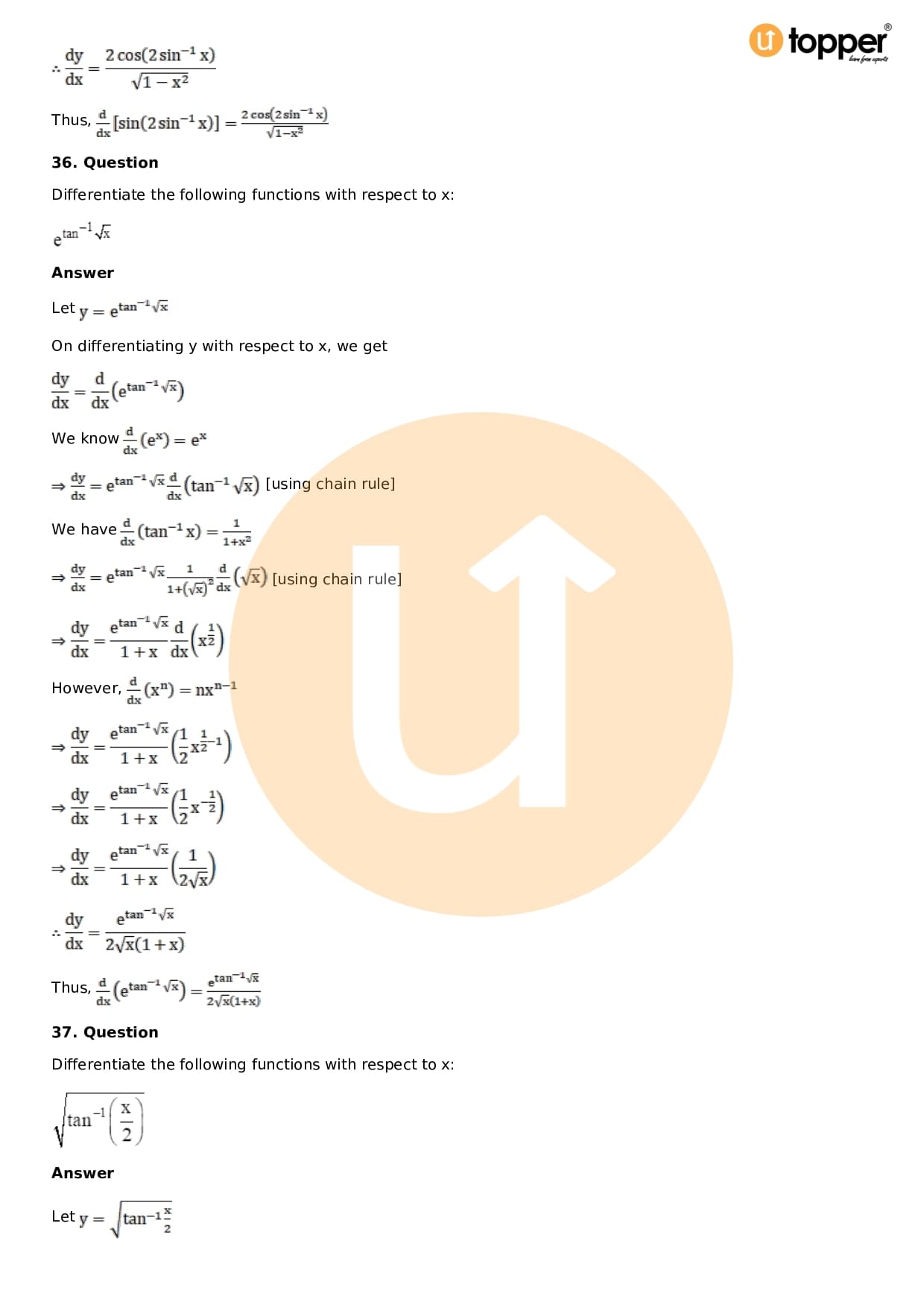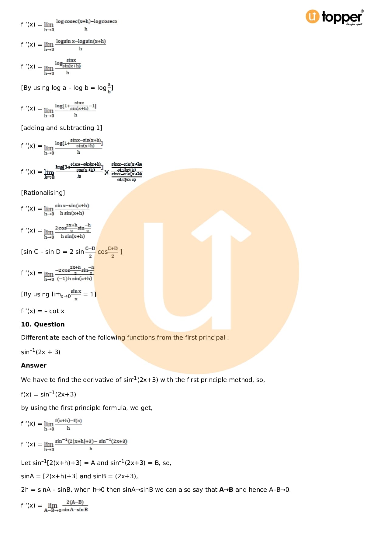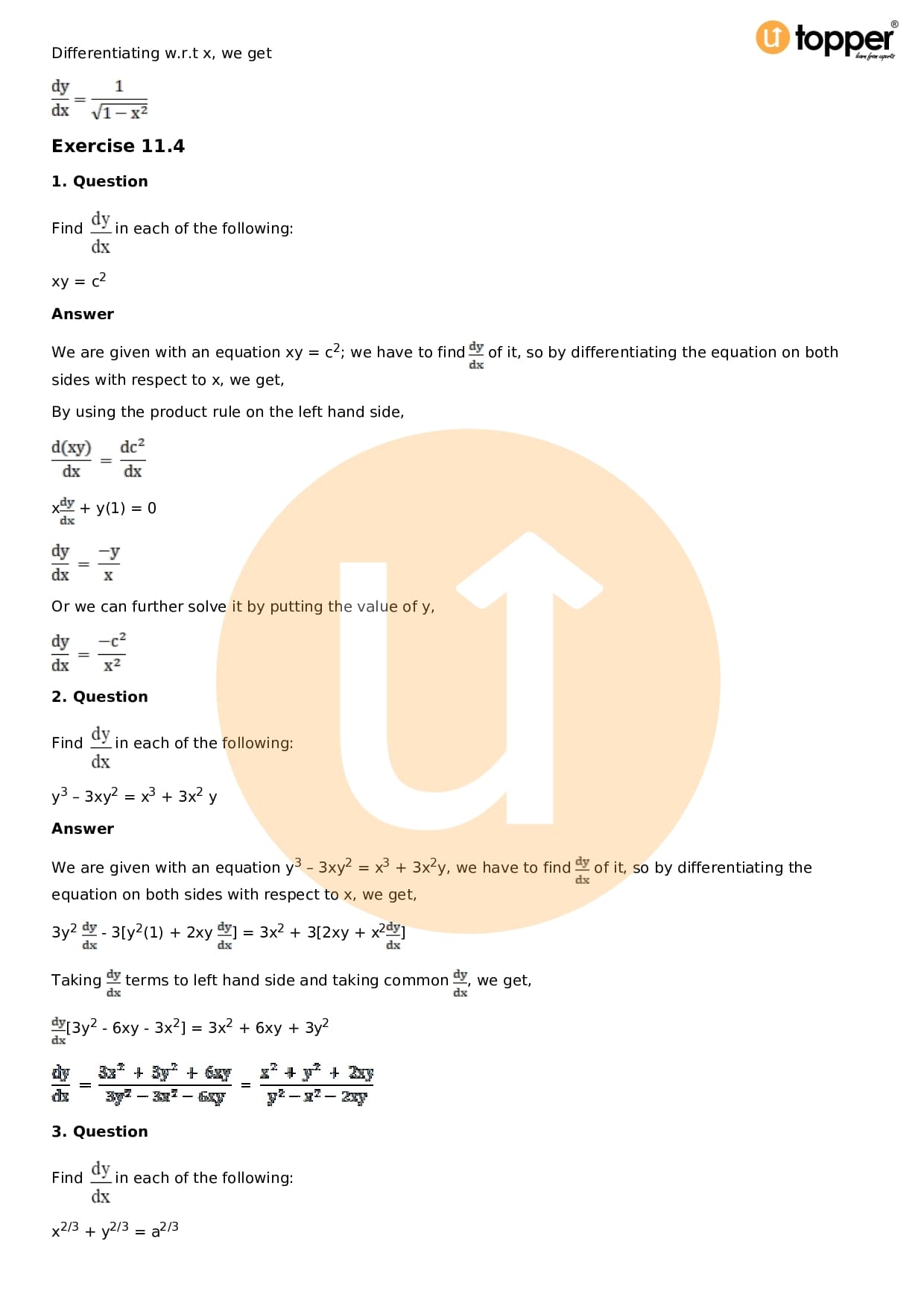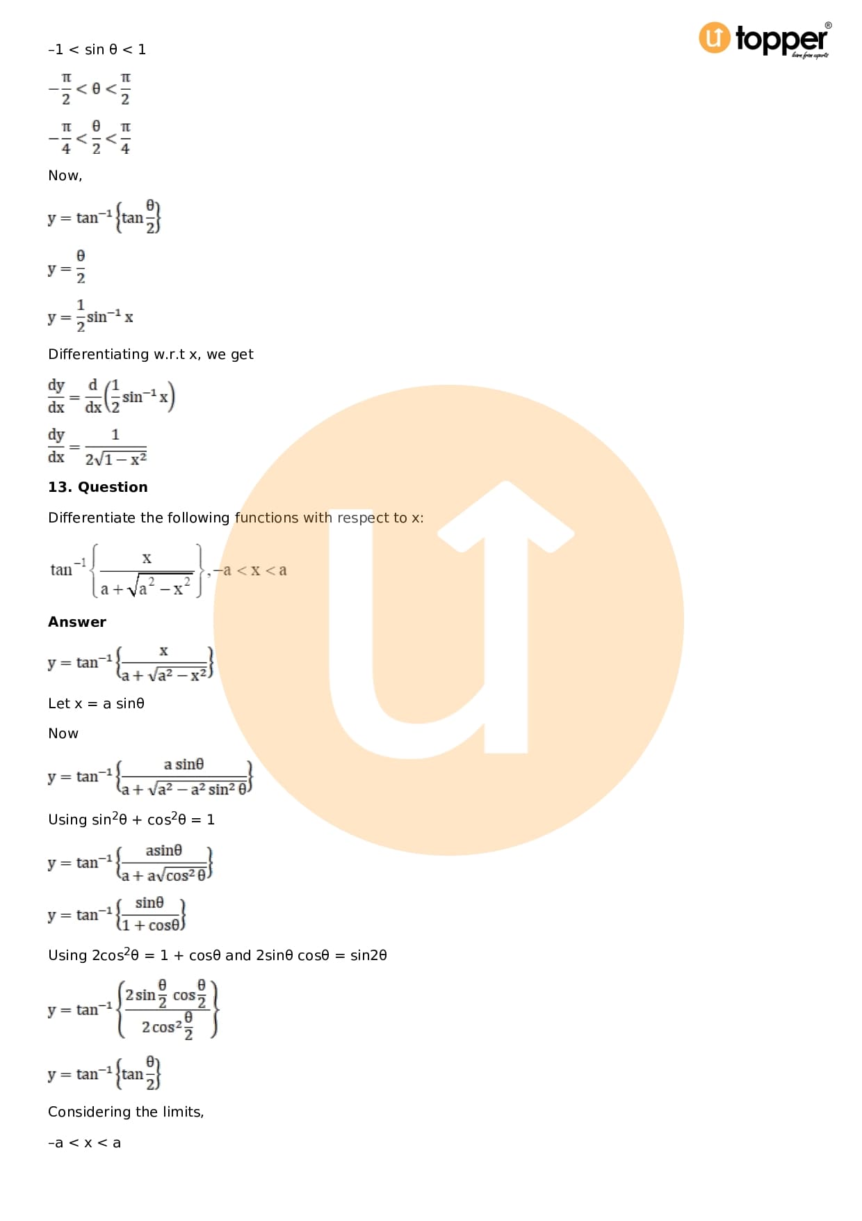 RD Sharma Class 12 Maths Chapter 11 Differentiation Solutions PDF Download