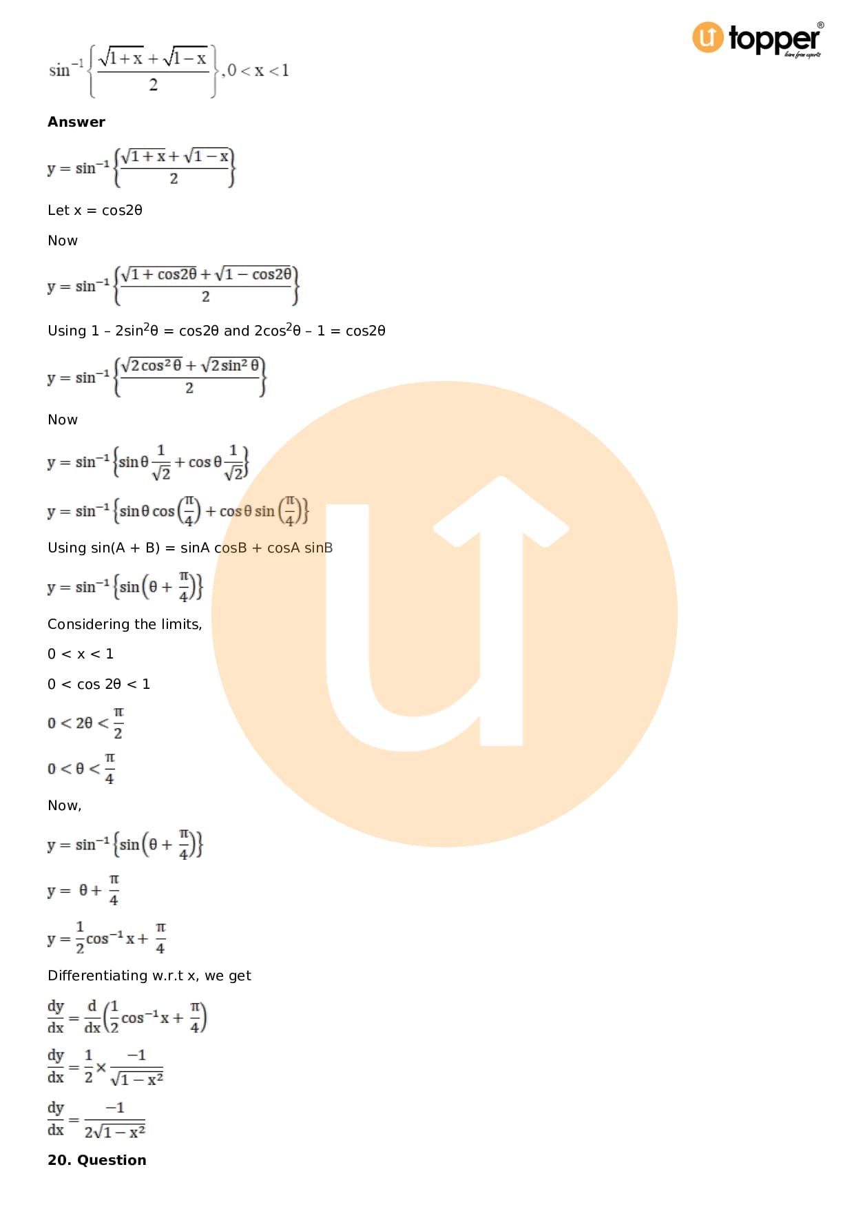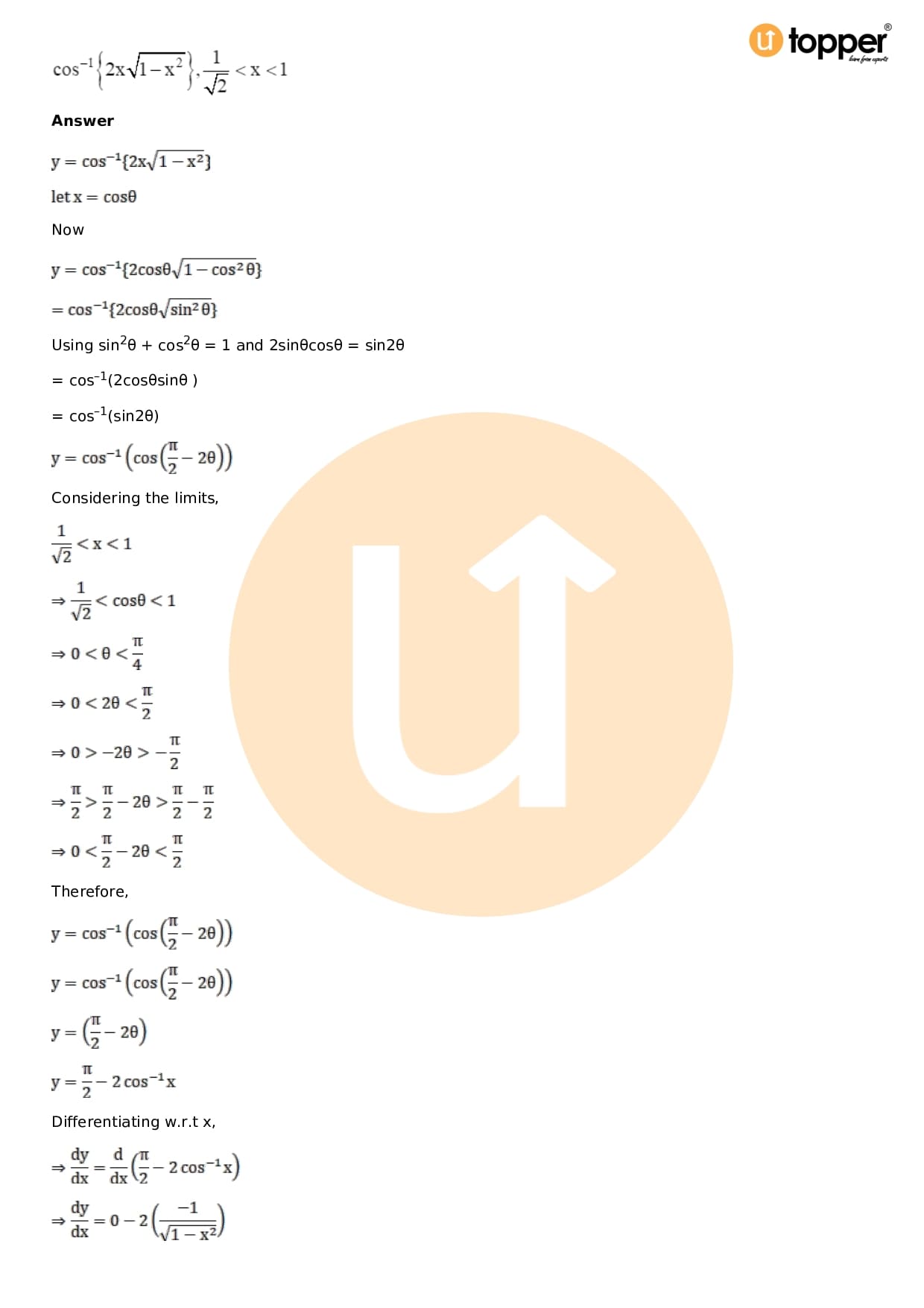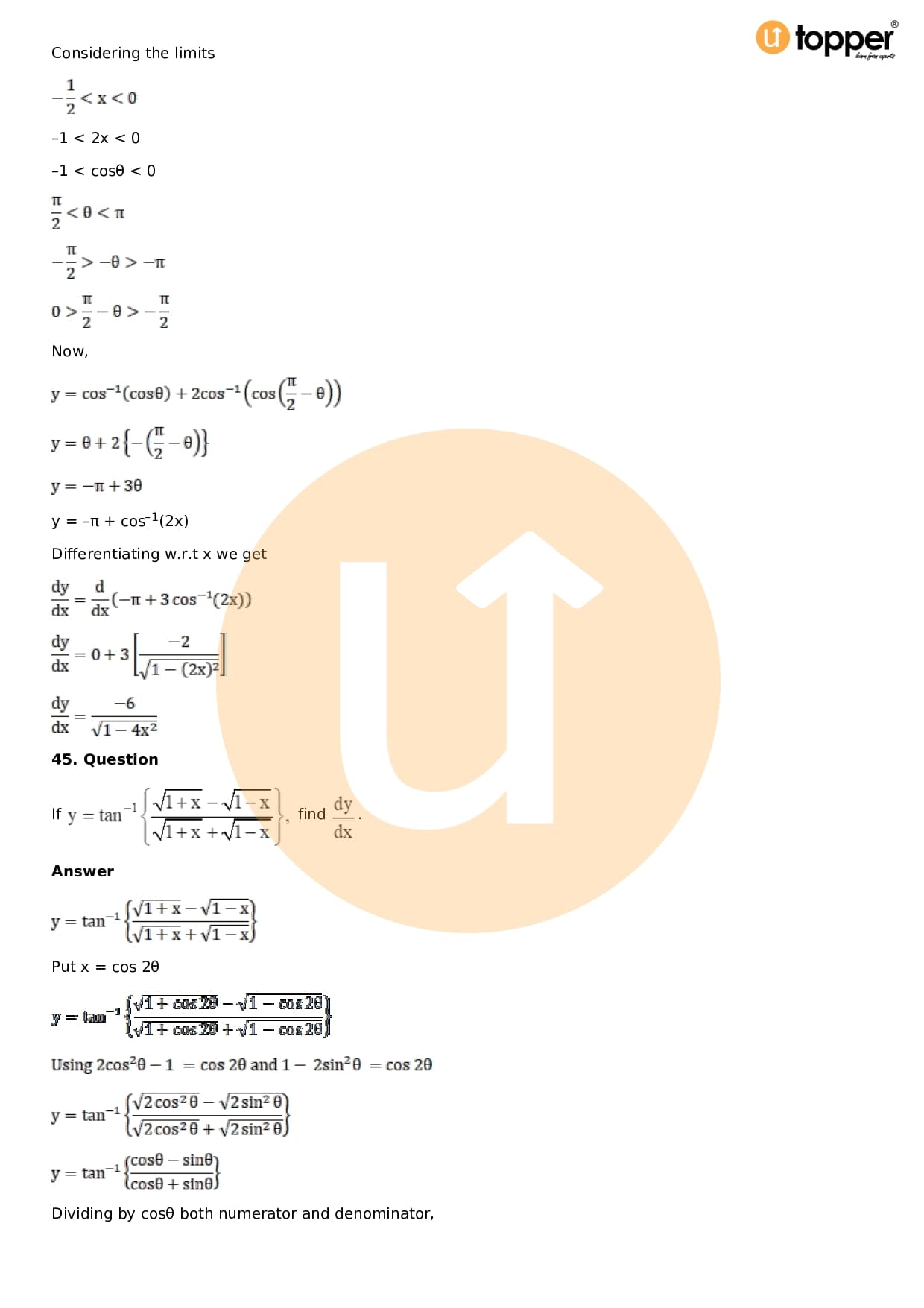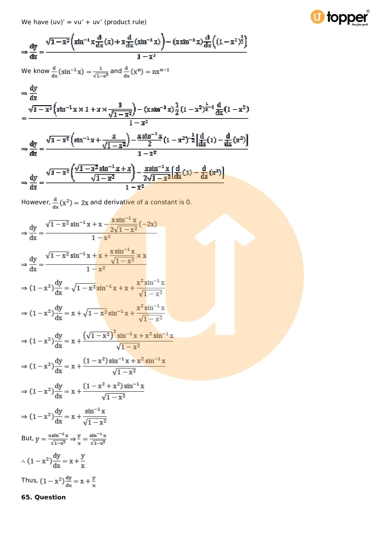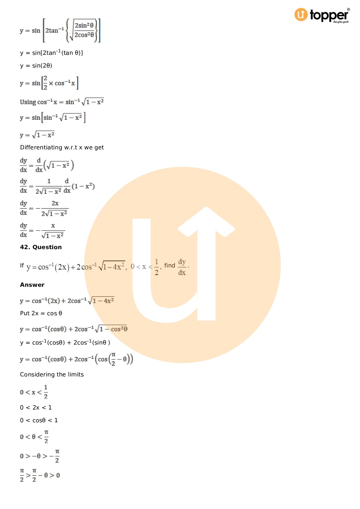 RD Sharma Class 12 Maths Chapter 11 Differentiation Solutions PDF Download