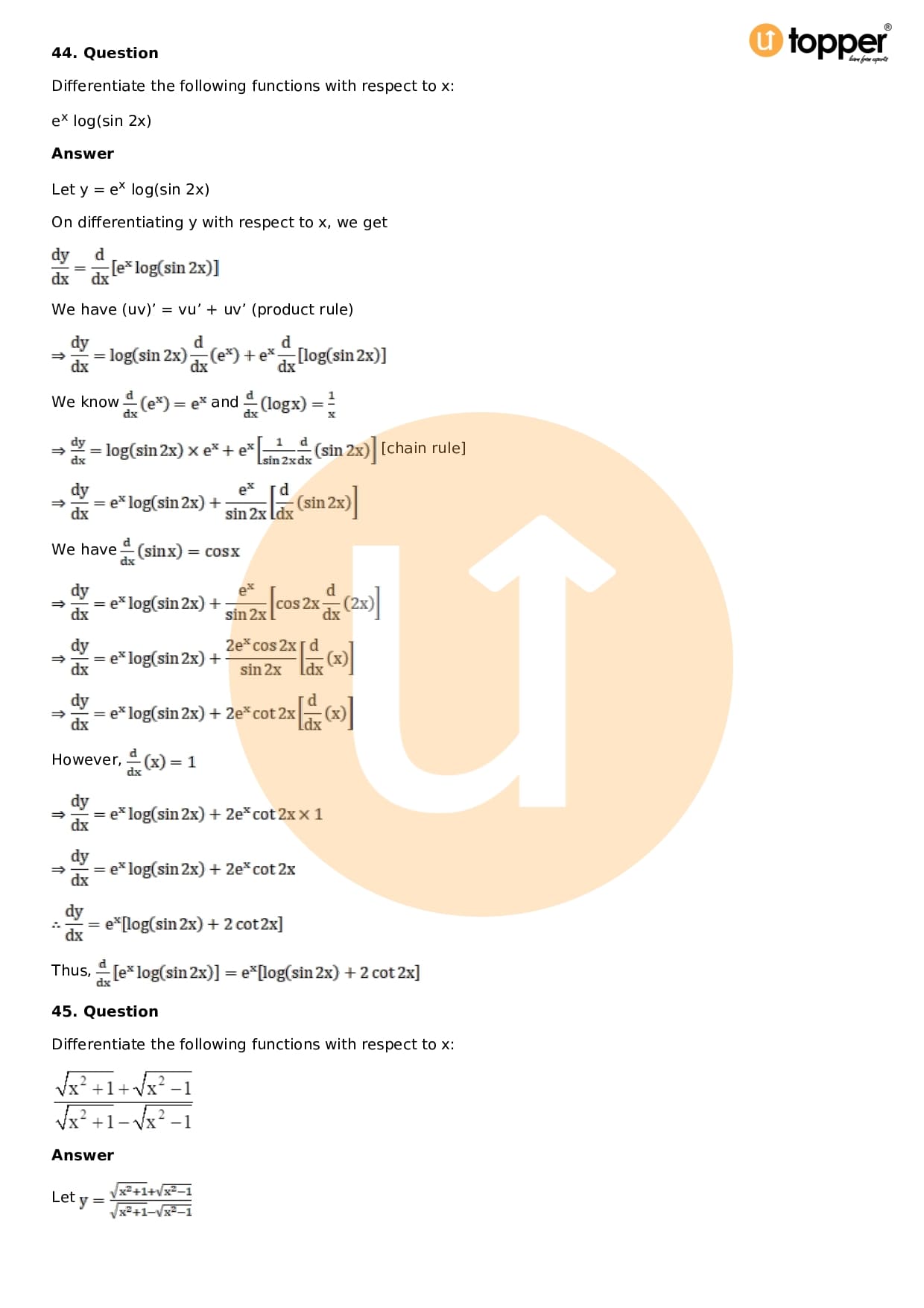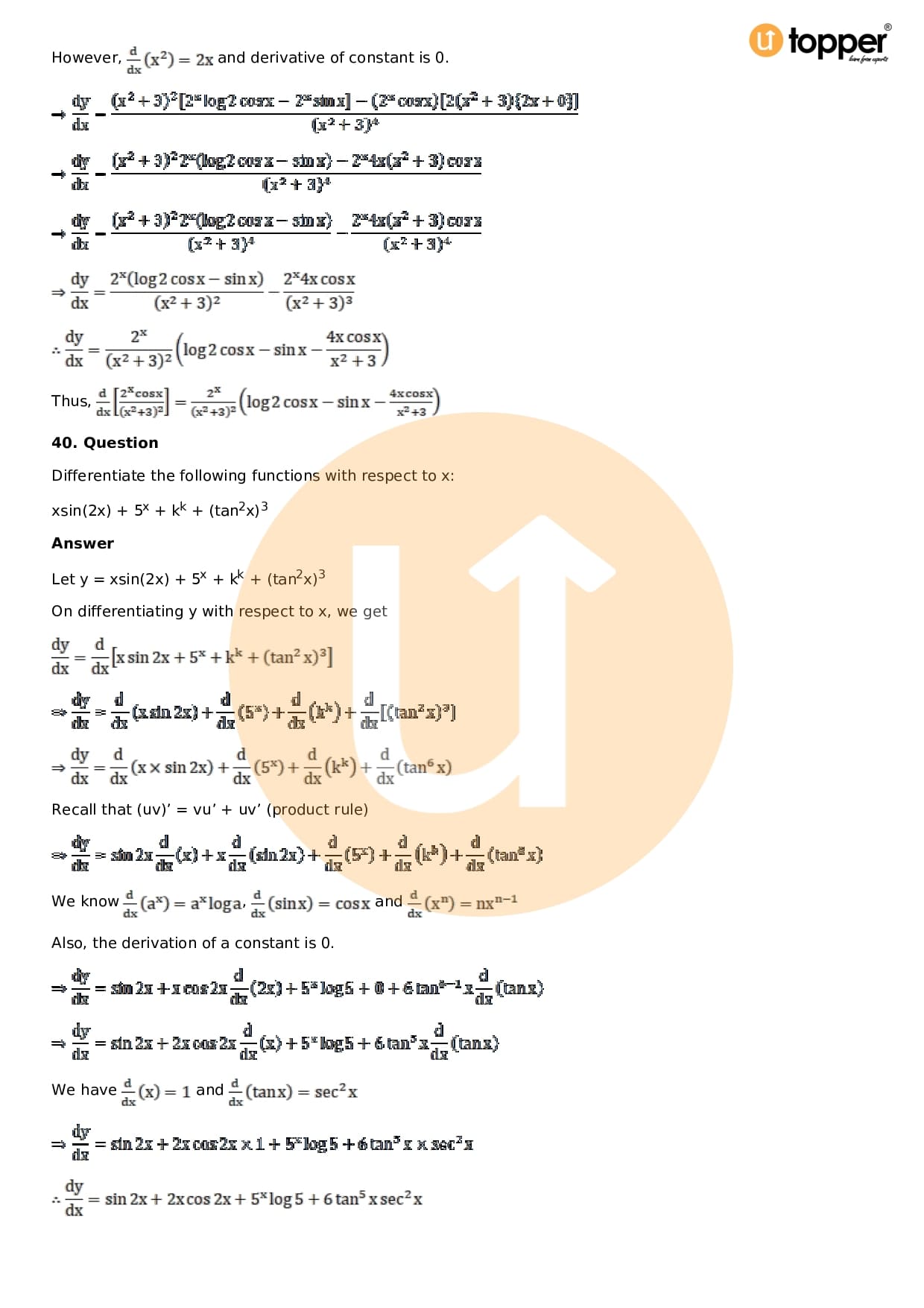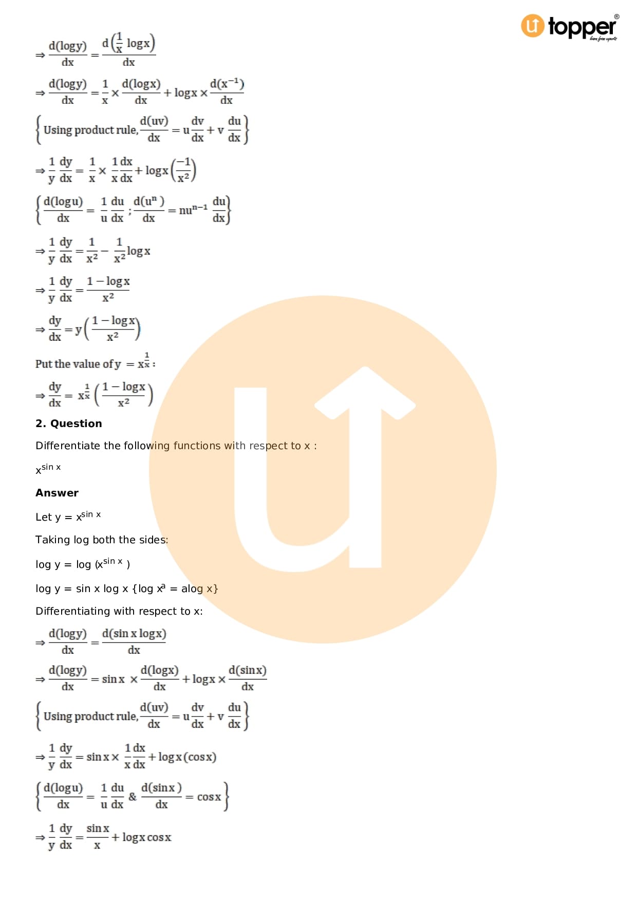Download the latest version of RD Sharma Solutions for Class 12 Maths Chapter 11 Differentiation PDF at Utopper. It provides step by step Solution PDF. You can download RD Sharma Maths Solutions with a free PDF download option, which includes chapter wise solutions. All the questions in RD Sharma Solutions have been solved and explained by expert mathematics teachers as per the CBSE Board guidelines. By studying these Maths Solutions, you can easily get good marks in the CBSE board exams.