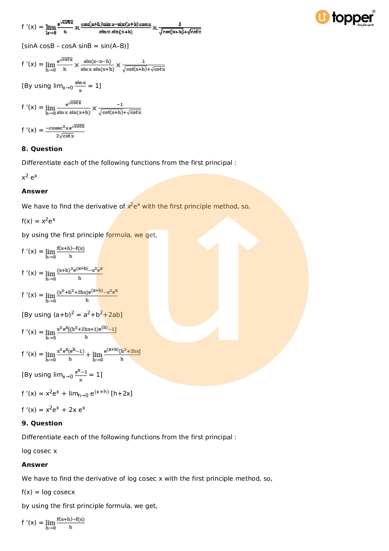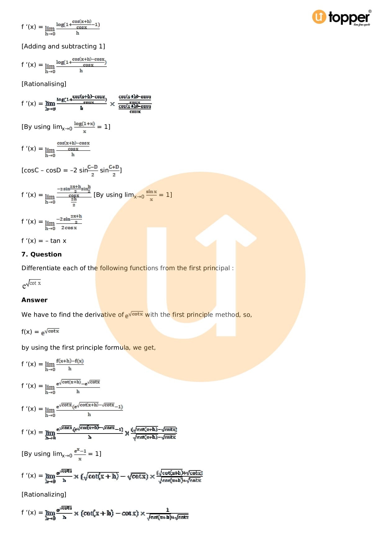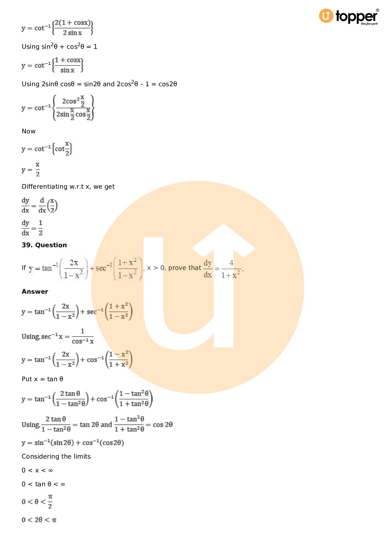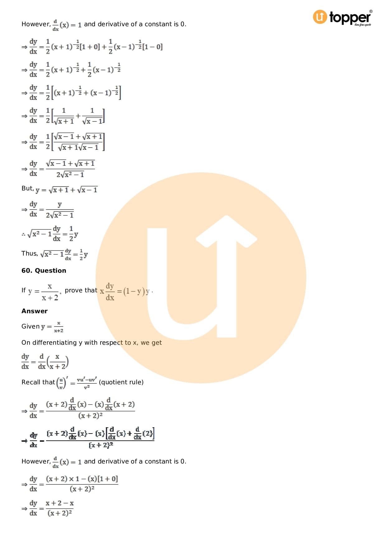 Download the latest version of RD Sharma Solutions for Class 12 Maths Chapter 11 Differentiation PDF at Utopper. It provides step by step Solution PDF. You can download RD Sharma Maths Solutions with a free PDF download option, which includes chapter wise solutions. All the questions in RD Sharma Solutions have been solved and explained by expert mathematics teachers as per the CBSE Board guidelines. By studying these Maths Solutions, you can easily get good marks in the CBSE board exams.