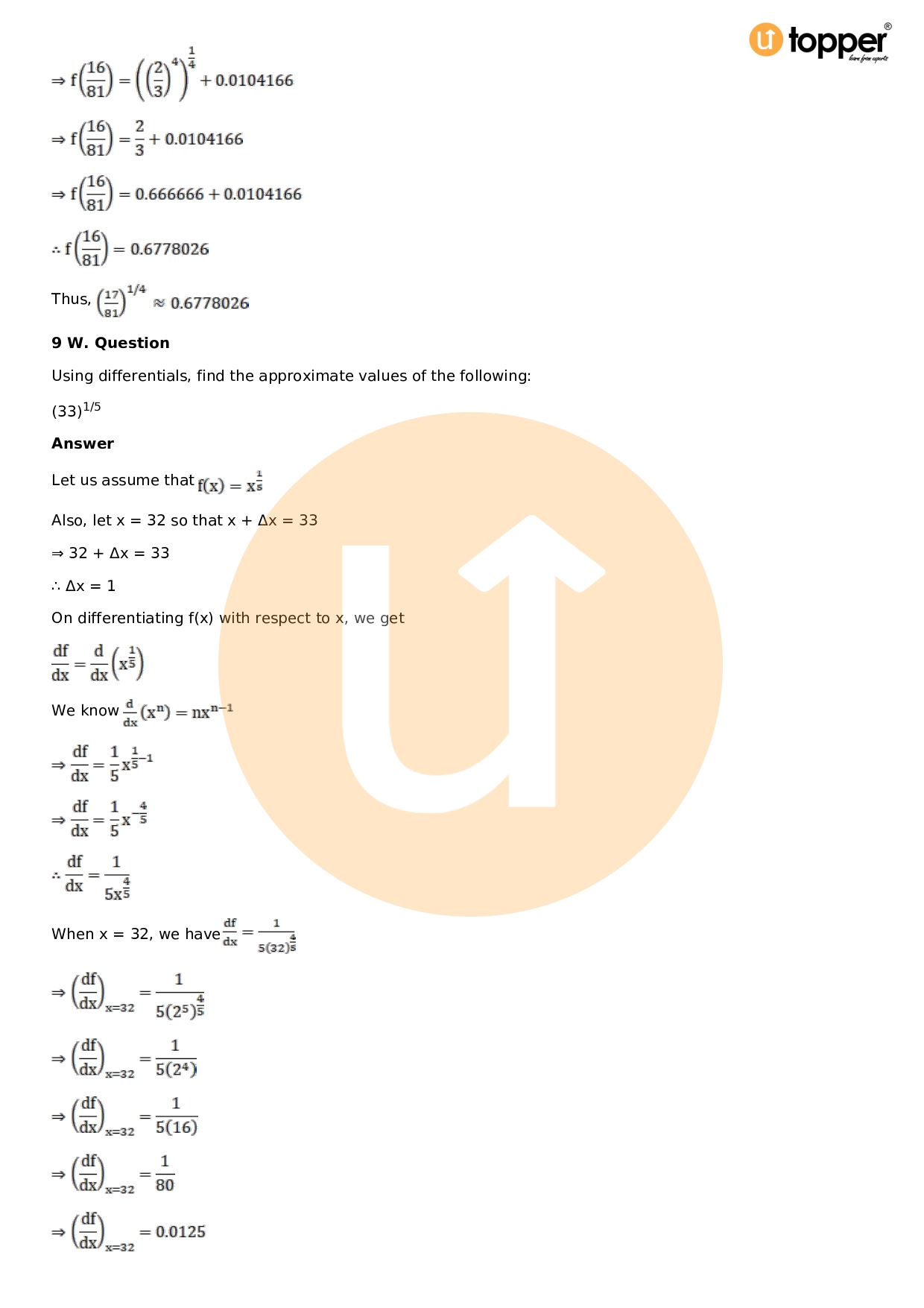 RD Sharma Class 12 Maths Chapter 14 Differentials, Errors and Approximations Solutions PDF Download