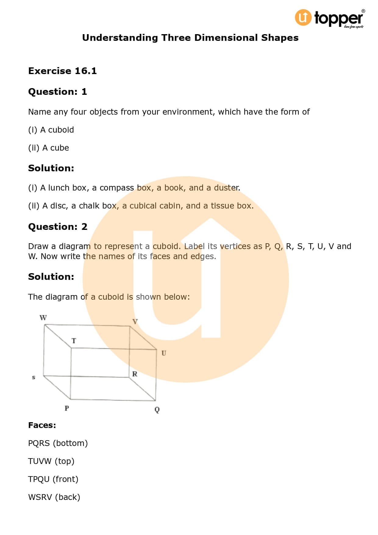 Download the latest version of RD Sharma Solutions for Class 6 Maths Chapter 16 Understanding 3D Shapes PDF at Utopper. It provides step by step Solution PDF. You can download RD Sharma Maths Solutions with a free PDF download option, which includes chapter wise solutions. All the questions in RD Sharma Solutions have been solved and explained by expert mathematics teachers as per the CBSE Board guidelines. By studying these Maths Solutions, you can easily get good marks in the CBSE board exams.